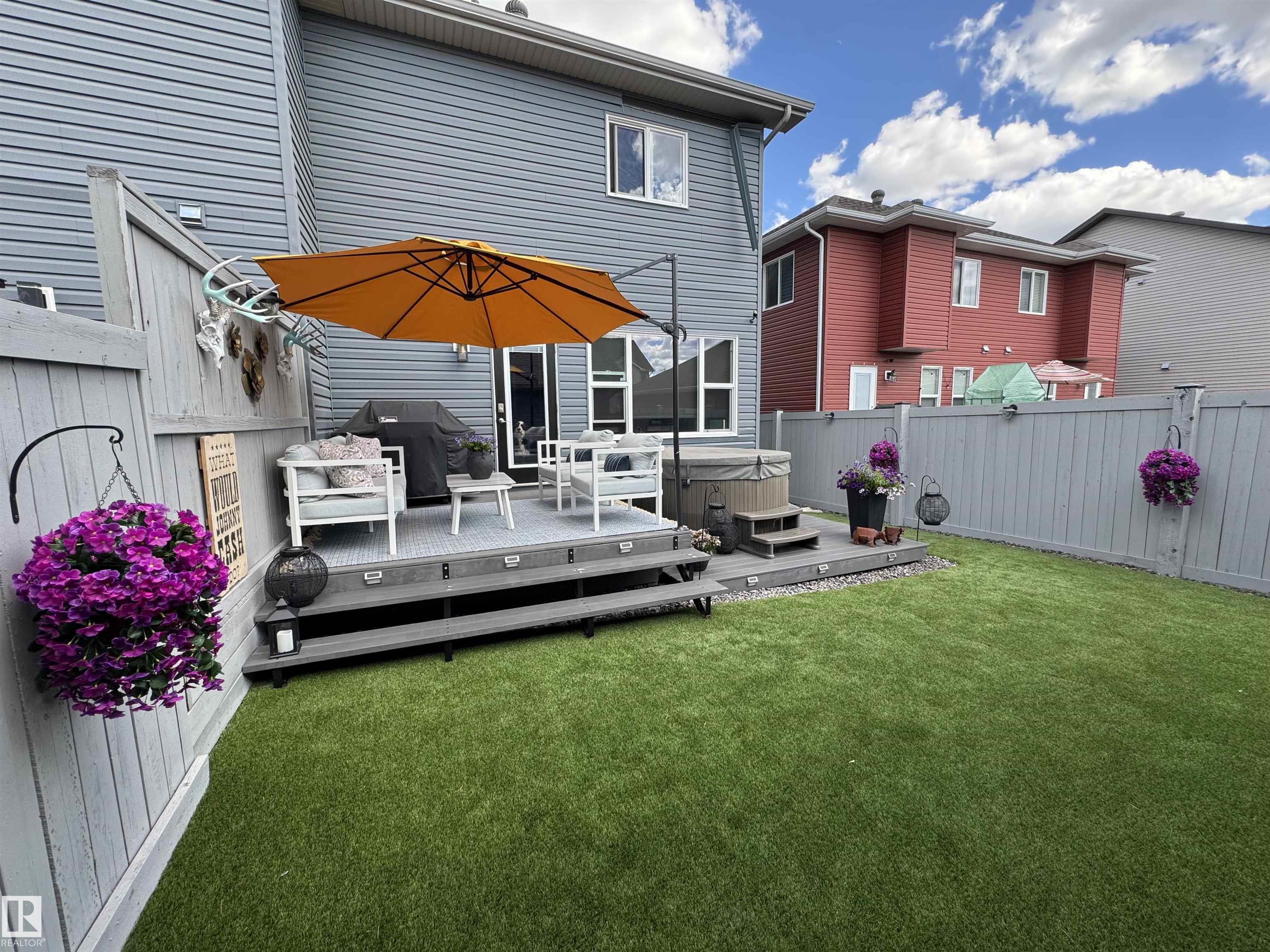 Welcome to this Custom-Built Half Duplex by Coventry Homes showcasing Modern, Updated Finishes and a thoughtfully designed layout perfect for today?s lifestyle. This beautiful home offers 3 bedrooms, 2.5 bathrooms and bright Functional Living Spaces throughout. The main floor is designed for both Comfort and Entertaining, while the upper level provides Spacious Bedrooms and Well Appointed Bathrooms. Step outside to your Large Backyard oasis featuring Pet Friendly Turf, a Deck ideal for hosting and a Private Hot Tub, the perfect space to relax year round. Completing the property is a Double Detached Garage offering excellent storage and convenience. Located in a Highly Desirable Community this home is just minutes from Shopping, Public Transportation and Everyday Amenities making commuting and daily errands effortless. A perfect blend of Quality Craftsmanship, Modern Style and unbeatable location this home is truly move-in ready and not to be missed.Upgrades Include: Marble Countertop and Tank Water Tank