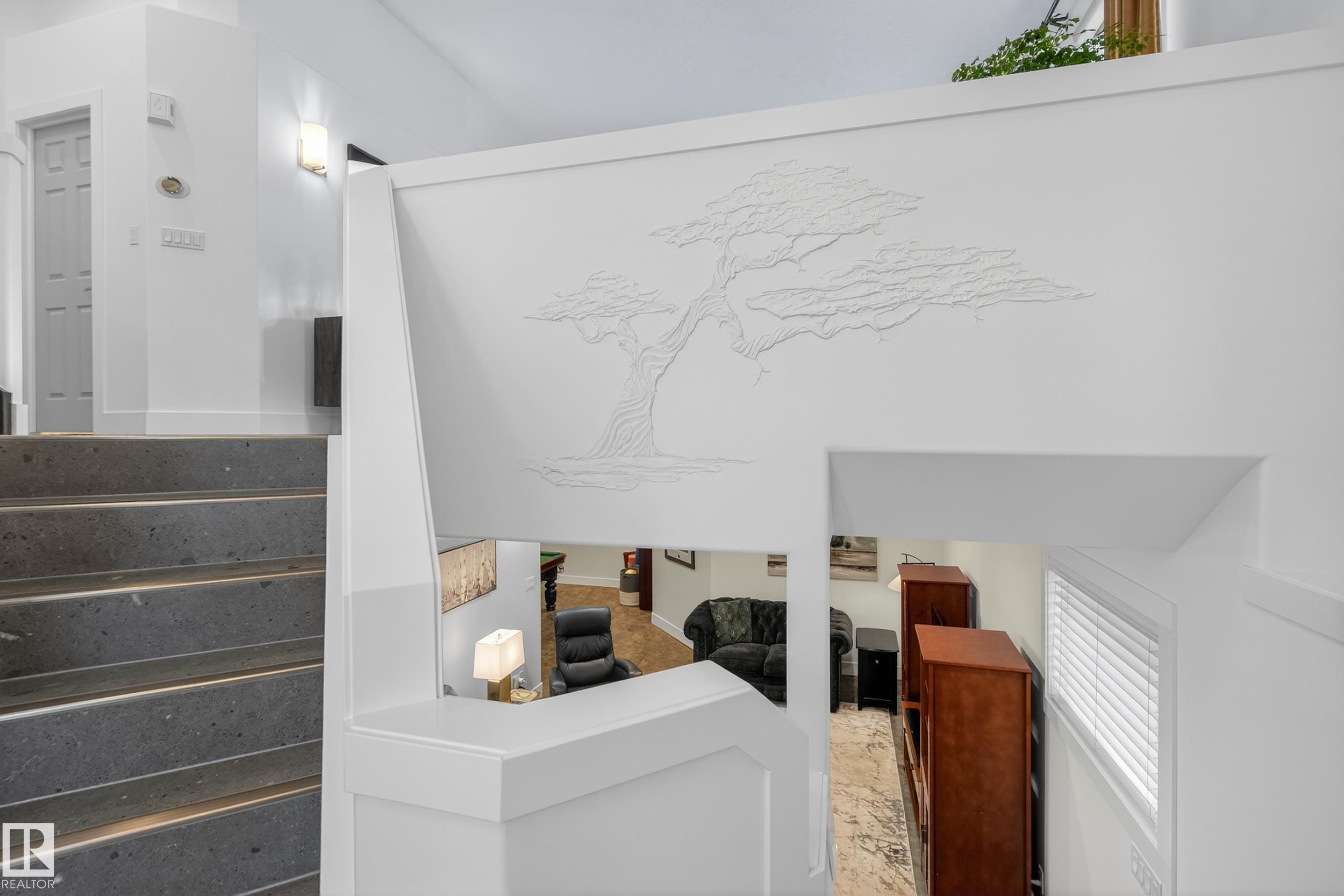 Fully renovated 1901 sqft home in the heart of Heritage Hills, offering a modern layout w/ 4 bedrms & 3 baths. Large windows and open living spaces centre around an award-winning Cucina Bella kitchen (2022) featuring Sollera cabinetry, pull-out storage, quartz countrs, Hanstone backsplash & Fisher & Paykel appliances, w/ porcelain tile flooring on the main floor. The primary bedrm occupies its own private level & includes a custom oversized WI closet & a 5pc ensuite w/ double sinks, deep soaker tub, & shower. The fully finished basement adds a 4th bedrm, bath, & rec room with in-floor heating. Outside, the landscaped backyard features a golf putting green, fruit trees, & gated access to walking trails leading to Heritage Hills School, playgrounds, soccer fields, and outdoor ice rinks, all within walking distance. Major upgrades include roof, gutters, exterior doors, furnace, AC, HWT, updated flooring, renovated baths, interior painting, and gemstone exterior accent lighting?making this home move in ready.