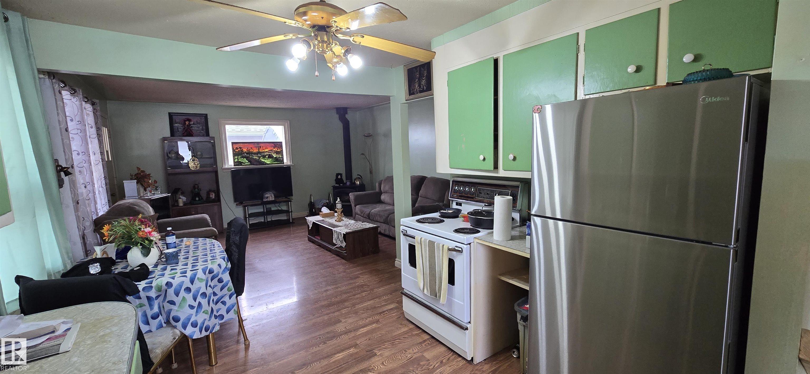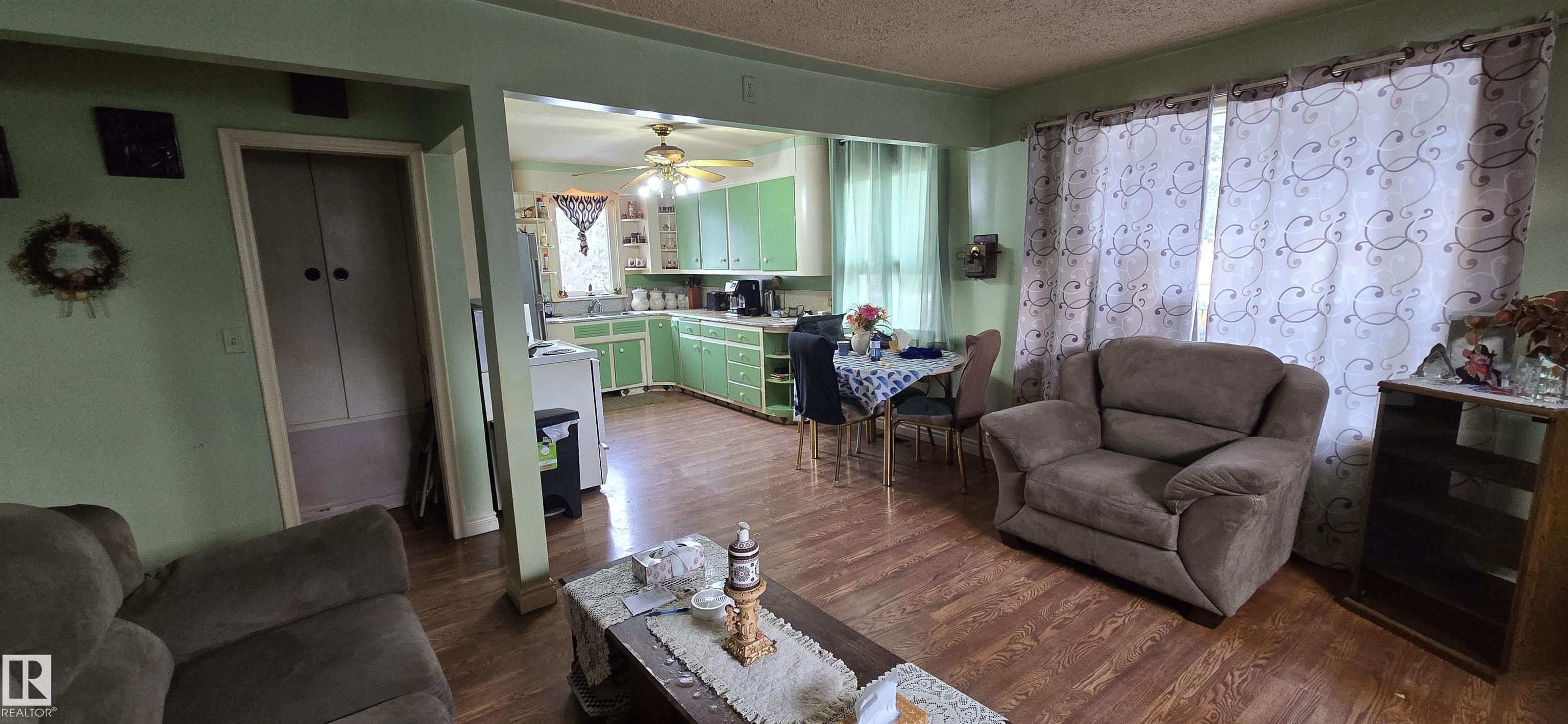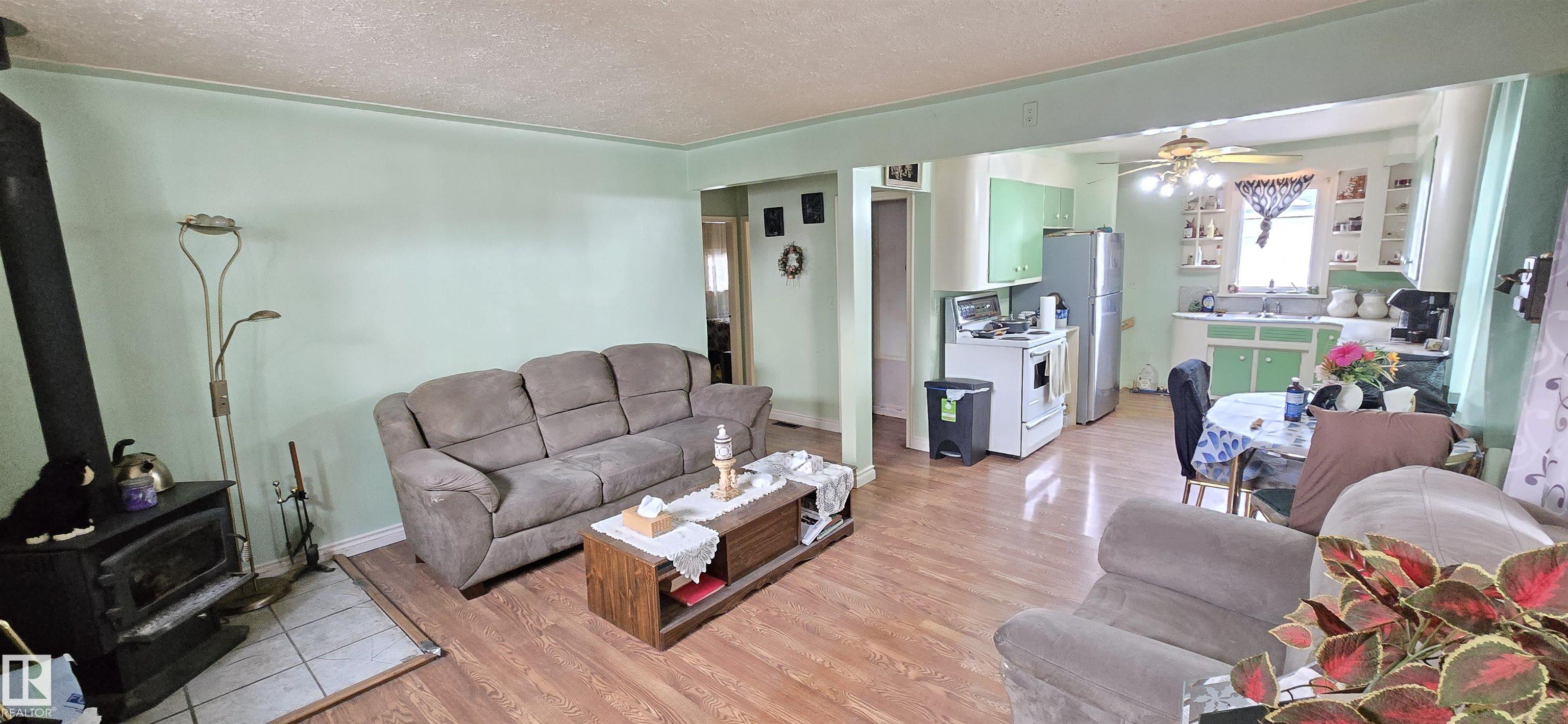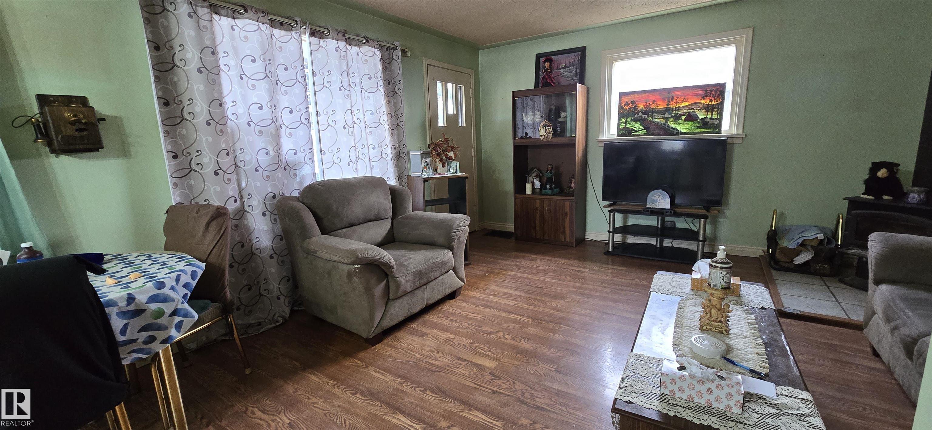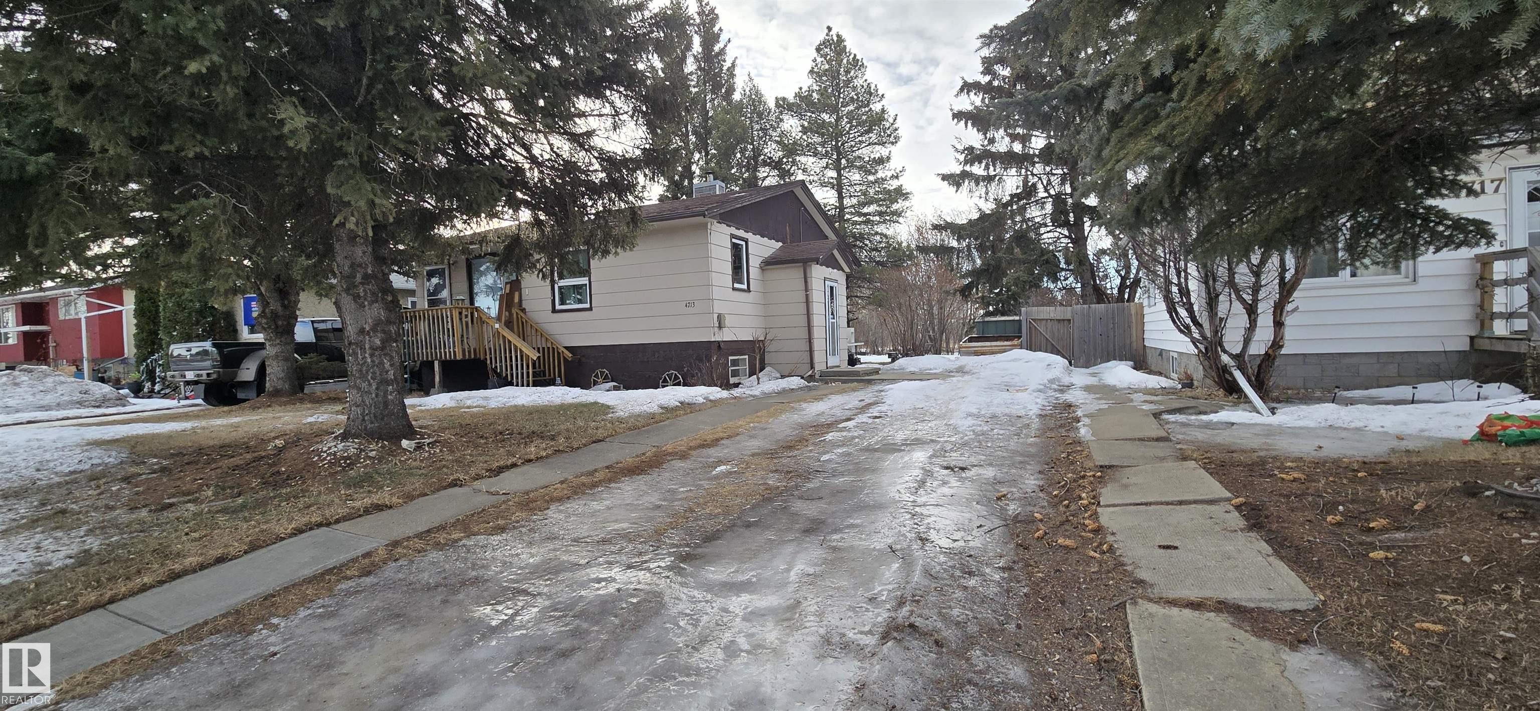 Great entry level or revenue property! Two bedrooms mainfloor with 3 piece bathroom. Open floor plan from the kitchen into living room. Basement features another bedroom/den, laundry and storage room. Mature treed yard with front driveway and back alley access. Walking distance to school, playground and shopping.
