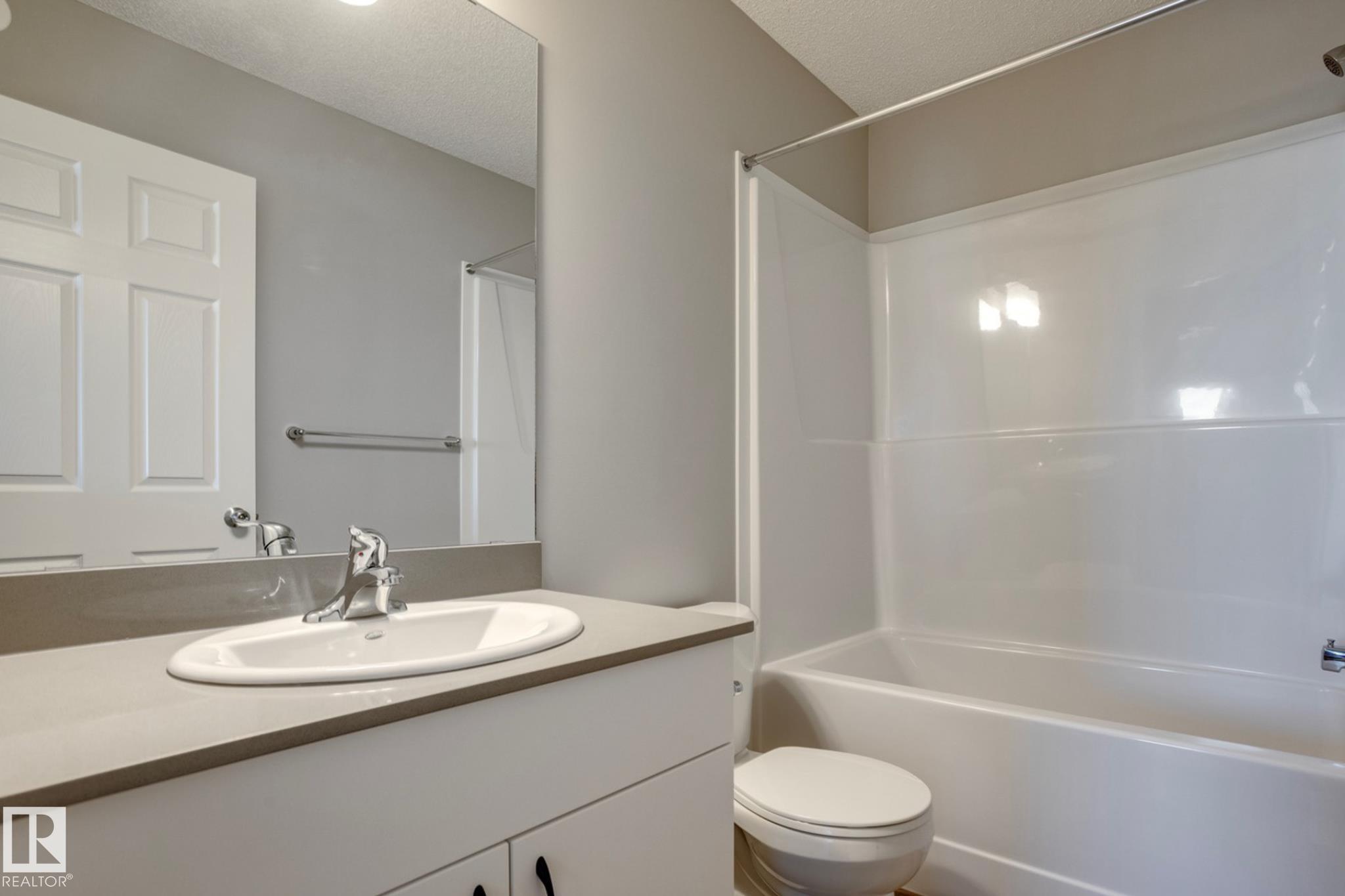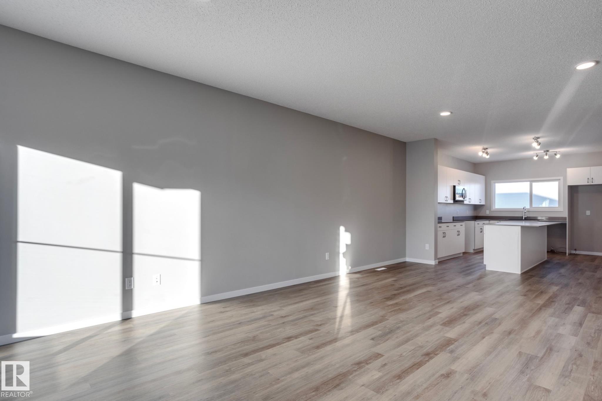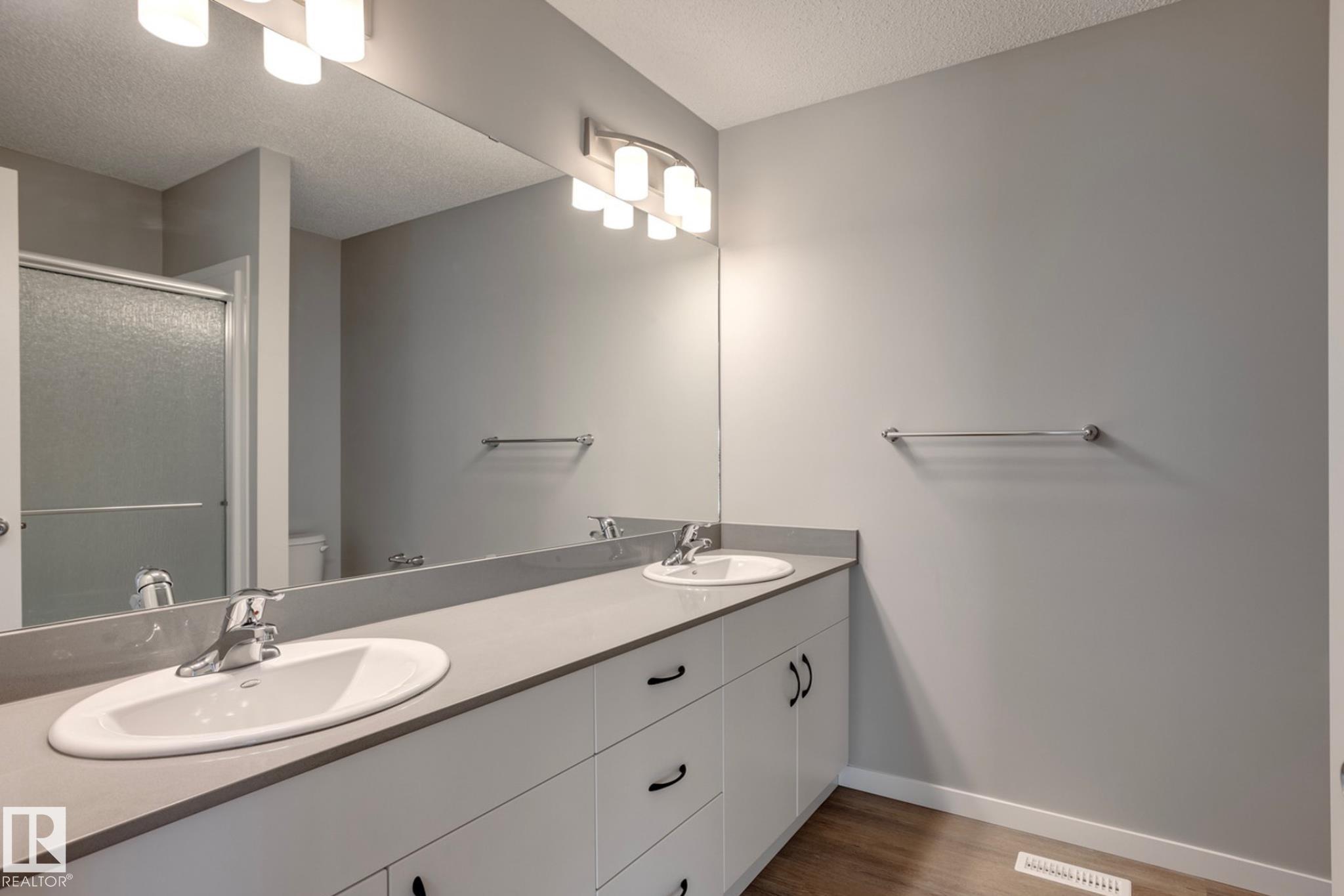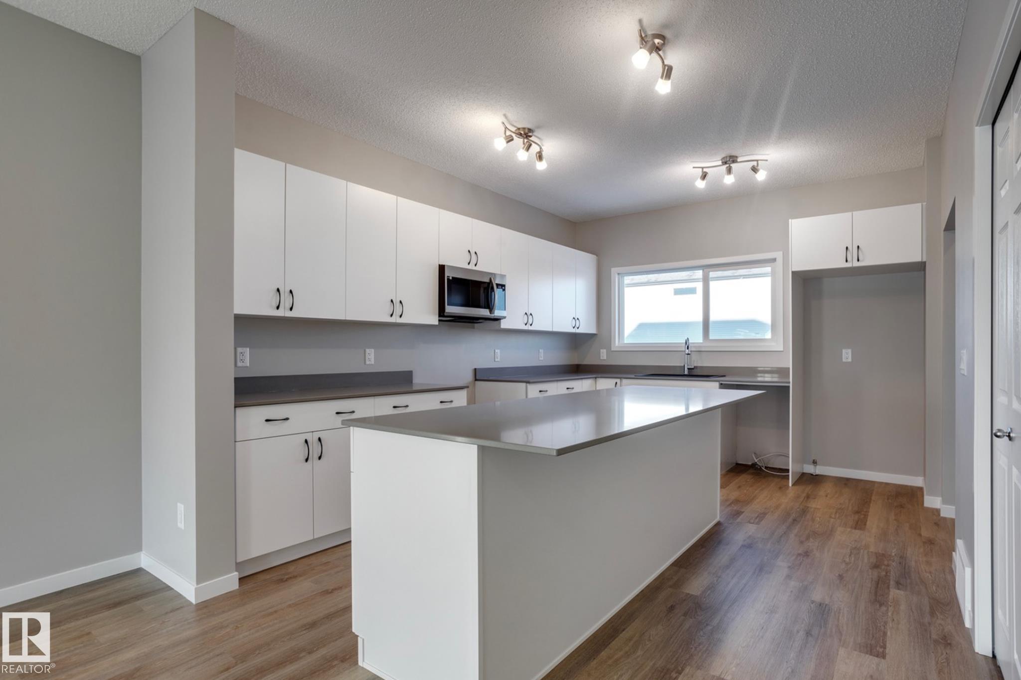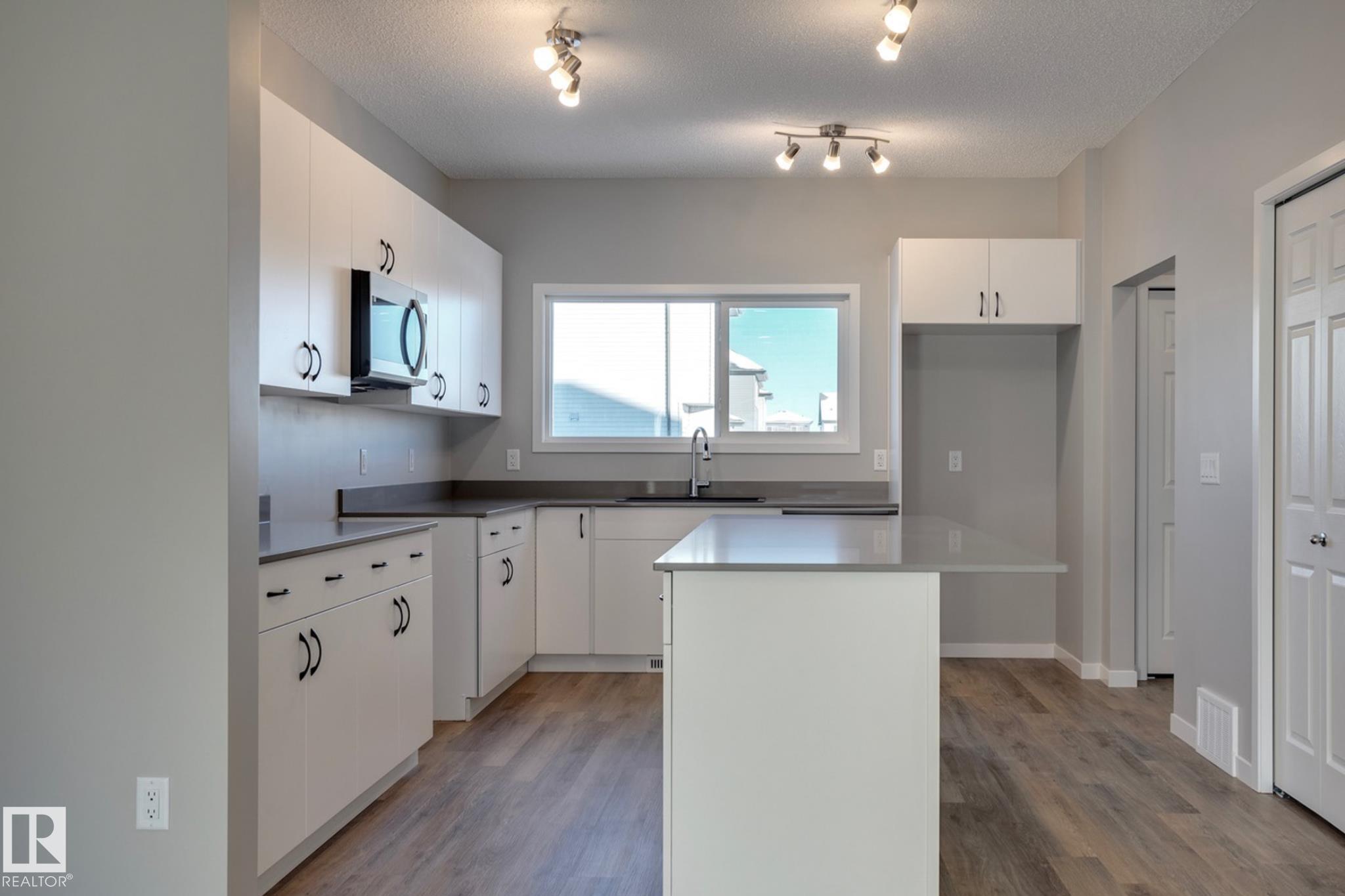 Built by Sterling Homes, this bright laned home in McConachie offers modern comfort near schools, parks, and amenities. Triple-pane windows and 9? ceilings fill the open main floor with light. The kitchen features quartz countertops, island seating, upgraded cabinetry, tile backsplash, soft-close drawers, and a spacious pantry, while a rear dining nook and half bath add function. Upstairs, the primary suite features a walk-in closet and a 3-piece en-suite, as well as two bedrooms, a full bath, laundry facilities, and a loft. Complete with vinyl plank flooring, side entrance, parking pad, and basement rough-ins.