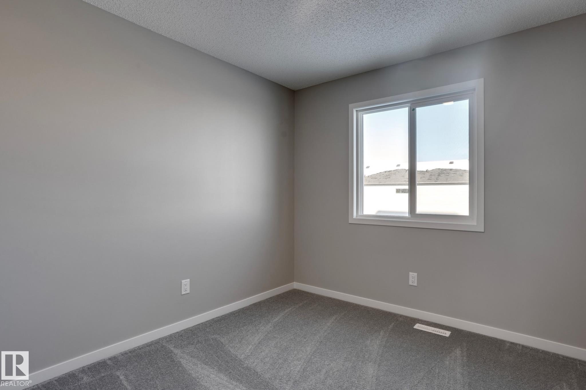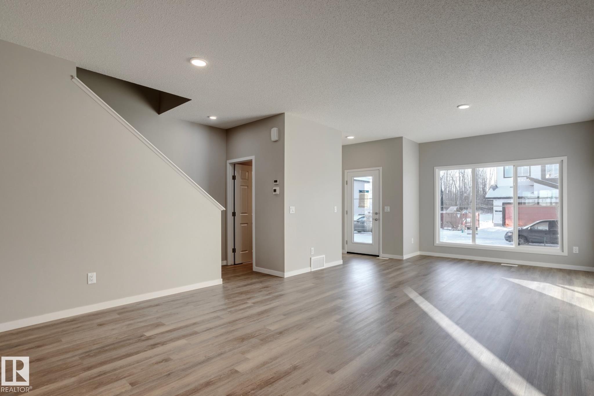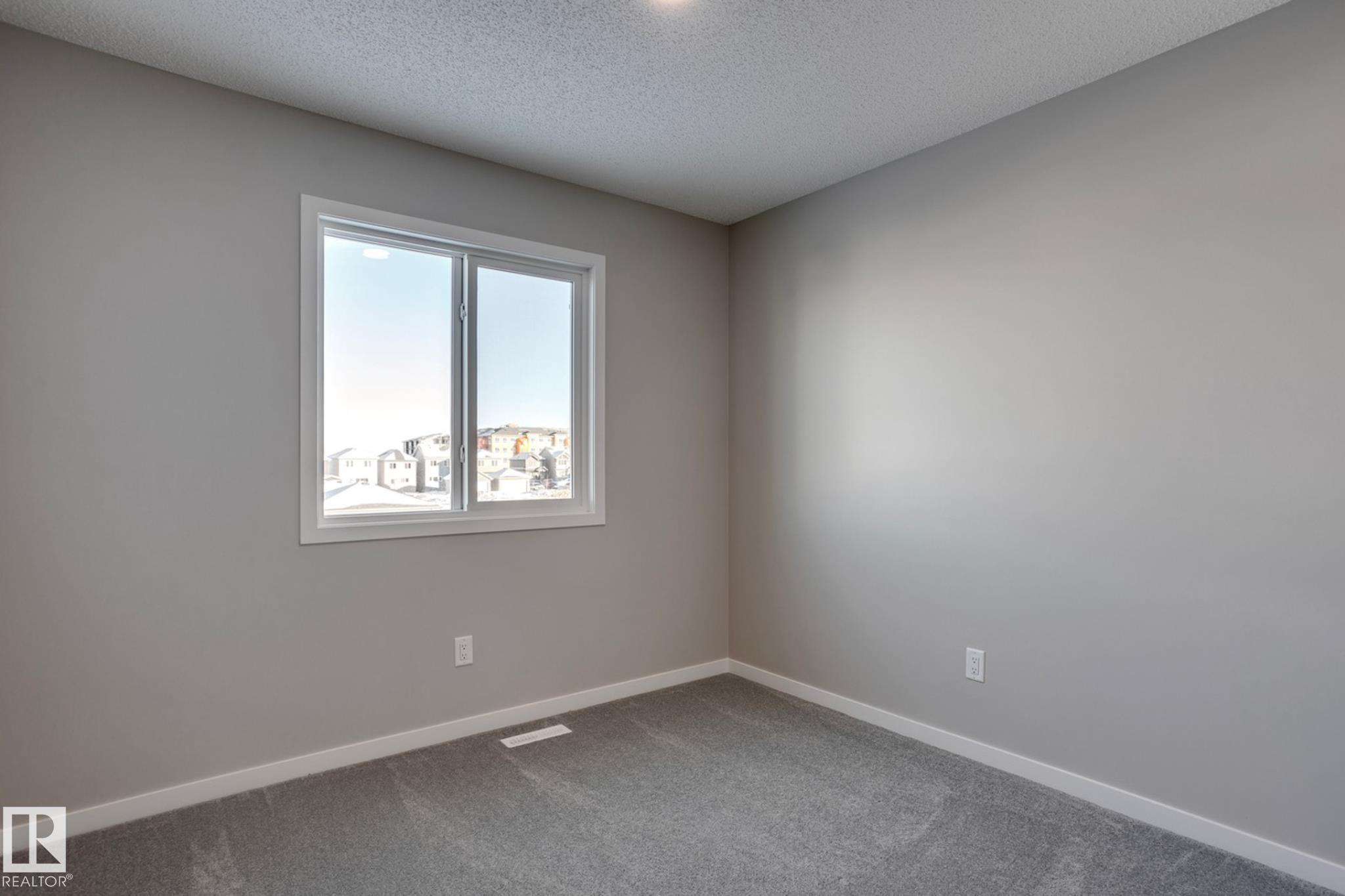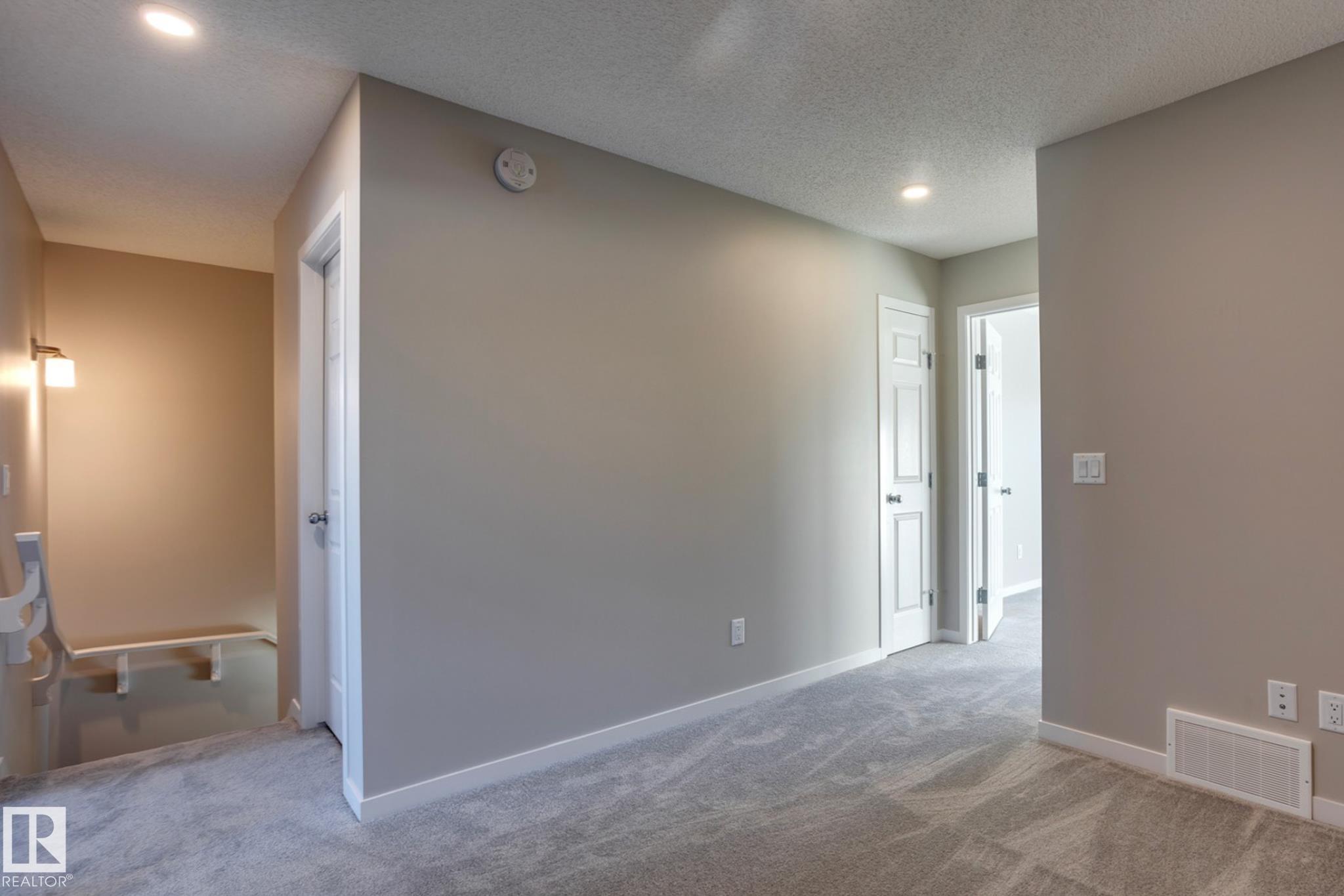 Built by Sterling Homes, this bright laned home in McConachie offers modern comfort near schools, parks, and amenities. Triple-pane windows and 9? ceilings fill the open main floor with light. The kitchen features quartz countertops, island seating, upgraded cabinetry, tile backsplash, soft-close drawers, and a spacious pantry, while a rear dining nook and half bath add function. Upstairs, the primary suite features a walk-in closet and a 3-piece en-suite, as well as two bedrooms, a full bath, laundry facilities, and a loft. Complete with vinyl plank flooring, side entrance, parking pad, and basement rough-ins.
