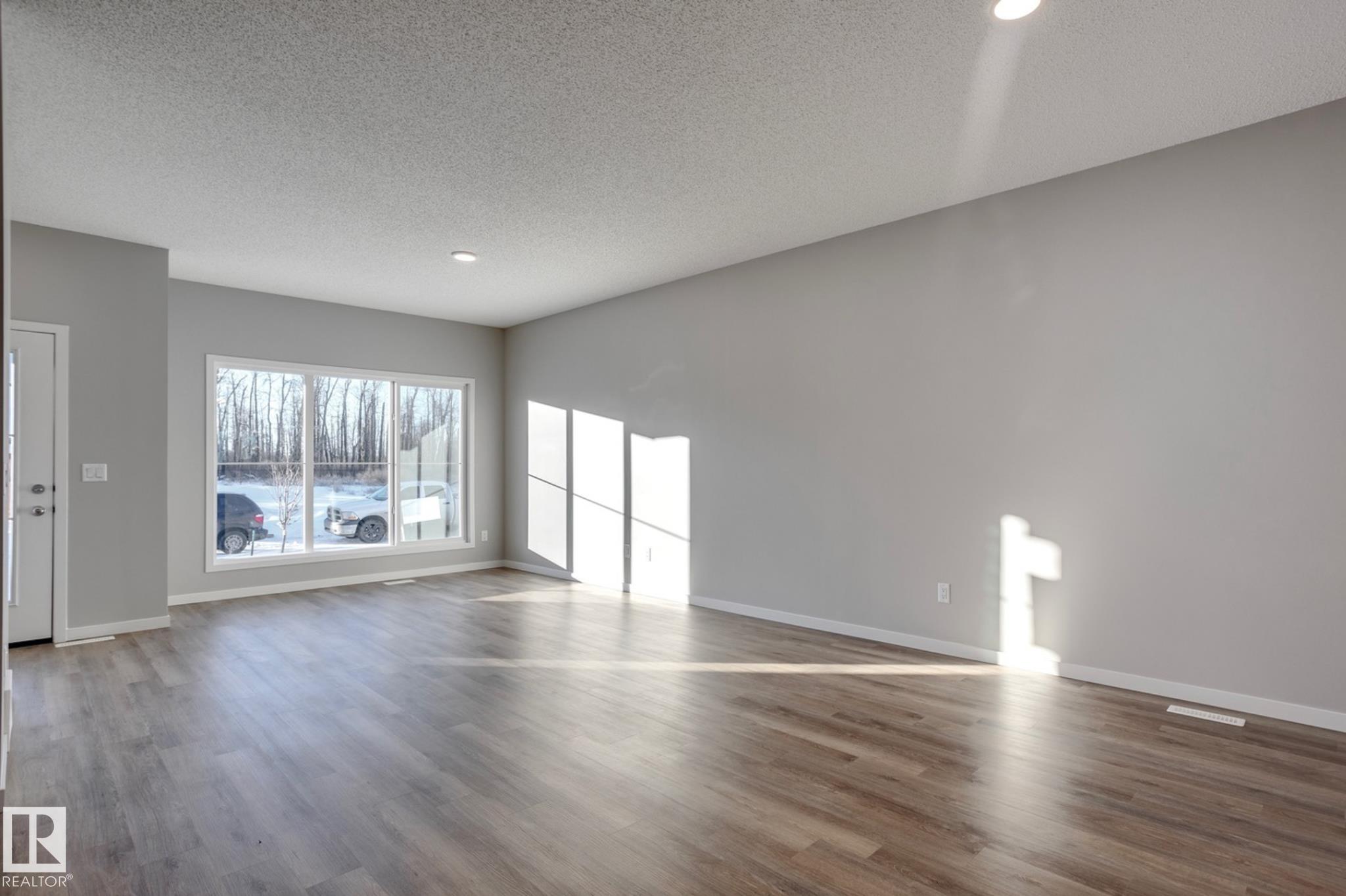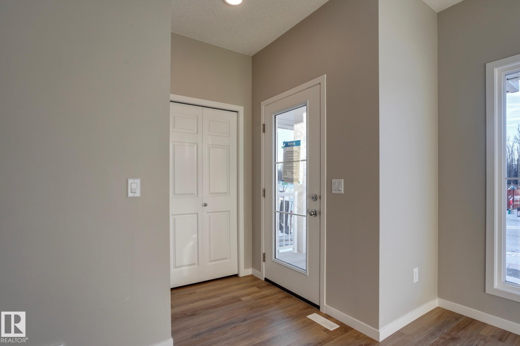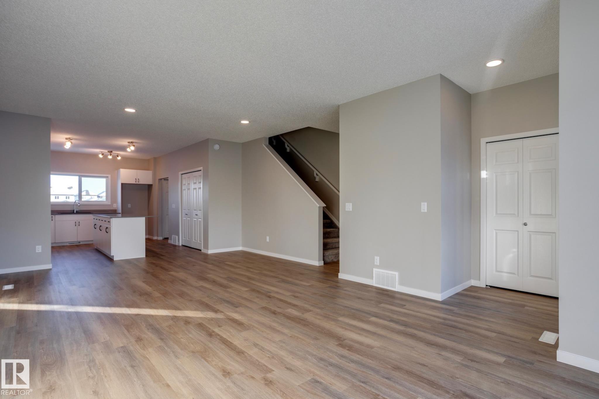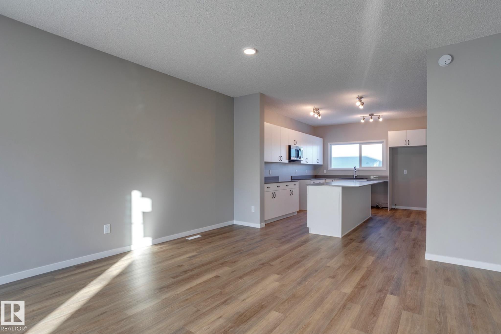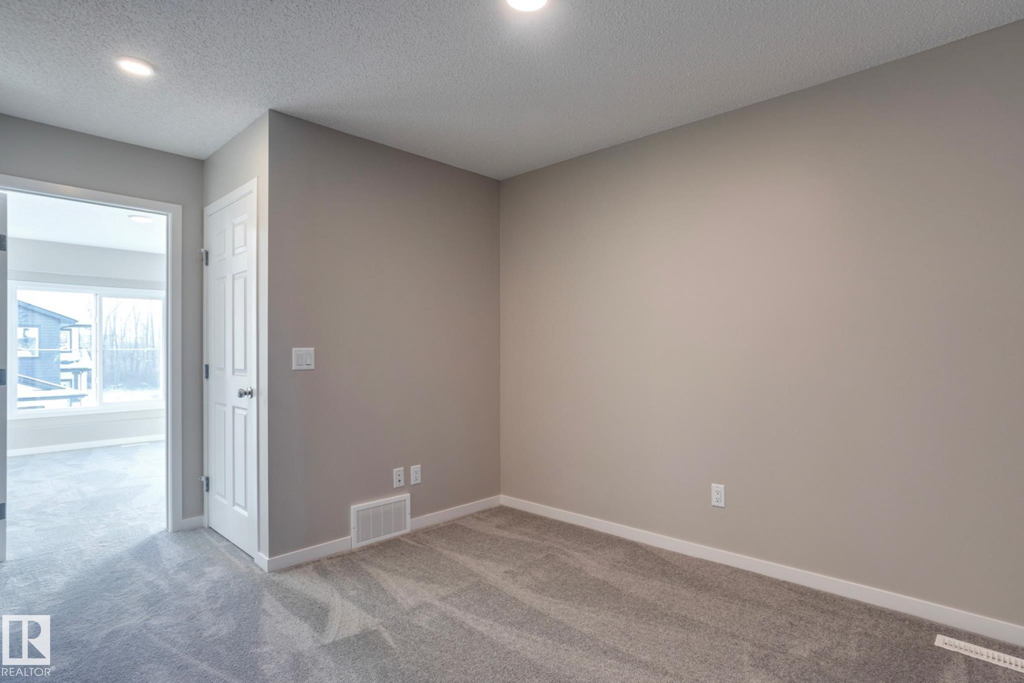 Built by Sterling Homes, this bright laned home in McConachie offers modern comfort near schools, parks, and amenities. Triple-pane windows and 9? ceilings fill the open main floor with light. The kitchen features quartz countertops, island seating, upgraded cabinetry, tile backsplash, soft-close drawers, and a spacious pantry, while a rear dining nook and half bath add function. Upstairs, the primary suite features a walk-in closet and a 3-piece en-suite, as well as two bedrooms, a full bath, laundry facilities, and a loft. Complete with vinyl plank flooring, side entrance, parking pad, and basement rough-ins.