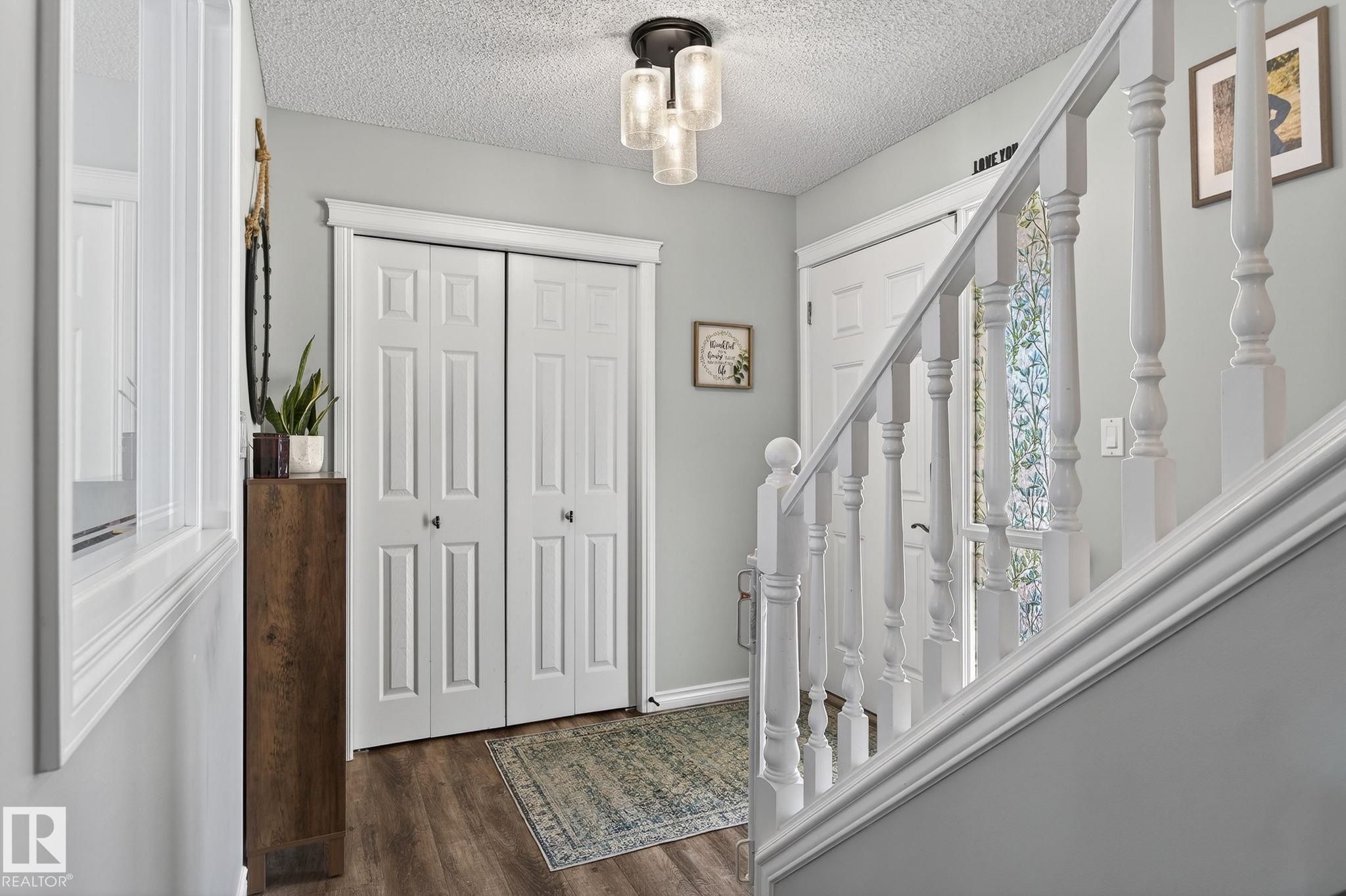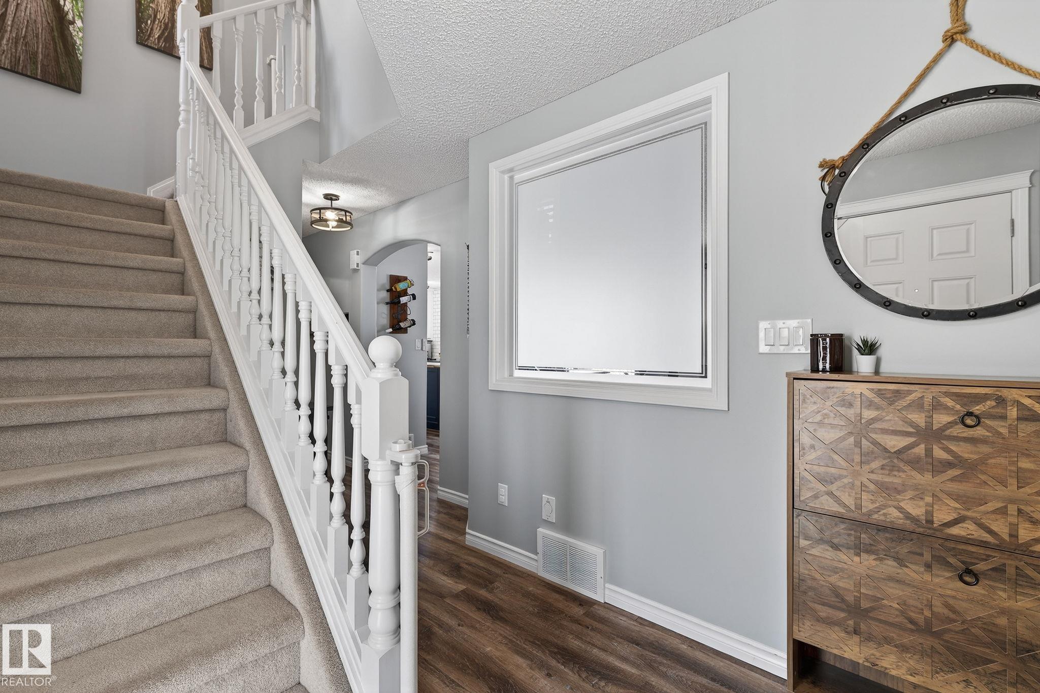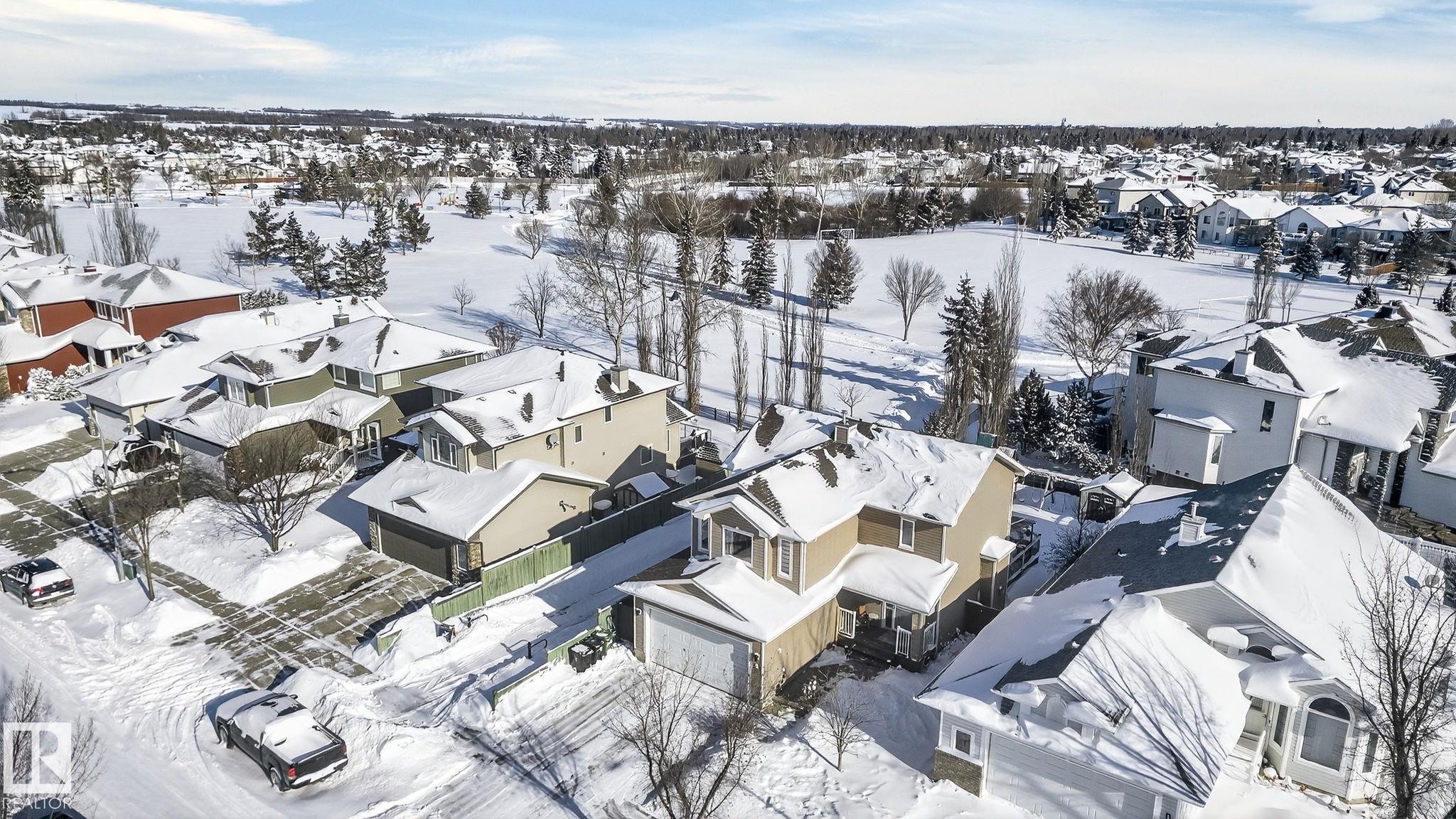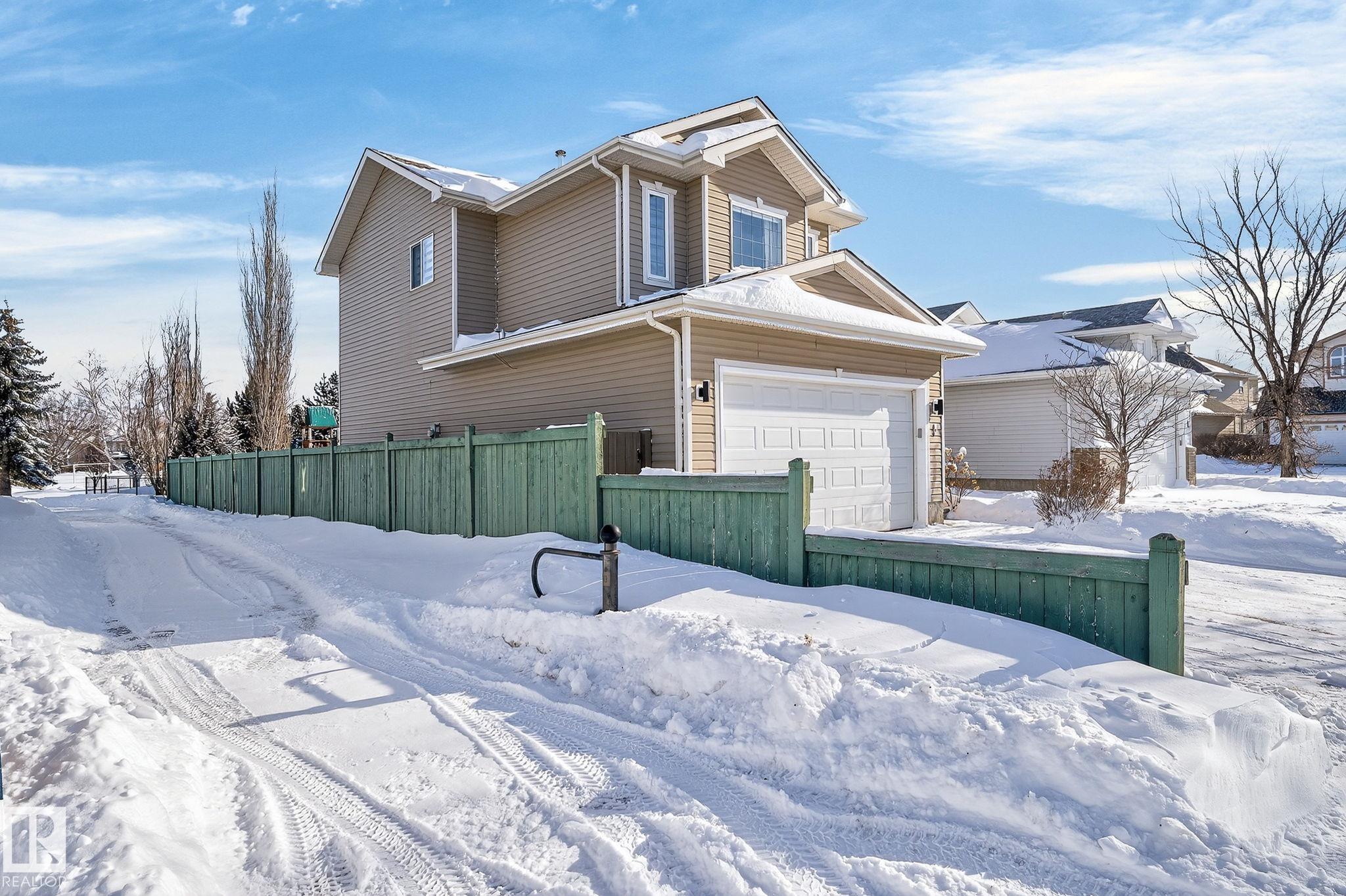 Amazing value in an unbeatable location! Tucked away on a quiet crescent with beautiful views of Pryce Alderson Park, this fully renovated home shines from top to bottom. Recent upgrades include a stunning new kitchen, updated bathrooms, vinyl plank flooring, fresh paint, automated blinds, outdoor LED lighting, mudroom, sleek black stainless appliances and more. The main floor offers a bright open-concept layout perfect for family living, while upstairs features a spacious bonus room with vaulted ceilings, 3 bedrooms including a large primary with spacious ensuite and the comfort of A/C throughout. This prime Fort Saskatchewan location is hard to beat ? walk to schools, trails, and the spray park just across the greenspace. Spend summer evenings relaxing on your deck overlooking the park and enjoying the peaceful surroundings.