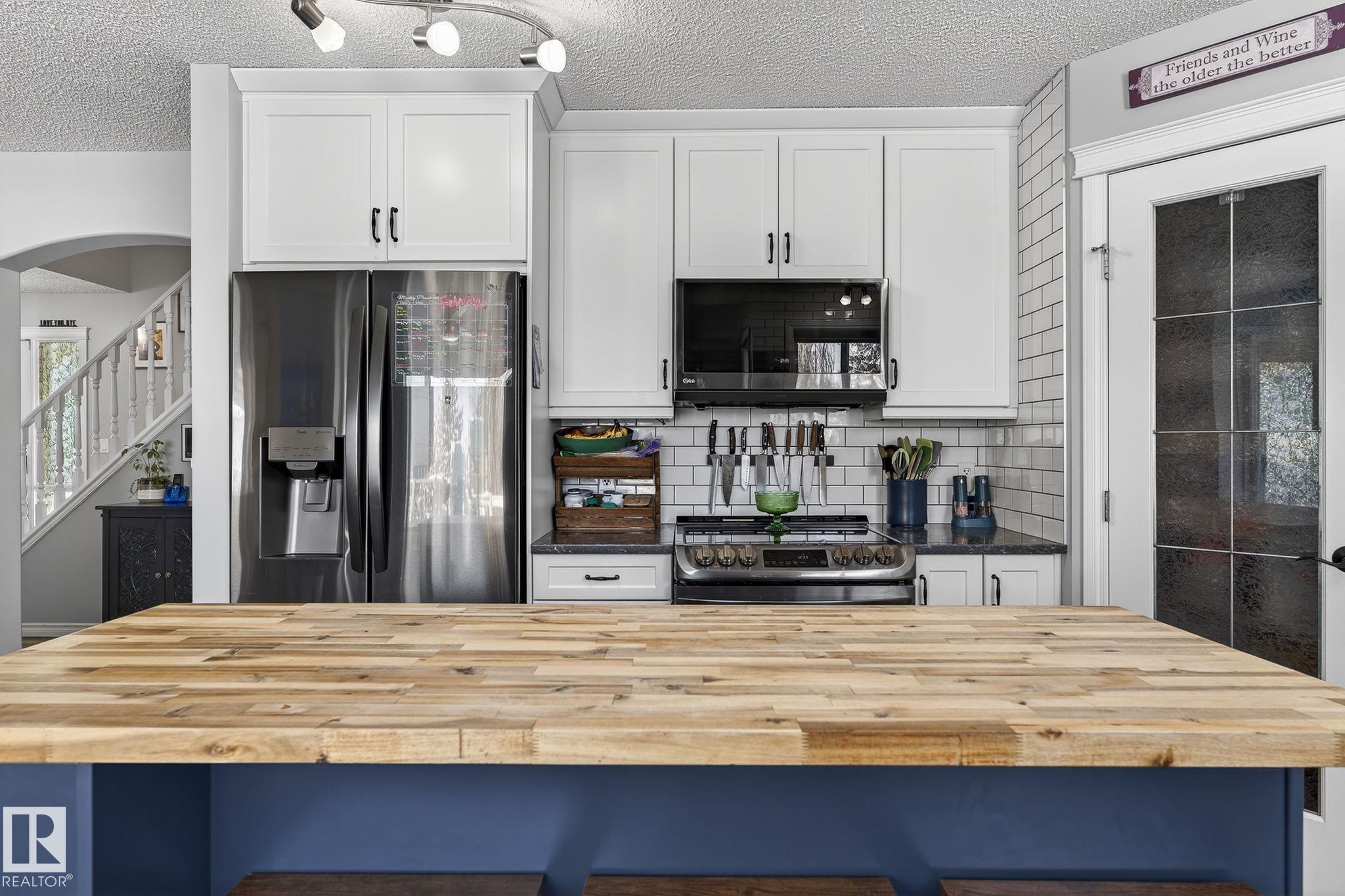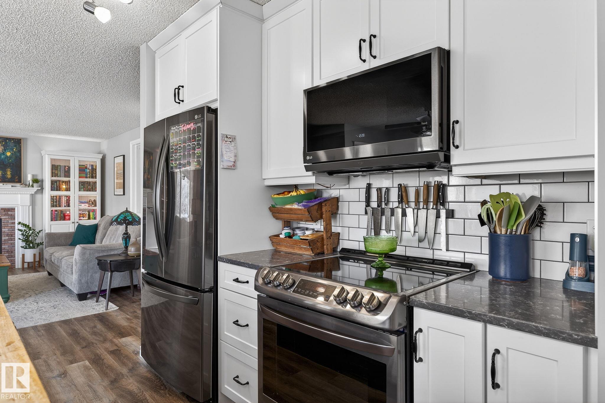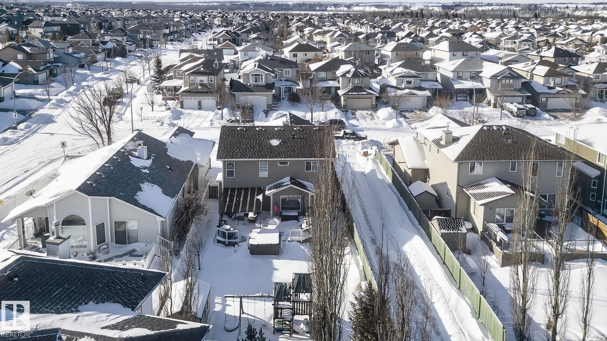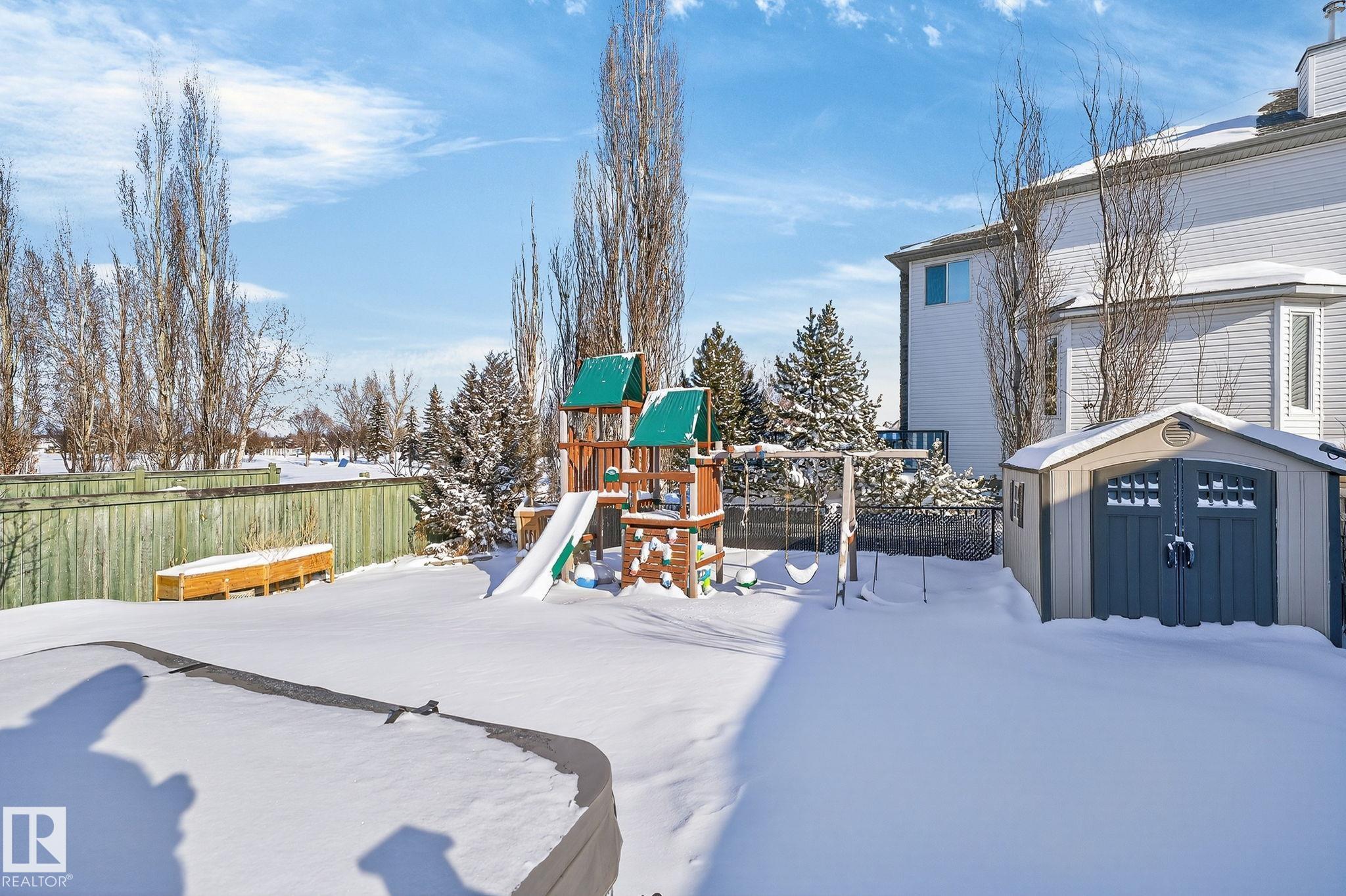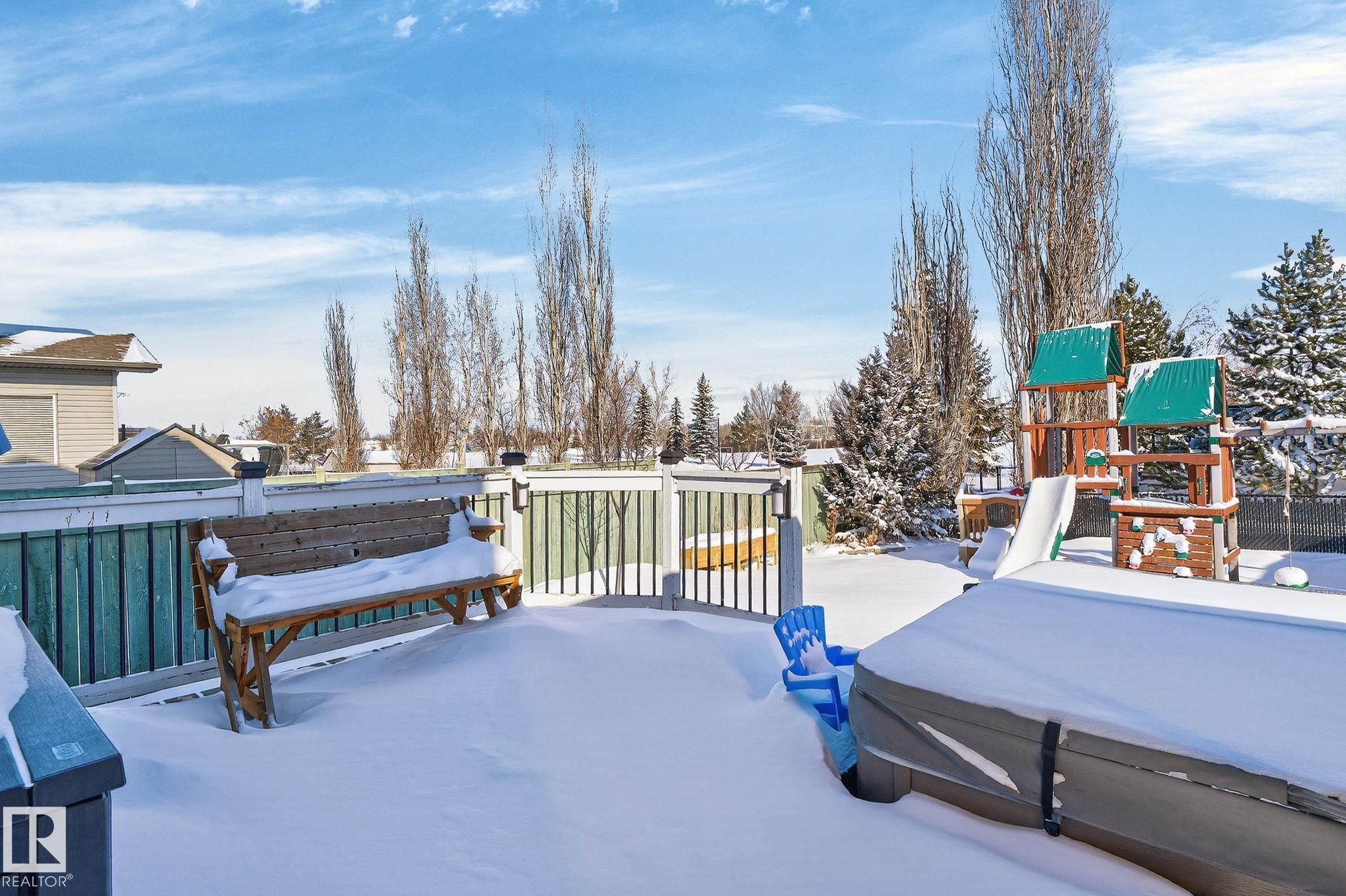 Amazing value in an unbeatable location! Tucked away on a quiet crescent with beautiful views of Pryce Alderson Park, this fully renovated home shines from top to bottom. Recent upgrades include a stunning new kitchen, updated bathrooms, vinyl plank flooring, fresh paint, automated blinds, outdoor LED lighting, mudroom, sleek black stainless appliances and more. The main floor offers a bright open-concept layout perfect for family living, while upstairs features a spacious bonus room with vaulted ceilings, 3 bedrooms including a large primary with spacious ensuite and the comfort of A/C throughout. This prime Fort Saskatchewan location is hard to beat ? walk to schools, trails, and the spray park just across the greenspace. Spend summer evenings relaxing on your deck overlooking the park and enjoying the peaceful surroundings.