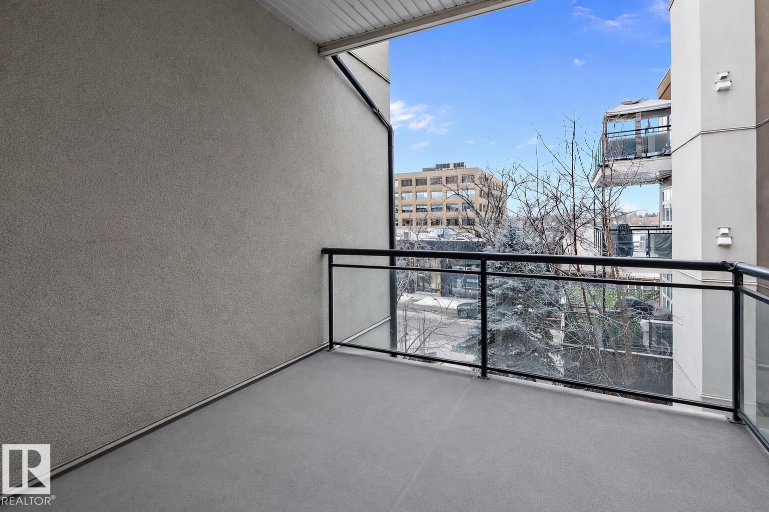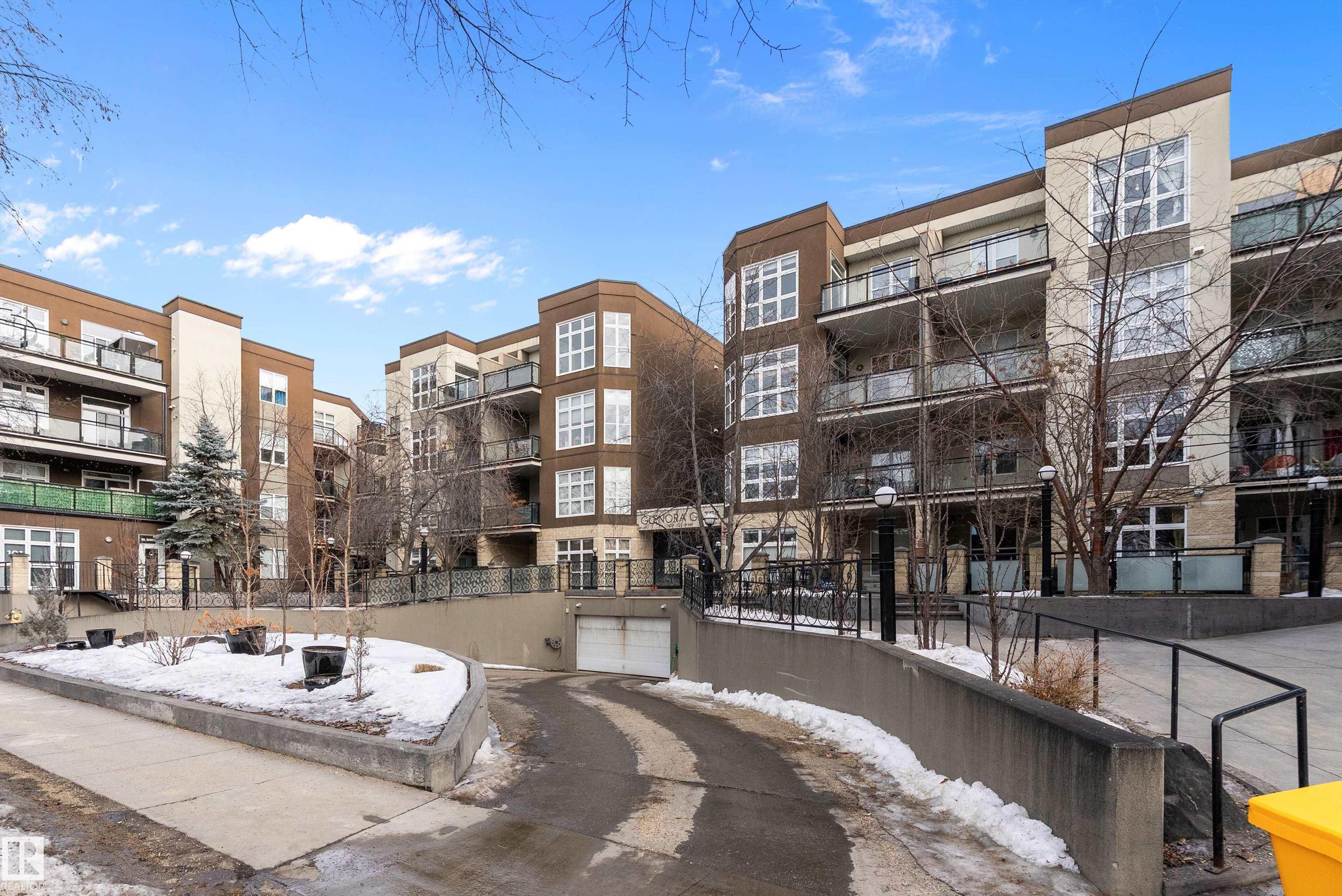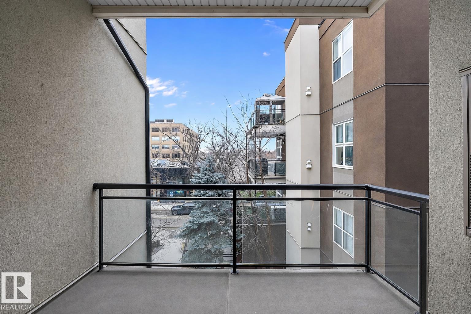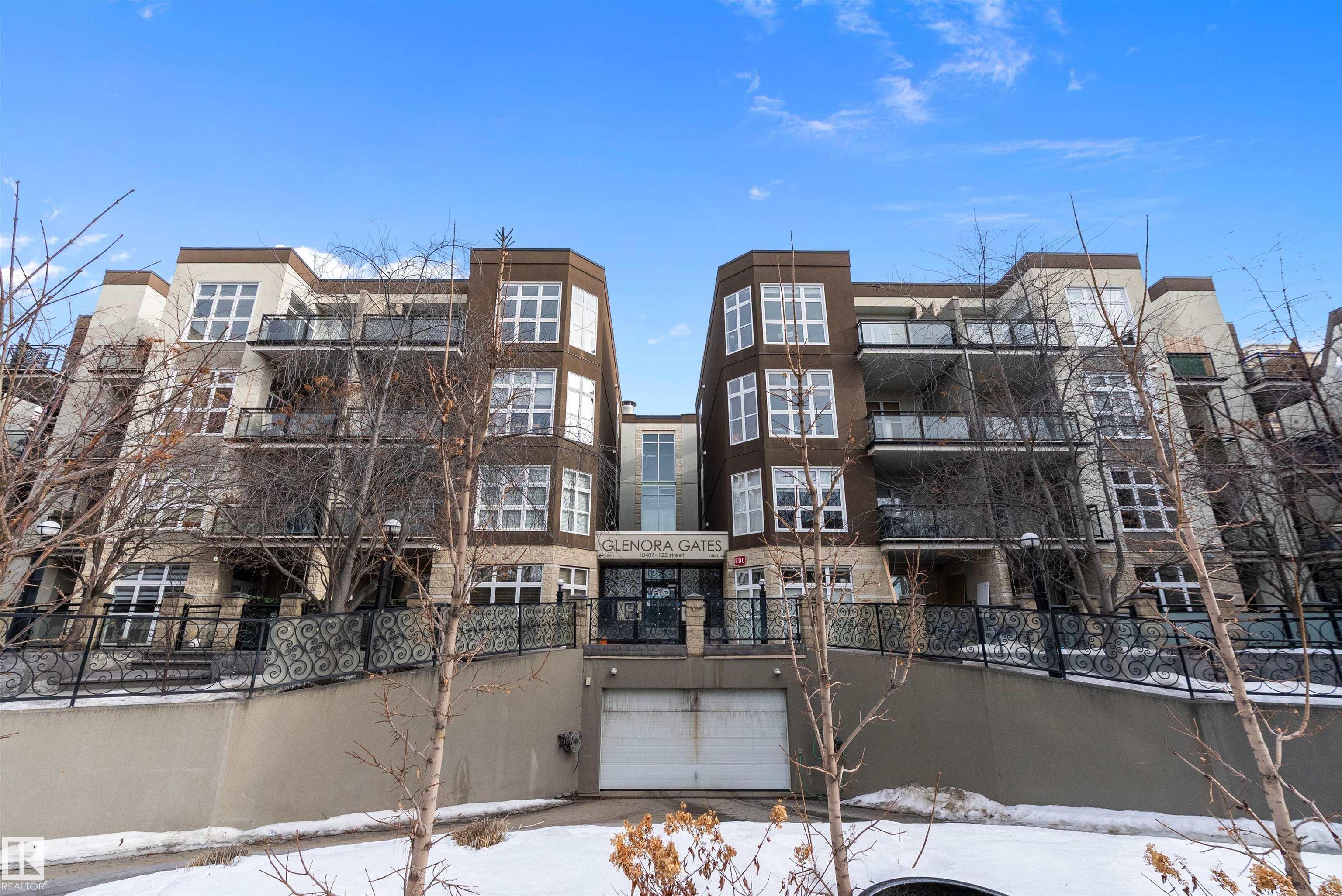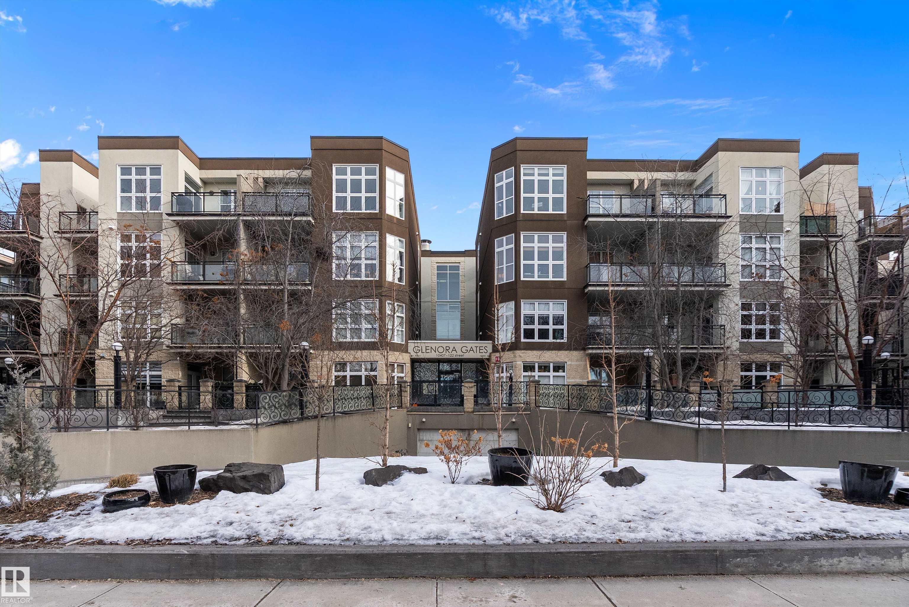 Welcome to Glenora Gates ? where urban convenience meets Westmount charm. This trendy one-bedroom condo showcases soaring ceilings and large windows that create a bright, airy atmosphere. The thoughtfully designed layout feels spacious and comfortable, highlighted by stylish finishes, modern lighting, and contemporary design touches that give the home an on-trend feel. The kitchen offers ample cabinetry and prep space. The inviting living area opens to your private covered balcony ? perfect for morning coffee or evening unwinding. Enjoy the convenience of in-suite laundry with a full-sized stacked washer and dryer, plus heated underground parking with a dedicated storage unit, secure building access, and visitor parking. An unbeatable central location just minutes to downtown, NAIT, MacEwan, the Brewery District, 124 Street boutiques and dining, parks, transit, and the river valley makes this an ideal home for students, professionals, or investors seeking stylish, low-maintenance living.