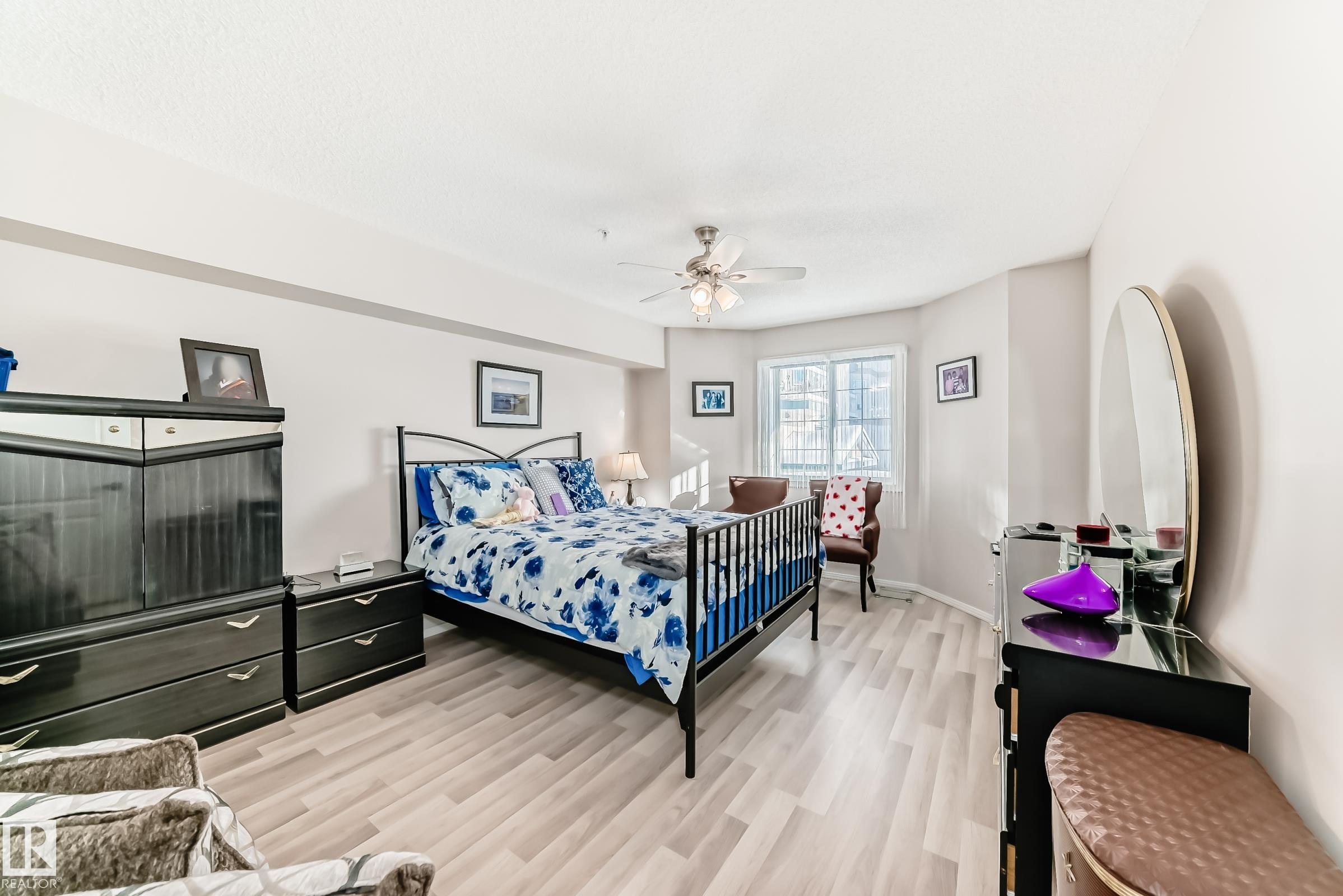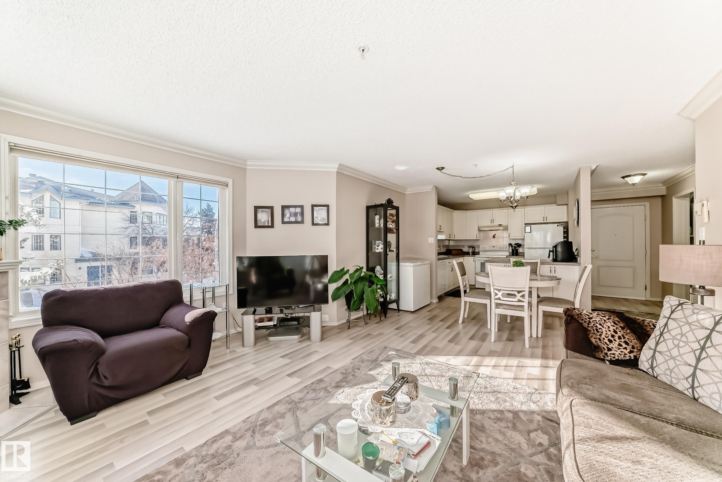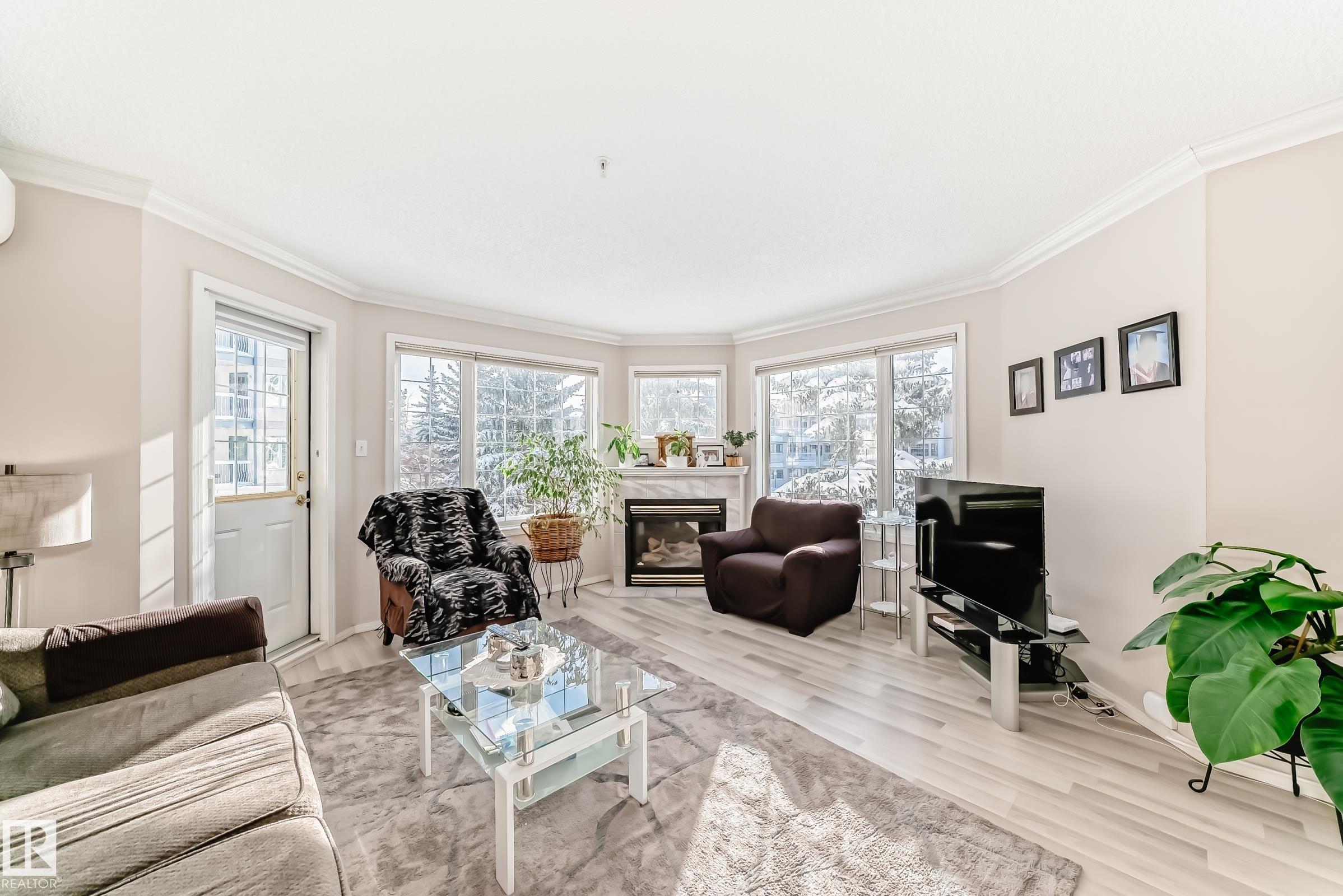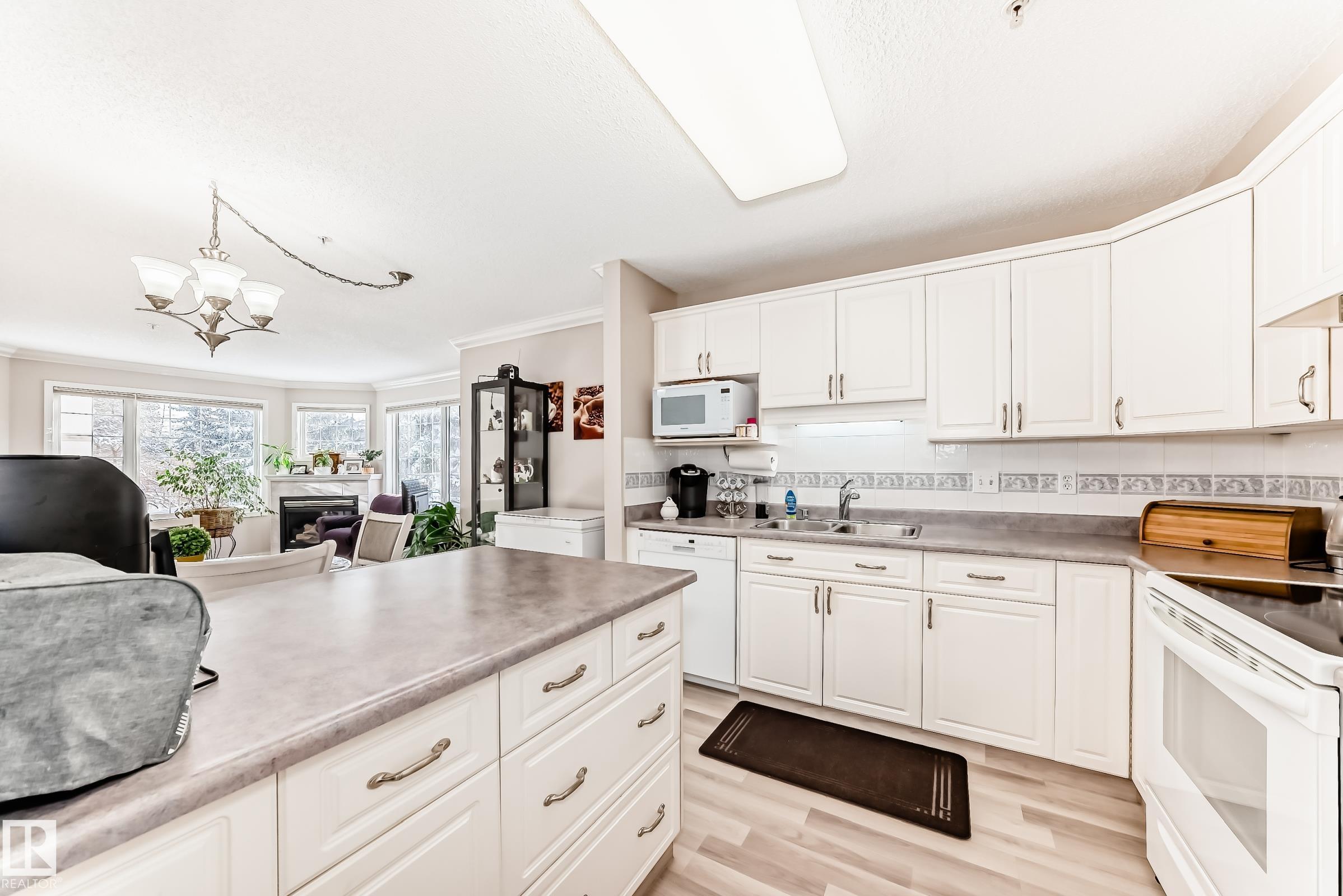 Welcome to this beautifully upgraded 2-bedroom 2nd floor CORNER condo offering 979 sq. ft. of bright, inviting living space. Enjoy newer laminate flooring throughout, including the kitchen featuring abundant cabinet & counter space. The open-concept layout flows seamlessly from the kitchen into the dining area & spacious living room, highlighted by a full wall of windows & a cozy corner gas fireplace. The east facing balcony has a view of the courtyard! The primary bedroom easily accommodates a king-sized suite & includes a walk-through closet to a private ensuite. There is a second bedroom & 4 pc bathroom plus lots of storage space. Additional conveniences include air conditioning, in-suite laundry, newer appliances & heated underground parking with storage. Designed for 55+ living, this well-managed building fosters a true sense of community with social rooms, exercise room & guest suite. There is also a car wash & lots of visitor parking. Located close to WEM, all amenities & public transportation!