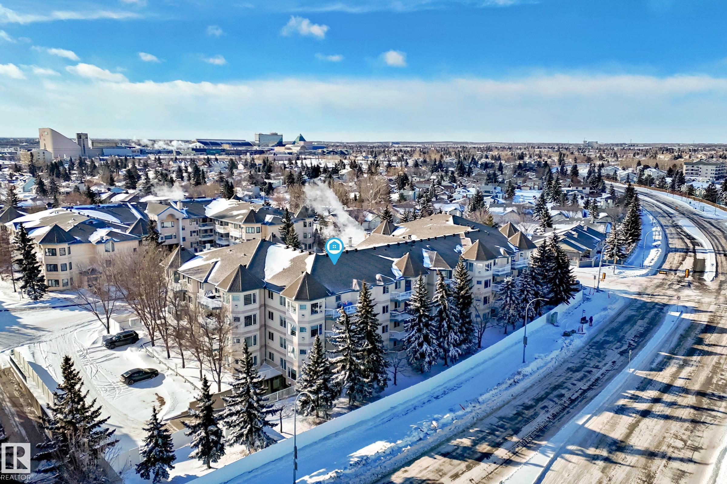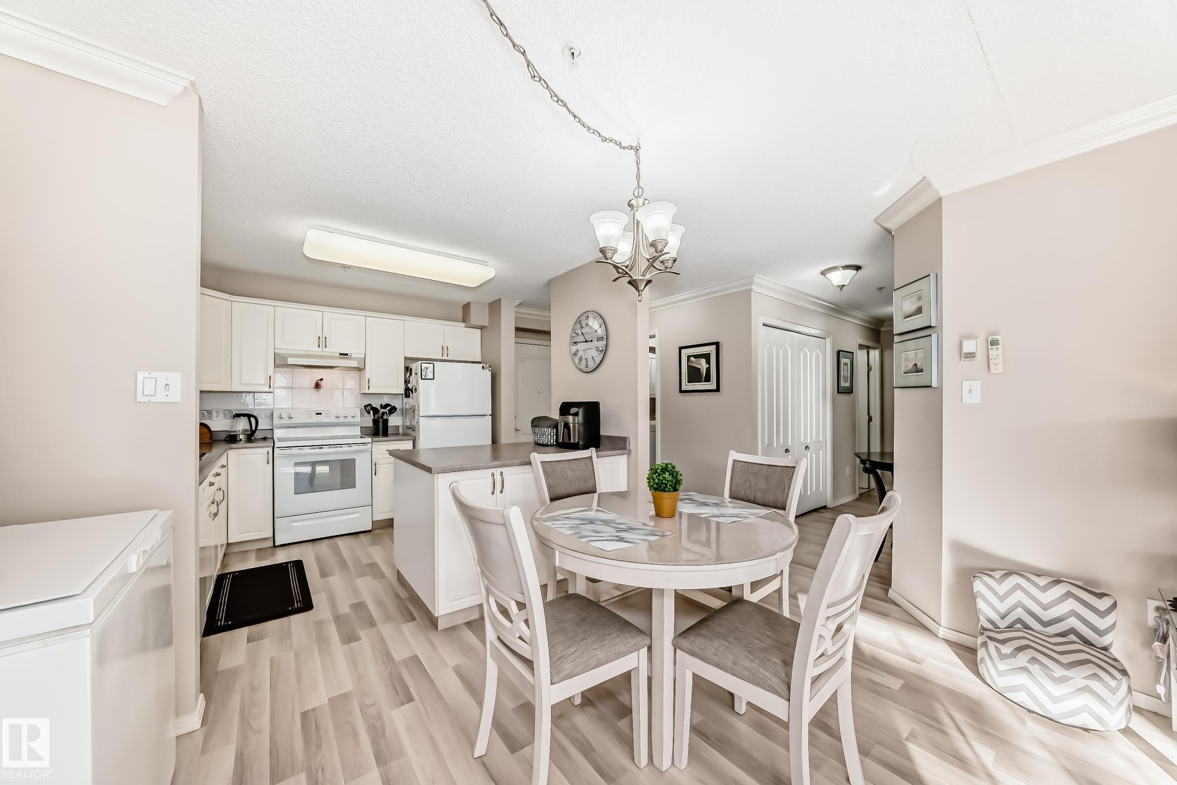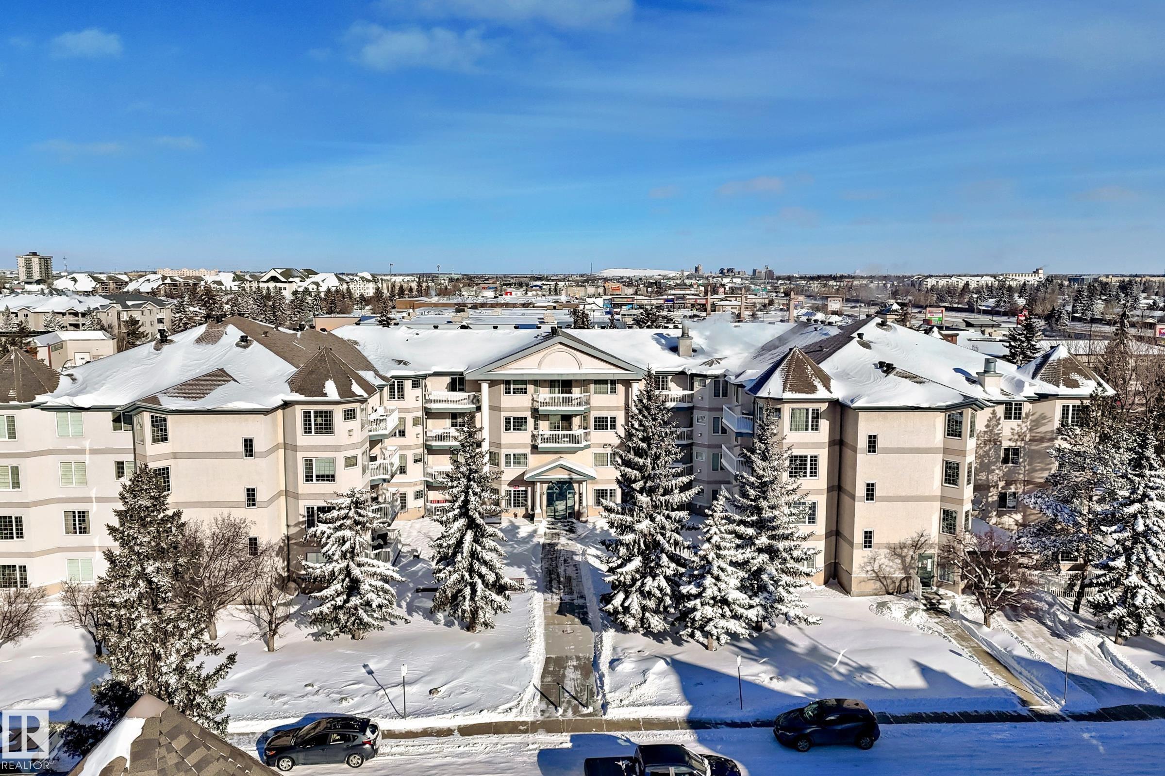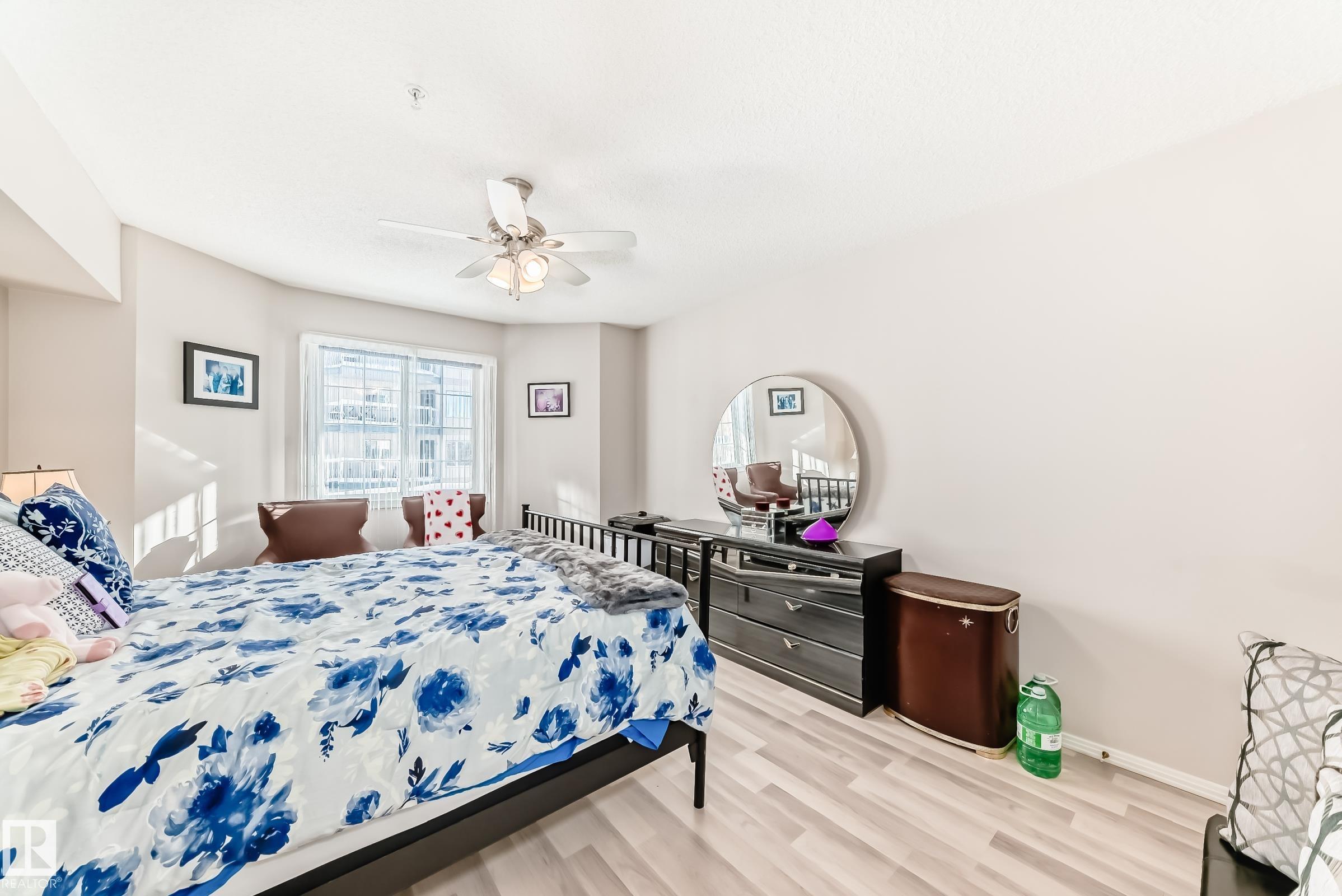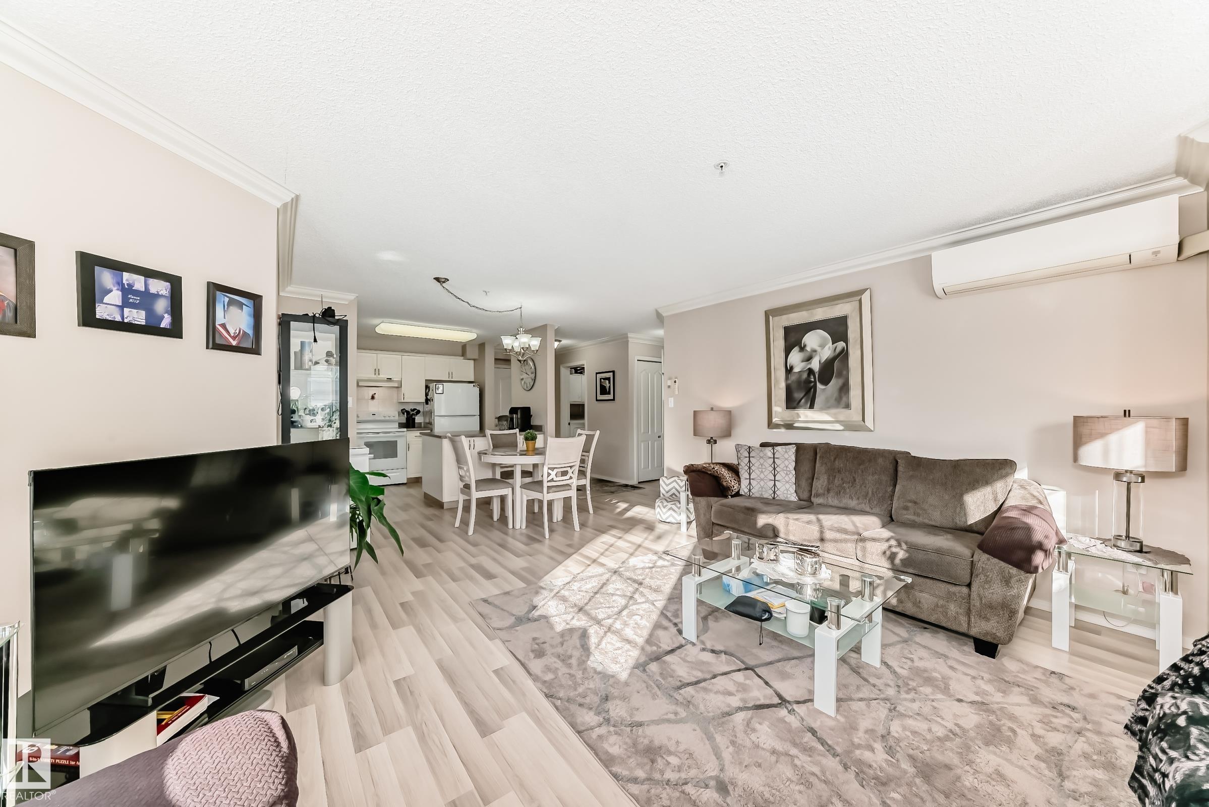 Welcome to this beautifully upgraded 2-bedroom 2nd floor CORNER condo offering 979 sq. ft. of bright, inviting living space. Enjoy newer laminate flooring throughout, including the kitchen featuring abundant cabinet & counter space. The open-concept layout flows seamlessly from the kitchen into the dining area & spacious living room, highlighted by a full wall of windows & a cozy corner gas fireplace. The east facing balcony has a view of the courtyard! The primary bedroom easily accommodates a king-sized suite & includes a walk-through closet to a private ensuite. There is a second bedroom & 4 pc bathroom plus lots of storage space. Additional conveniences include air conditioning, in-suite laundry, newer appliances & heated underground parking with storage. Designed for 55+ living, this well-managed building fosters a true sense of community with social rooms, exercise room & guest suite. There is also a car wash & lots of visitor parking. Located close to WEM, all amenities & public transportation!