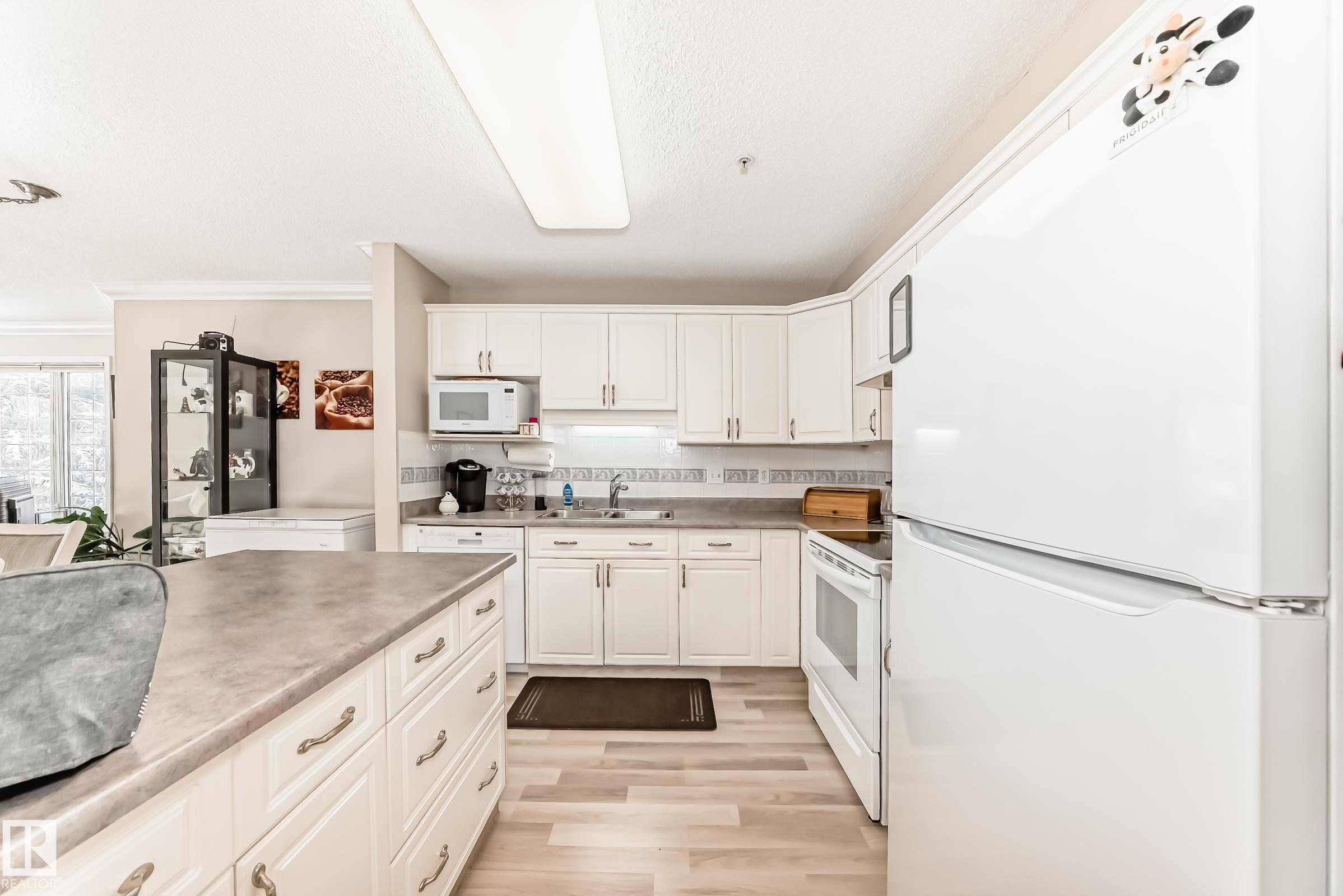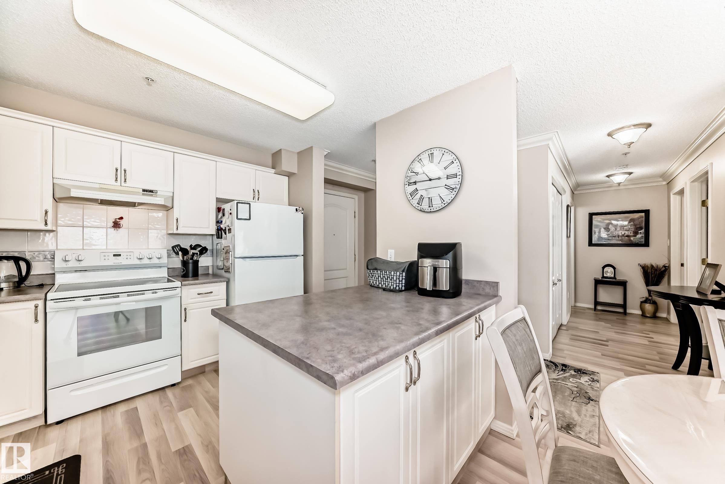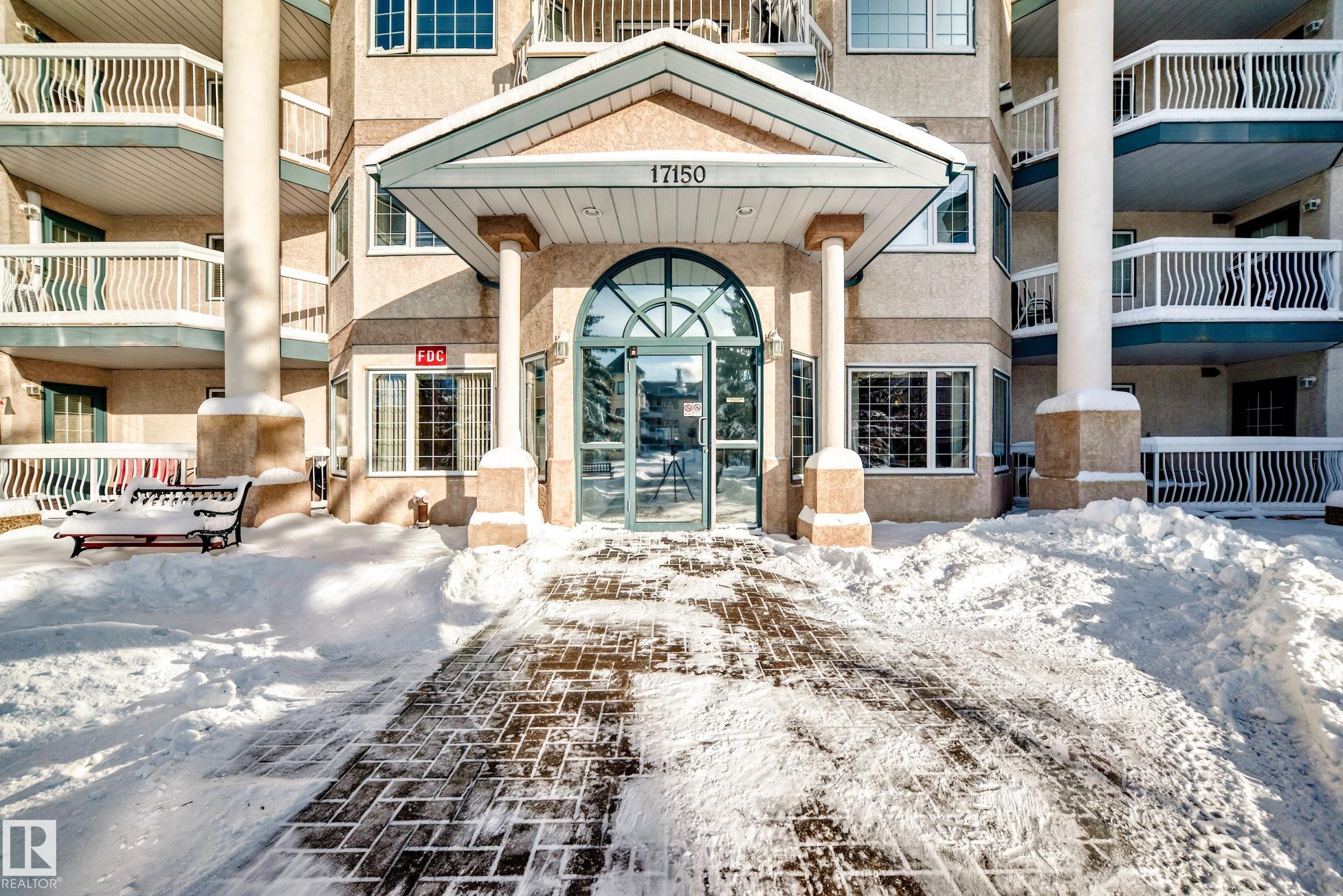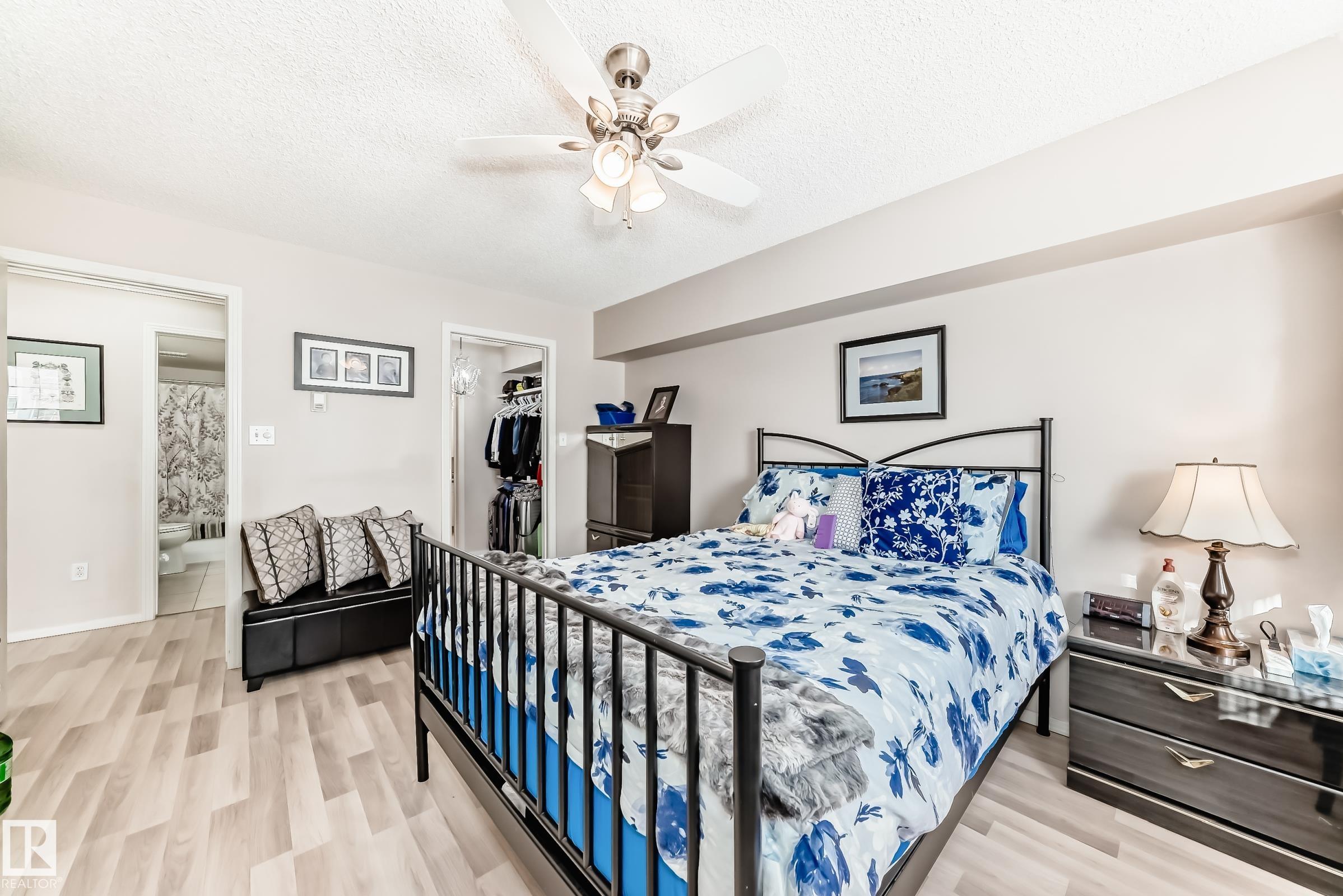 Welcome to this beautifully upgraded 2-bedroom 2nd floor CORNER condo offering 979 sq. ft. of bright, inviting living space. Enjoy newer laminate flooring throughout, including the kitchen featuring abundant cabinet & counter space. The open-concept layout flows seamlessly from the kitchen into the dining area & spacious living room, highlighted by a full wall of windows & a cozy corner gas fireplace. The east facing balcony has a view of the courtyard! The primary bedroom easily accommodates a king-sized suite & includes a walk-through closet to a private ensuite. There is a second bedroom & 4 pc bathroom plus lots of storage space. Additional conveniences include air conditioning, in-suite laundry, newer appliances & heated underground parking with storage. Designed for 55+ living, this well-managed building fosters a true sense of community with social rooms, exercise room & guest suite. There is also a car wash & lots of visitor parking. Located close to WEM, all amenities & public transportation!