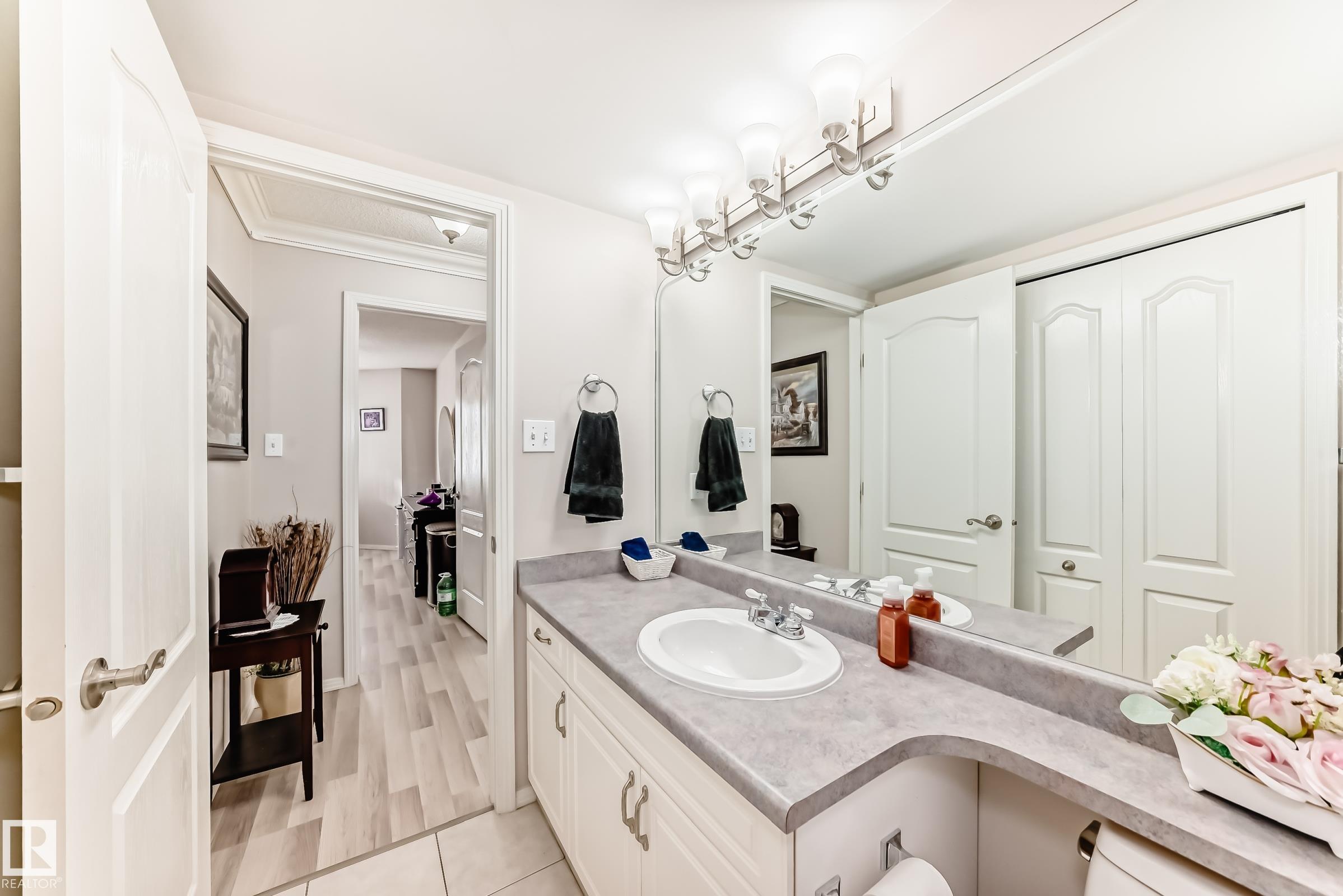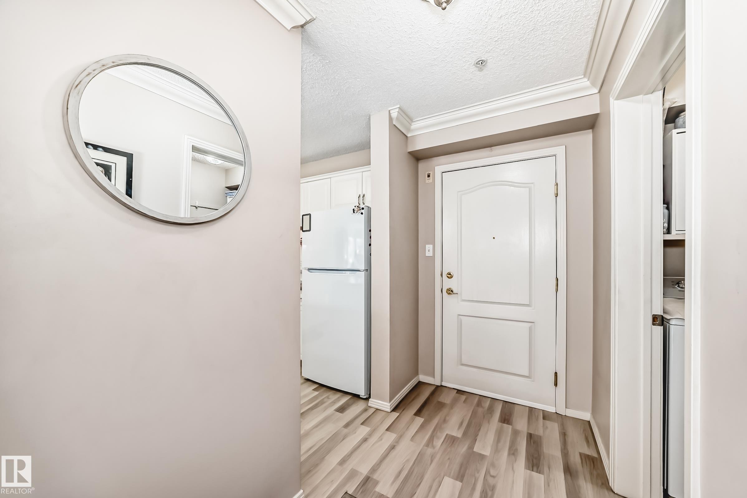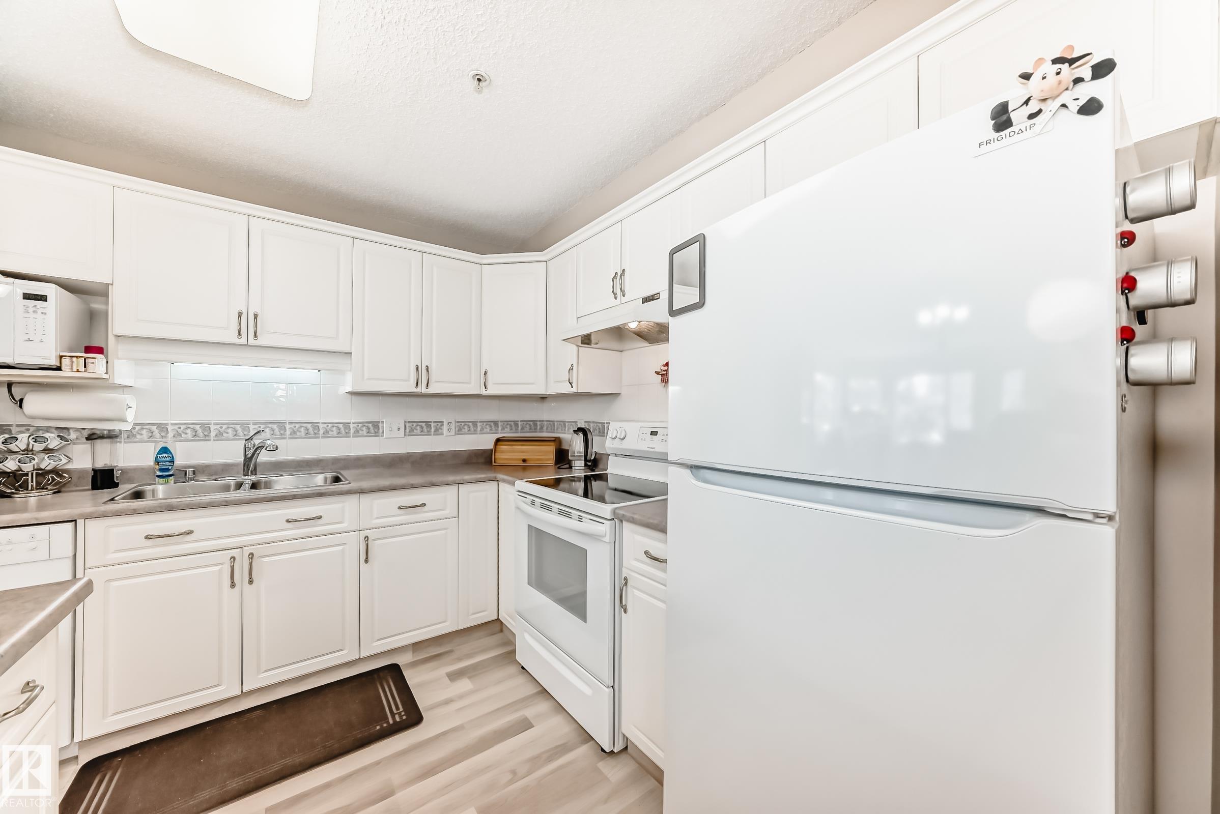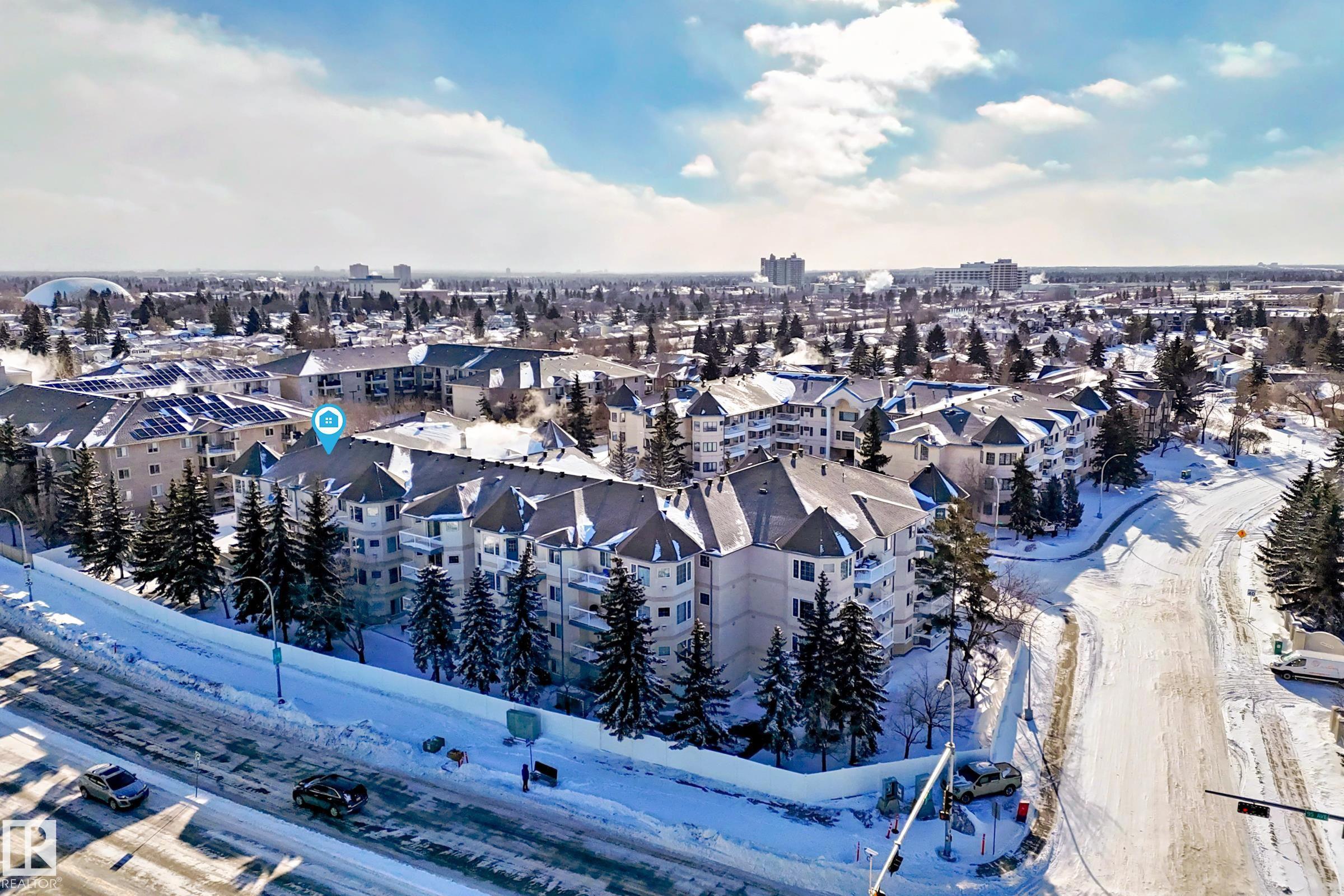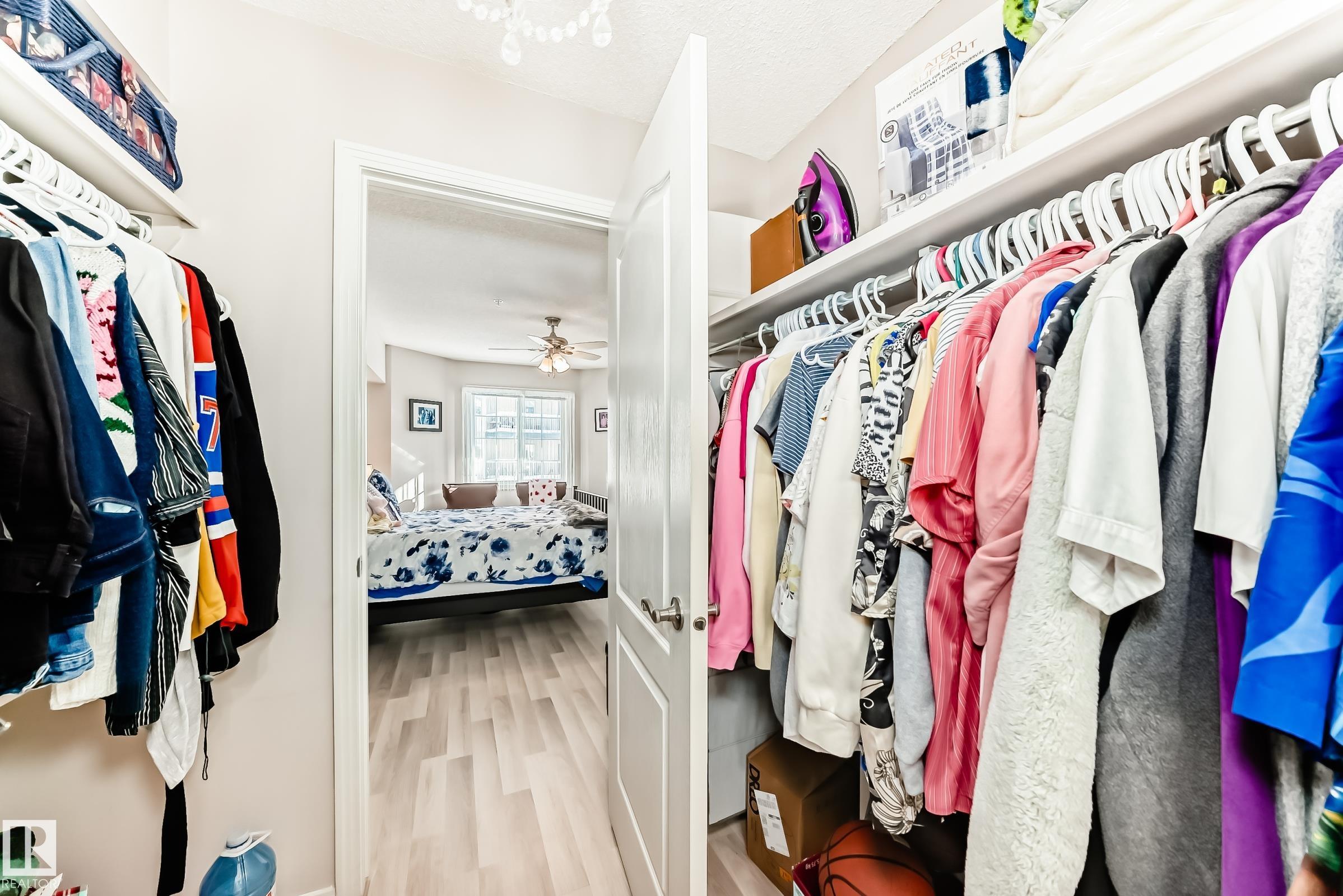 Welcome to this beautifully upgraded 2-bedroom 2nd floor CORNER condo offering 979 sq. ft. of bright, inviting living space. Enjoy newer laminate flooring throughout, including the kitchen featuring abundant cabinet & counter space. The open-concept layout flows seamlessly from the kitchen into the dining area & spacious living room, highlighted by a full wall of windows & a cozy corner gas fireplace. The east facing balcony has a view of the courtyard! The primary bedroom easily accommodates a king-sized suite & includes a walk-through closet to a private ensuite. There is a second bedroom & 4 pc bathroom plus lots of storage space. Additional conveniences include air conditioning, in-suite laundry, newer appliances & heated underground parking with storage. Designed for 55+ living, this well-managed building fosters a true sense of community with social rooms, exercise room & guest suite. There is also a car wash & lots of visitor parking. Located close to WEM, all amenities & public transportation!