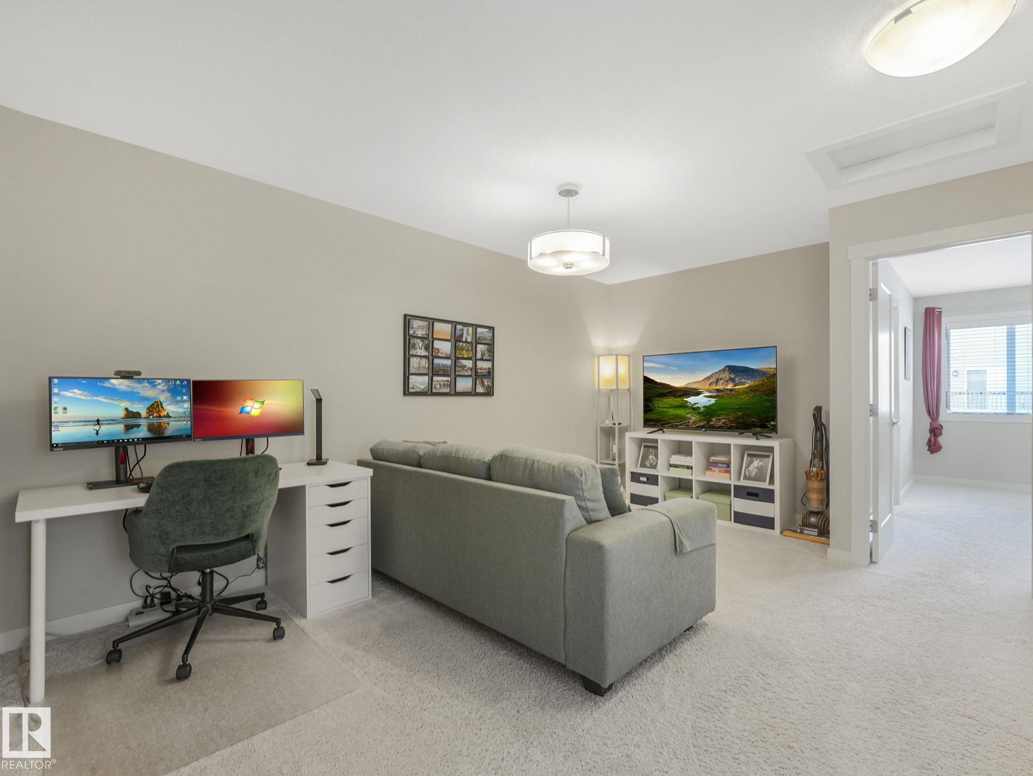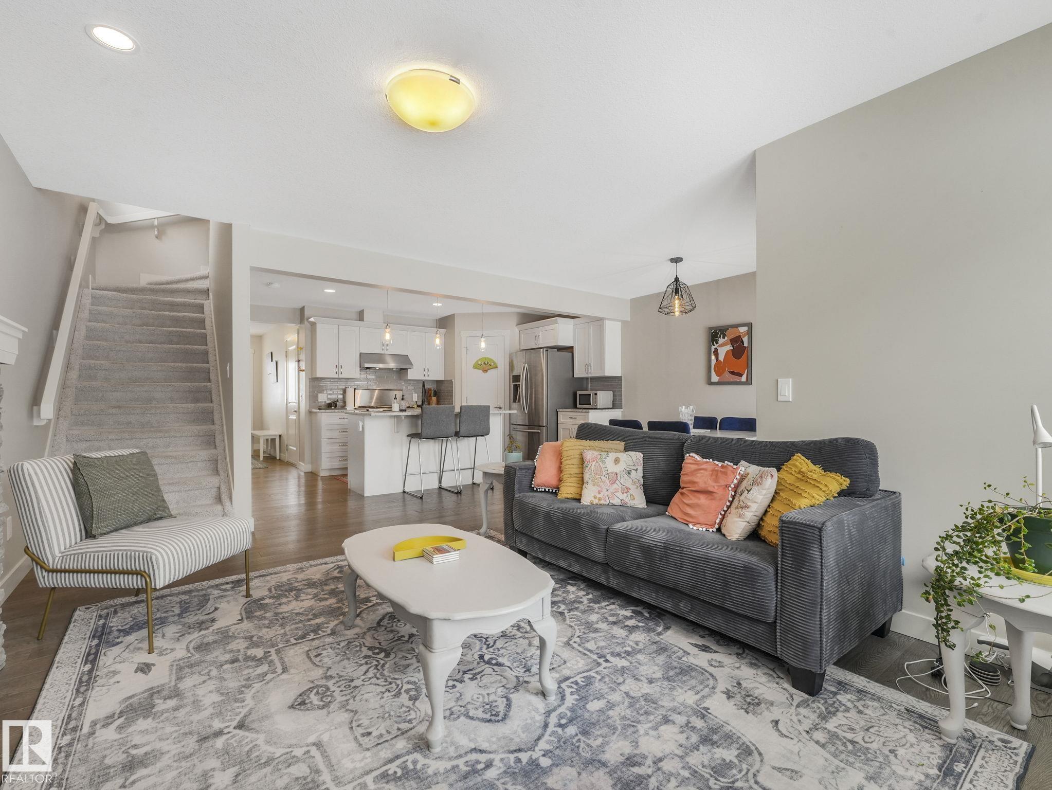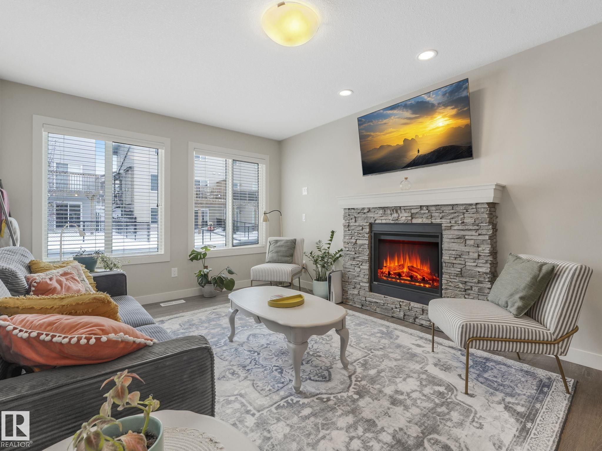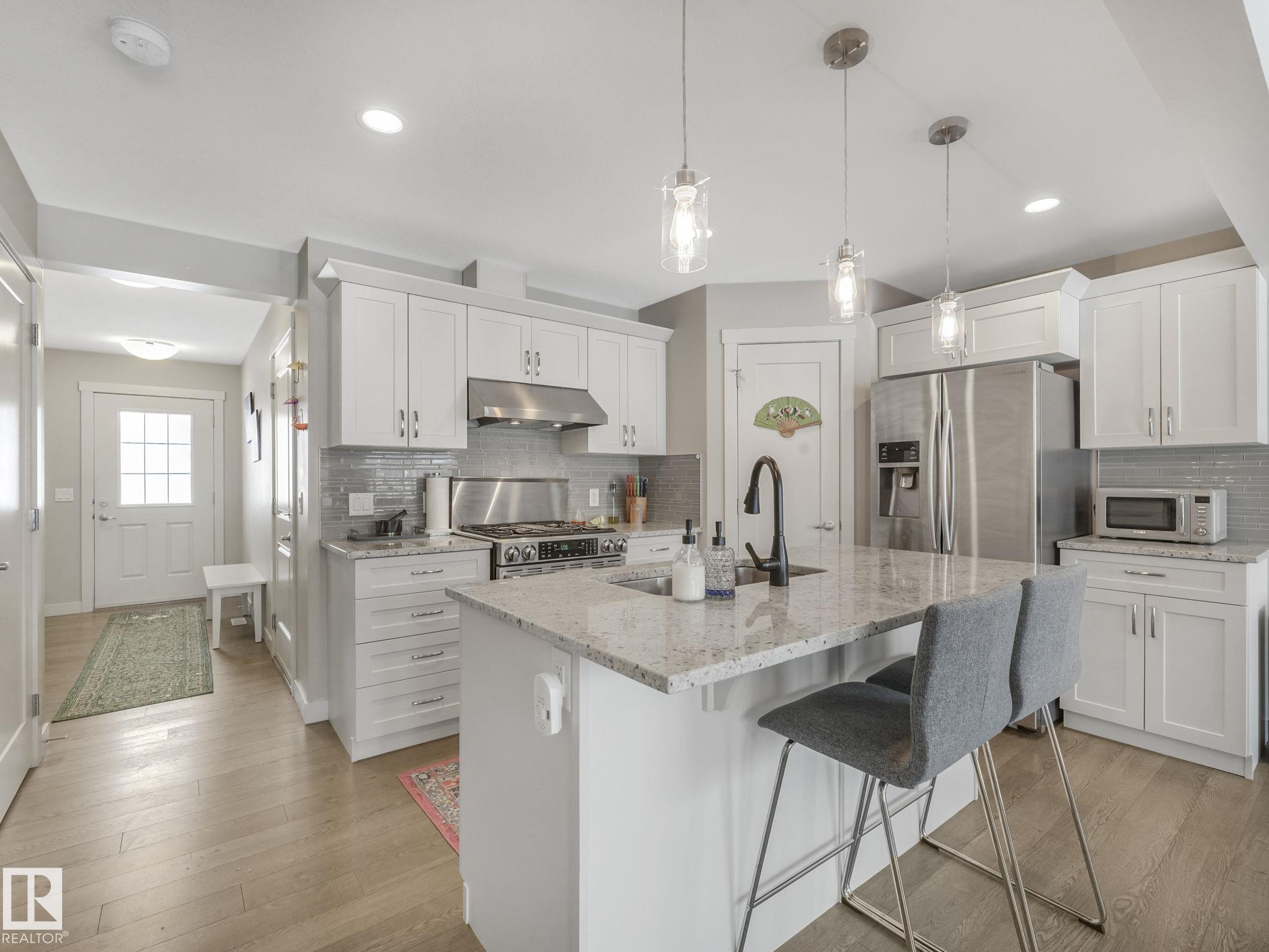 High end finishing - granite countertops, commercial grade gas stove. Double primary suites. Upper floor laundry. South facing backyard. Attached garage. This home hits all the items you are looking for. Main floor has warm laminate flooring, large windows overlooking the backyard and deck. Open layout main floor - kitchen/dining/living. Kitchen has large island with seating, stainless appliances, full size pantry. Cozy gas fireplace in the living room backing onto the dining room. Upstairs has a bonus room at the top of the stairs - large enough for any family activity. And 2 bedroom suites on opposite sides of the bonus room - large bedrooms, full ensuite and walk in closets. Laundry is on the upper level. Newer central air conditioner for the hot summer nights. Included in your condo fees is exterior maintenance including lawn and snow removal. Easy living in your own townhome which feels like a single family home but without the exterior work.
