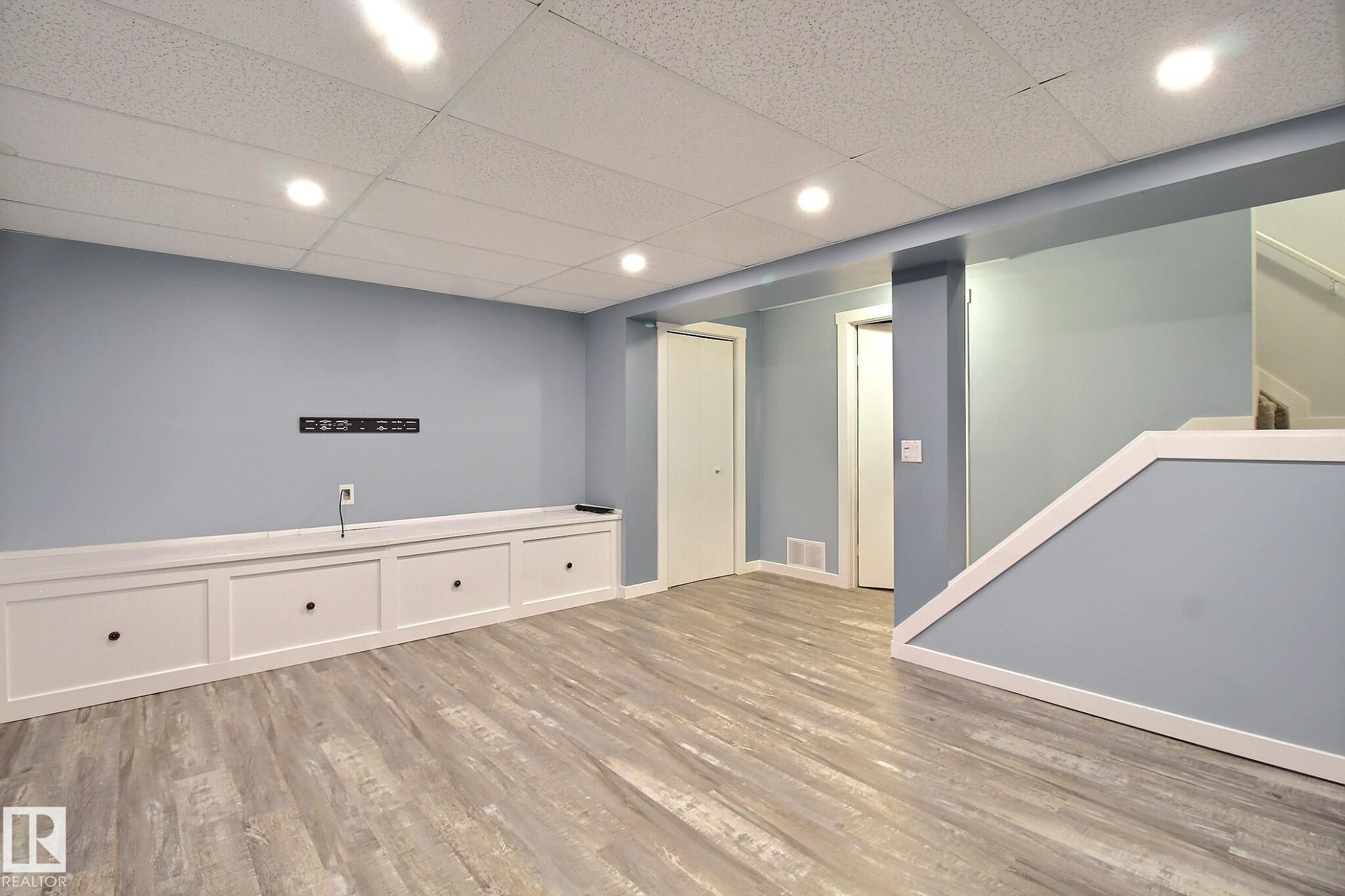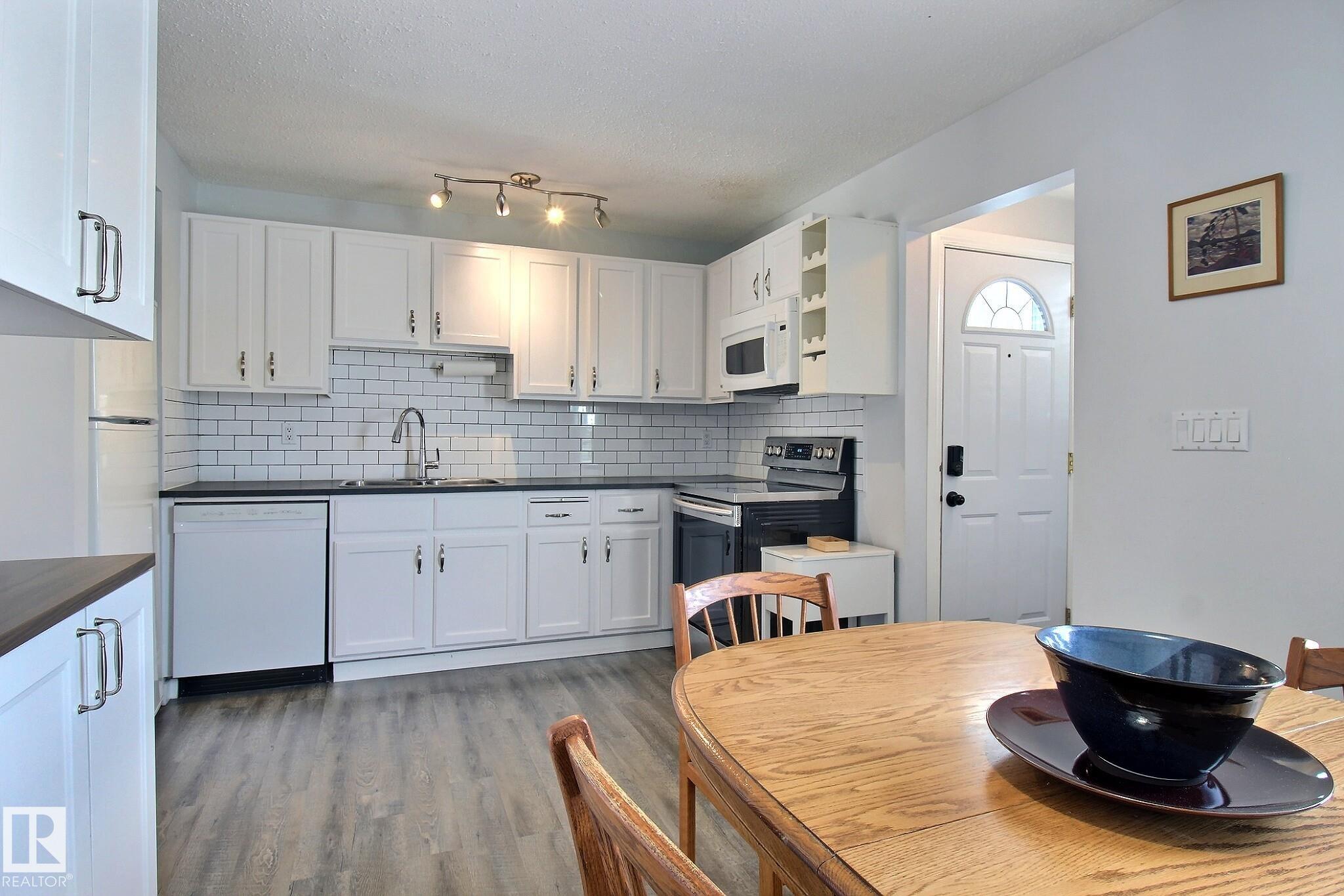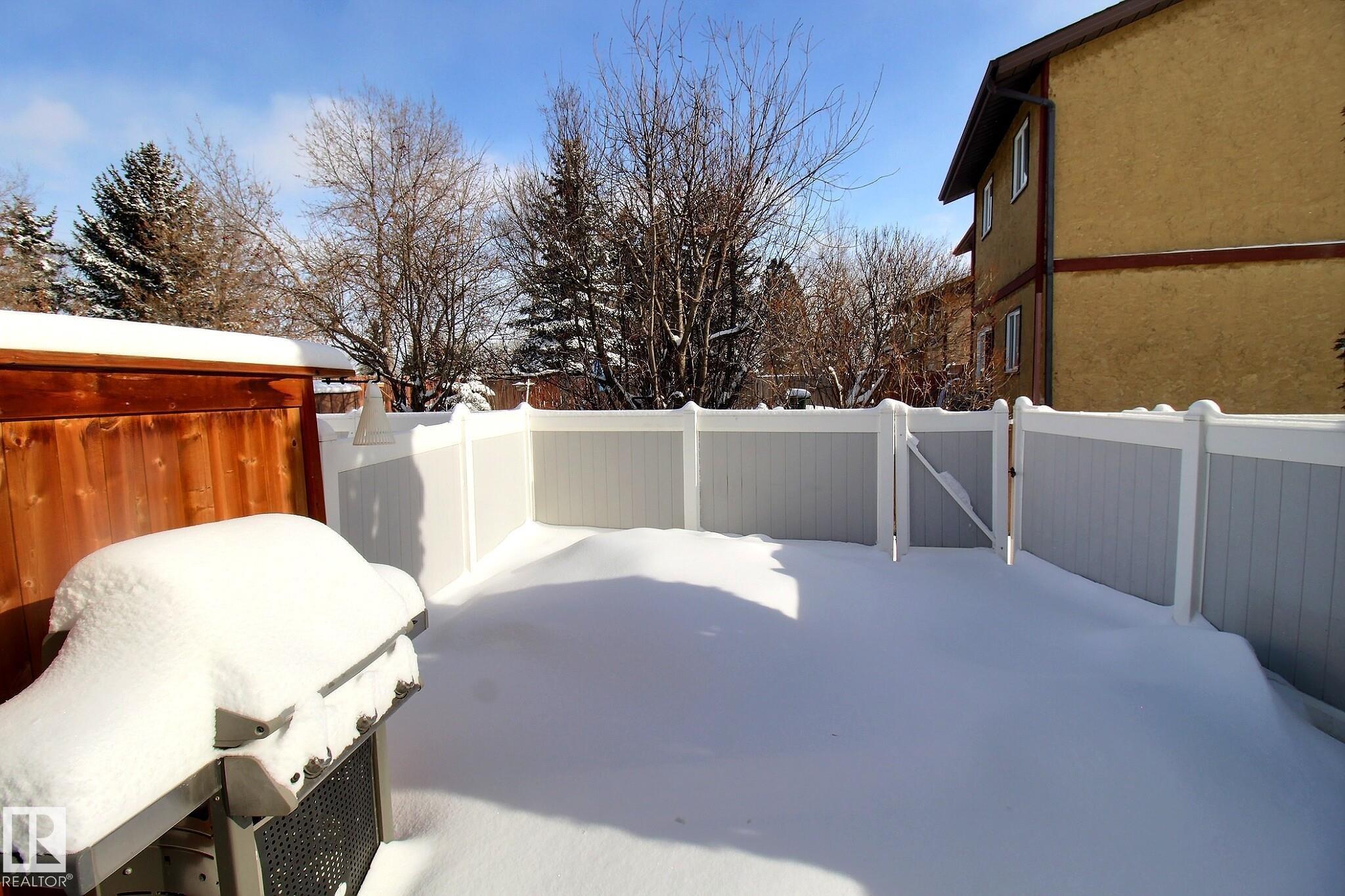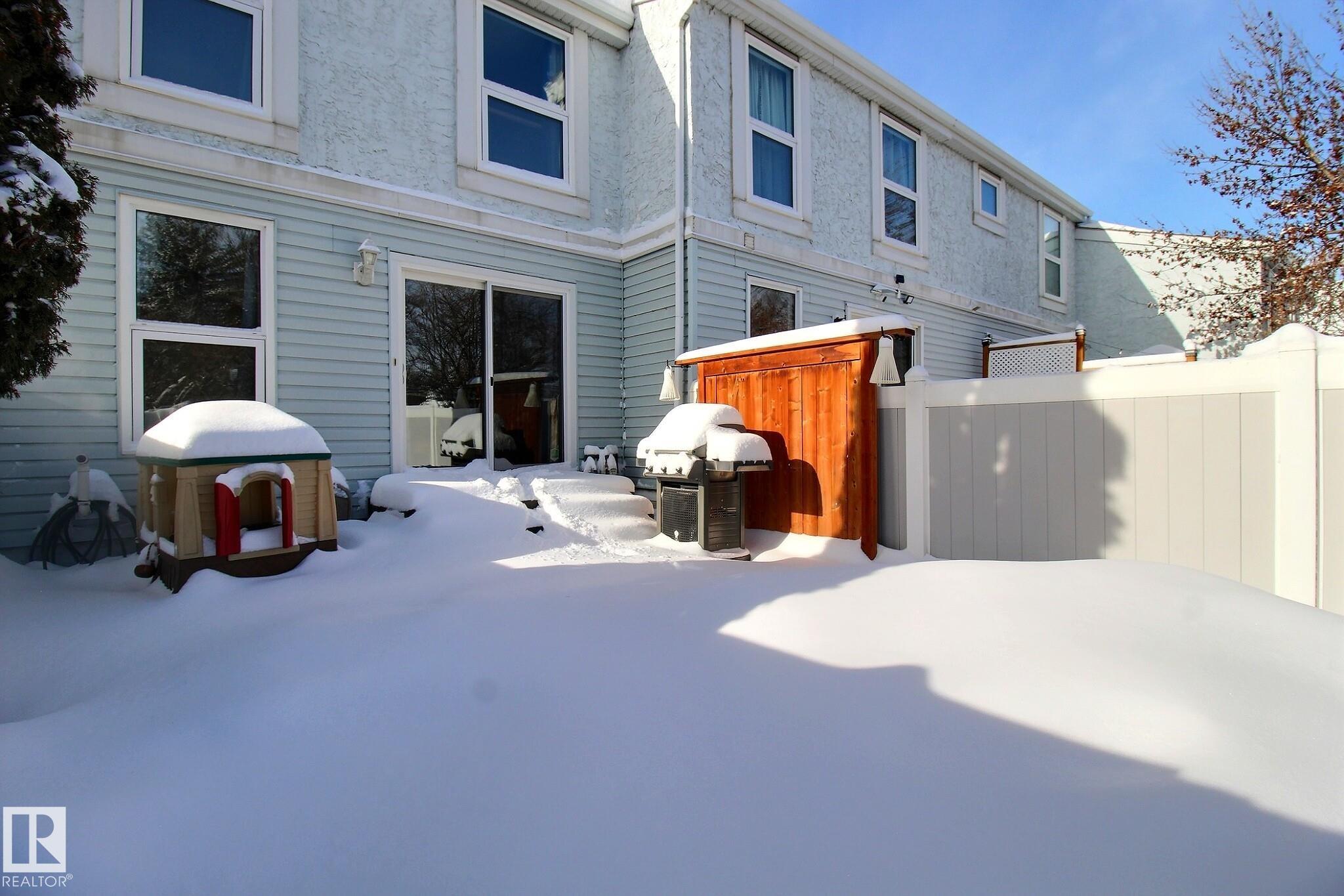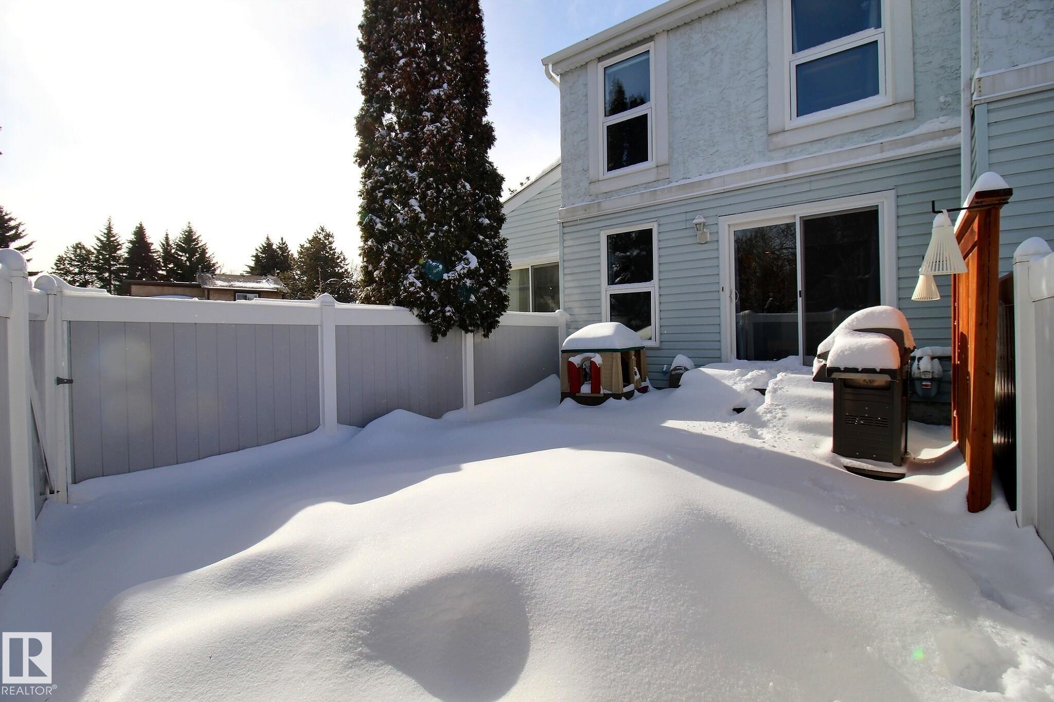 Move-in ready and well maintained, this updated townhome offers incredible value. The spacious eat-in kitchen features vinyl plank flooring and a custom built-in banquette with added storage. The inviting living room is centered around a cozy wood-burning fireplace and offers access to a private backyard with high vinyl fencing and a charming walkway leading to a large field and park?perfect for kids, pets or evening strolls. Upstairs you?ll find a generous primary bedroom with twin closets, two additional bedrooms and an updated 4-piece bath, plus an upgraded main floor bathroom. The finished basement provides a large family room with built-ins and excellent storage. Major updates include a high-efficiency furnace, 50-gallon HWT and added attic insulation (2022), plus a spacious utility and laundry room with custom shelving. One assigned parking stall is located directly in front of the unit, and condo fees include landscaping, lawn care (including the yard) and snow removal.