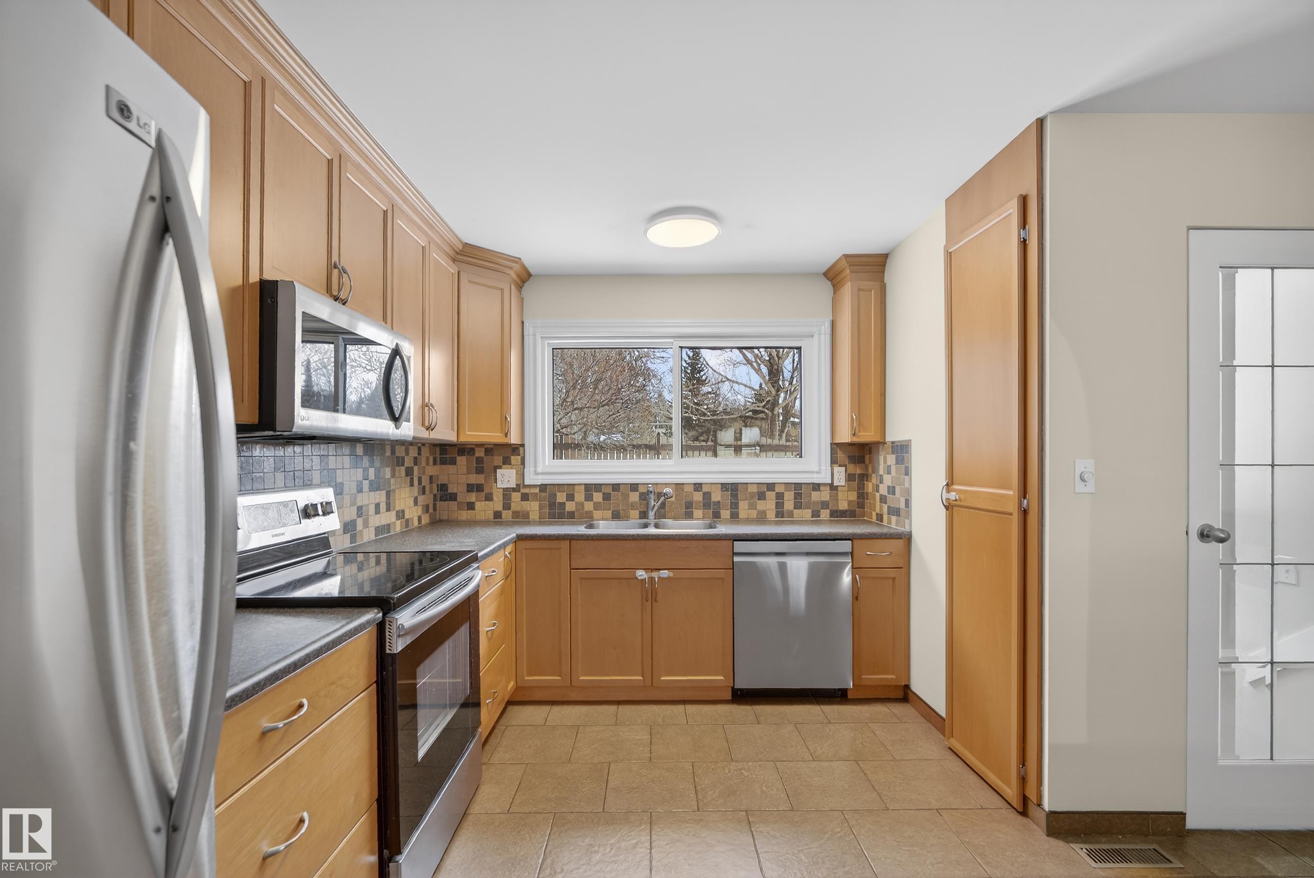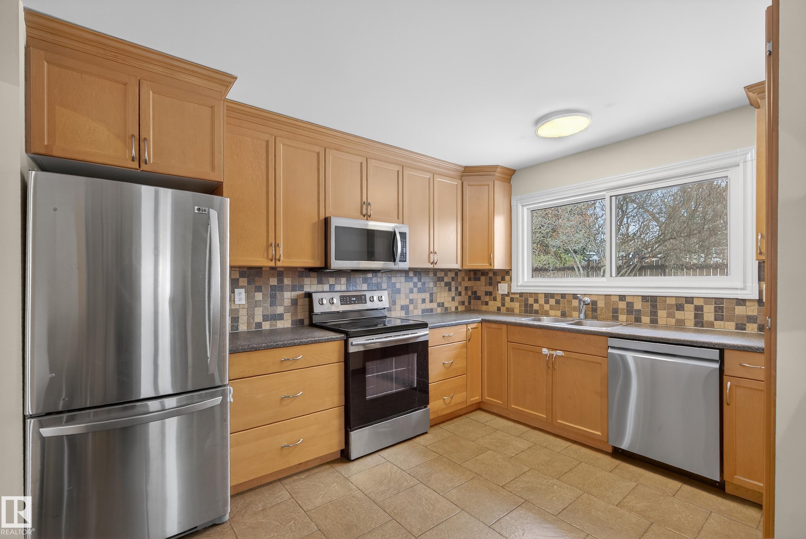 BACKING ONTO A PARK in sought-after Lacombe Park, this well-maintained fully finished bungalow offers over 2,100 sq ft of total living space. The main floor features a spacious living room with a cozy brick wood-burning fireplace, flowing into a renovated kitchen with ceiling-height cabinetry, abundant counter space, pantry, and a breakfast bar. Three generous bedrooms include a king-sized primary with 2-piece ensuite, plus an updated 4-piece bath. The fully finished basement adds a massive rec room, potential 4th bedroom, 3-piece bath, and excellent storage. Enjoy your private backyard with direct park access and an expansive deck ideal for relaxing or entertaining. Major recent upgrades include: furnace, hot water tank, triple-pane windows, and garage roof. Shingles replaced in 2014. Just a 9 minute walk to Lacombe Lake Dog Park and incredible walking trails.