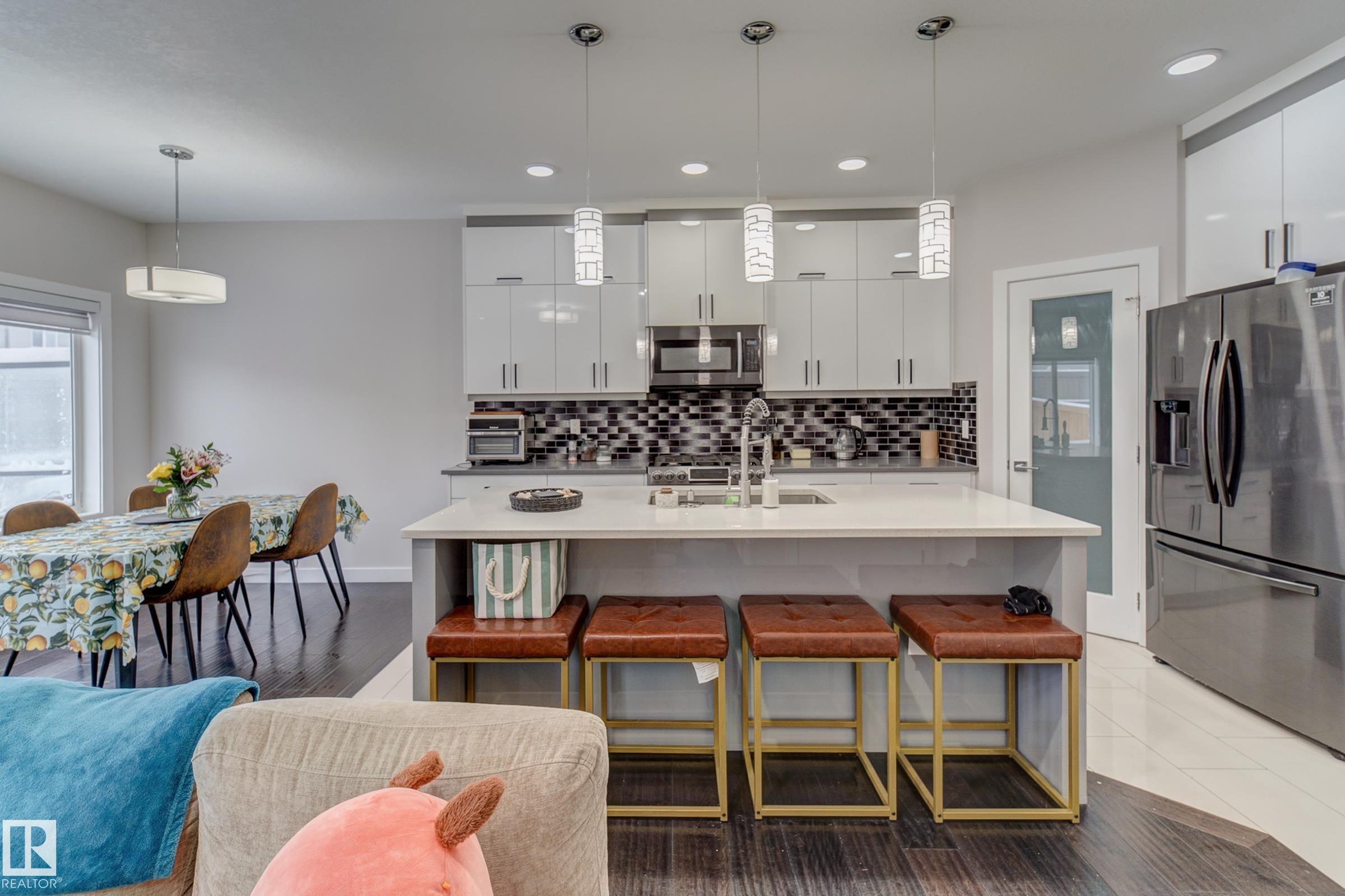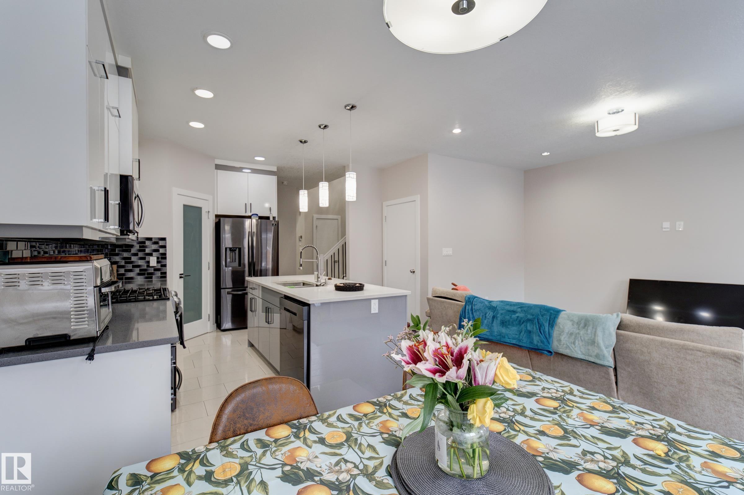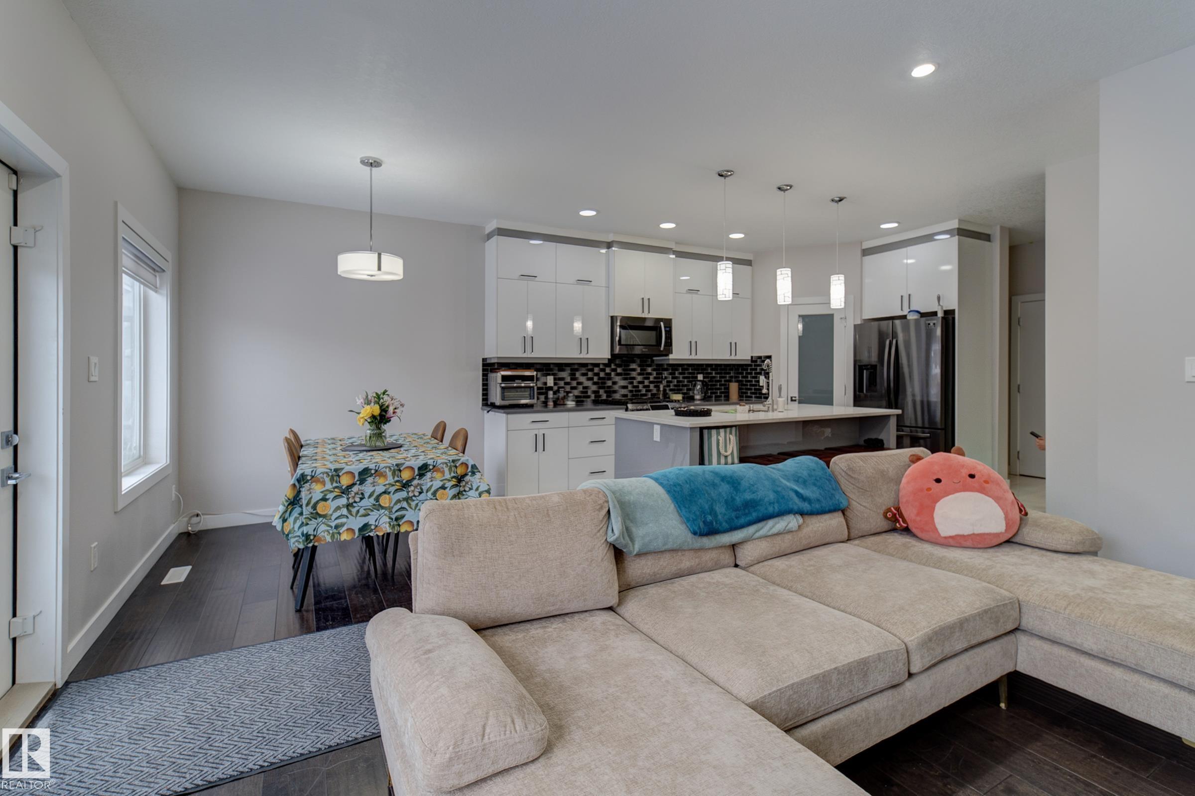 This property represents the perfect combination of hassle-free living while allowing you to own your land. This bareland condo is situated in the heart of Southeast Edmonton, conveniently located near schools, a recreation center, shopping, and the Anthony Henday.This two-story half-duplex features a double attached garage and a separate entrance to the basement. The main floor boasts an open-to-above design with 9-foot ceilings, a half bath, and a living and dining area, all complemented by a kitchen that extends to the ceiling. The upper level includes the primary bedroom, two additional rooms, a full bathroom, a bonus room, and a laundry room. This home is bound to check off all the right boxes! Don't miss out, come and check it out today!