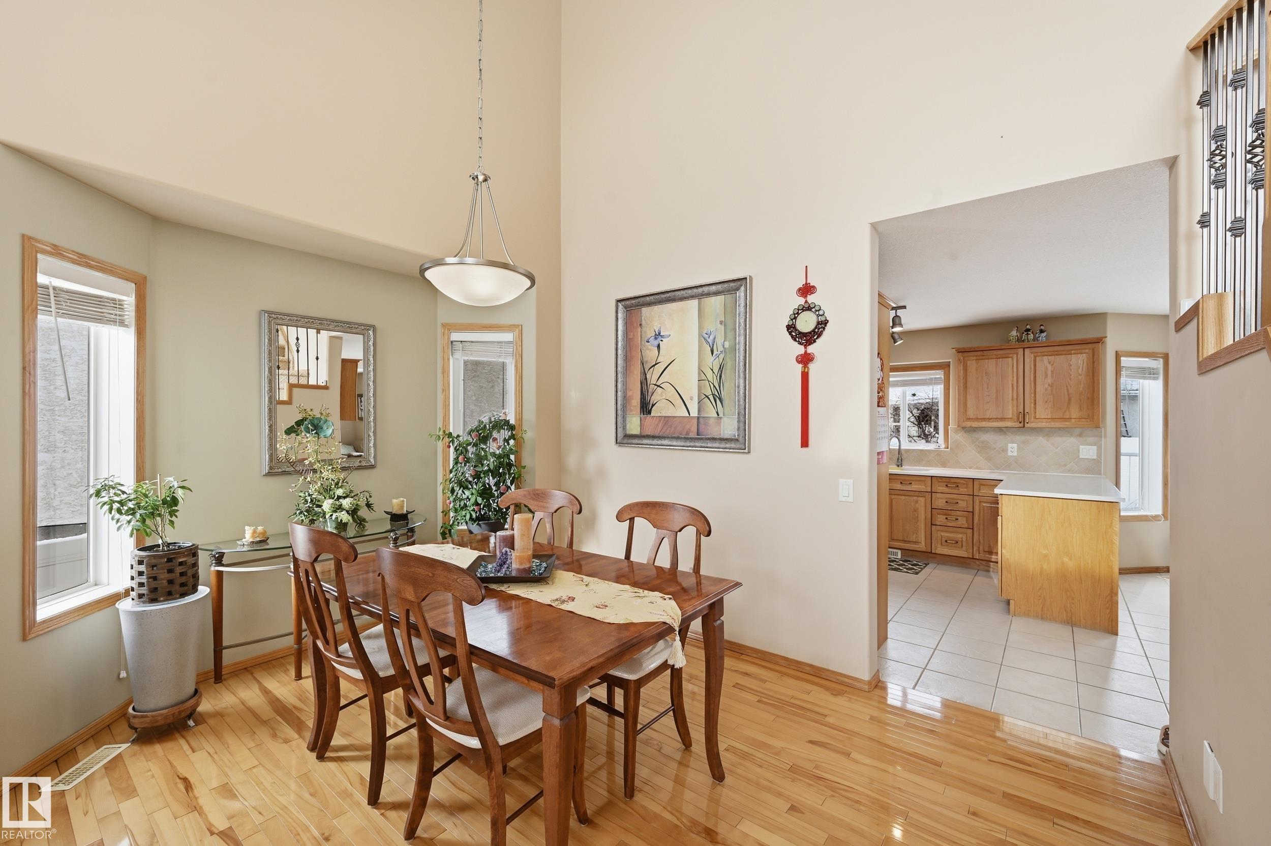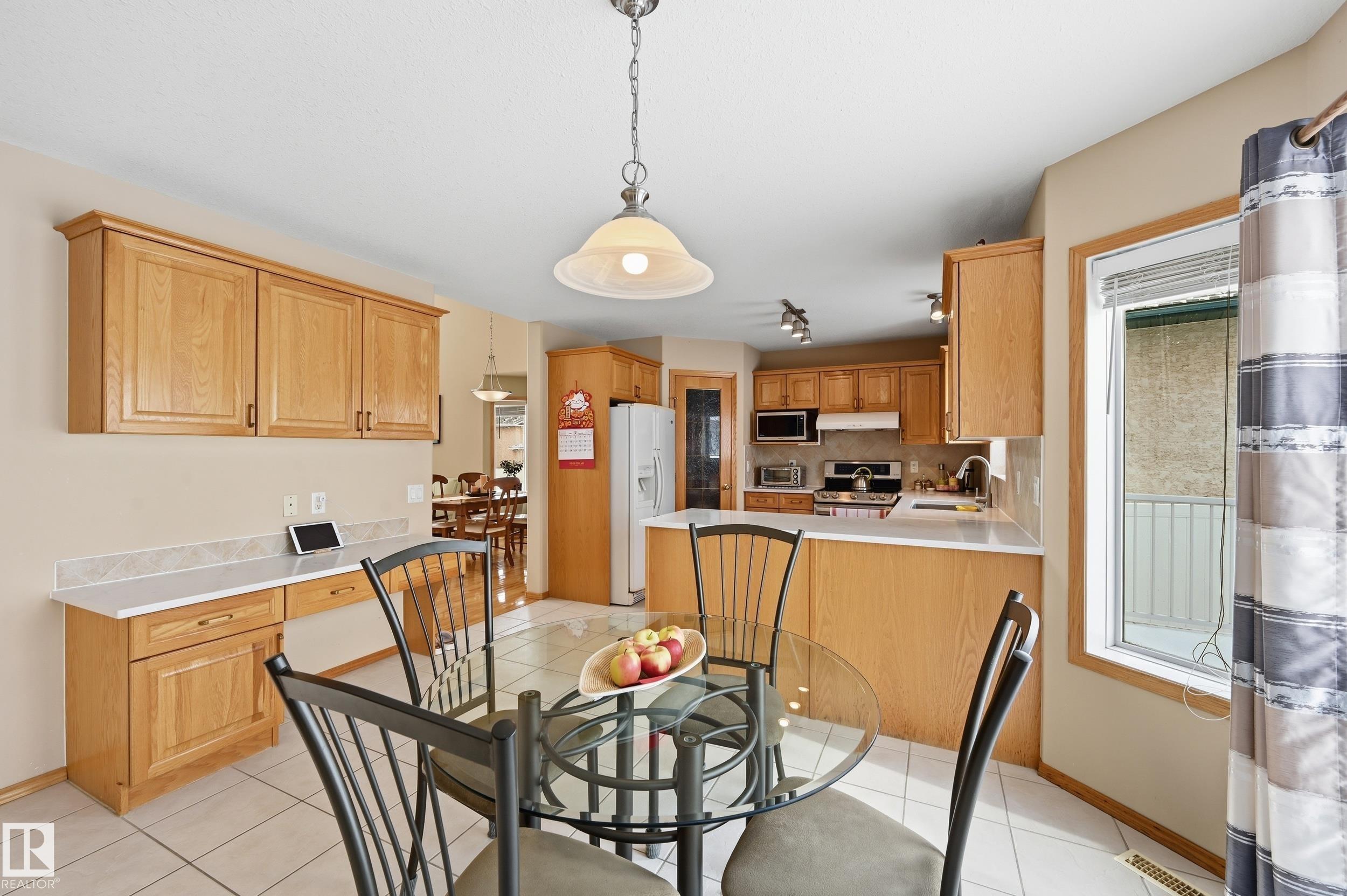 PRISTINE CONDITION by the ORIGINAL OWNERS, this Montorio Homes 2-storey with 2000 sf+. Showcasing PRIDE OF OWNERSHIP & quality from a reputable EUROPEAN BUILDER. Main floor offers a bright living & dining rm with vaulted ceilings, HARDWOOD flooring, & ceramic tile finishes, plus functional kitchen with peninsula & eating nook, a comfortable family room with gas Fireplace & MAIN FL BEDROOM?ideal for elder parent/home office or play room. You will appreciate the large deck, fenced yard and Oversized attached garage for the entire Family. Upstairs includes a LARGE primary suite featuring a walk-in closet, ensuite with Jacuzzi & 2 additional bdrms (one with walk-in closet) with a full bath. The basement includes a craft/sewing area, a huge recreation room currently used as a dance studio with mirrored walls, bright laundry room, generous storage, & room to develop 5th bdrm. Ideally located close to St. John Bosco School, walking distance to parks/lake & offering quick access to shopping, restaurants & Henday.