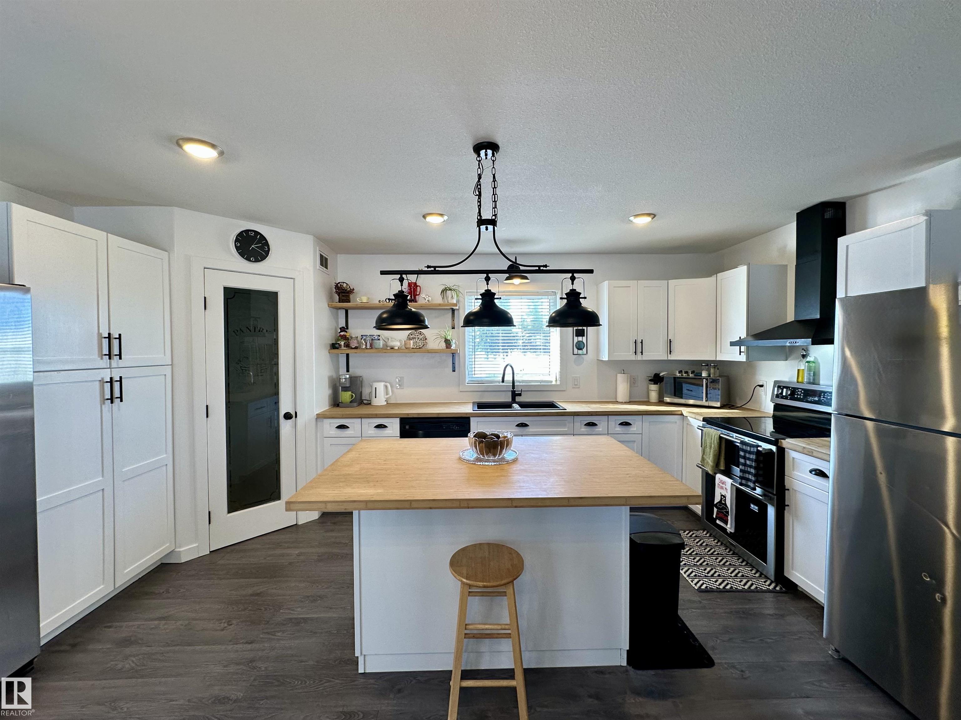 Fantastic Family Home in Fort Kent! Exceptional opportunity for buyers looking for a 6 bedroom home near Bonnyville <10 minutes, Cold Lake <20 minutes and just a few minutes from the Iron Horse Trail and trout pond. If you are looking for move-in-ready, this home has been very well maintained and features new flooring, door casings, trim and paint. Front deck was restained in 2025. HEATED double attached garage features 13' ceiling and two 10' tall overhead doors to fit that truck! Entry from garage & covered front deck has lots of room to kick off the boots inside. Side/back deck overlooks huge yard with RV gate to alley and view of peaceful surroundings. Open concept living area with island, tons of counter space and corner pantry in the kitchen. Primary bedroom has enormous ensuite and walk in closet. The 5 secondary bedrooms are also spacious (3 are in basement). 3 bathrooms. Main floor laundry. Infloor heating in basement. Fort Kent offers a peaceful pace and this property provides the total package!