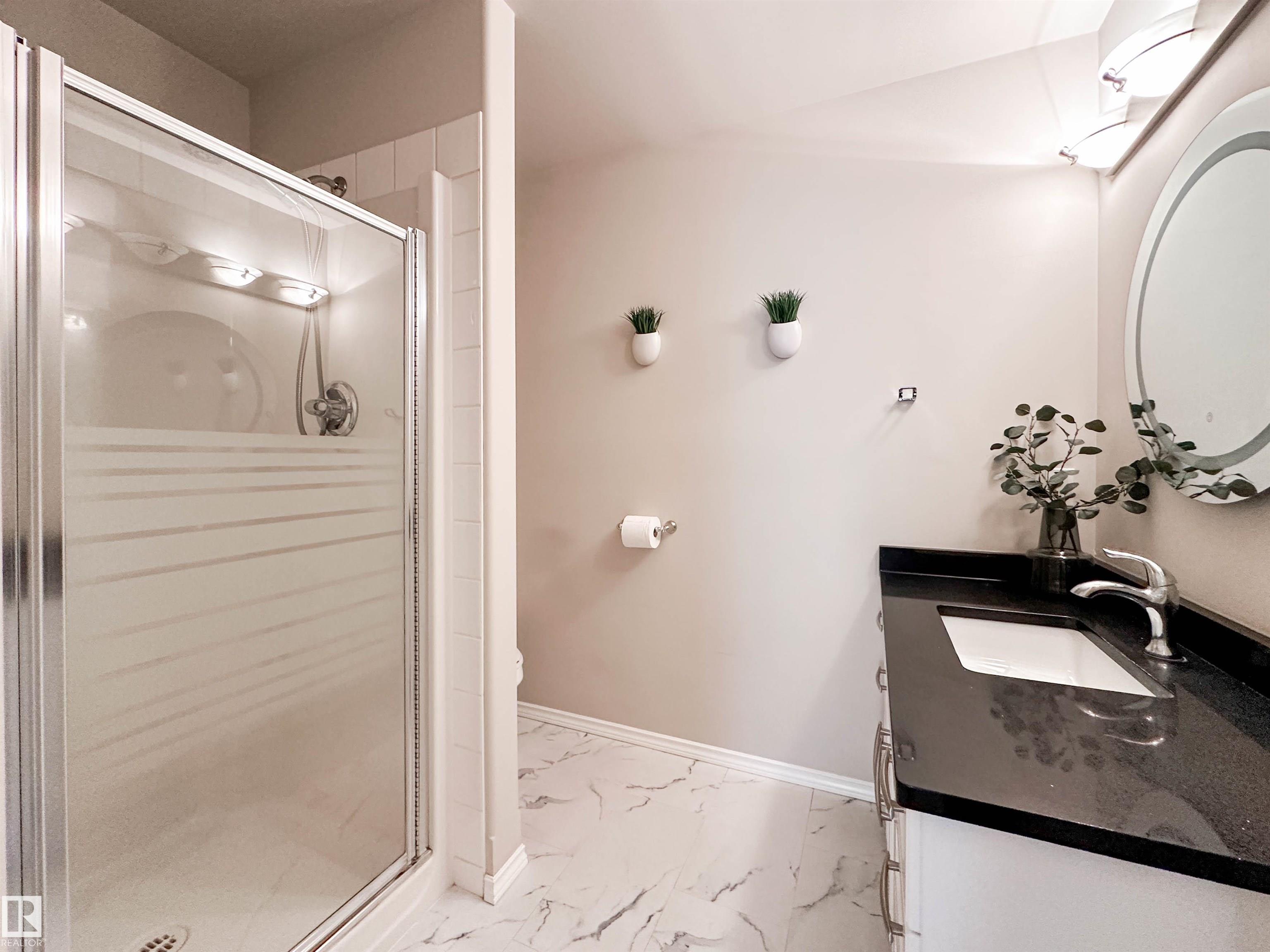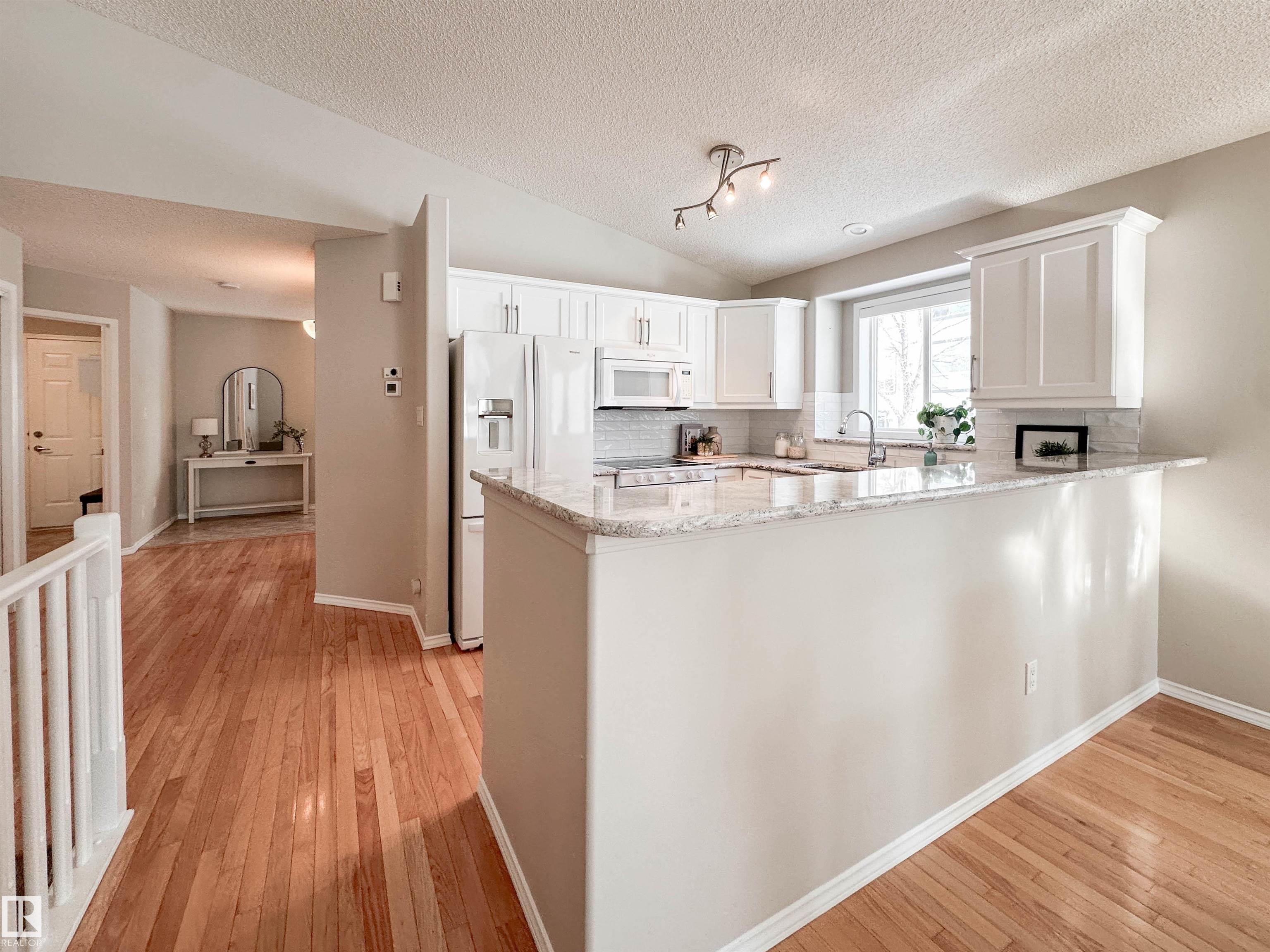 Welcome to this beautifully updated half duplex bungalow in a sought-after adult living community near walking trails and the Shops at Boudreau. Surrounded by mature landscaping, this home offers a serene and refined living experience. The thoughtfully designed main floor features a spacious primary retreat with ensuite, an additional 4-piece bath, convenient laundry, and a beautifully finished den. The updated kitchen flows into the dining area and elegant living room with fireplace. Outside, a private deck with privacy screens and mature trees provides a peaceful extension of the living space. The finished basement includes a full bathroom and flexible space for guests or hobbies. An attached double garage completes this exceptional home.