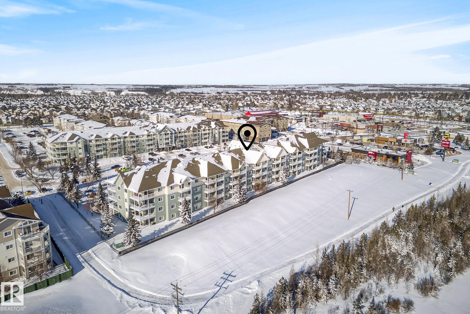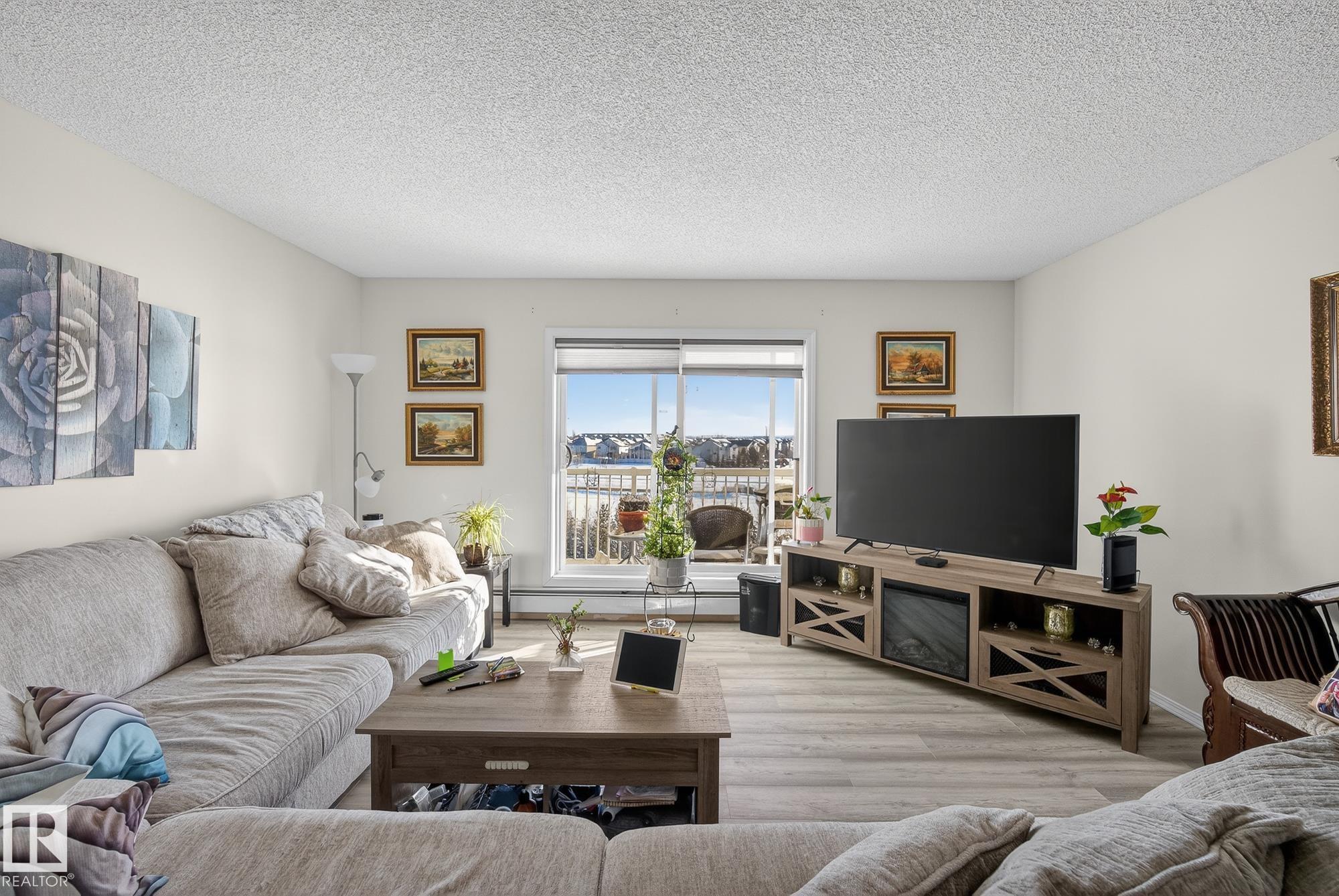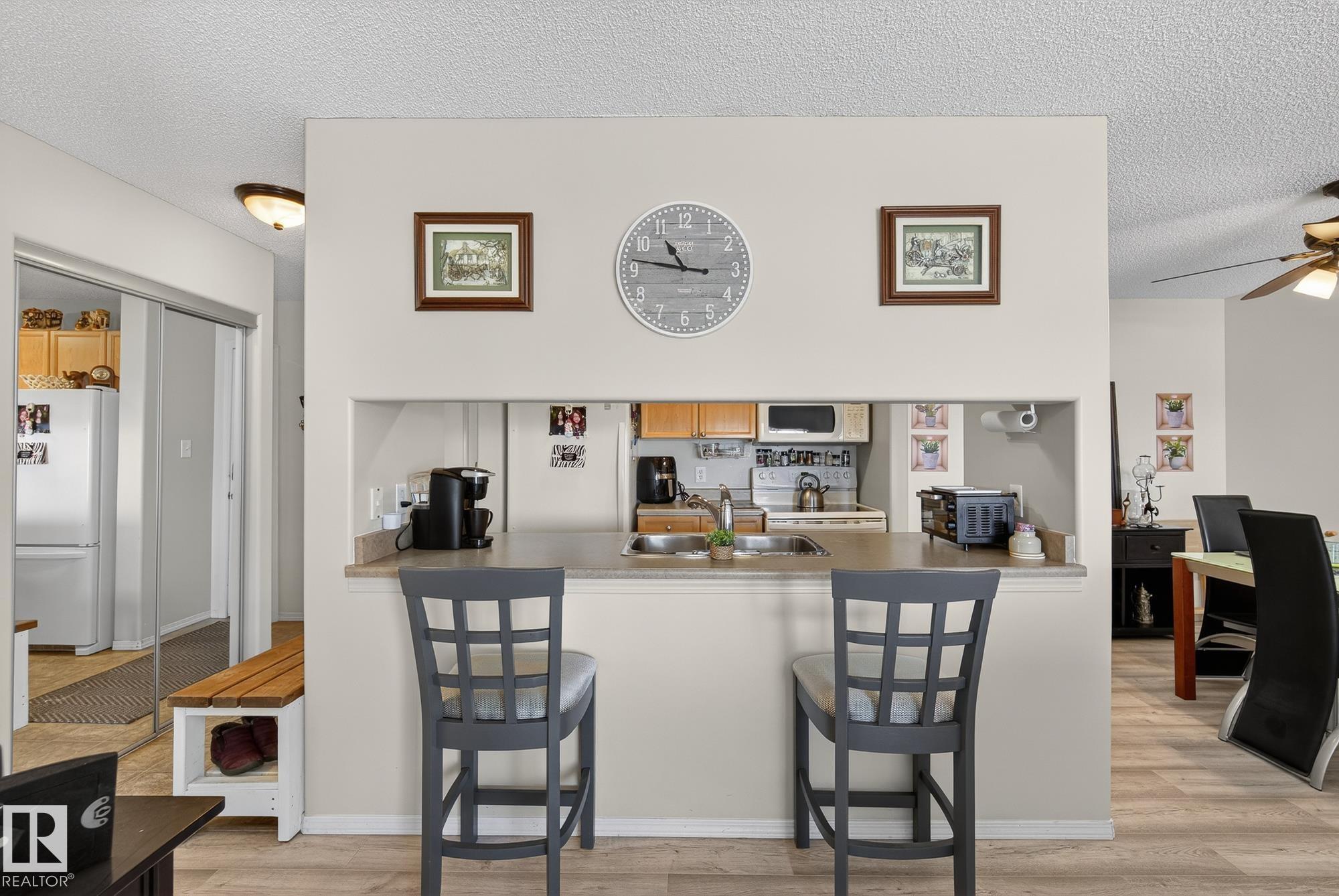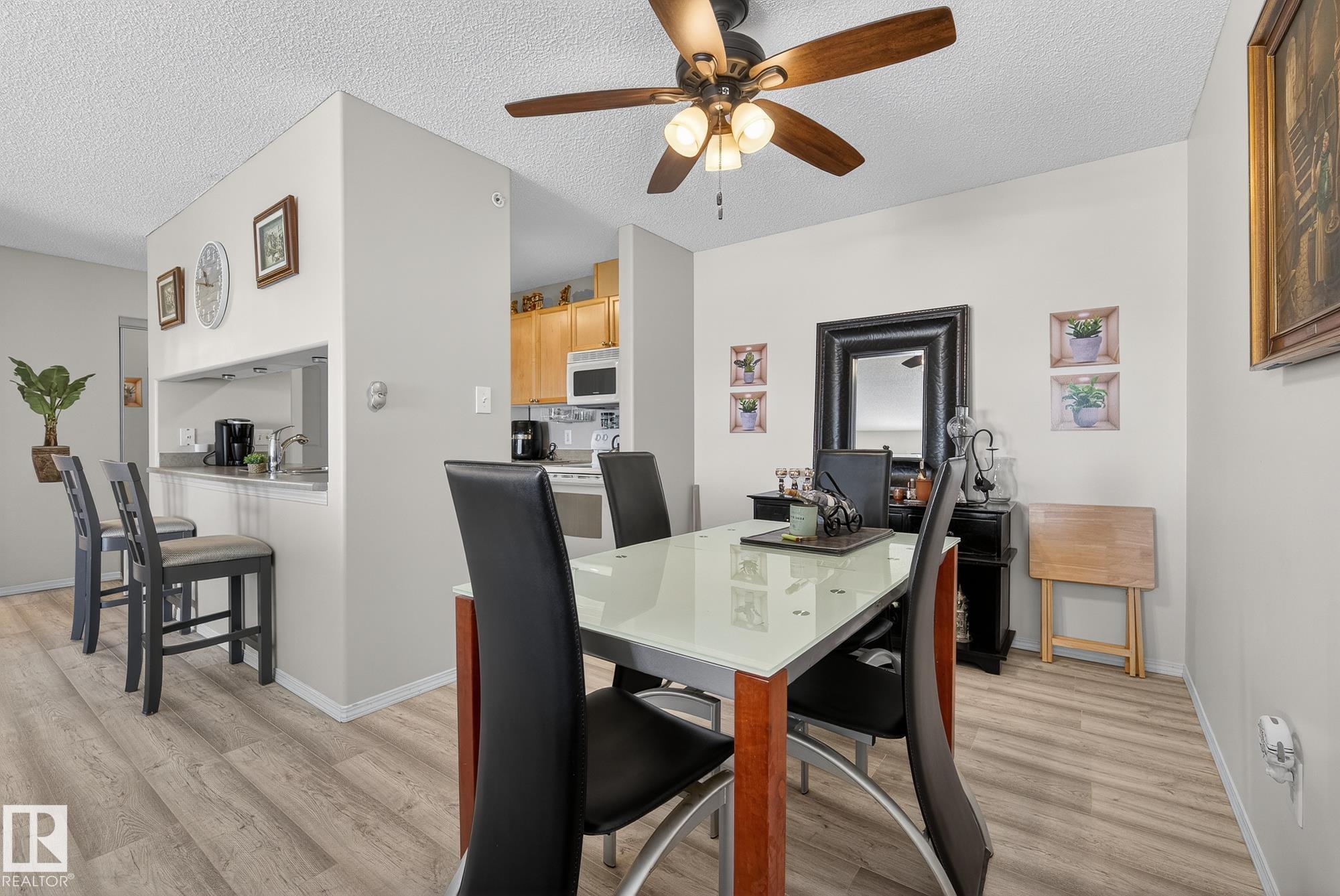 Welcome to top floor living at its best! Featuring 1 bedroom and 1 bathroom this unit is well sized at 751 sq ft. It holds a galley style kitchen with lots of cupboard space, and fills up with morning sunlight from the east facing balcony windows and patio door. With a LARGE living room and ample dedicated dining space this apartment truly feels like a home. New vinyl plank has been professionally laid down throughout. This unit features in suite laundry with a new washer and dryer that have been installed and are held in a large storage room. Included in the condo fees, is access to the fitness center across the parking lot in building 50! This property is in great proximity to Sherwood Park via highway access and has great walkability to public transportation within the city.