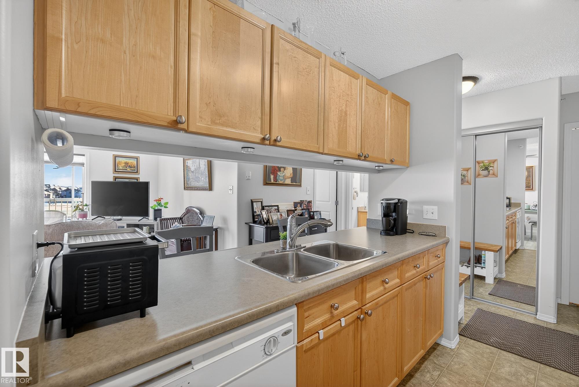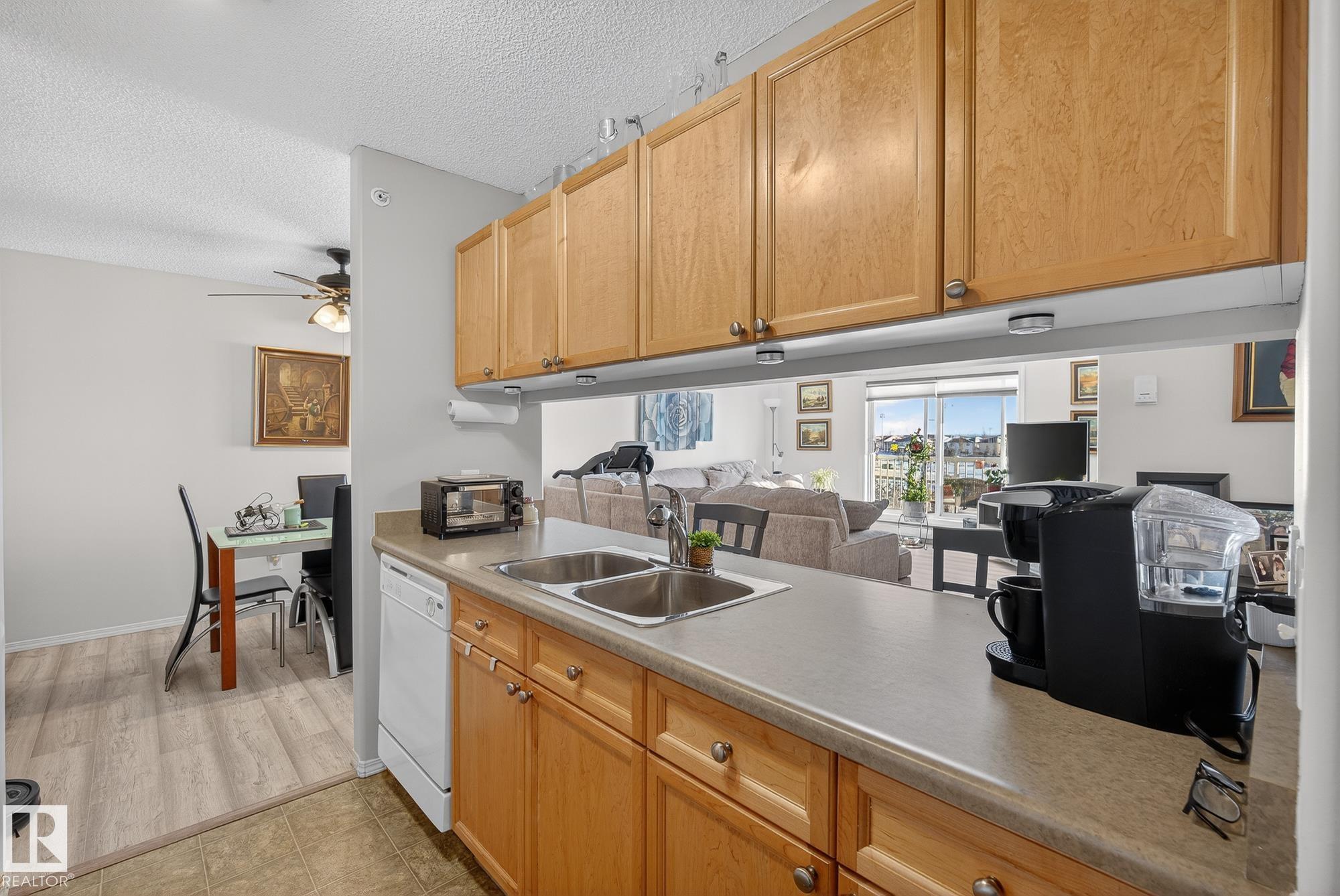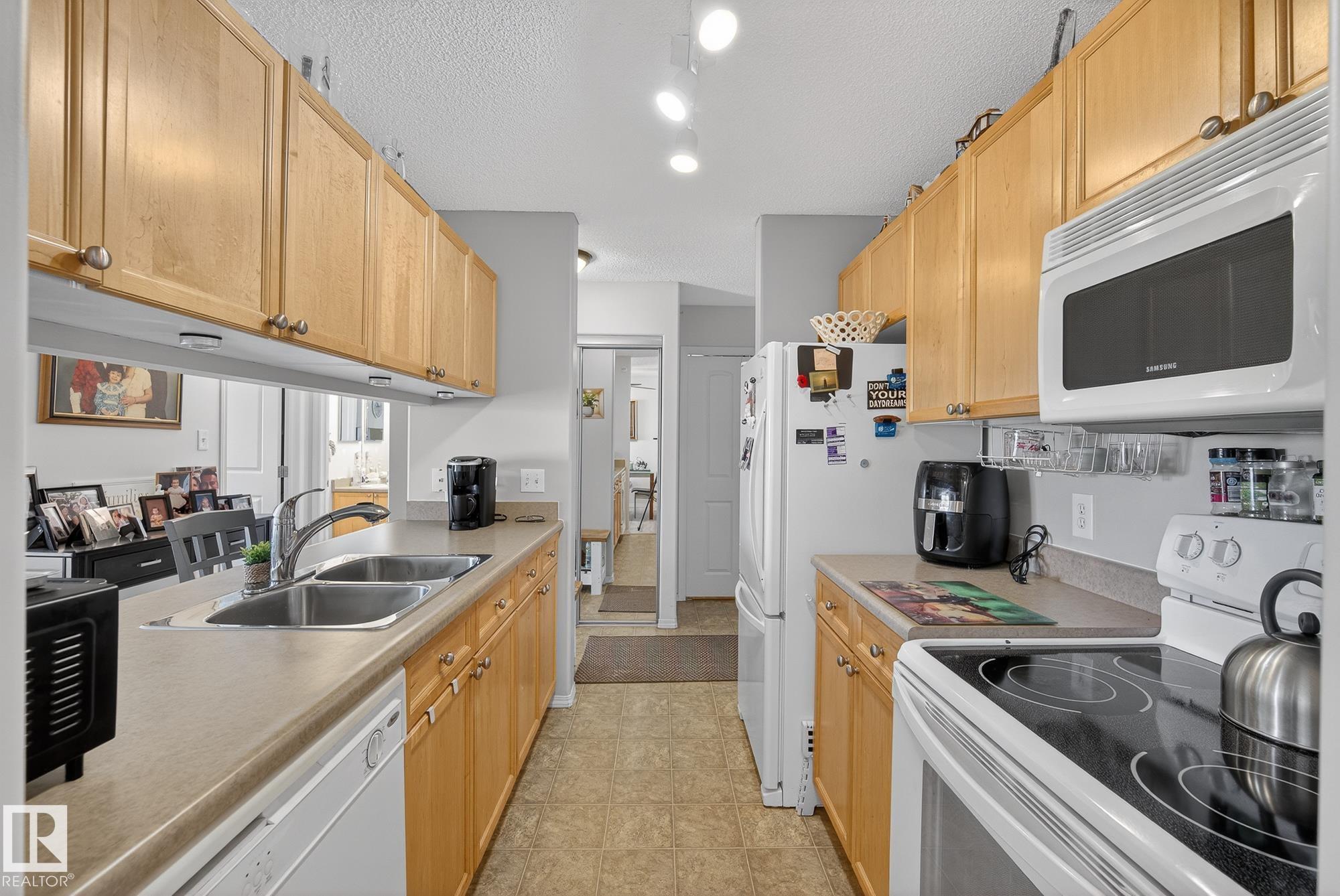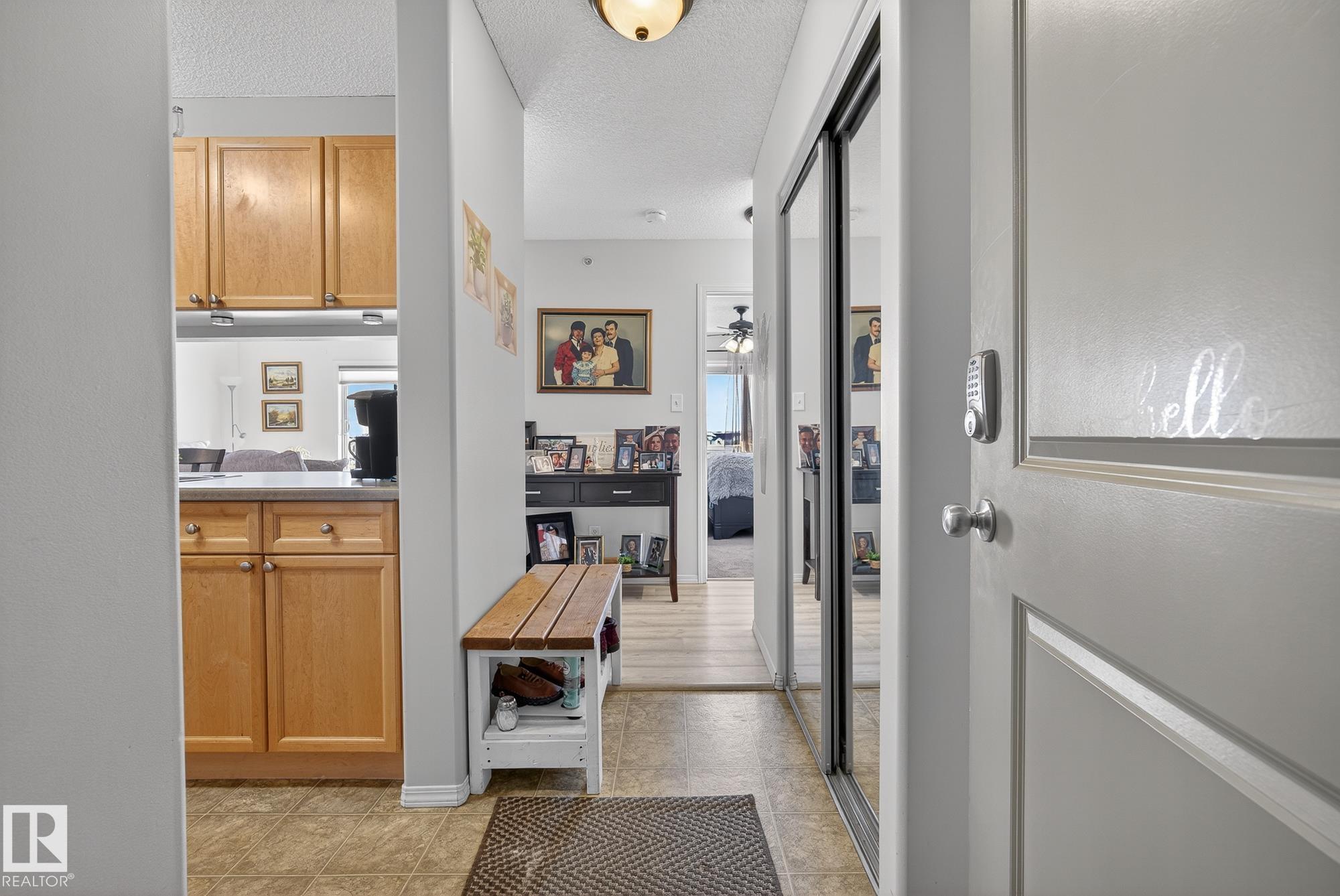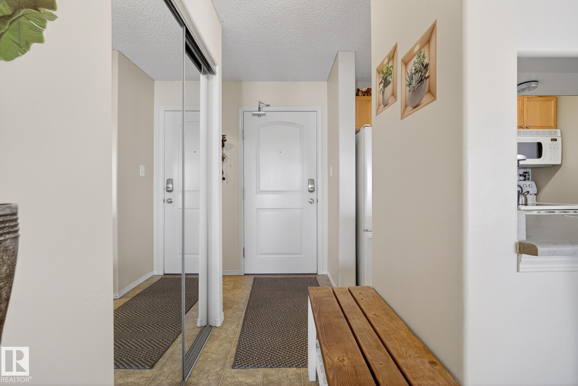 Welcome to top floor living at its best! Featuring 1 bedroom and 1 bathroom this unit is well sized at 751 sq ft. It holds a galley style kitchen with lots of cupboard space, and fills up with morning sunlight from the east facing balcony windows and patio door. With a LARGE living room and ample dedicated dining space this apartment truly feels like a home. New vinyl plank has been professionally laid down throughout. This unit features in suite laundry with a new washer and dryer that have been installed and are held in a large storage room. Included in the condo fees, is access to the fitness center across the parking lot in building 50! This property is in great proximity to Sherwood Park via highway access and has great walkability to public transportation within the city.