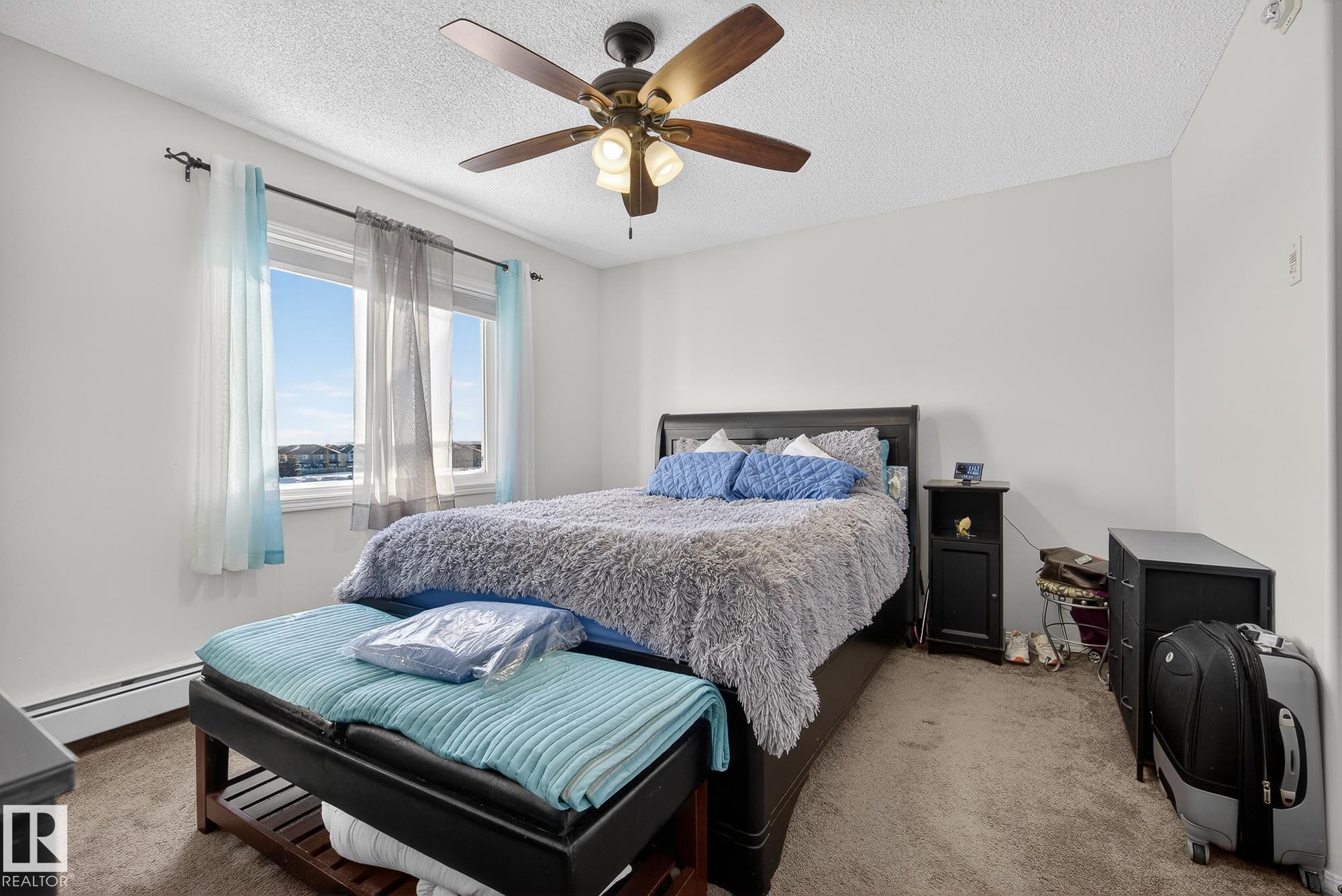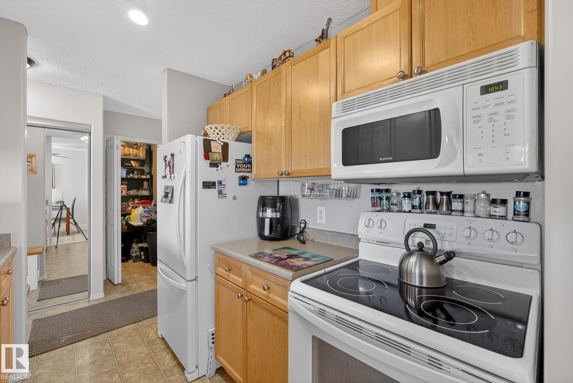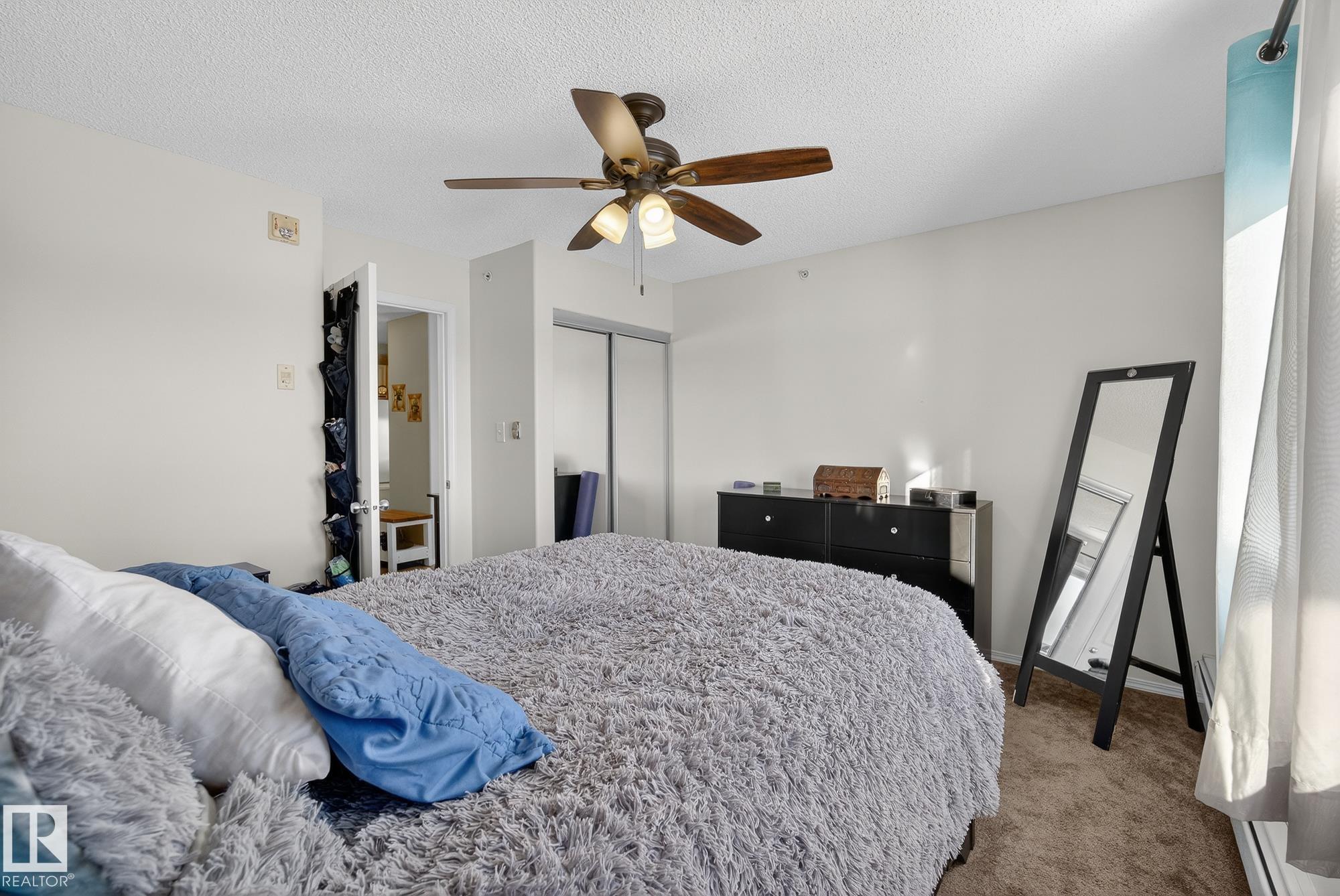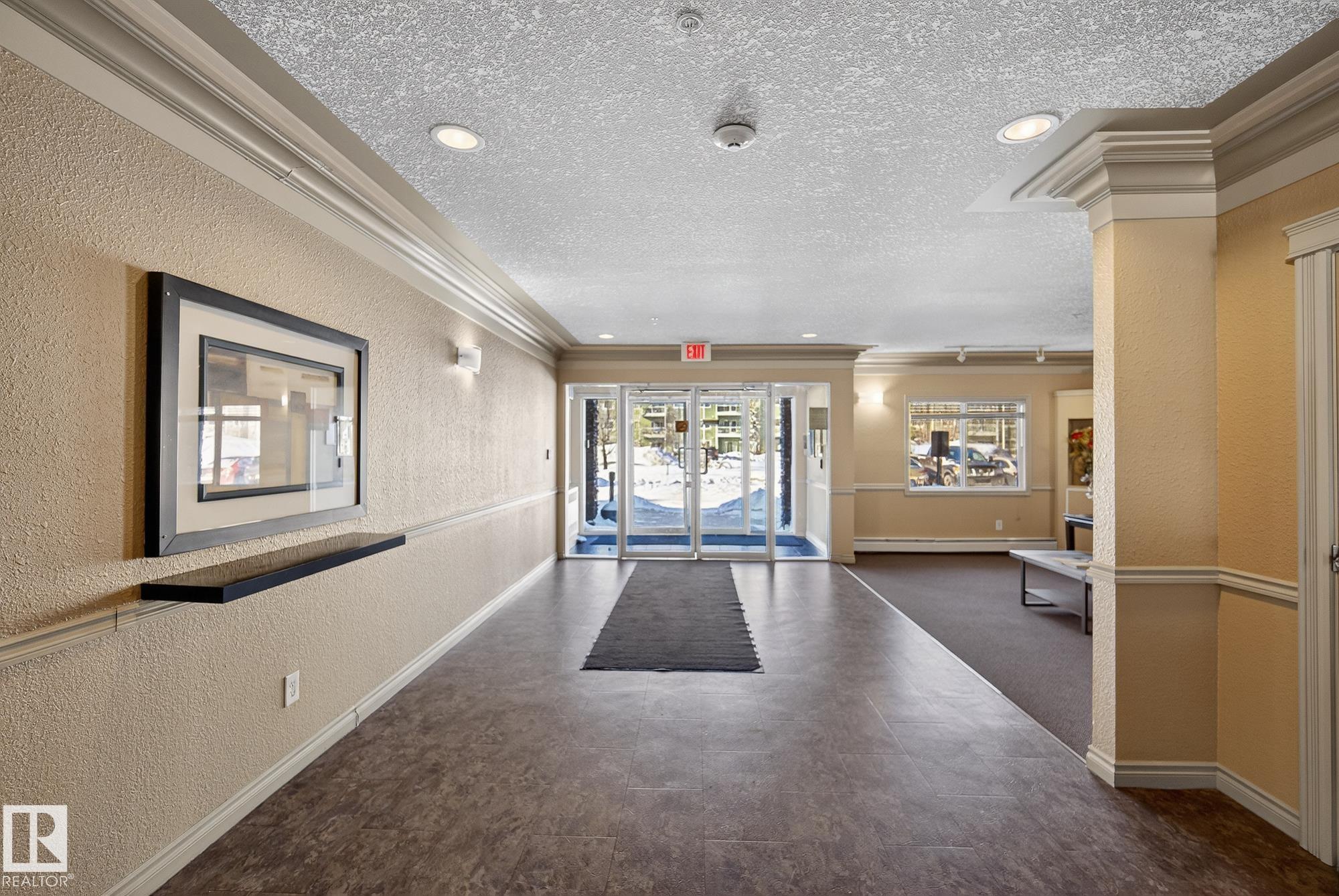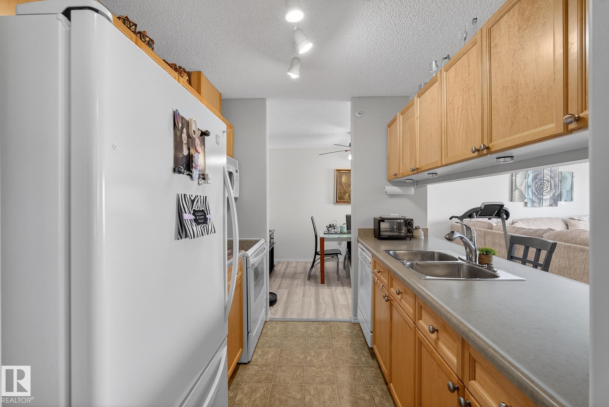 Welcome to top floor living at its best! Featuring 1 bedroom and 1 bathroom this unit is well sized at 751 sq ft. It holds a galley style kitchen with lots of cupboard space, and fills up with morning sunlight from the east facing balcony windows and patio door. With a LARGE living room and ample dedicated dining space this apartment truly feels like a home. New vinyl plank has been professionally laid down throughout. This unit features in suite laundry with a new washer and dryer that have been installed and are held in a large storage room. Included in the condo fees, is access to the fitness center across the parking lot in building 50! This property is in great proximity to Sherwood Park via highway access and has great walkability to public transportation within the city.