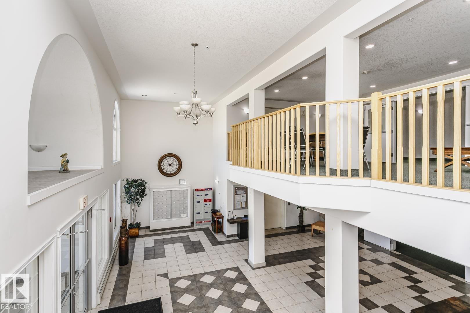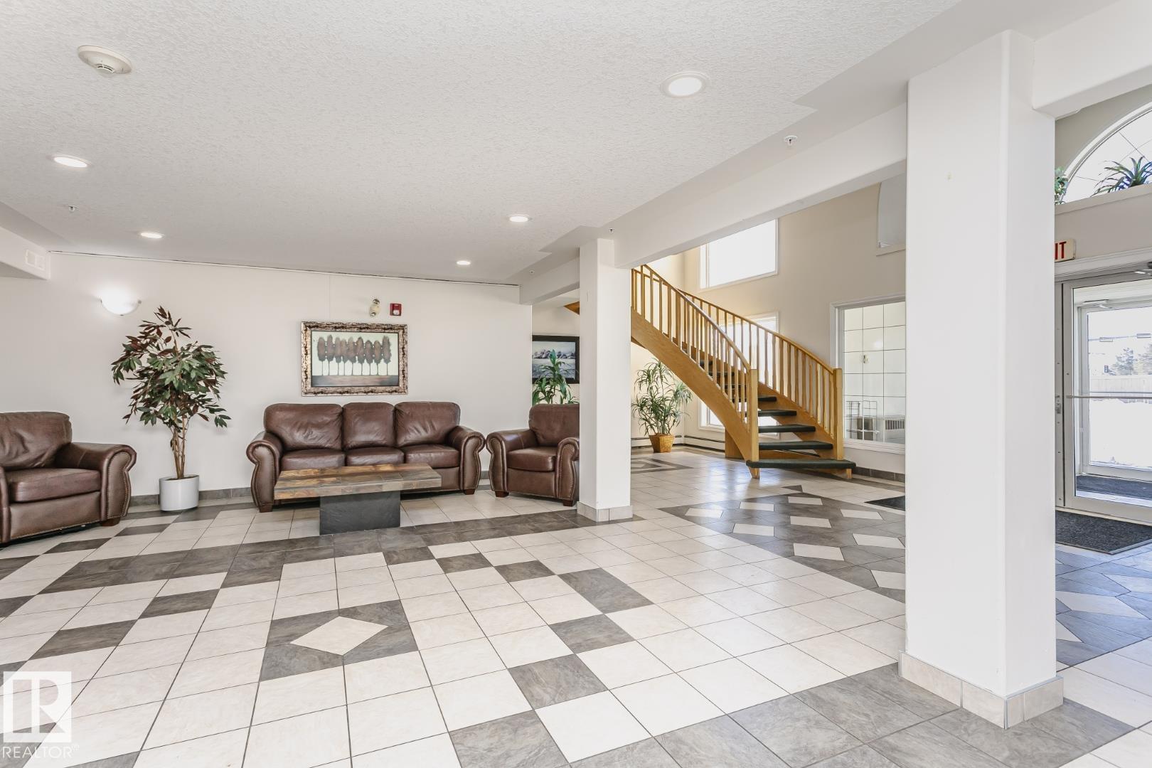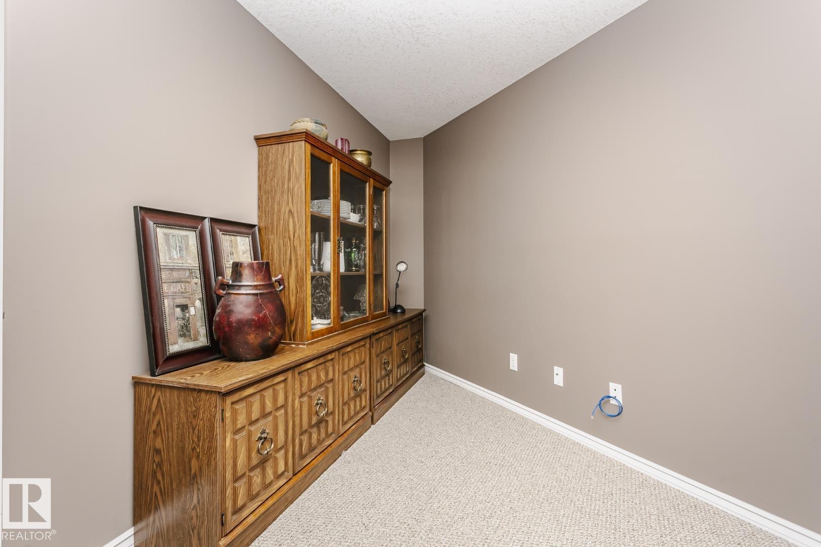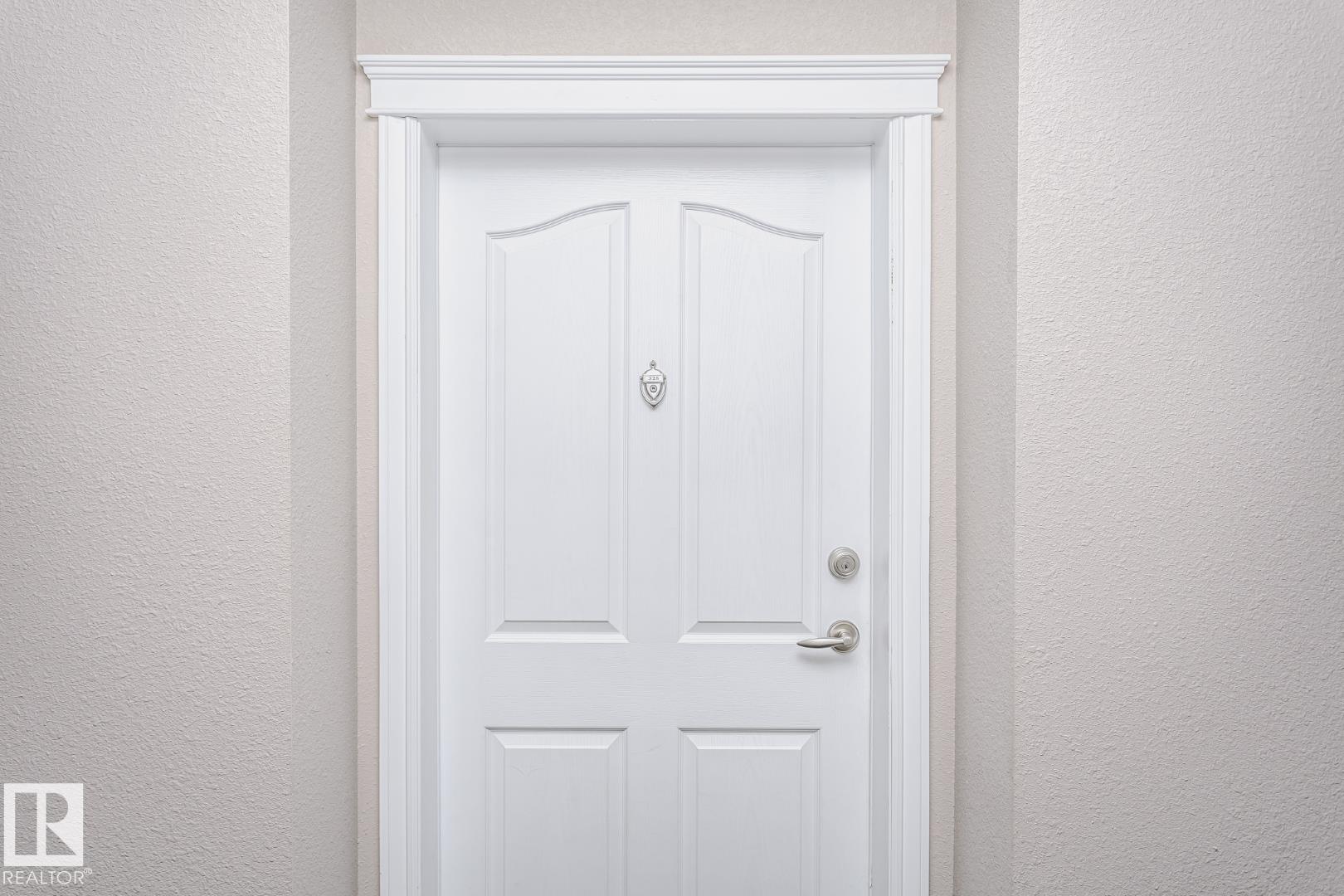 Great 1 bedroom PLUS den condo in Stony Plain's Cedar Brae Court. Boasting 911 sq ft, this suite offers a great layout! Spacious, functional kitchen with lots of counter and cupboard space, under cupboard lighting and black appliances. Opens to large living room with corner fireplace and patio doors leading to your east balcony overlooking green space. Master bedroom will comfortably fit a king bed, access door into 4-piece bathroom with jetted tub and HUGE walk-in closet. Various options for your den / flex room. Laundry room offers stackable washer & dryer, built-in shelving & room for your freezer. Underground parking stall with storage cage just steps from the elevator. Amenities include games room with exercise area & library, as well as separate building that can be rented / used for special events. Welcome Home!