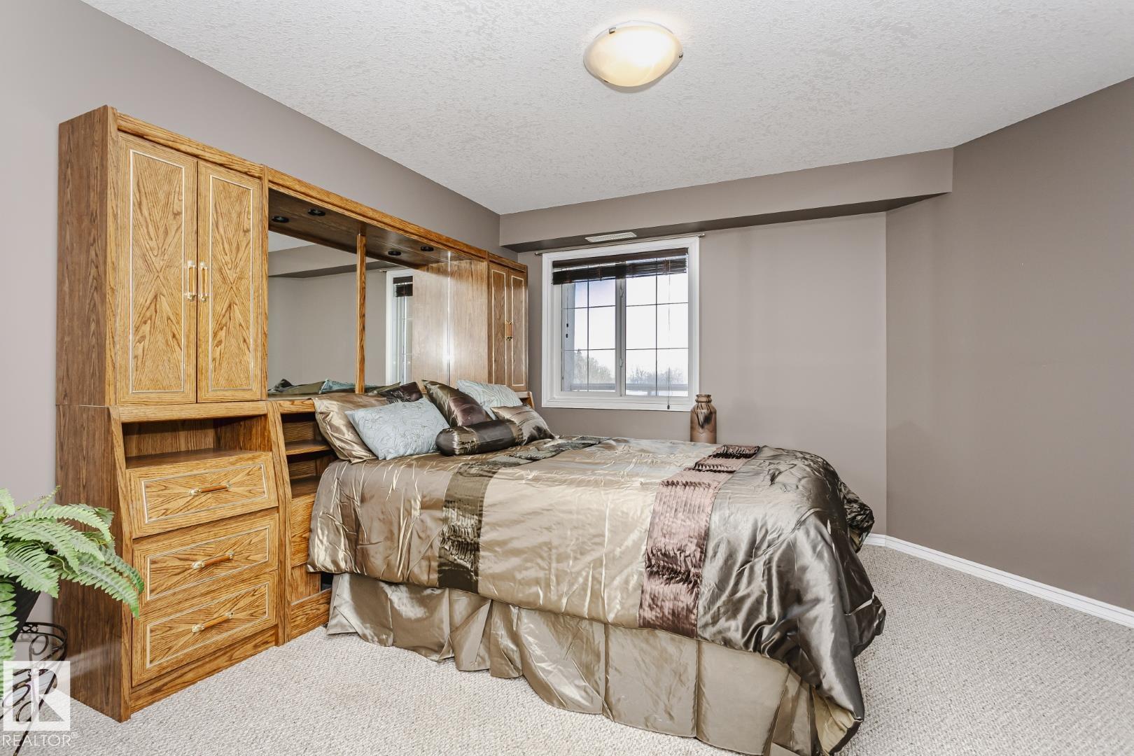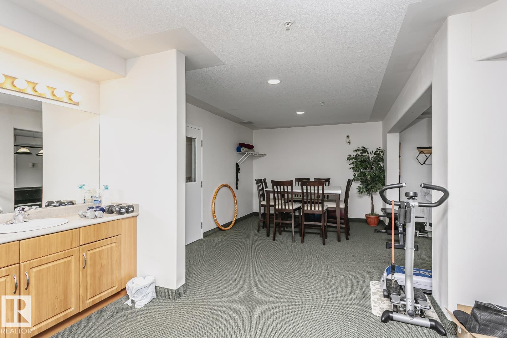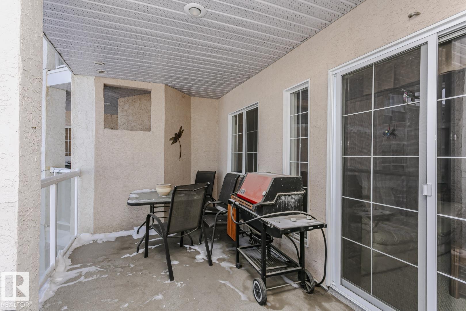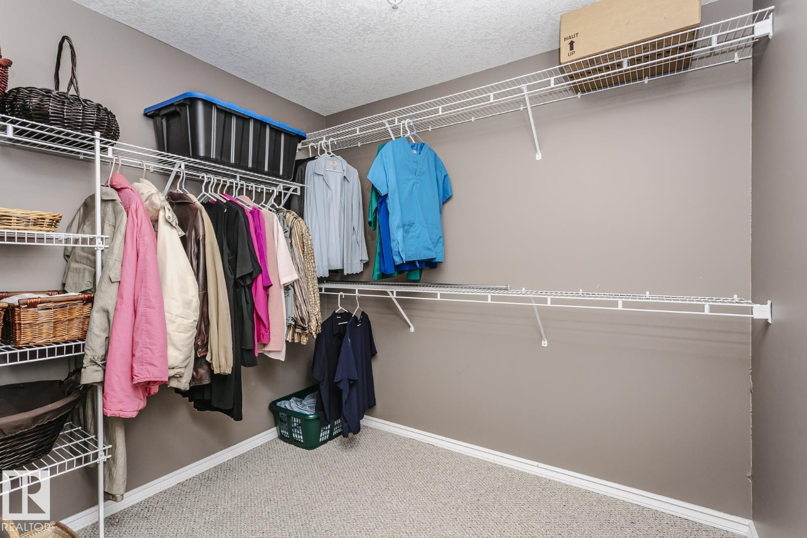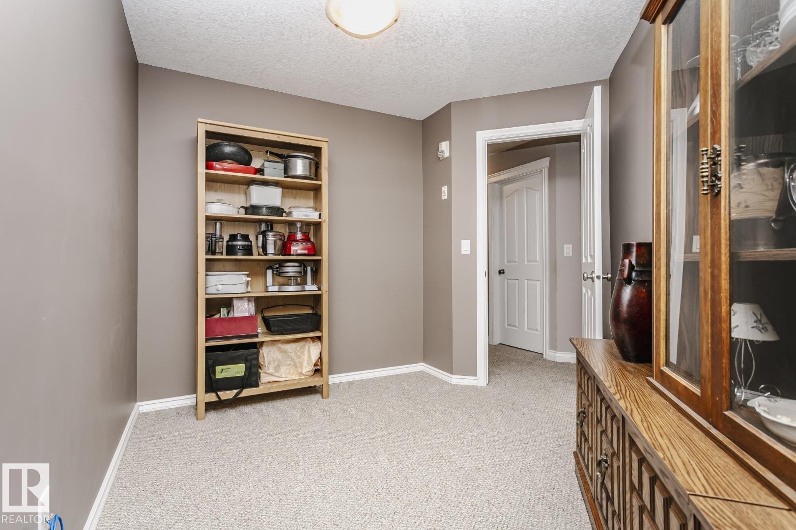 Great 1 bedroom PLUS den condo in Stony Plain's Cedar Brae Court. Boasting 911 sq ft, this suite offers a great layout! Spacious, functional kitchen with lots of counter and cupboard space, under cupboard lighting and black appliances. Opens to large living room with corner fireplace and patio doors leading to your east balcony overlooking green space. Master bedroom will comfortably fit a king bed, access door into 4-piece bathroom with jetted tub and HUGE walk-in closet. Various options for your den / flex room. Laundry room offers stackable washer & dryer, built-in shelving & room for your freezer. Underground parking stall with storage cage just steps from the elevator. Amenities include games room with exercise area & library, as well as separate building that can be rented / used for special events. Welcome Home!