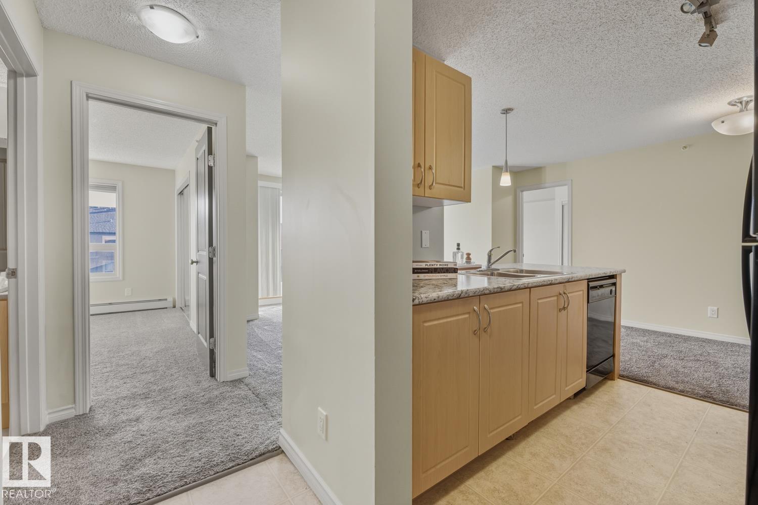 Adorable, well maintained 2 bedroom condo offering just under 800 sq ft of thoughtfully designed living space. Functional layout features eat up kitchen bar as well as a separate dining area. Perfect for everyday living and entertaining. The bright primary bedroom offers ample storage space, abundant natural light and a 4 piece ensuite. Additional highlights include in suite laundry, dedicated storage and a private balcony. Reasonable condo fees include heat, water and electricity. The unit comes with two assigned parking stalls in the heated underground parkade complete with wash bay. Professionally managed/full time on site manager. Ideally located close to shopping, amenities and transit all within a quiet, well established residential community.