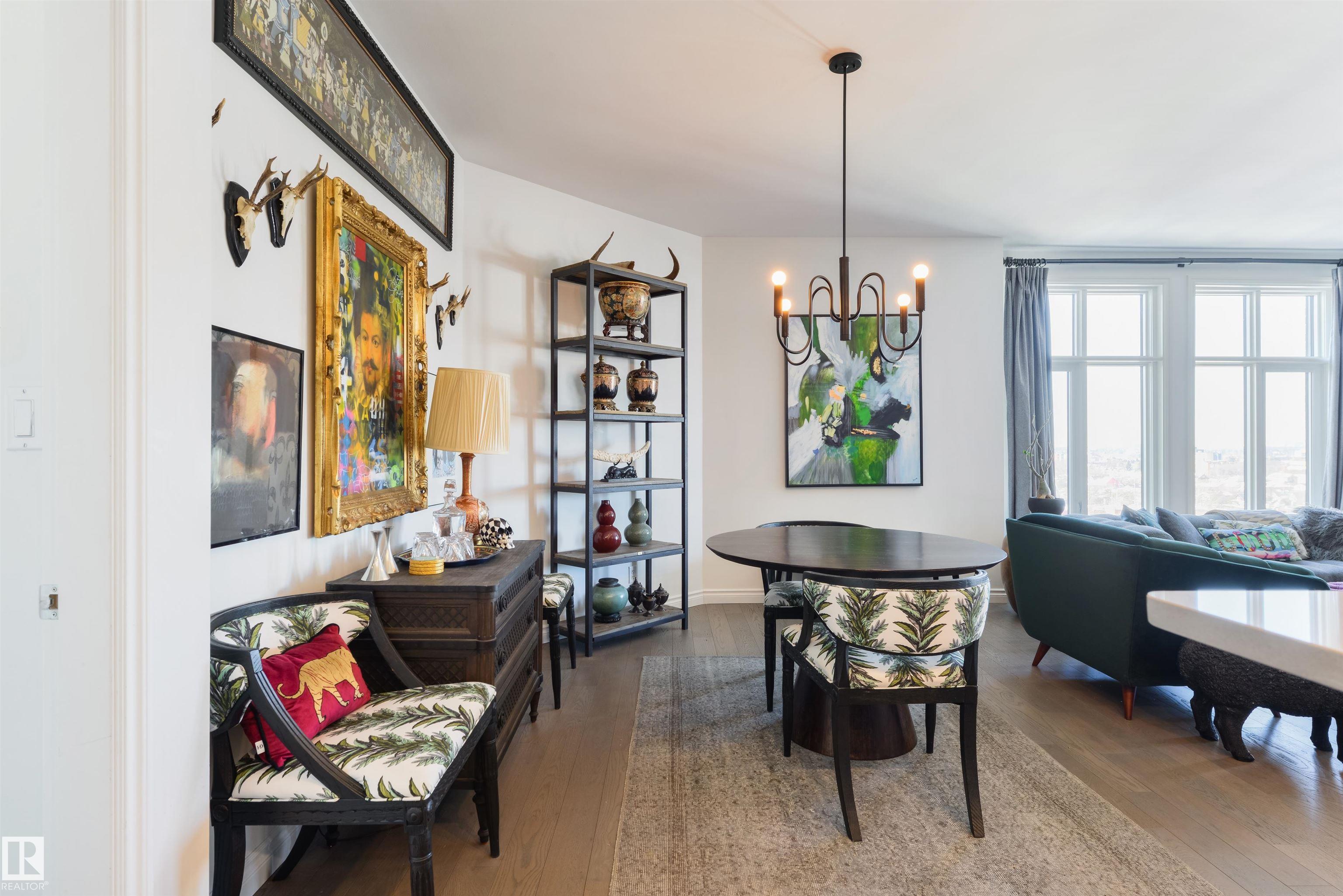 ELEGANT, SPACIOUS, & RENOVATED! Nestled in the EXCLUSIVELY GATED JASPER PROPERTIES, this END UNIT with CENTRAL AC, U/G PARKING, & 2 SIDE BY SIDE STORAGE exceeds expectations by combining EXPANSIVE SPACE with your LOCK & LEAVE LIFESTYLE! PRIVATELY POSITIONED on the 11TH FLOOR, NEW ENGINEERED HARDWOOD & SOARING CEILINGS greet you,highlighting the UPSCALE DESIGN. FABERGÉ MILK GLASS LIGHTS SHINE & UPDATED TRIPLE PANE WINDOWS frame UNOBSTRUCTED VIEWS of the DAZZLING SKYLINE! RECESSED LIGHTING presents the RENOVATED KITCHEN with 2 TONED CABINETRY, QUARTZ, CHEF?S APPLIANCES, SERVING BAR, & STYLISH BACKSPLASH.The kitchen opens to the DINING THAT CAN EASILY SEAT 8. Lounge in the LIVING ROOM with FIREPLACE & ACCESS TO THE PRIVATE COVERED BALCONY.Retreat in the LUXURIOUS PRIMARY & SPA ENSUITE with GORGEOUS ITALIAN TILE.The MULTIFUNCTIONAL DEN has ACCESS TO THE 3PC BATH.RIVER VALLEY LOCATION & STEPS TO LRT. EXTREMELY WELL MANAGED, ALL UTILITIES INCLUDED, PET FRIENDLY, A FULLY UPGRADED BUILDING and SIMPLY SPECTACULAR!