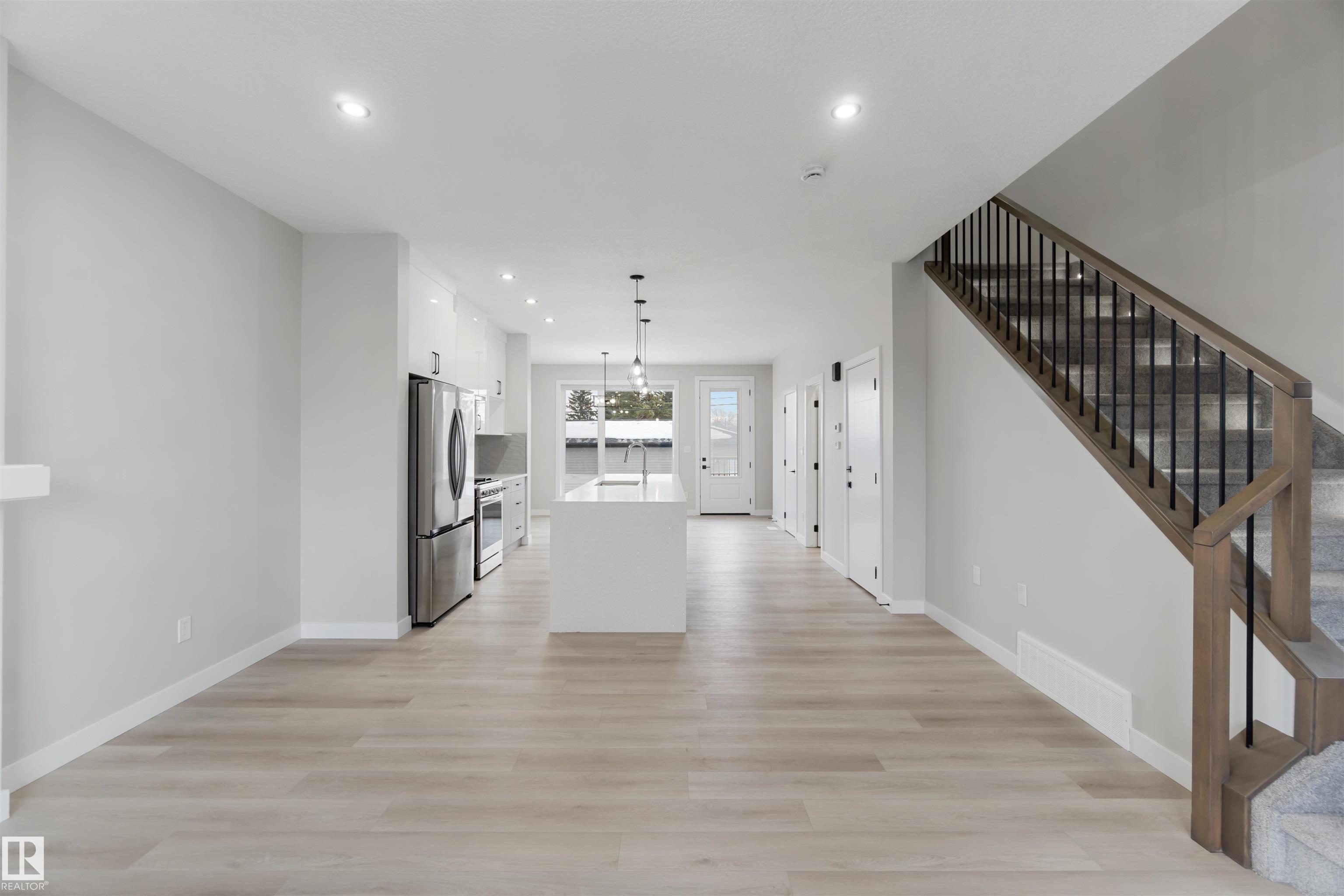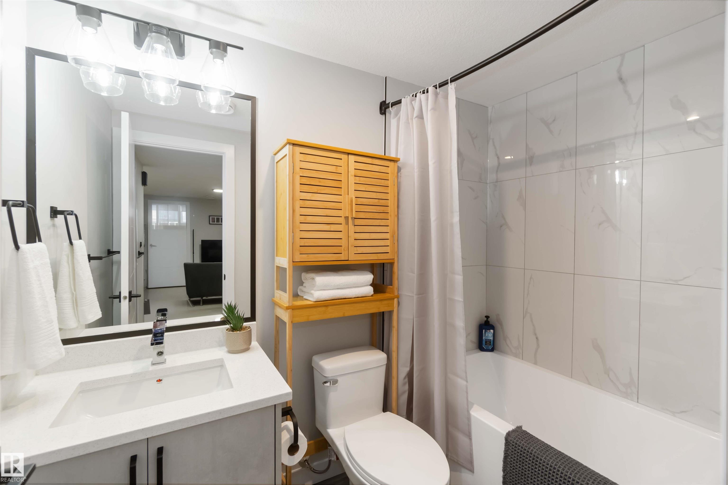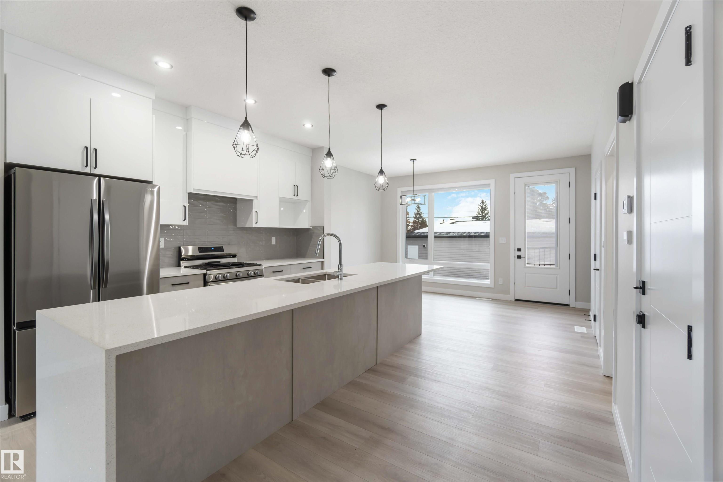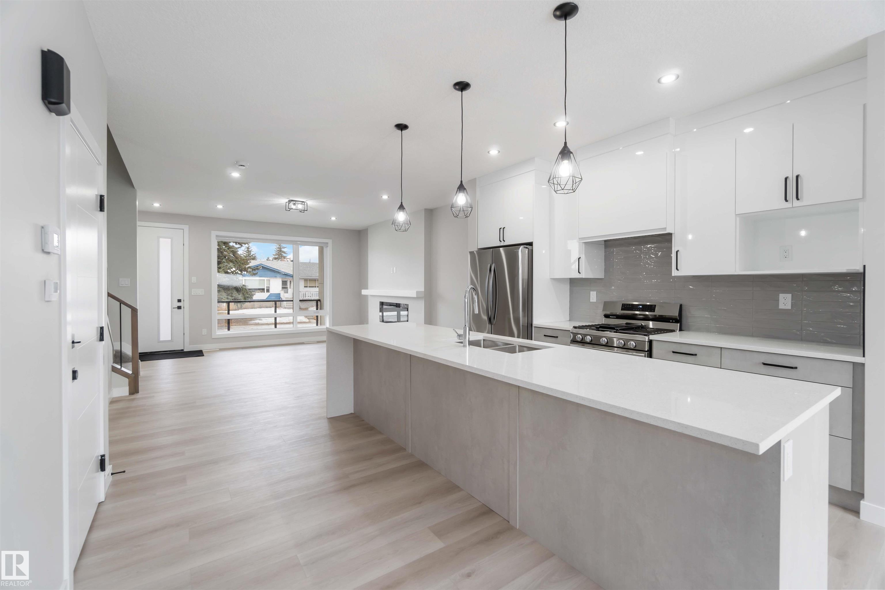 Welcome to this fully finished luxury duplex offering exceptional style featuring a legal basement suite with added income potential. With 5 bedrooms and 3.5 bathrooms in total, this property is perfectly suited for homeowners looking to offset their mortgage or investors seeking a turnkey opportunity. The exterior showcases attractive stucco siding, a covered front porch, and a double detached garage. Inside, you?ll find modern finishes throughout, including quartz countertops, a massive kitchen island, ceramic tile and vinyl plank flooring, and a stylish electric fireplace that anchors the main living space. Upstairs, the spacious primary bedroom retreat features a private balcony, a walk-in closet, and a luxurious ensuite complete with a soaker tub and separate standing shower. Two additional bedrooms and a 4-piece bath complete the upper level. The legal basement suite includes 2 bedrooms, 4-piece bath, kitchen, and living room. An outstanding opportunity you won?t want to miss.