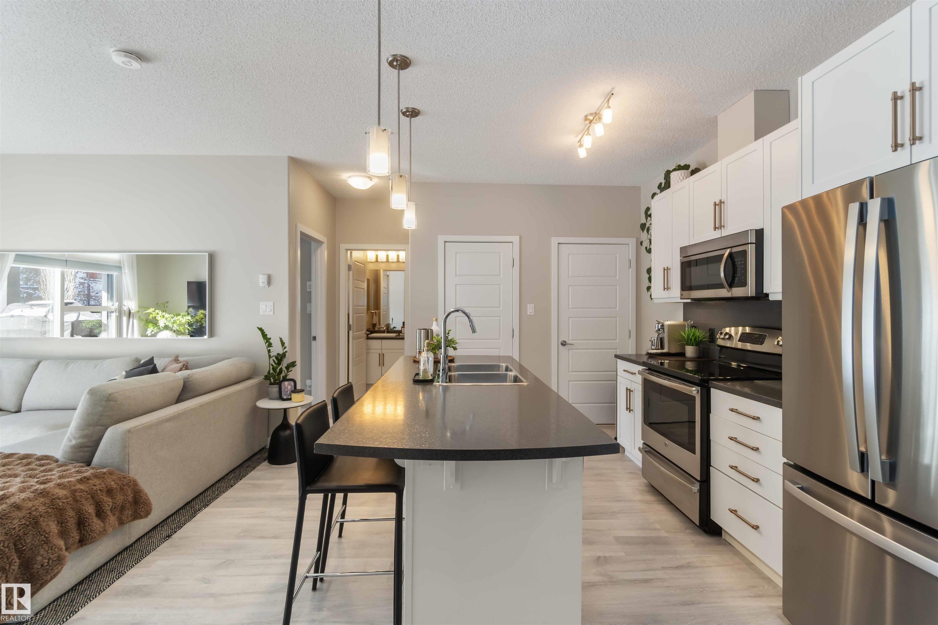 Welcome to L'Attitude Studios ? a stylish courtyard-facing unit offering 2 BDRMS, 2 BATH & 2 parking stalls. Natural light fills the bright living room & dining area, while the kitchen impresses with a walk-in pantry, modern white cabinetry, large island & stainless steel appliances. The spacious primary BDRM features a walk-through closet & 3pc ensuite, with the second BDRM offering a large closet. Bedrooms on opposite sides make for an ideal layout ? perfect for roommates or a home office. In-suite laundry included. A heated underground stall with storage cage & a powered exterior stall near the entrance round out the package. Windermere Currents is right across the street with shopping, restaurants & recreation, plus parks, trails & a K-9 school just steps away. The well-maintained building features a social room with pool table, fully equipped gym & guest suite. The condo corporation is financially strong with $500,000 in reserve & NO upcoming assessments. Quick access to Anthony Henday Drive & QE2!