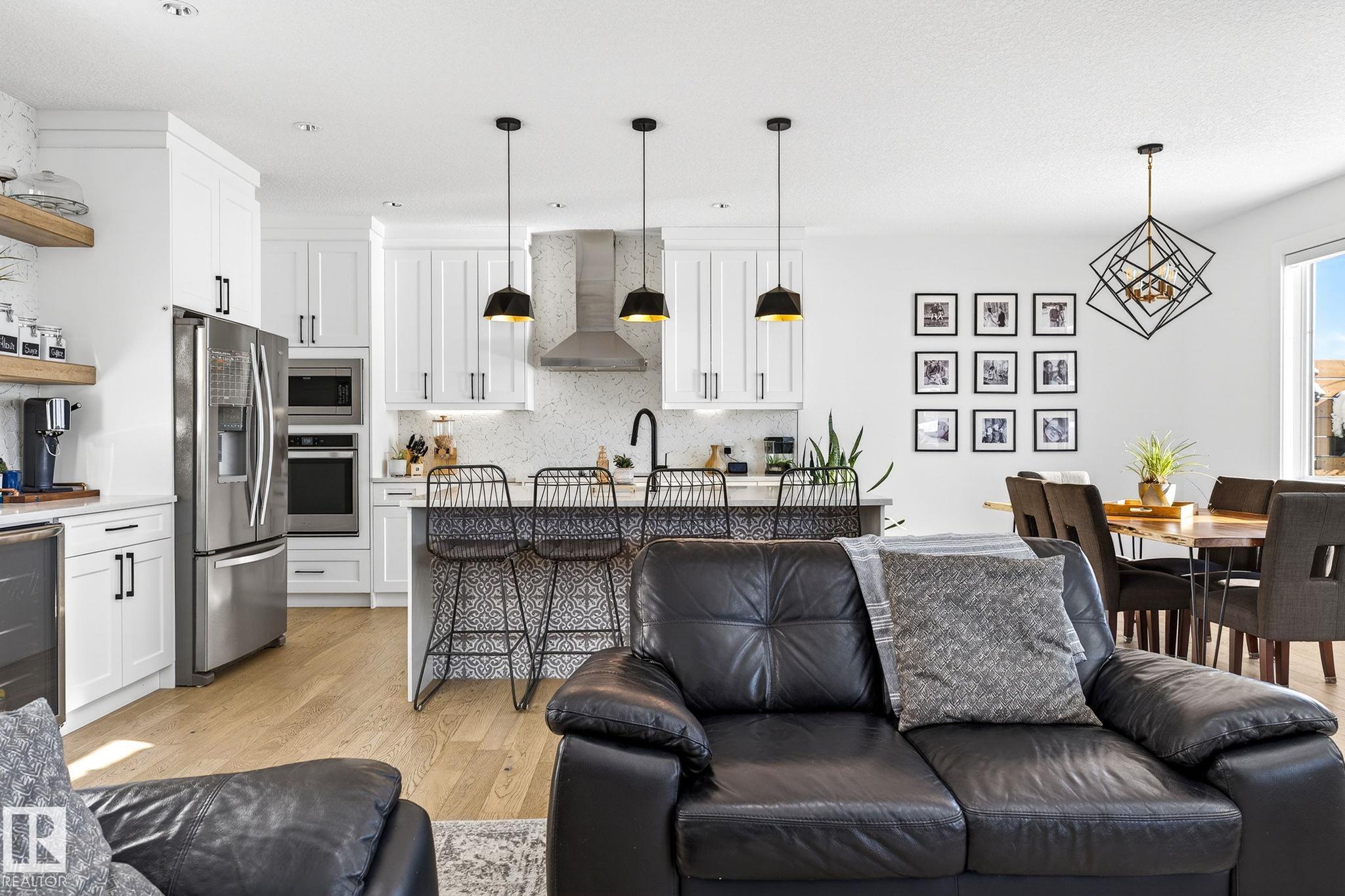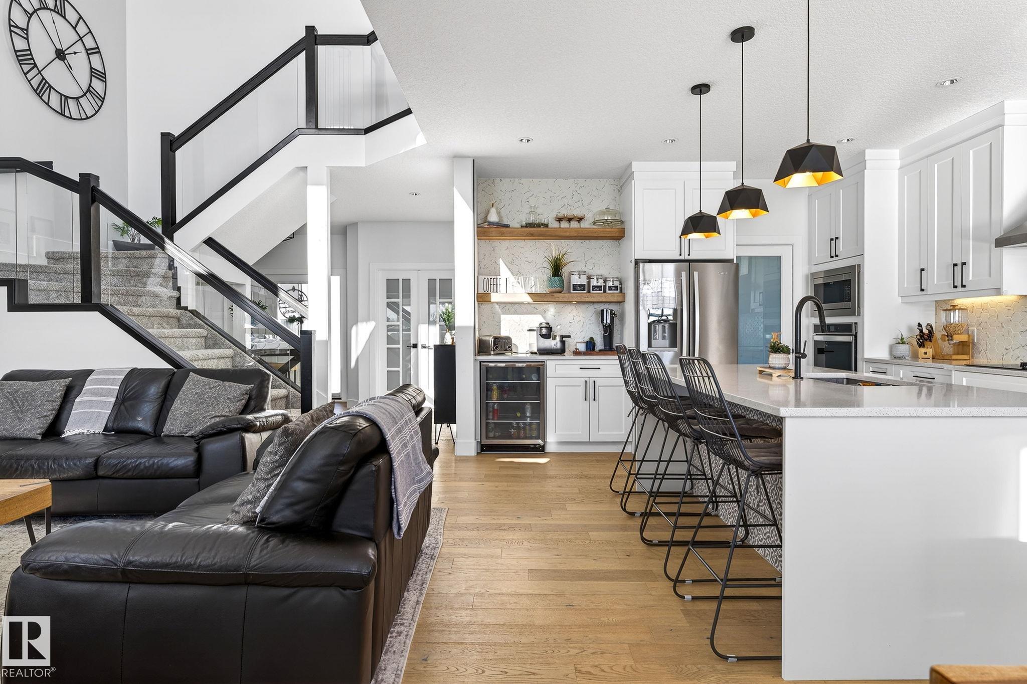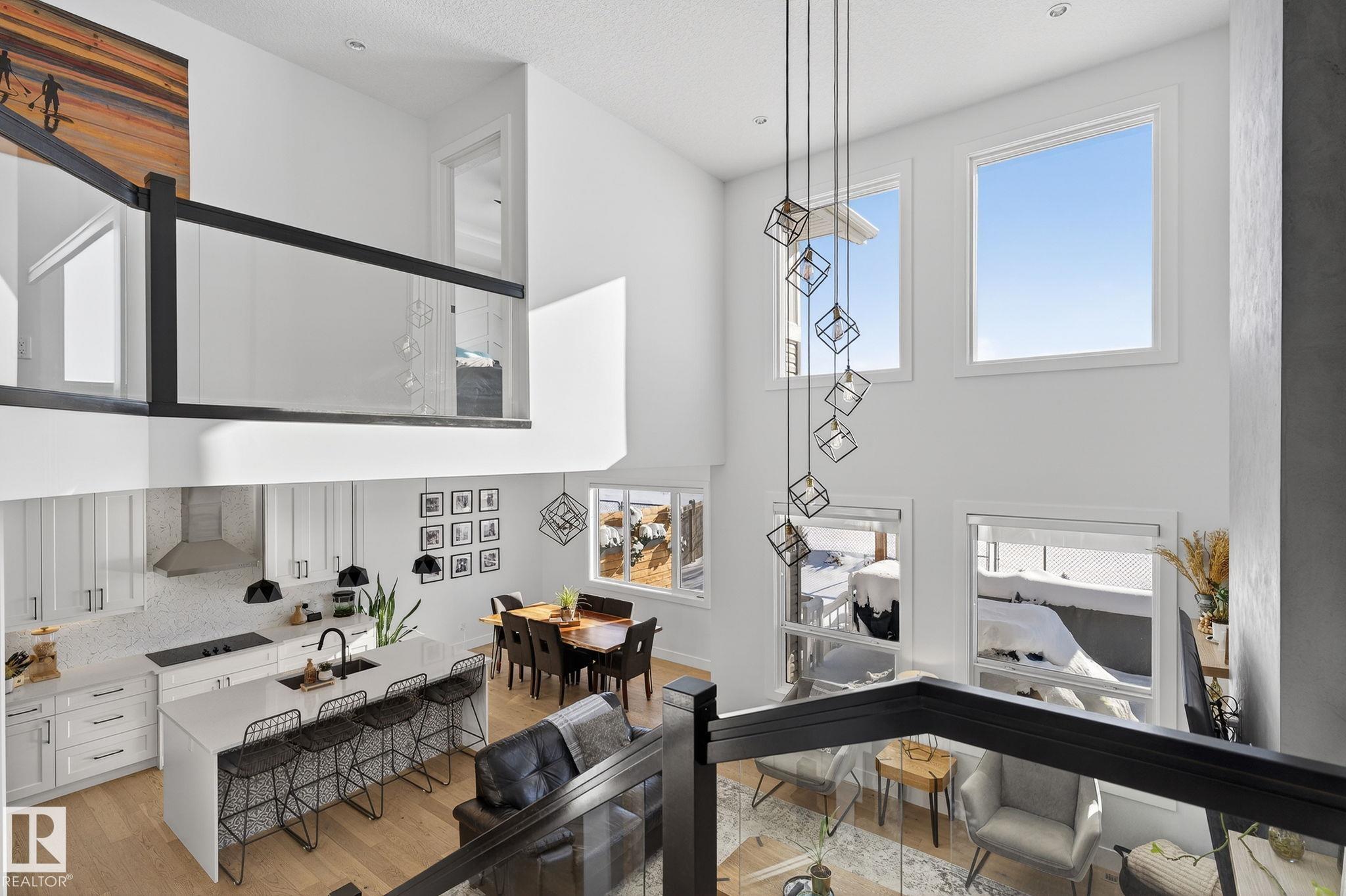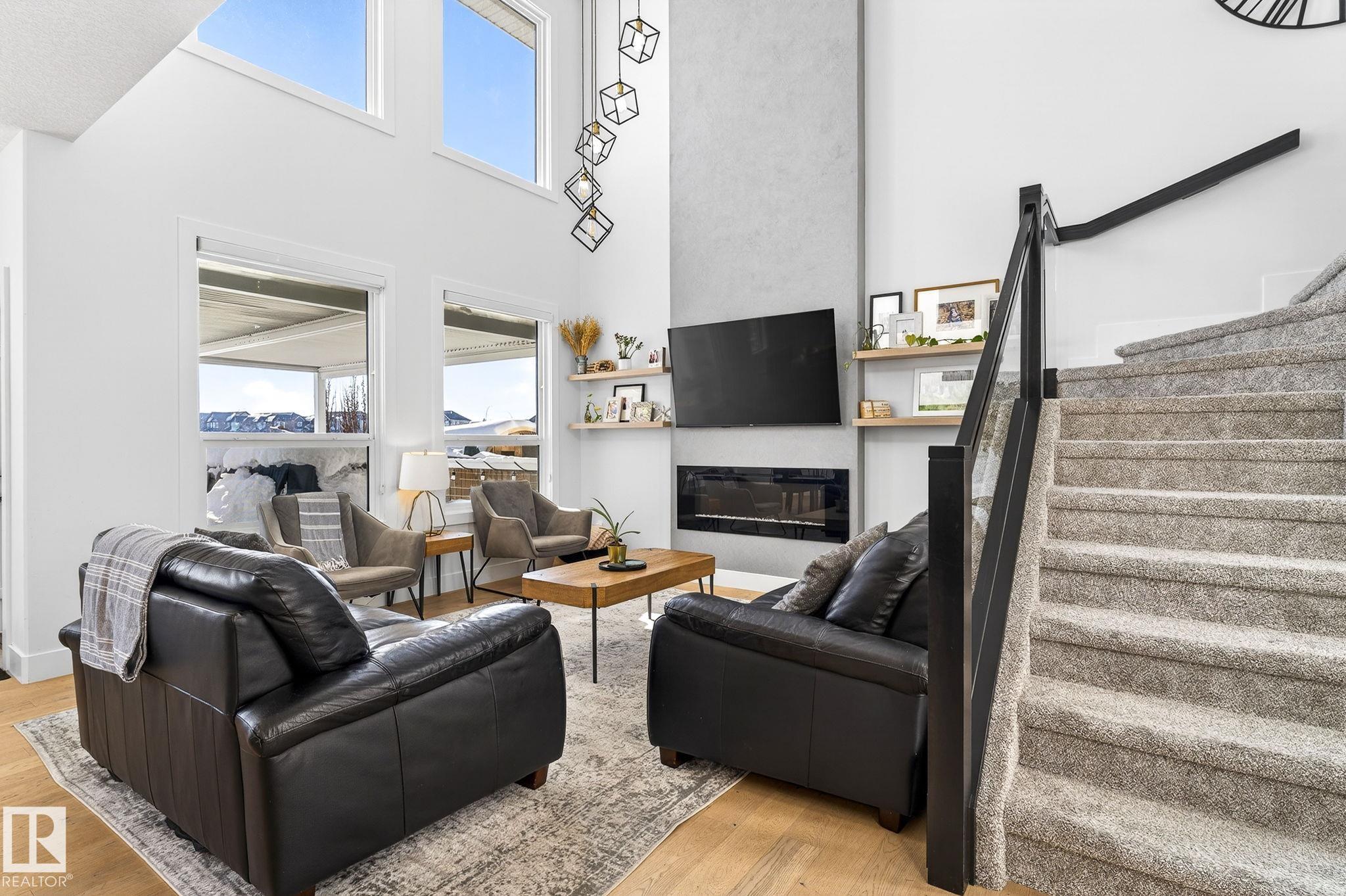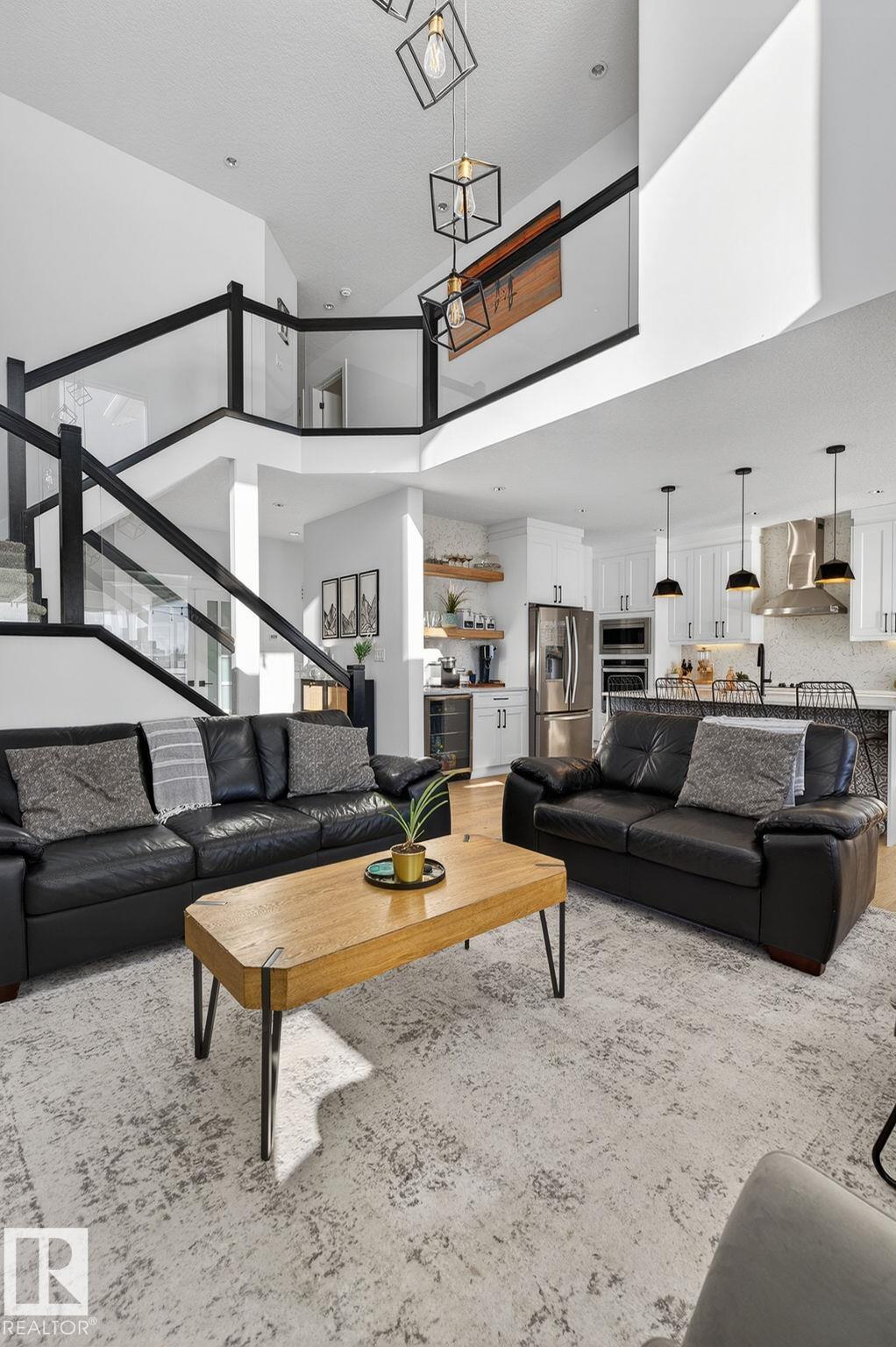 Situated in the established, family-friendly community of Harvest Ridge in Spruce Grove, this beautifully appointed two-storey offers 5 bedrooms, 3.5 bathrooms, and 2,312 sq ft of thoughtfully designed living space where comfort meets elevated everyday living. Soaring ceilings and an open-to-below design flood the home with natural light, creating an airy feel while maintaining warm, connected spaces for entertaining and family life. Rich hardwood flooring spans the main and upper levels, adding timeless character throughout.The main floor features a dedicated den ideal for a home office, while upstairs offers a spacious bonus room perfect for movie nights or a kids? retreat. Enjoy seamless indoor-outdoor living with a composite deck and paved patio backing green space. The primary suite boasts a spa-inspired ensuite with heated floors, and the fully finished basement provides flexible space for recreation or guests. Double attached garage, close to parks, trails & shopping.