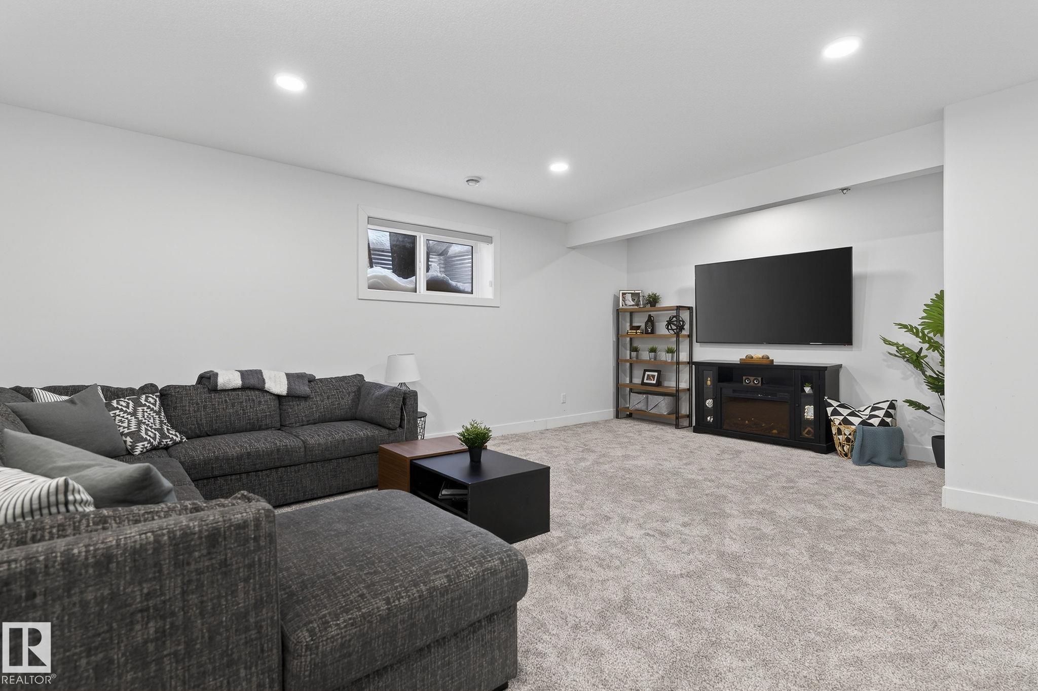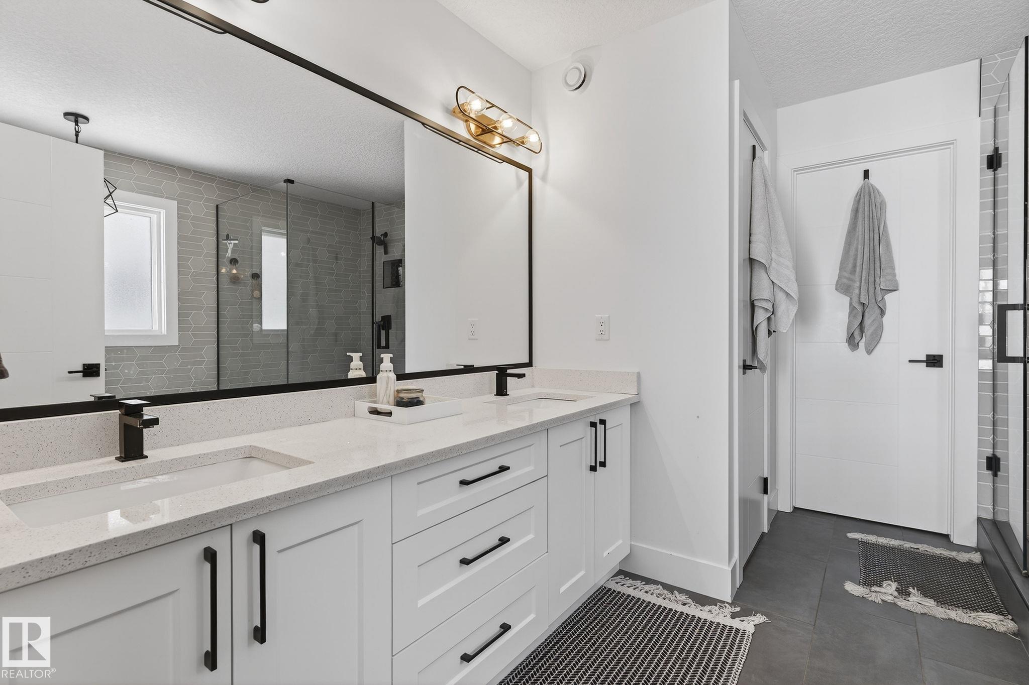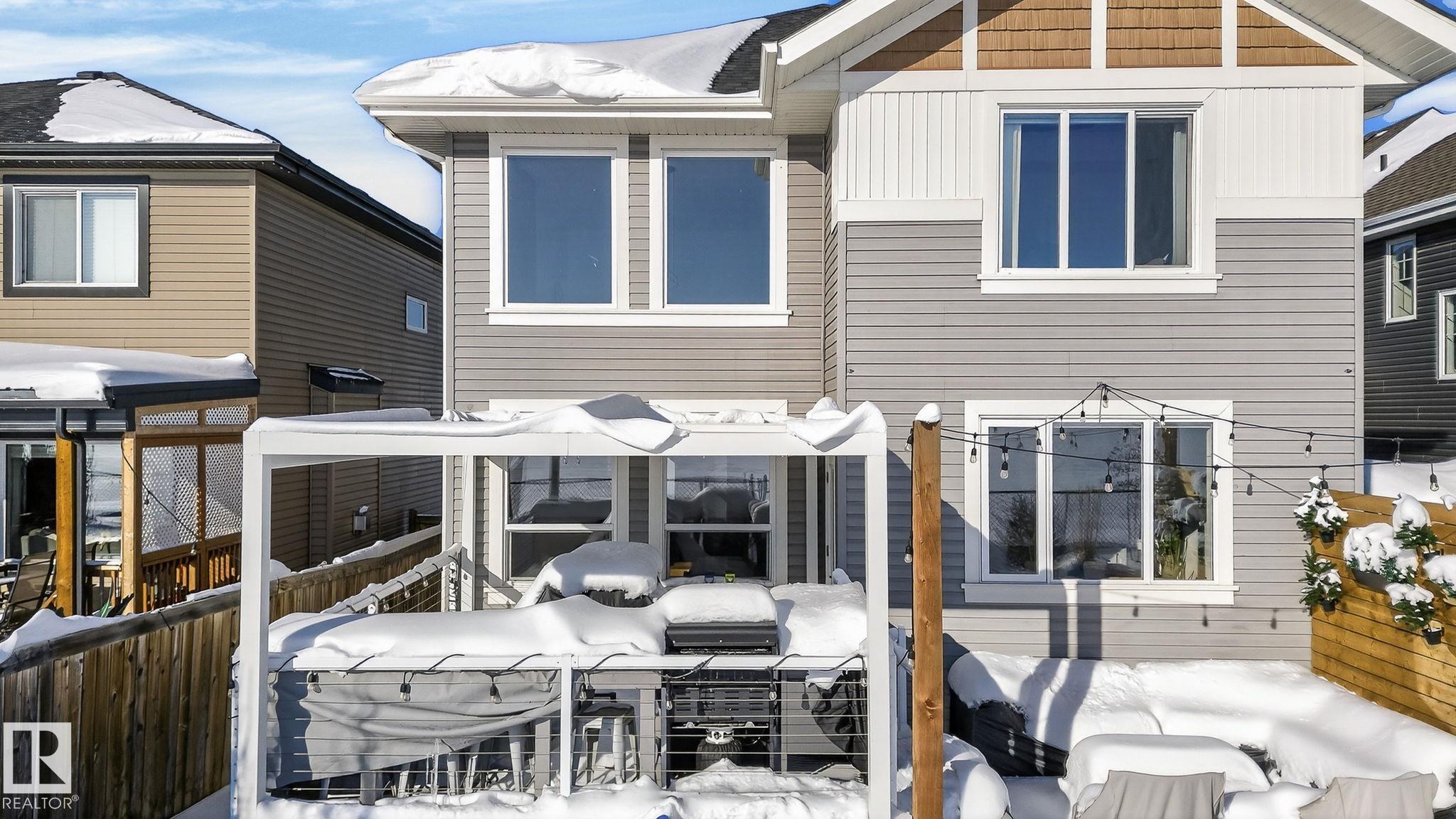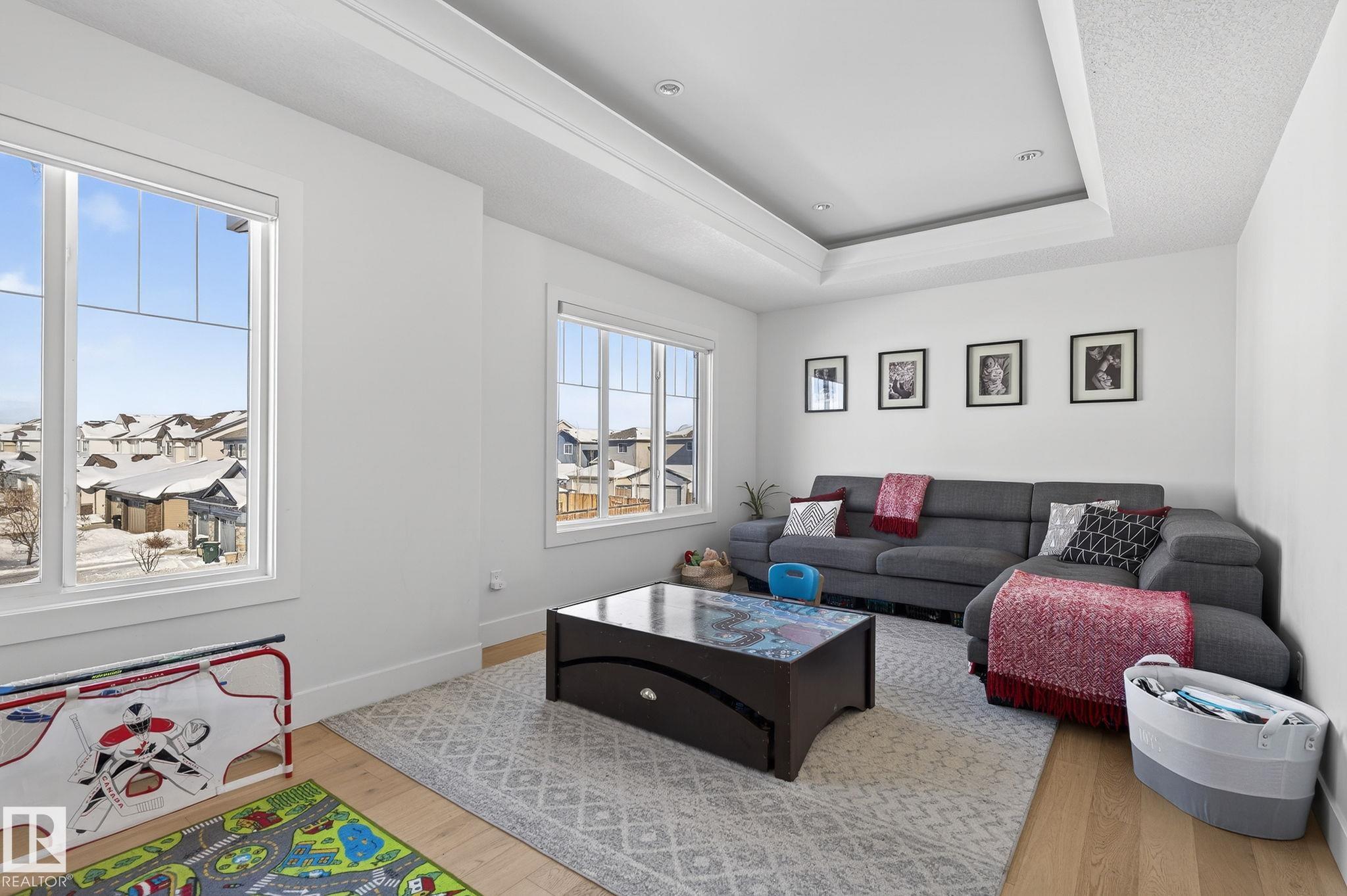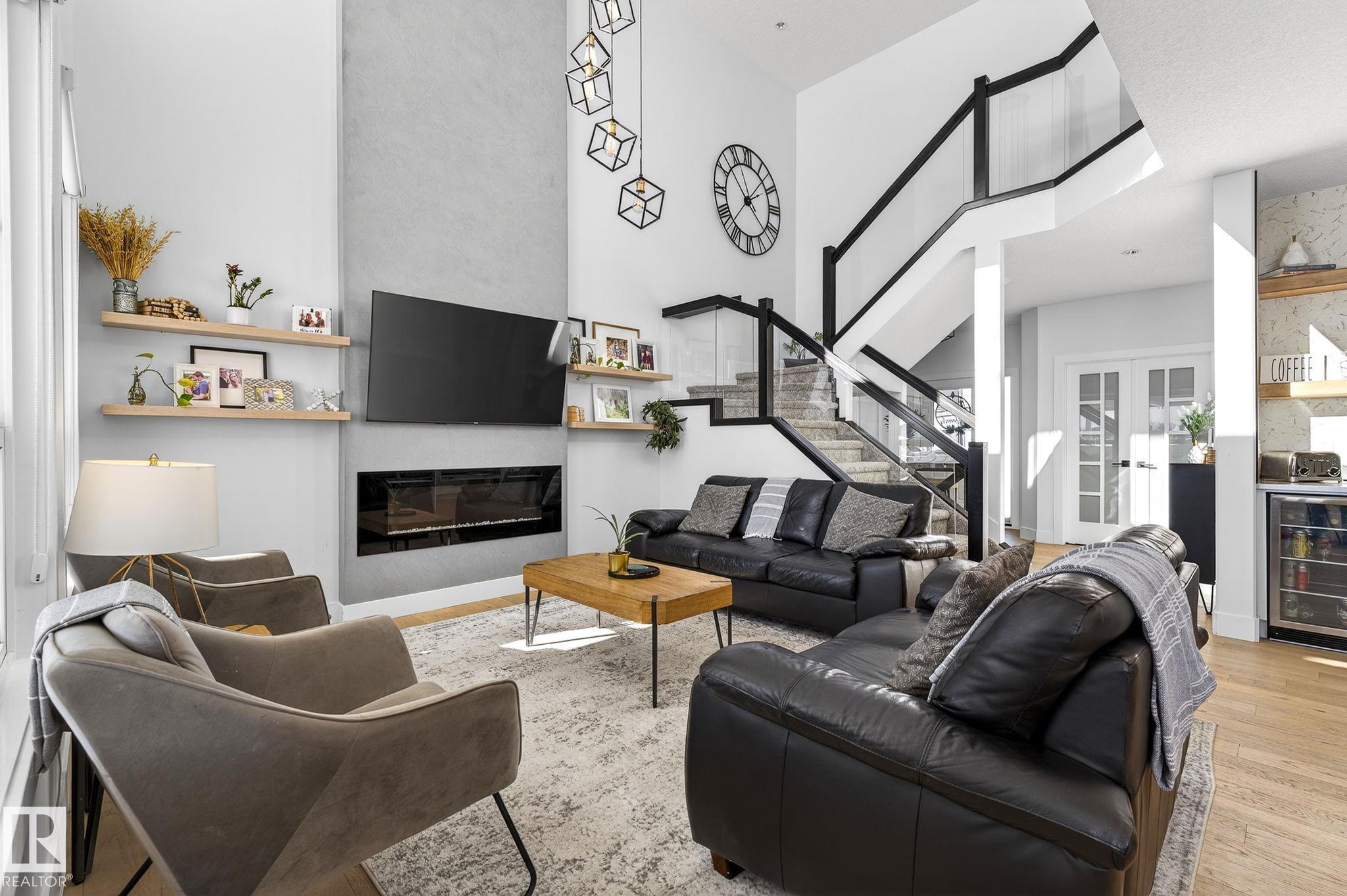 Situated in the established, family-friendly community of Harvest Ridge in Spruce Grove, this beautifully appointed two-storey offers 5 bedrooms, 3.5 bathrooms, and 2,312 sq ft of thoughtfully designed living space where comfort meets elevated everyday living. Soaring ceilings and an open-to-below design flood the home with natural light, creating an airy feel while maintaining warm, connected spaces for entertaining and family life. Rich hardwood flooring spans the main and upper levels, adding timeless character throughout.The main floor features a dedicated den ideal for a home office, while upstairs offers a spacious bonus room perfect for movie nights or a kids? retreat. Enjoy seamless indoor-outdoor living with a composite deck and paved patio backing green space. The primary suite boasts a spa-inspired ensuite with heated floors, and the fully finished basement provides flexible space for recreation or guests. Double attached garage, close to parks, trails & shopping.