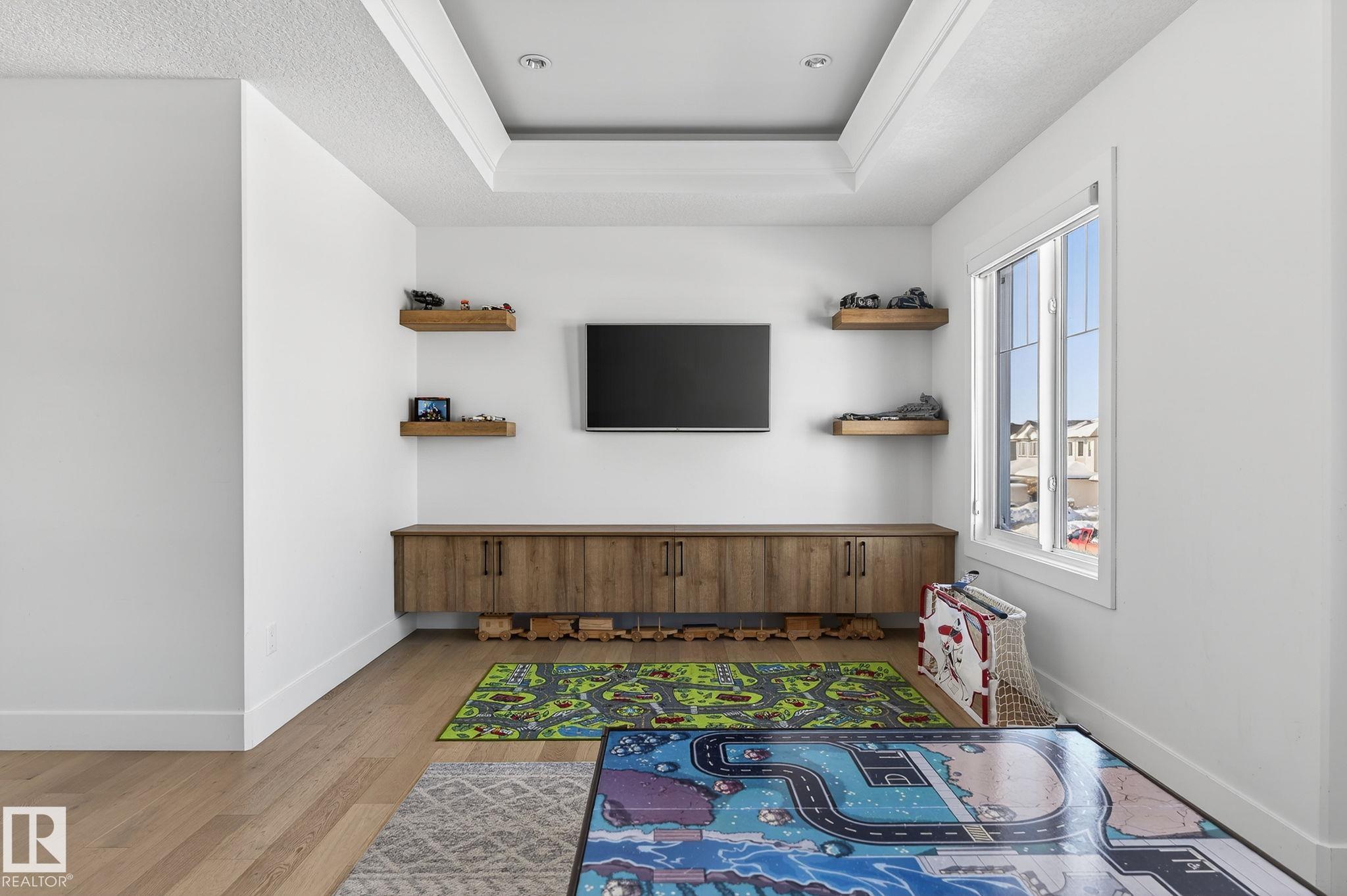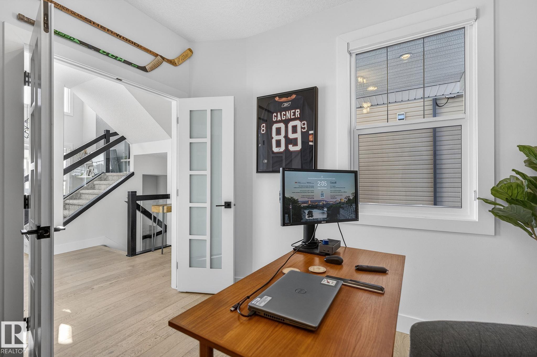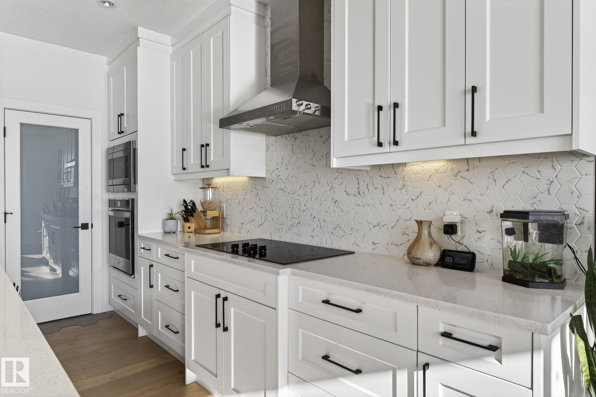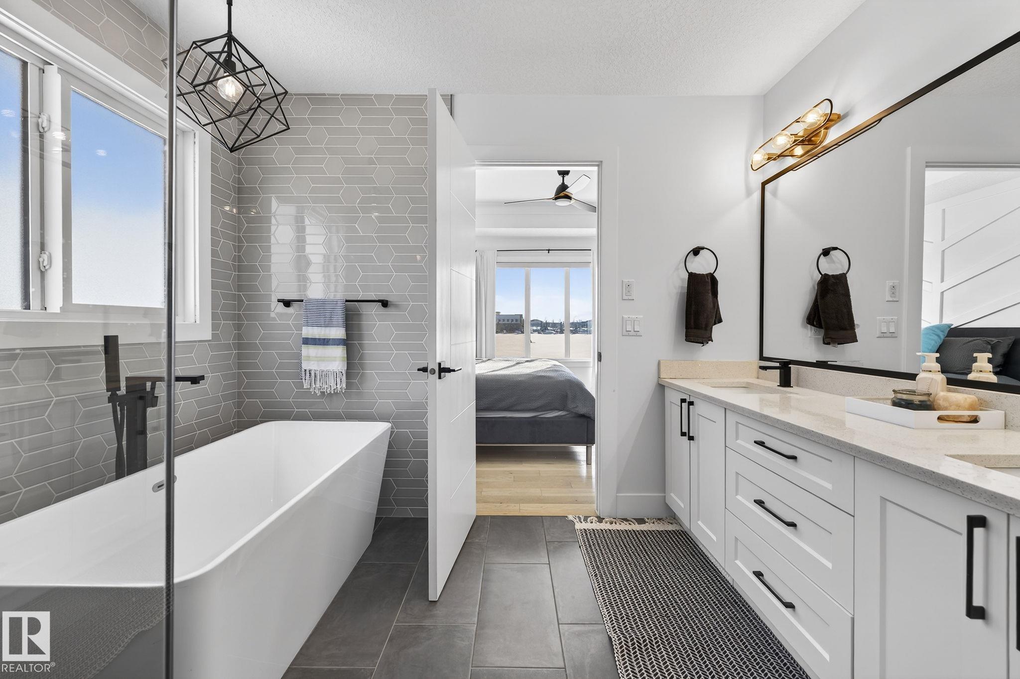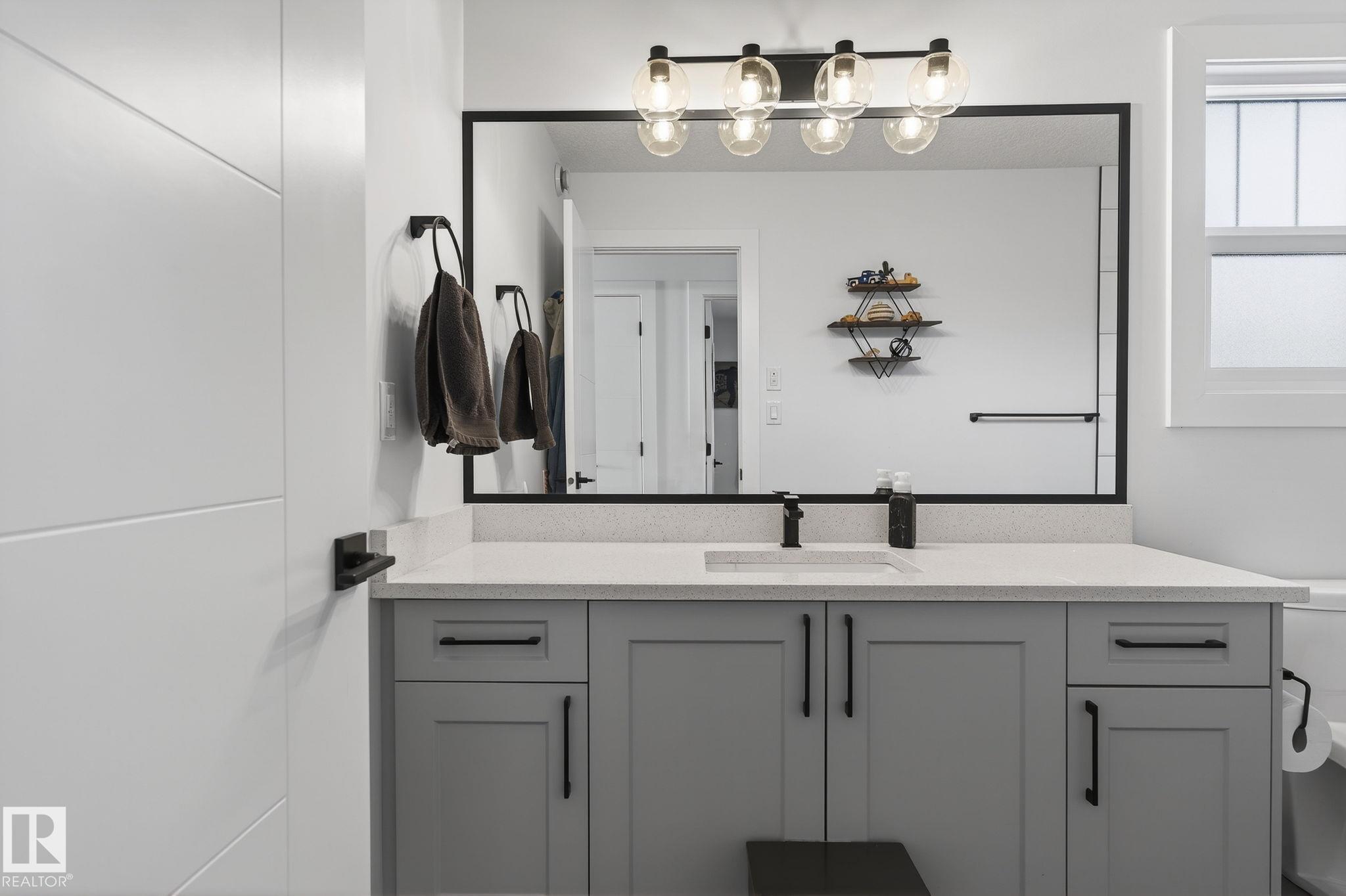 Situated in the established, family-friendly community of Harvest Ridge in Spruce Grove, this beautifully appointed two-storey offers 5 bedrooms, 3.5 bathrooms, and 2,312 sq ft of thoughtfully designed living space where comfort meets elevated everyday living. Soaring ceilings and an open-to-below design flood the home with natural light, creating an airy feel while maintaining warm, connected spaces for entertaining and family life. Rich hardwood flooring spans the main and upper levels, adding timeless character throughout.The main floor features a dedicated den ideal for a home office, while upstairs offers a spacious bonus room perfect for movie nights or a kids? retreat. Enjoy seamless indoor-outdoor living with a composite deck and paved patio backing green space. The primary suite boasts a spa-inspired ensuite with heated floors, and the fully finished basement provides flexible space for recreation or guests. Double attached garage, close to parks, trails & shopping.