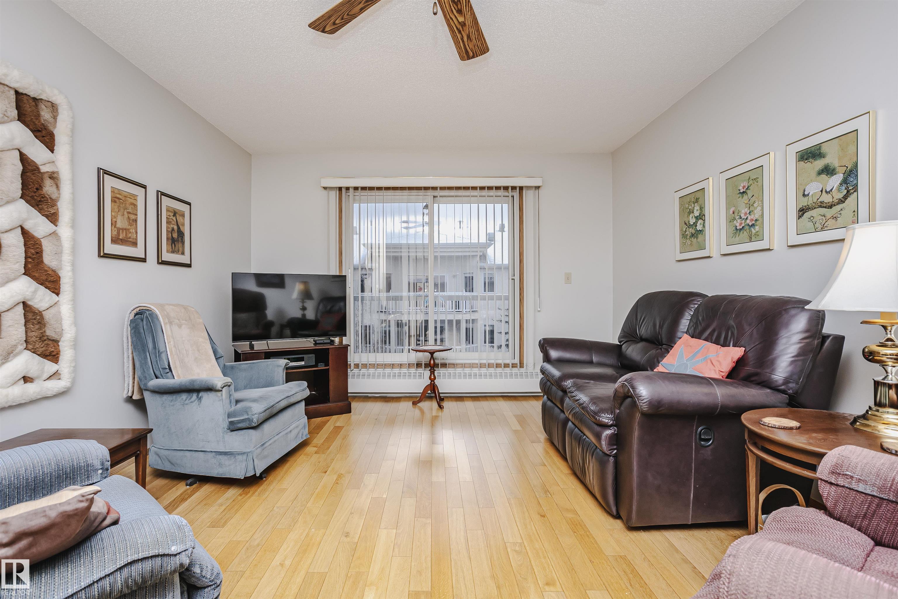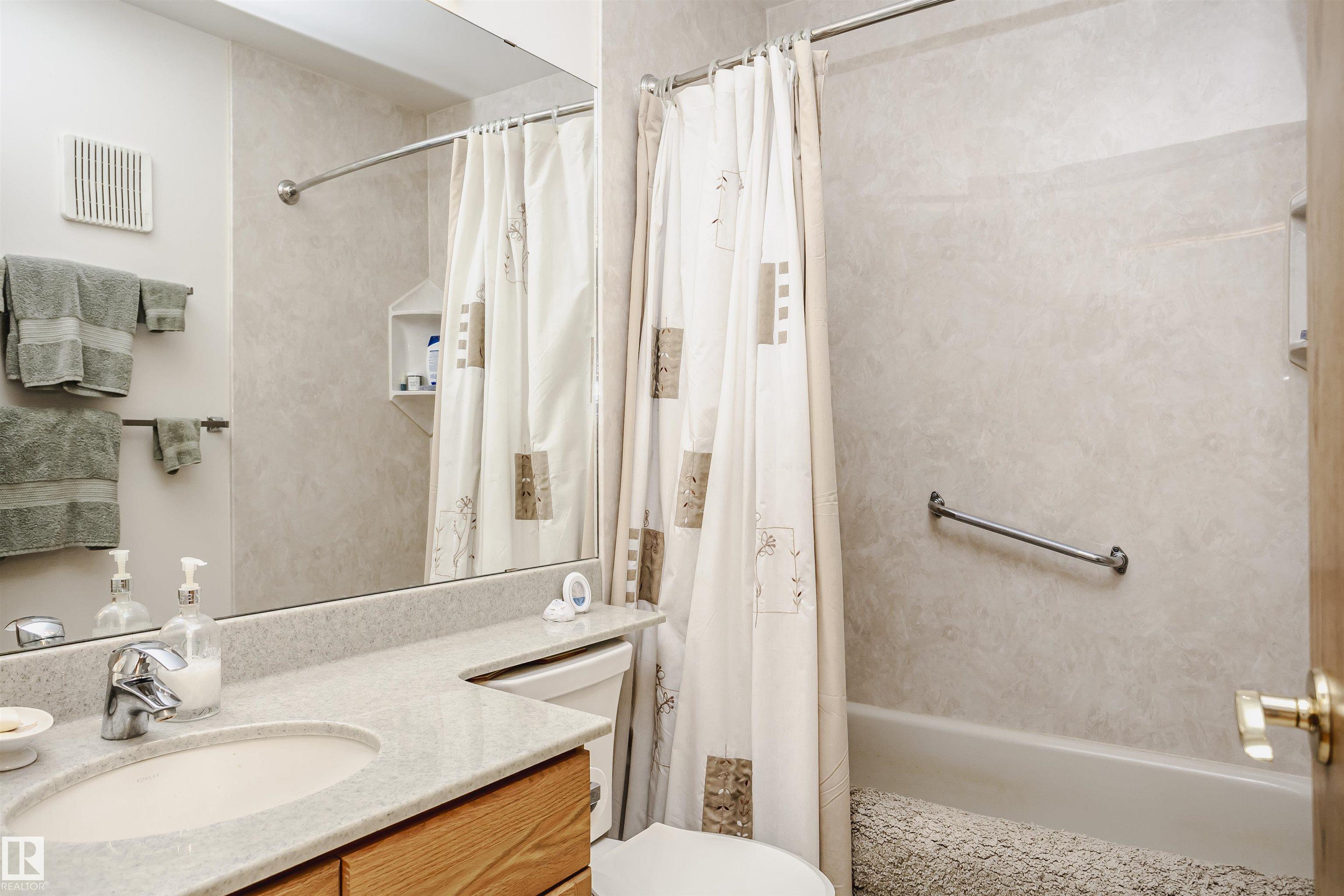 Welcome home to this wonderful 2 bedroom, 2 bathroom Adult condo, complete with all the amenities one could hope for. The buildings were built by a great builder and are very solid! The building has a library/meeting room, exercise room, games room, social room and workshop! The unit is very spacious, big LR, bedrooms, comfortable DR and kitchen plus a large Laundry/Storage room. The unit has always been very well maintained, plus has had numerous upgrades in recent years. The bedrooms are on opposite sides of the LR for privacy and 3 rooms have ceiling fans. The windows were replaced an couple years ago and they had Be Cool Vinyl installed which reduces summer heat and has a mirror like finish on the outside for great privacy. The views off the balcony is a green space and park to the side. Heated parking plus storage cage. Even the parkade has a bathroom! Conveniently located minutes from Century Park (shopping plus transportation). A great place to enjoy your soon to be or current retirement years.
