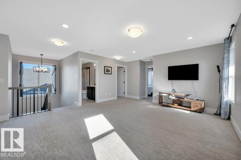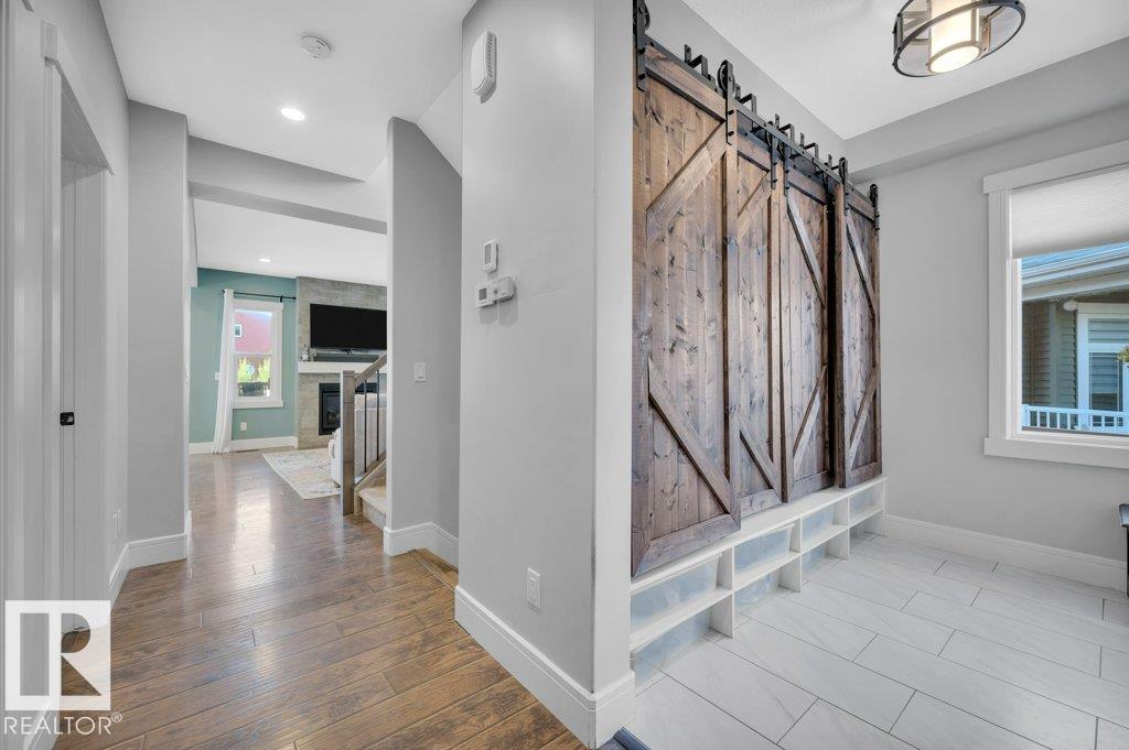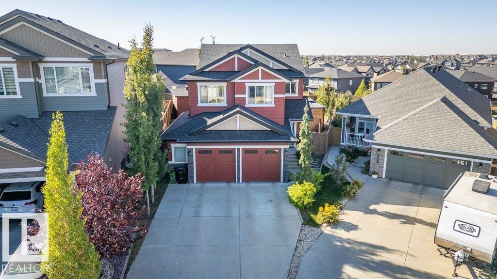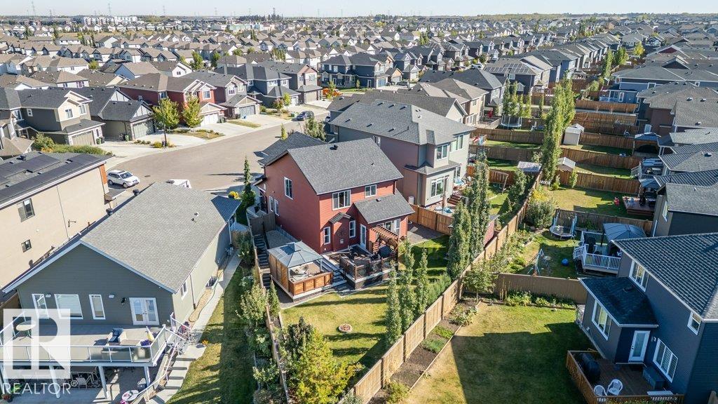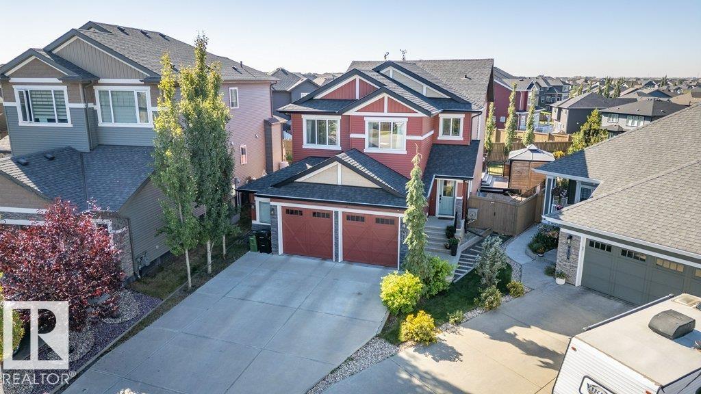 Welcome to the Walker Community! This 2 storey home shines with pride of ownership. Offering luxury and comfort on 3 levels. Main floor welcomes you to a large foyer, extensive closet space, bathroom and den/office room. Access the garage from foyer for winter convenience. Open concept is fantastic for entertaining, gas F/P, numerous yard facing windows give natural light. Gourmet kitchen with walk-in pantry, 6 burner gas stove and large island, all opening up to beautiful landscaped yard with gazebo, tiered deck, numerous plants and trees. All fenced in to perfection. The upper level hosts laundry room, 2 spacious bedrooms and impressive primary suite with spa-like ensuite to enjoy and pamper yourself. Fully finished basement is set up with Edmonton Oilers themed theatre room and bar. Large full basement bathroom with floor to ceiling tiles is shower are complimented with LED lighting! All this just steps away from walking paths, schools and parks. Move right in!