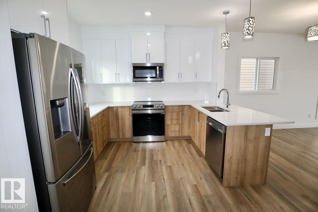 LEGALLY SUITED home in one of Fort Saskatchewan?s most sought-after neighbourhoods! The bright, open-concept upper unit is perfect for entertaining, highlighted by stunning modern finishes including durable vinyl plank flooring and quartz countertops. It features 3 bedrooms, 2.5 baths, convenient upstairs laundry, and a luxurious primary suite with double sinks and a generous walk-in closet. The spacious downstairs one-bedroom suite is larger than most in the area and has its own side entrance, tall ceilings, large windows that bring in natural light and a strong rental history. Prime location just steps to the dog park, river valley, Andy?s Playground, WRE, ball diamonds, and more. Currently it is professionally managed as a rental which can be seamlessly transferred to new owner if desired! A TURNKEY investment and quality family-friendly home!