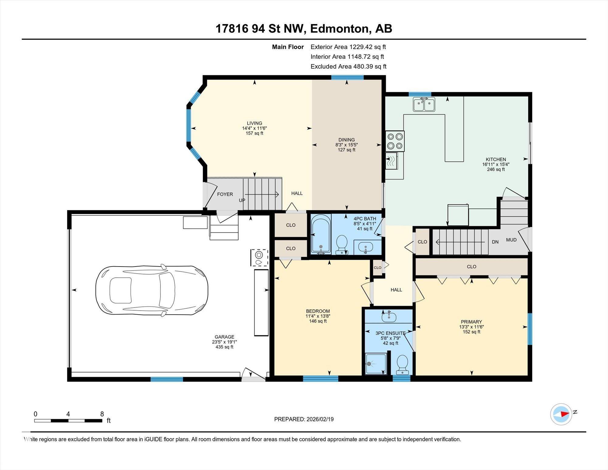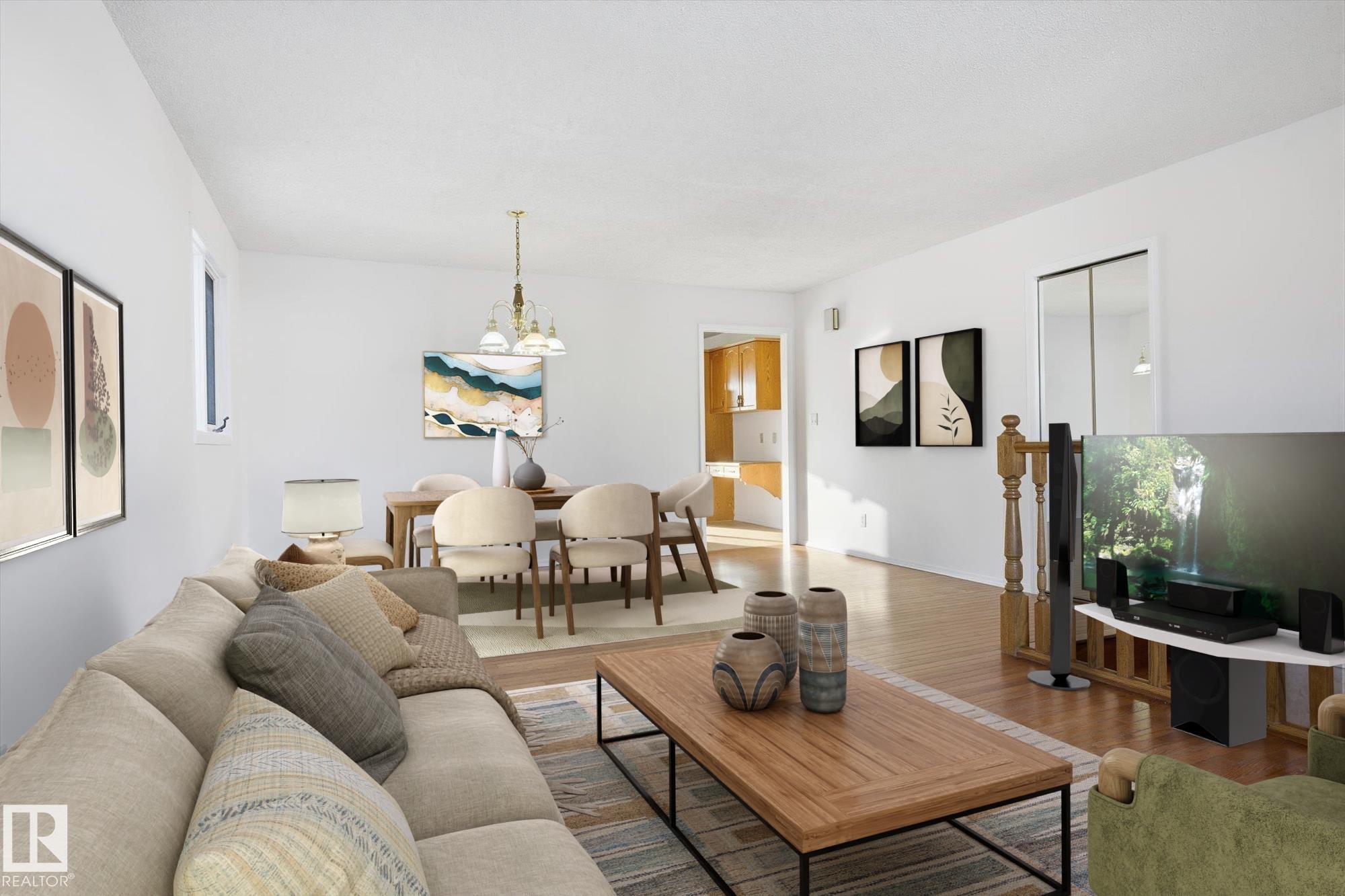 Welcome to this exceptional 1,229 sq ft bi-level in the sought-after community of Lago Lindo, close to shopping, schools, parks, and everyday amenities. With its large double attached garage and smart layout, this home offers comfort, space, and versatility. Step inside to a bright, expansive living and dining area filled with natural light, creating a warm and inviting atmosphere. The kitchen features abundant cabinetry and generous counter space, perfect for daily living and entertaining. The main floor includes a spacious primary retreat with a private 3-piece ensuite, an additional bedroom, and a full 4-piece bath. Sliding doors off the kitchen lead to the deck, and a separate entrance at the stairwell adds future suite potential. Downstairs boasts 9? ceilings, a large family room with a gas fireplace, another bedroom, a 3-piece bath, and a massive laundry room with 240V plug, ideal for a future second kitchen. The yard is a fantastic size, perfect for relaxing or hosting.