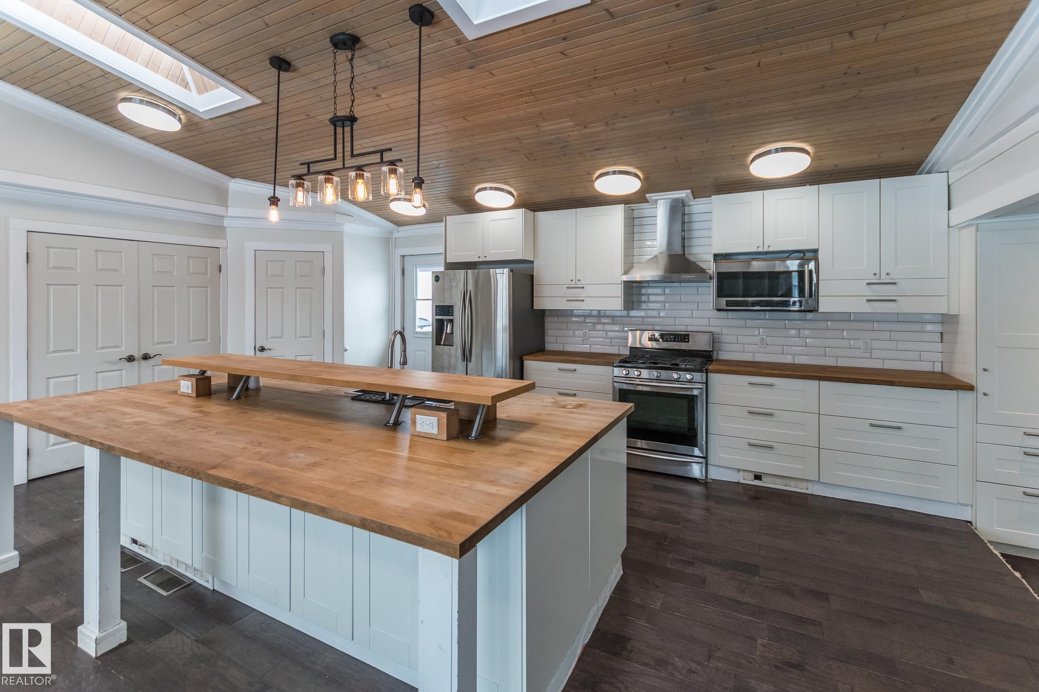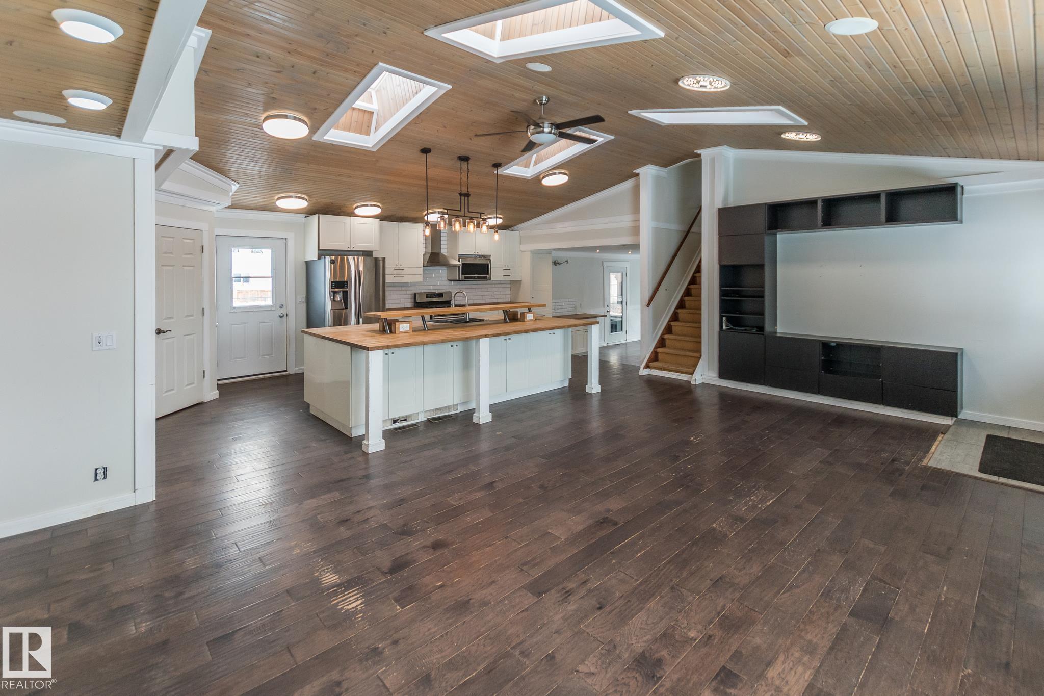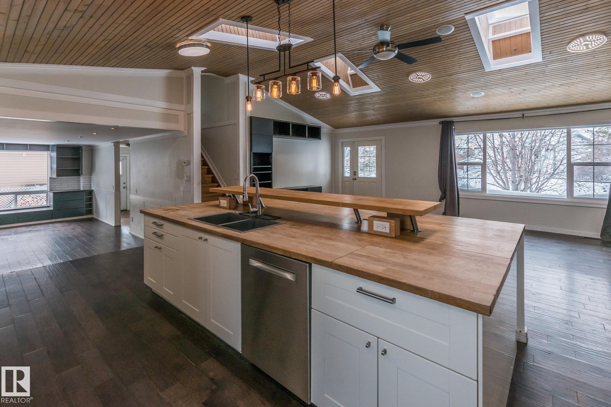 Welcome to this beautifully updated 3-level split offering 2,026 sq ft of living space, thoughtfully designed for comfort and function. This home features 4 bedrooms and 4 bathrooms, including a stylish 4-piece ensuite. The bright and open kitchen is a true showstopper?complete with white cabinetry, butcher block counters, stainless steel appliances, a large island with seating, and stunning wood ceilings with skylights that fill the space with natural light. Enjoy relaxing in the hot tub room, perfect for year-round use, or unwind in the fully fenced backyard, ideal for family gatherings and outdoor living. The oversized double detached heated garage provides plenty of space for vehicles, storage, or a workshop. Nestled in a quiet cul-de-sac and close to schools, this home is perfect for families seeking space, privacy, and convenience.