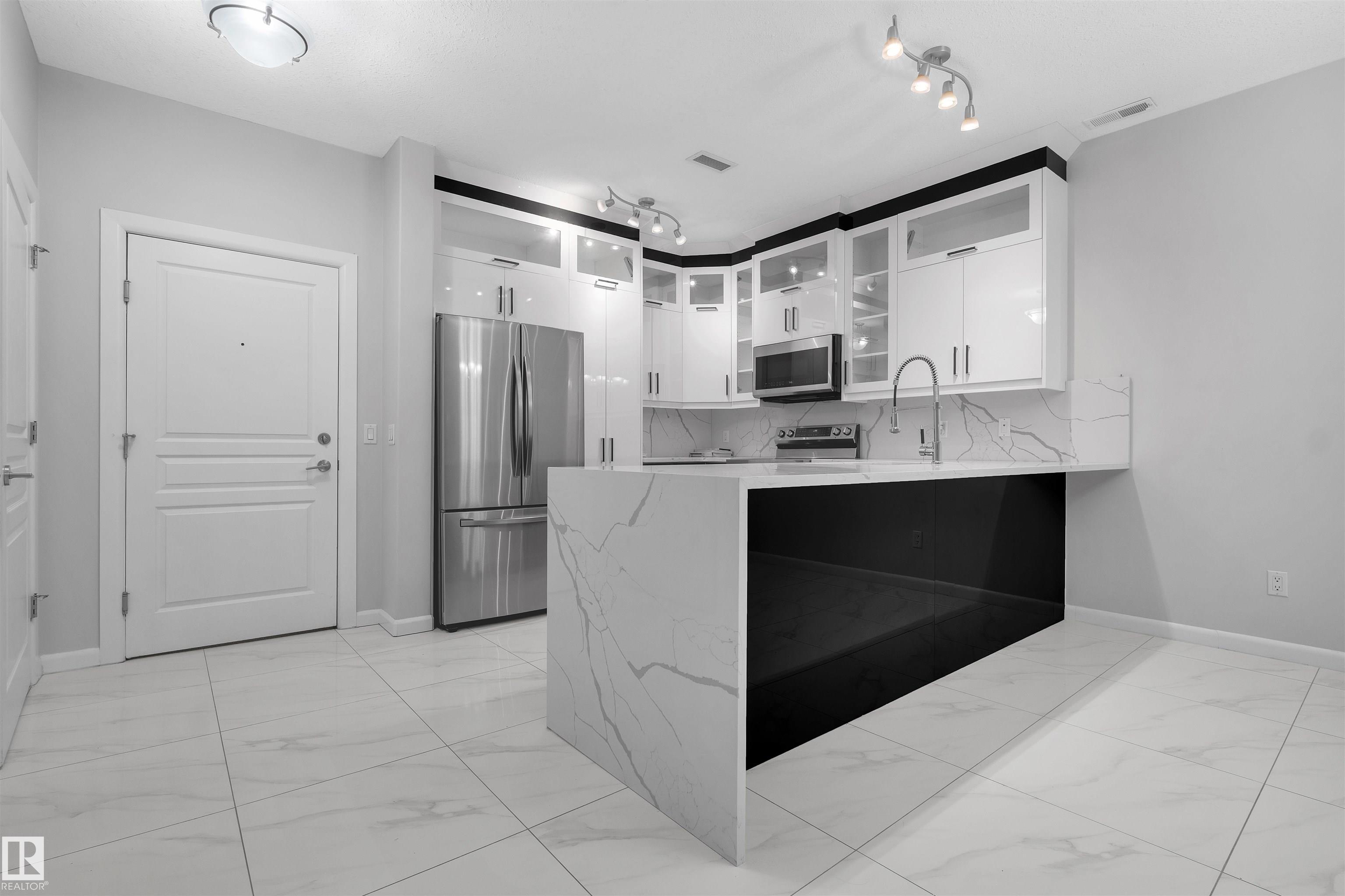 Enjoy your LUXURY LIVING IN MAGRATH MANSION! Located in one of Edmonton?s most premium neighbourhoods, this fully renovated 1250+ sq.ft lower-level condo offers over $170,000 in modern upgrades, including elegant full-home tiling and designer wallpapers throughout. Featuring 2 bedrooms + den, 2 bathrooms, an open concept layout with 9 ft ceilings, a modern kitchen with stainless steel appliances, and a spacious primary suite with walk-in closet and stunning ensuite. Enjoy in-suite laundry, a private balcony, and 1 titled underground heated parking stall plus titled storage. This exclusive steel & concrete adult building (18+) features resort-style amenities:: Social/Recreation room with kitchen and book library, Theatre Room, gym with sauna, steam room & hot tub, car wash bay, and outdoor BBQ area. Walking distance to shopping mall (next door), parks, and ravine trails. Perfect for adult living or as an investment? you cannot get a better deal at this price