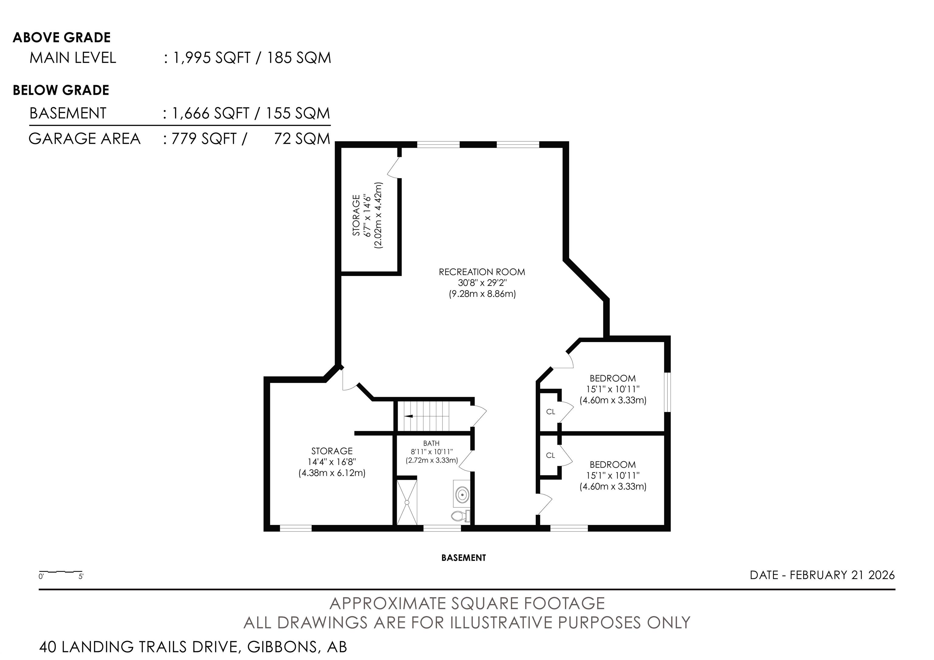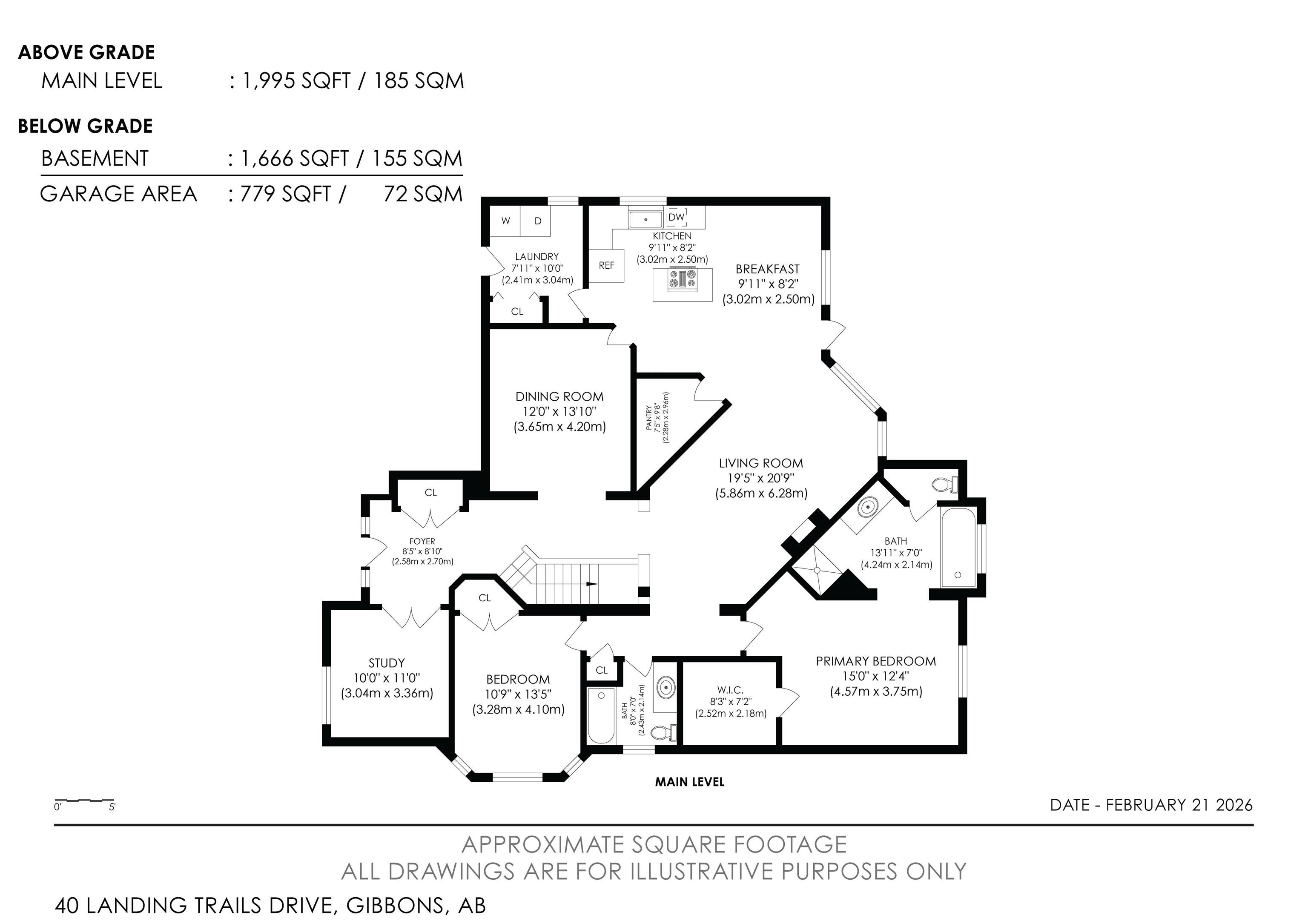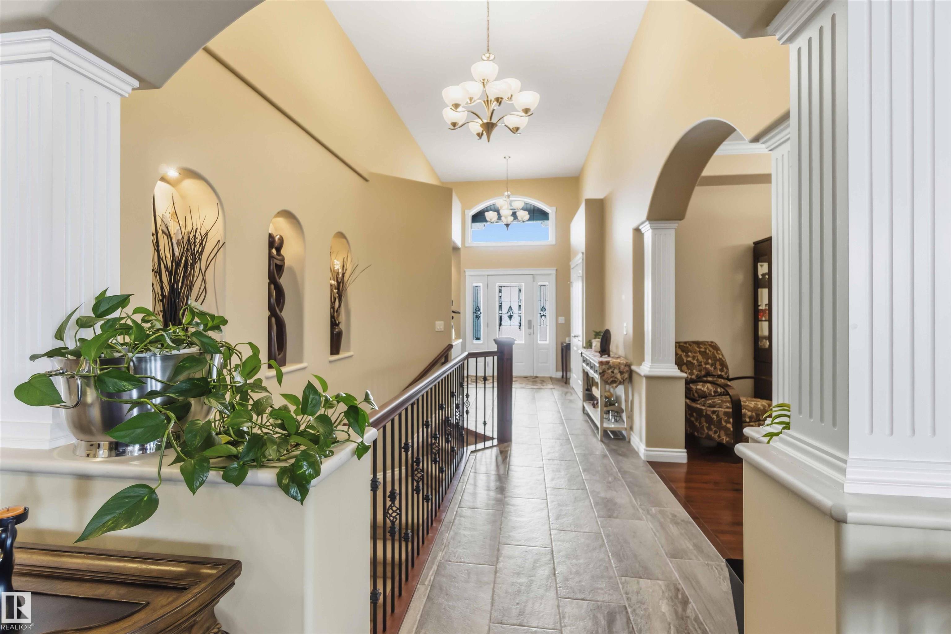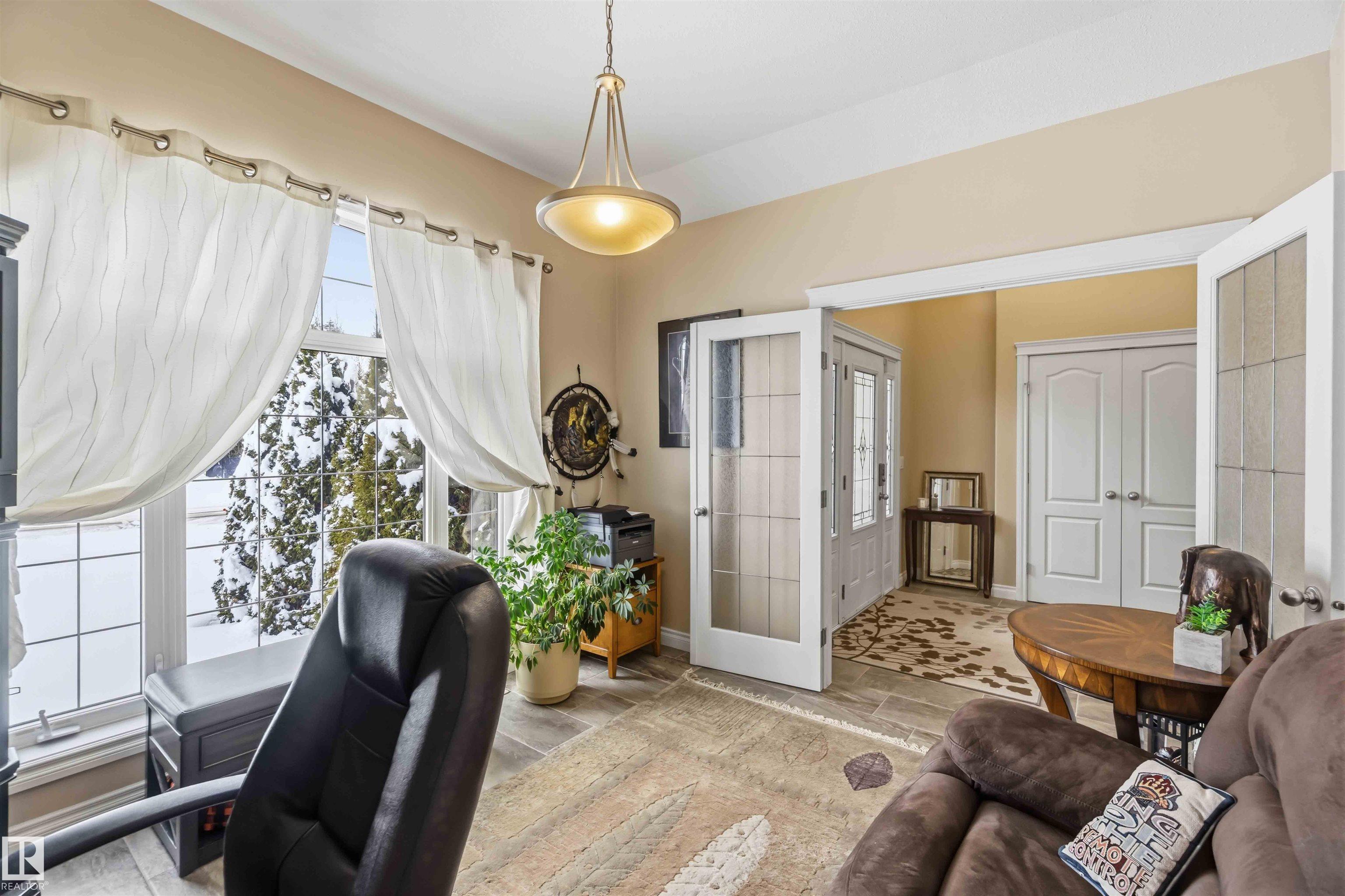 Look No Further! Welcome to 40 Landing Trails Dr in the Town of Gibbons. Stunning Bungalow on a 1/3+ acre lot with a Triple Heated Garage, large front driveway & over 2000sq ft of living space to enjoy! The main floor features 10ft ceilings, grand foyer, front den, living room with a gas FP & lots of natural light. Dining room, kitchen with cherry cabinets, granite countertops, island with an eat-up area, walk-in pantry, dining nook looking out to the private covered deck with natural gas for a bbq. The laundry room has access to the garage. 2 bedrooms, 4pc bathroom, primary bedroom with a huge walk-in closet, 4pc ensuite & soaker tub. The finished basement boats a rec room, 2 more bedrooms, 3pc bathroom & storage room. 2019 50yr Shingles, 2021 HE Furnace & HE HWT, 2022 Central AC & Radiant Furnace in garage. Garage has 8ft doors, floor drain, hot/cold taps. New iron gate allows access to the huge fenced yard, storage shed, raised garden beds & fire pit area. Impressive pride of ownership throughout!!