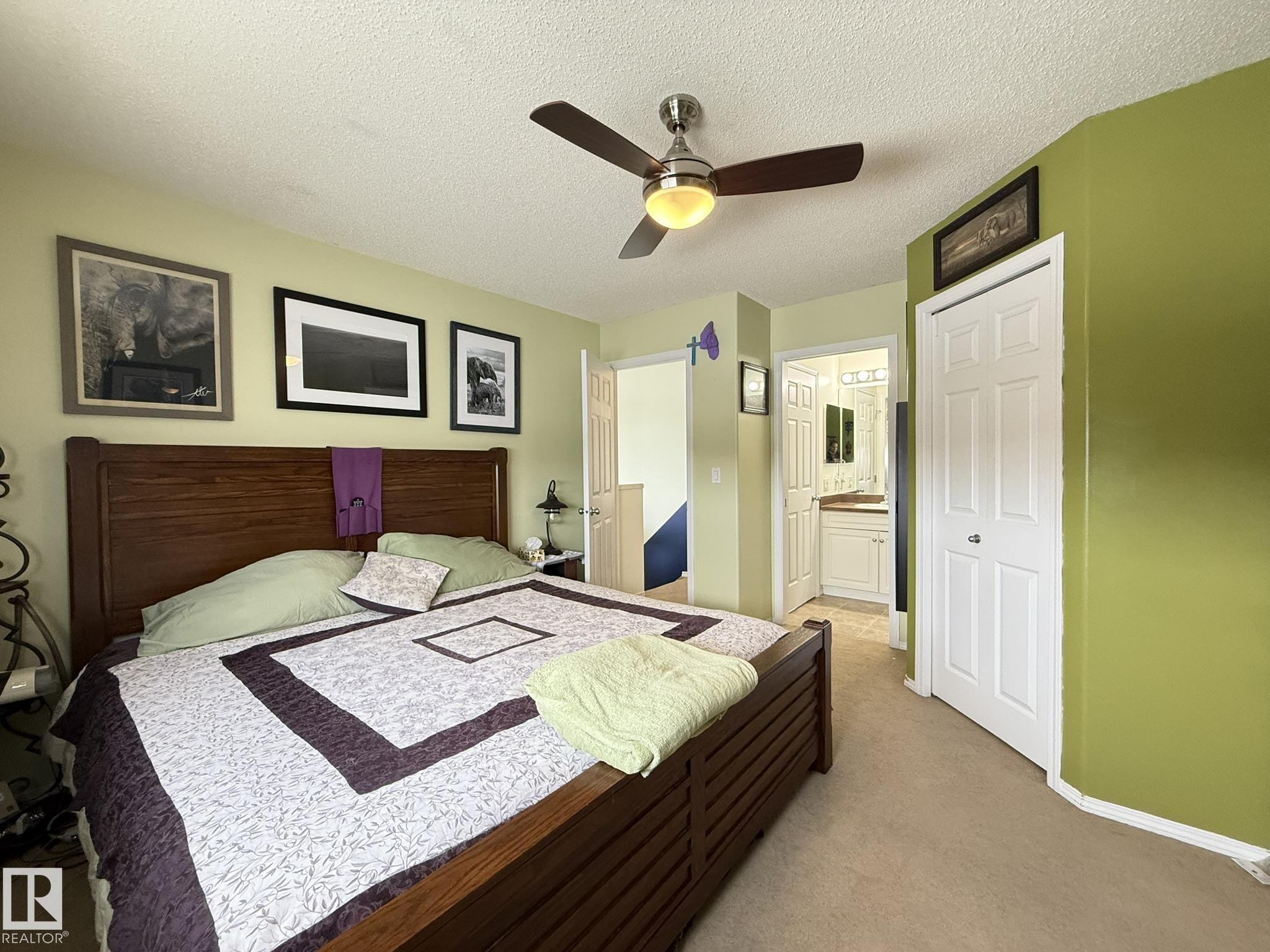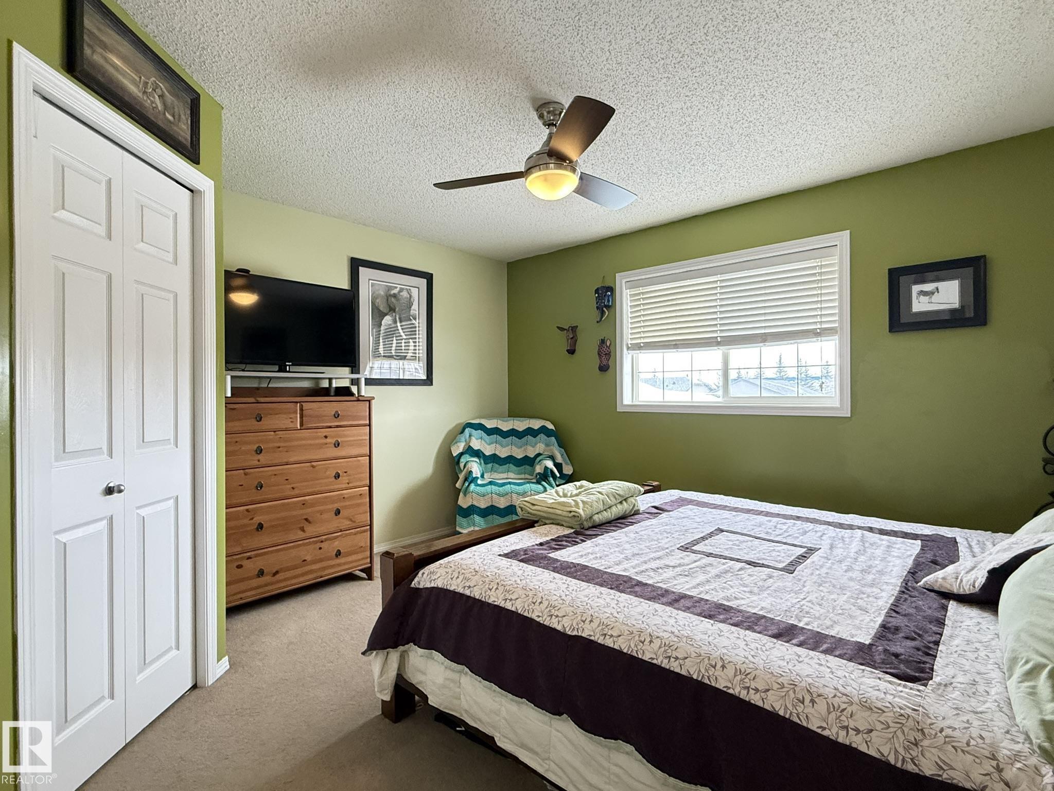 Great opportunity to own in Devon! Family friendly main floor, kitchen island, corner pantry, spacious living room, patio door access to fenced back yard with storage shed and greenhouse. Laundry room and half bath on the main floor. 3 bedrooms upstairs share a 4 piece bathroom with access to primary bedroom. Basement is finished with large rec room and another 4 piece bathroom. Oversized attached single garage is insulated and there is room for two more cars on the cement pad. Bonus: CENTRAL AIR CONDITIONING! Newer shingles, washer, dishwasher, stove as well!