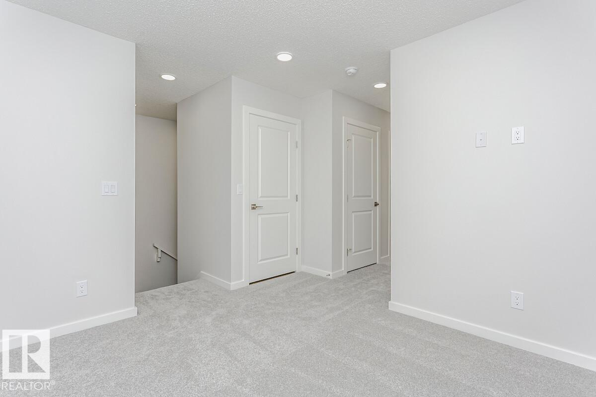The home features an open concept main floor with 9? ceiling. The kitchen comes with a large island and corner pantry, which overlooks the great room and dining area. Main floor bedroom or flexroom, perfect for guest room or an office. Quartz countertops in the kitchen and all bathrooms. Large great room includes a 50? linear electric fireplace. The second floor has a large primary bedroom with walk-in closet and 4-piece ensuite that includes dual sinks and stand-up shower. This home also has two secondary bedrooms, central bonus room, full bathroom, and a conveniently located laundry upstairs. A side entrance is included for a potential Legal Suite, with the basement ceiling height upgraded to 9?, for a more spacious feel, and 2 windows. Home is currently under construction. Est completion end of May.