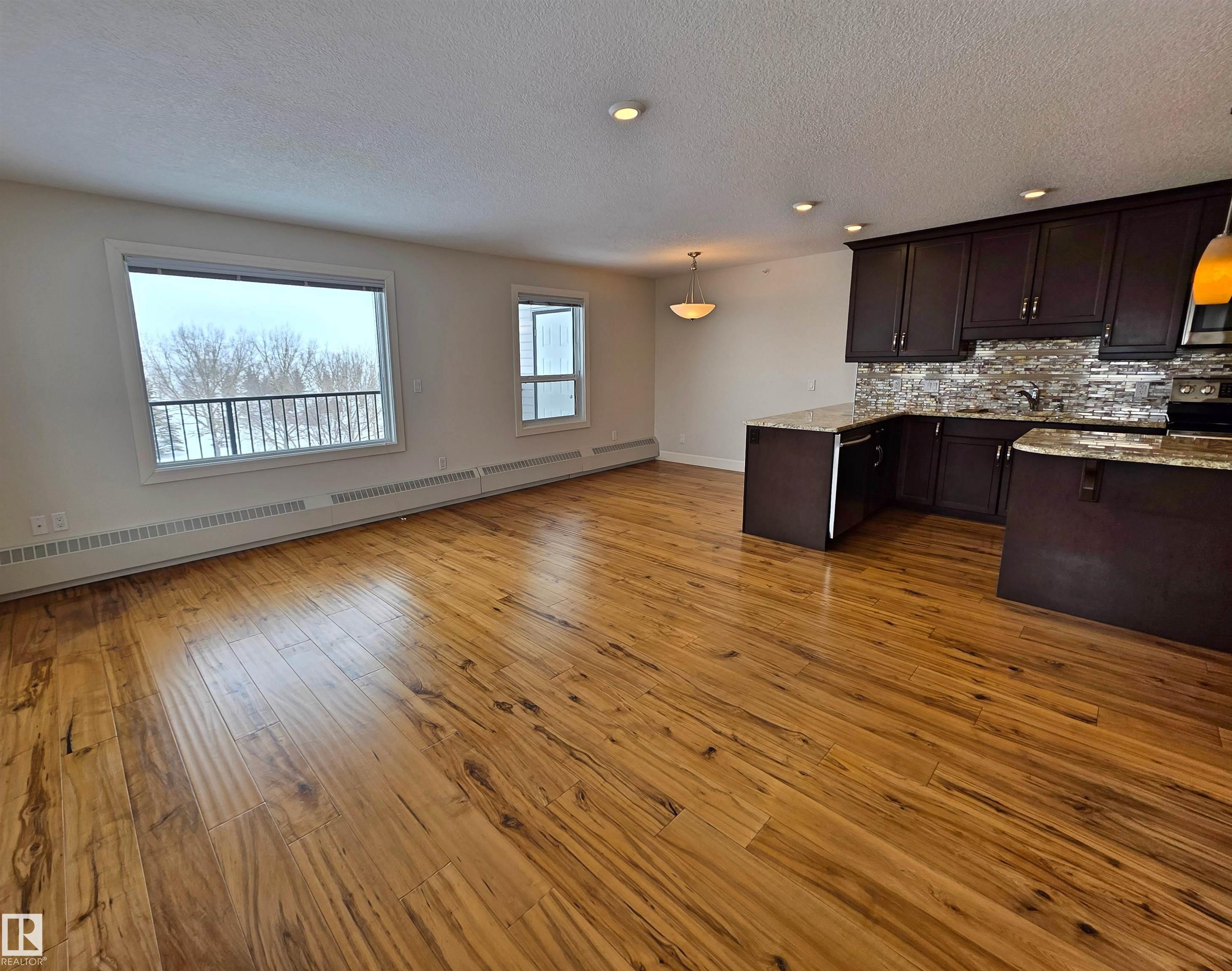 Welcome to Lakeview Terrace, where comfort, convenience, and breathtaking scenery come together in this top-floor condo overlooking Lower Therien Lake in St. Paul. From the moment you arrive, you?ll appreciate the peaceful setting and spectacular views that make this property truly special. Spend your days relaxing on the wrap-around balcony, perfectly positioned to take in the beauty of Legasse Park, featuring walking trails, playgrounds, and the splash park. It?s the perfect spot for morning coffee, watching the sunrise, or simply enjoying the view. This move-in-ready condo showcases gorgeous engineered hardwood floors, a bright entrance with a solar tube, stylish pot lighting, and has been freshly painted throughout ? including the ceilings. The well-designed layout offers two spacious bedrooms & 2 baths.The kitchen is both functional and beautiful, featuring a massive island, granite countertops, modern backsplash, and cabinetry extending to the ceiling. Double detached heated garage as an added bonus