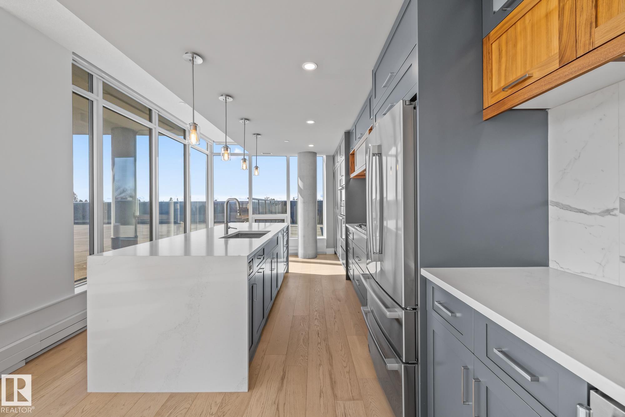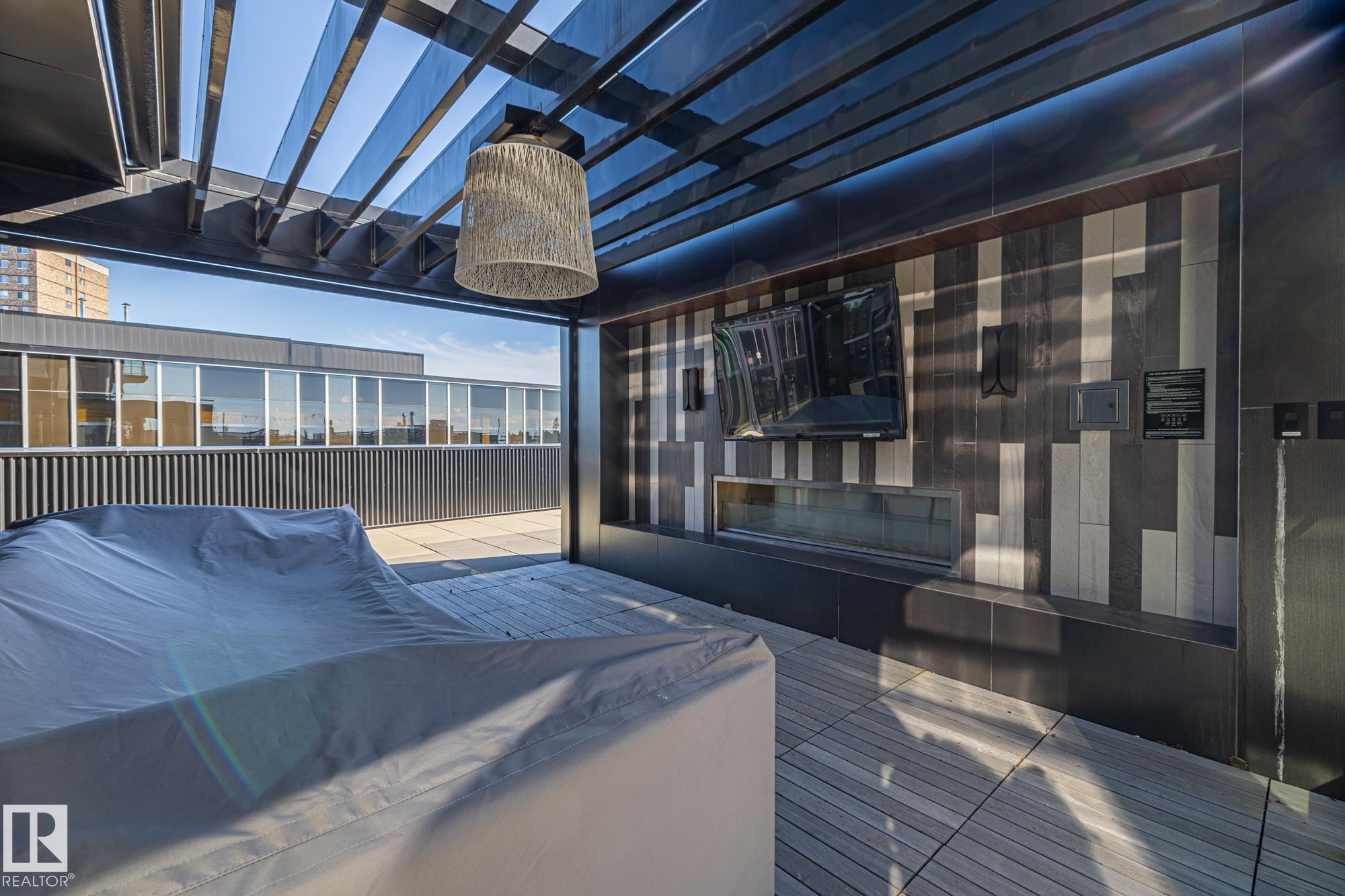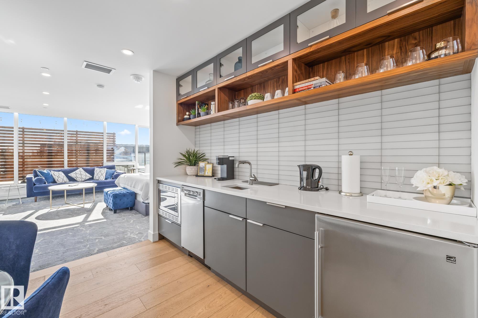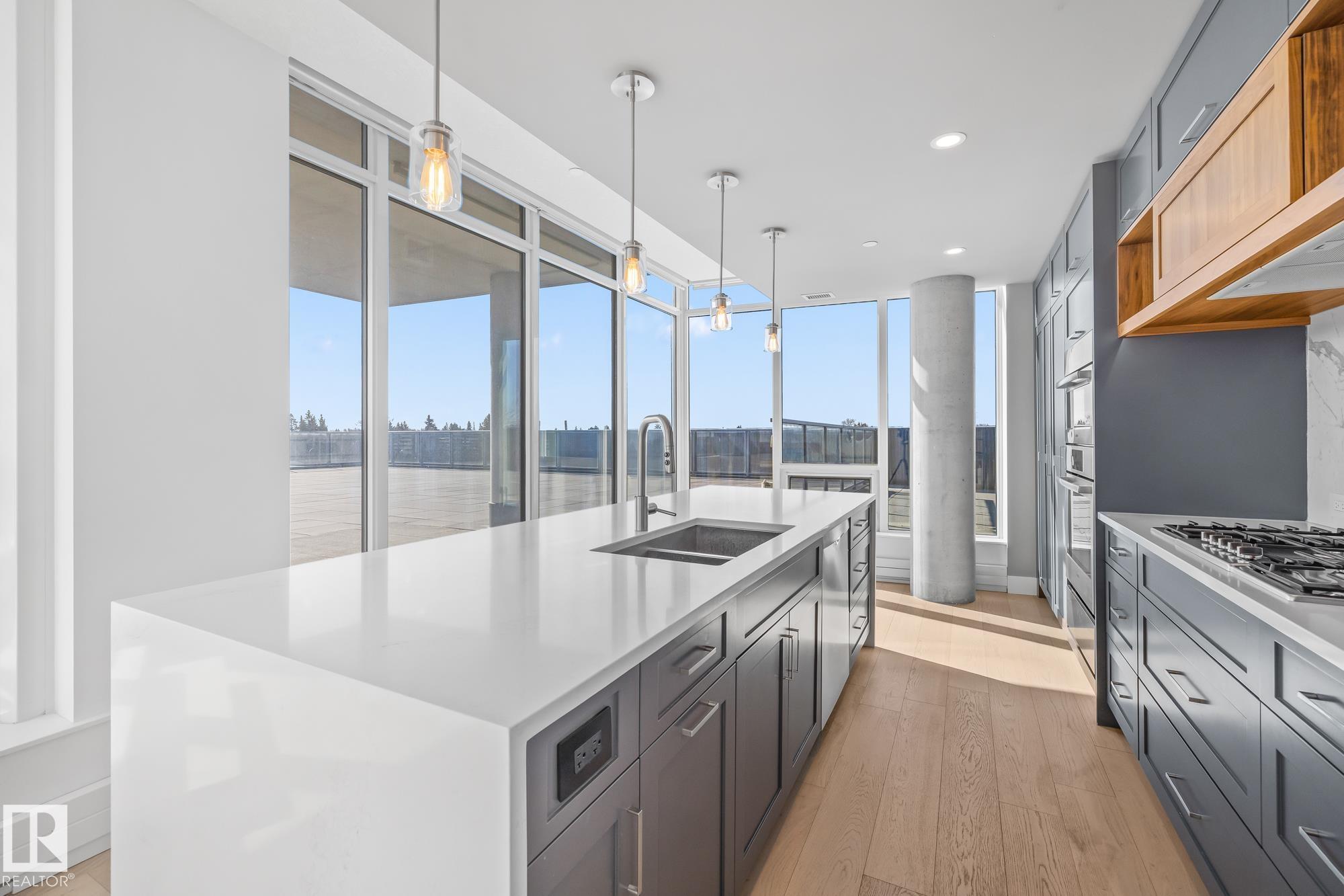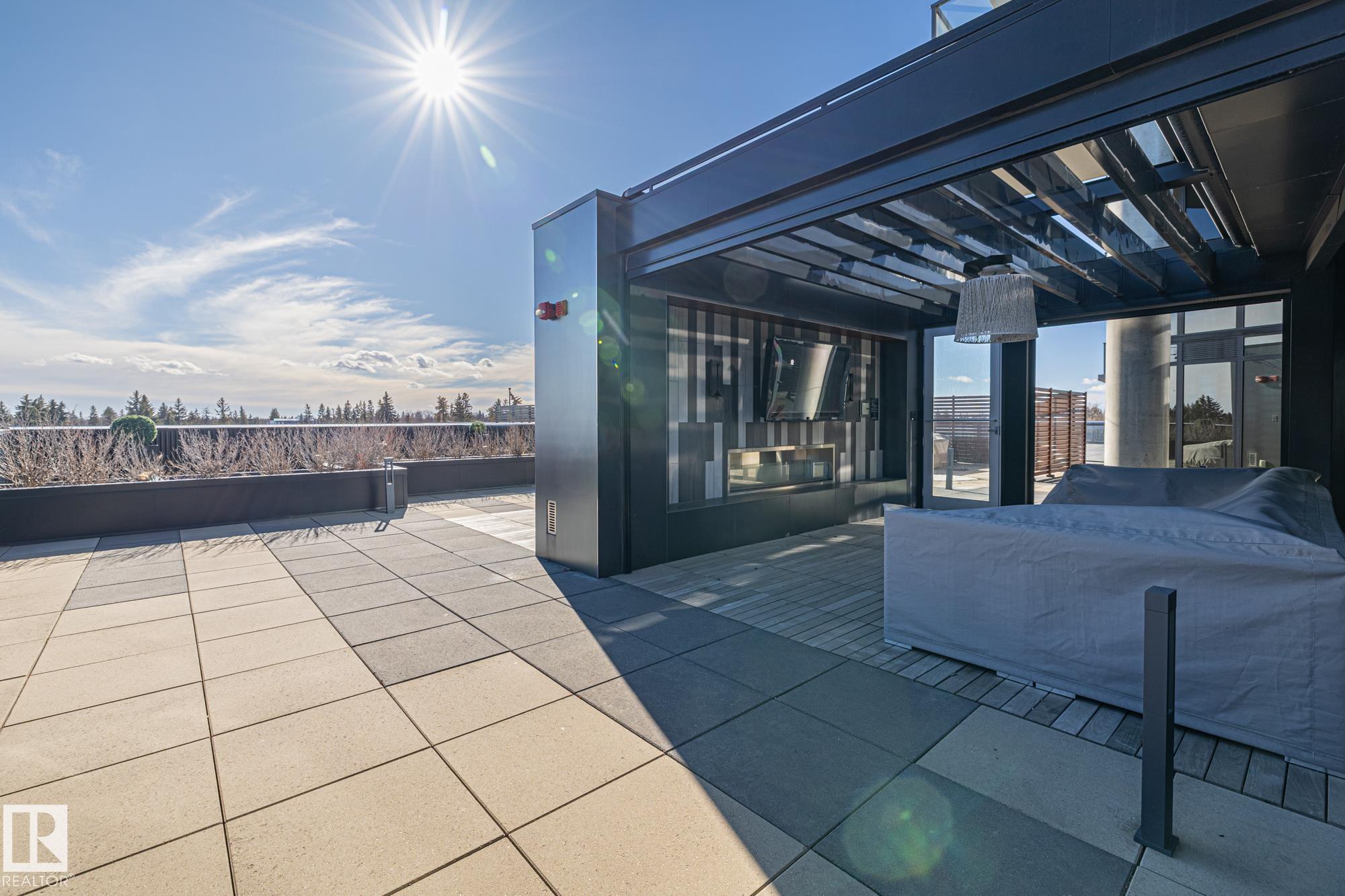 This exceptional residence offers unparalleled privacy and refined living. Floor to ceiling windows fill the home with natural light and frame uninterrupted blue skies with southwest exposure. Ten foot ceilings, motorized blinds, and a stone faced gas fireplace create a calm, elevated atmosphere. Each bedroom features its own private ensuite, complemented by a dedicated office and elegant powder room. The spa inspired primary bath offers heated floors, a freestanding tub that plays soothing music and gently vibrates, and a steam shower. Above it all, an over 2000 sq. ft. private rooftop terrace, the only one in the building, creates an extraordinary outdoor retreat ready for your own hot tub. Two underground parking stalls and titled storage add convenience, while residents enjoy concierge service, a state of the art gym, indoor and outdoor lounges, guest suite, conference and catering room, dog run, dog wash, and a laundry service drop box. A rare offering for those who expect the very best.