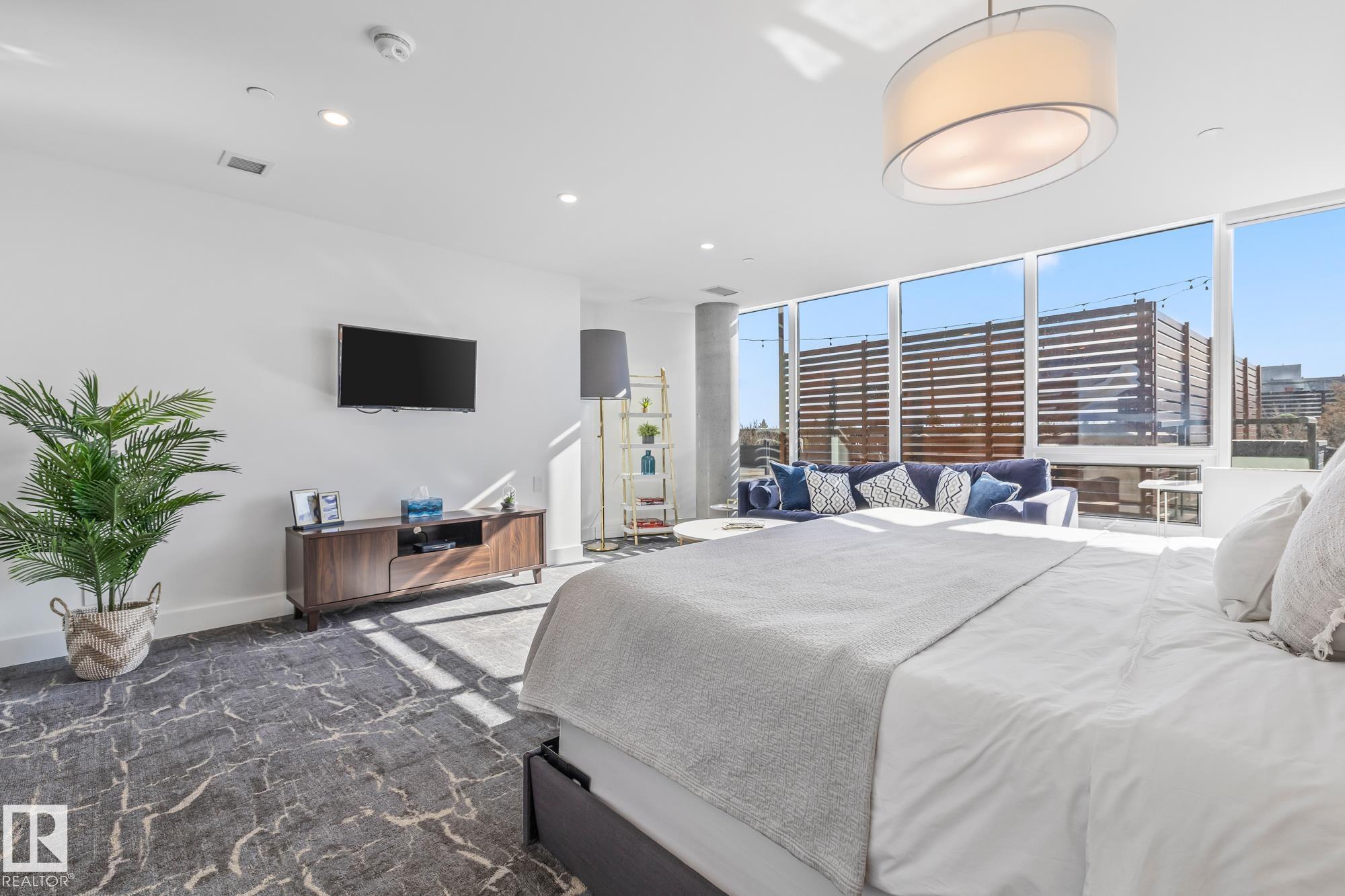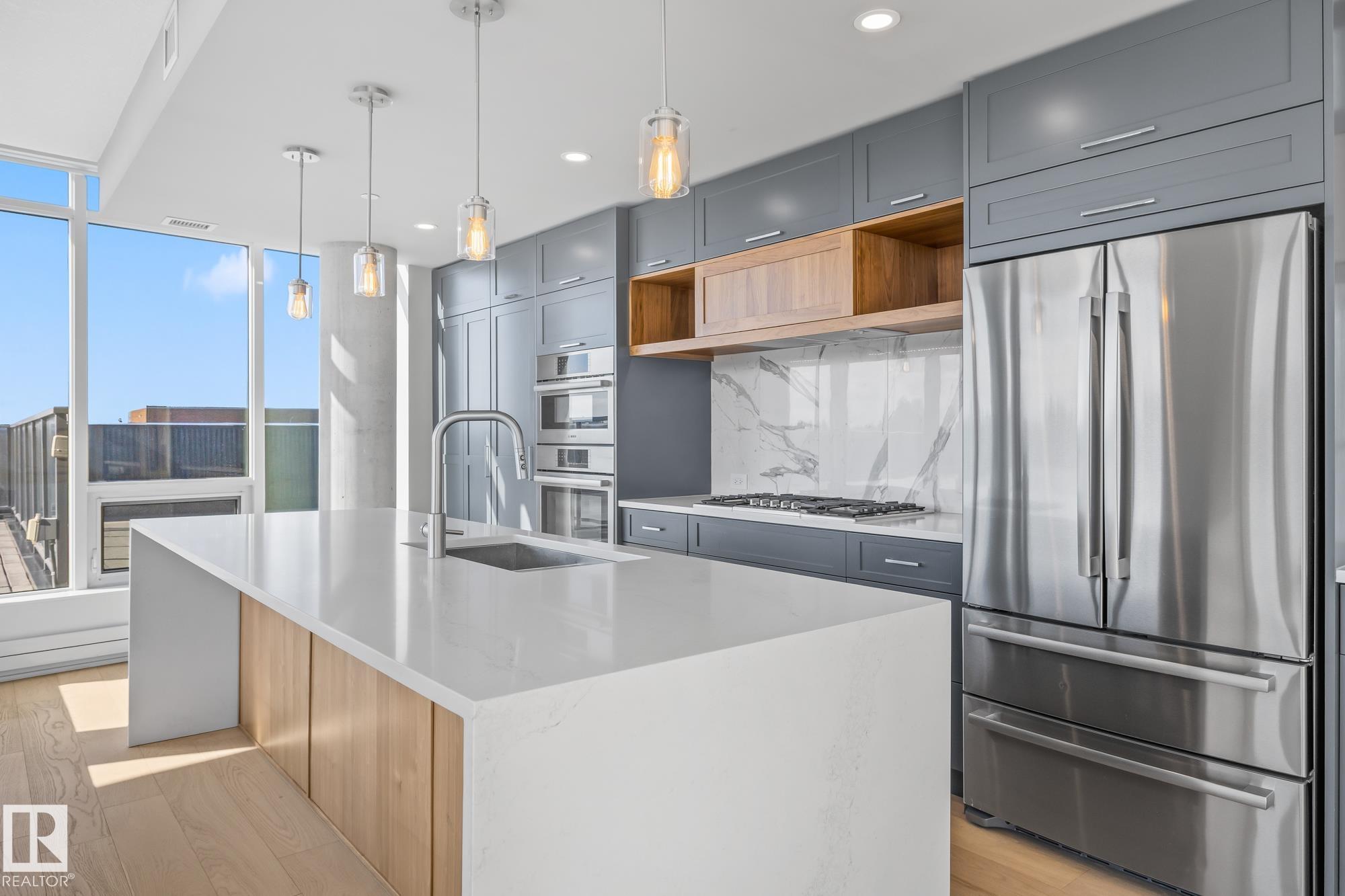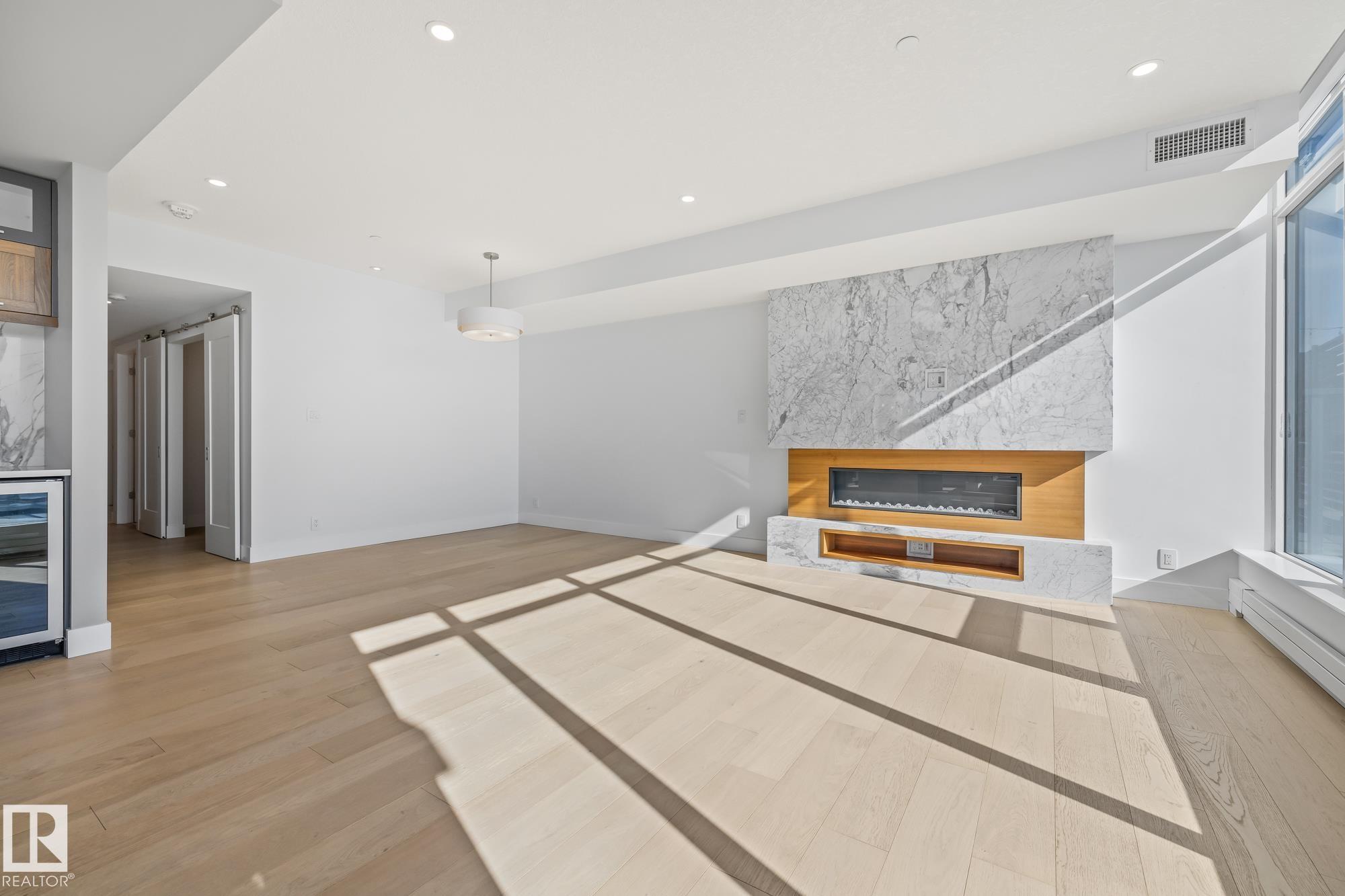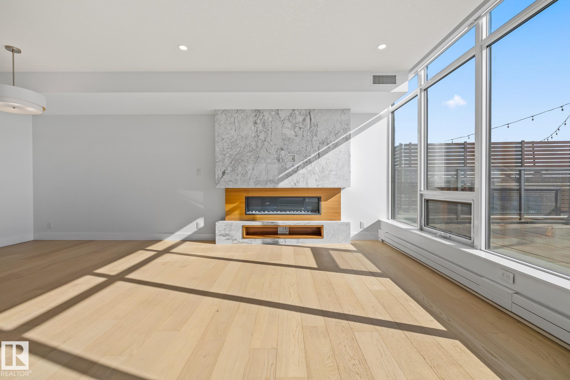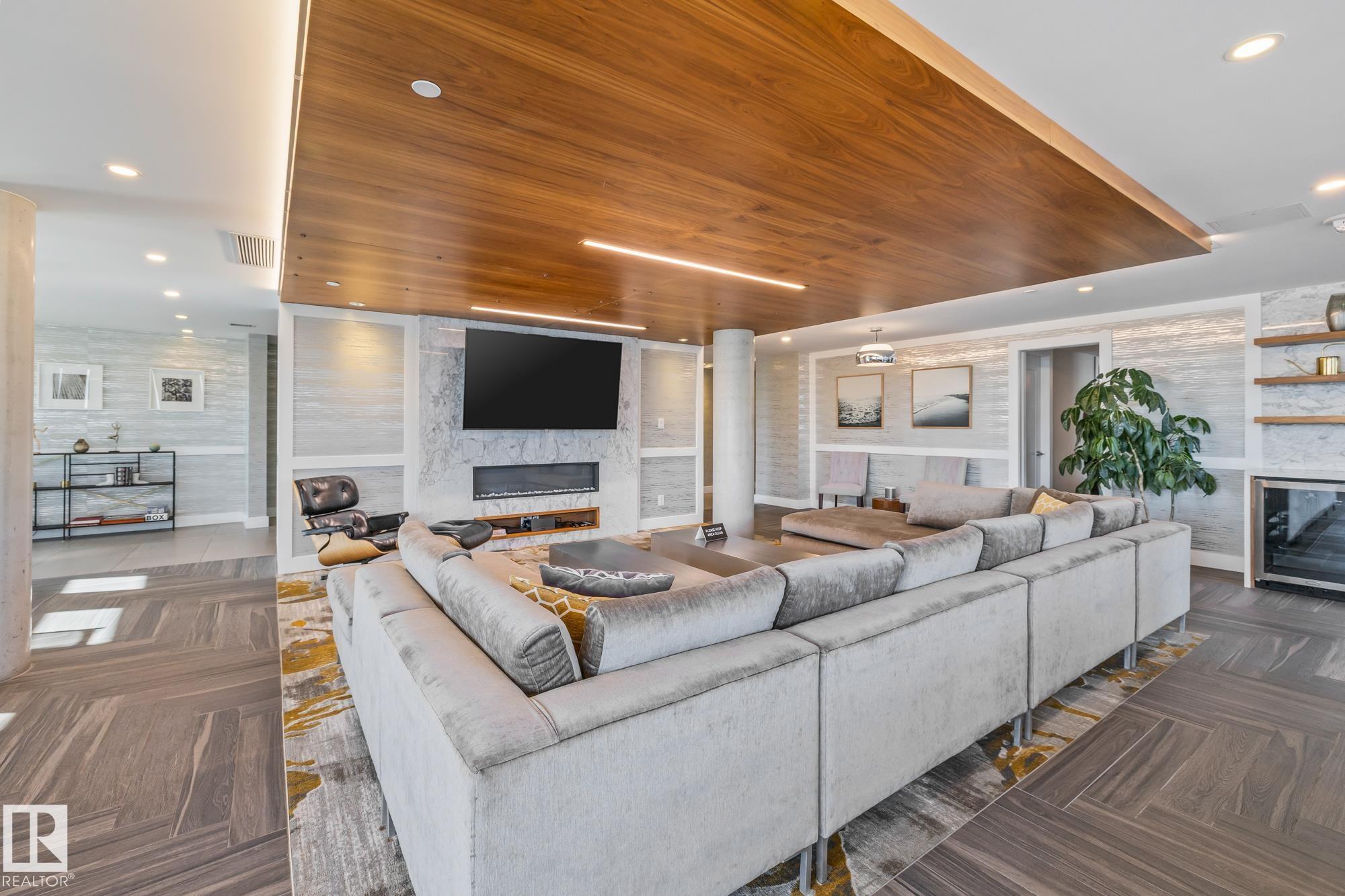 This exceptional residence offers unparalleled privacy and refined living. Floor to ceiling windows fill the home with natural light and frame uninterrupted blue skies with southwest exposure. Ten foot ceilings, motorized blinds, and a stone faced gas fireplace create a calm, elevated atmosphere. Each bedroom features its own private ensuite, complemented by a dedicated office and elegant powder room. The spa inspired primary bath offers heated floors, a freestanding tub that plays soothing music and gently vibrates, and a steam shower. Above it all, an over 2000 sq. ft. private rooftop terrace, the only one in the building, creates an extraordinary outdoor retreat ready for your own hot tub. Two underground parking stalls and titled storage add convenience, while residents enjoy concierge service, a state of the art gym, indoor and outdoor lounges, guest suite, conference and catering room, dog run, dog wash, and a laundry service drop box. A rare offering for those who expect the very best.
