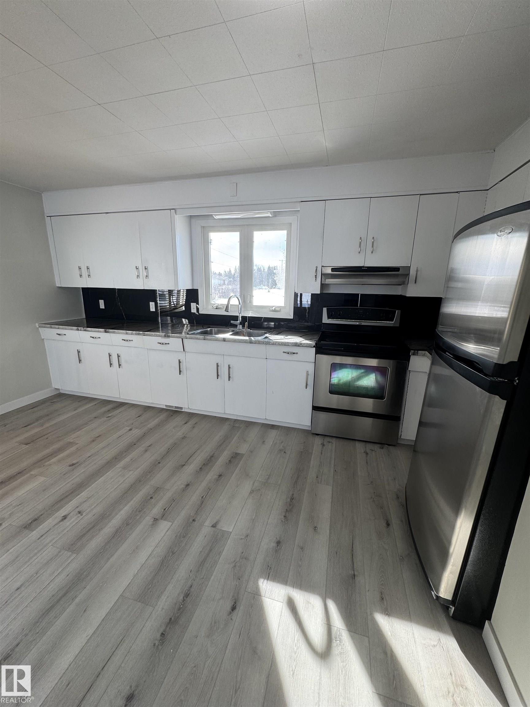 This 4-bedroom, 2-bathroom home in the town of Andrew sits on a spacious 0.82-acre lot and has had several recent updates, including new flooring, new carpet, and updated countertops. The layout is practical, with a main floor den or office that works well for a home office, study, or extra flex space. Outside, you?ll find a large 40x30 ft insulated triple detached garage with plenty of room for vehicles, storage, or a workshop. The property backs onto open fields, giving you nice views and added privacy with no immediate neighbours behind. With recent updates and a large lot, this property offers plenty of space while still being in a quiet small-town setting.