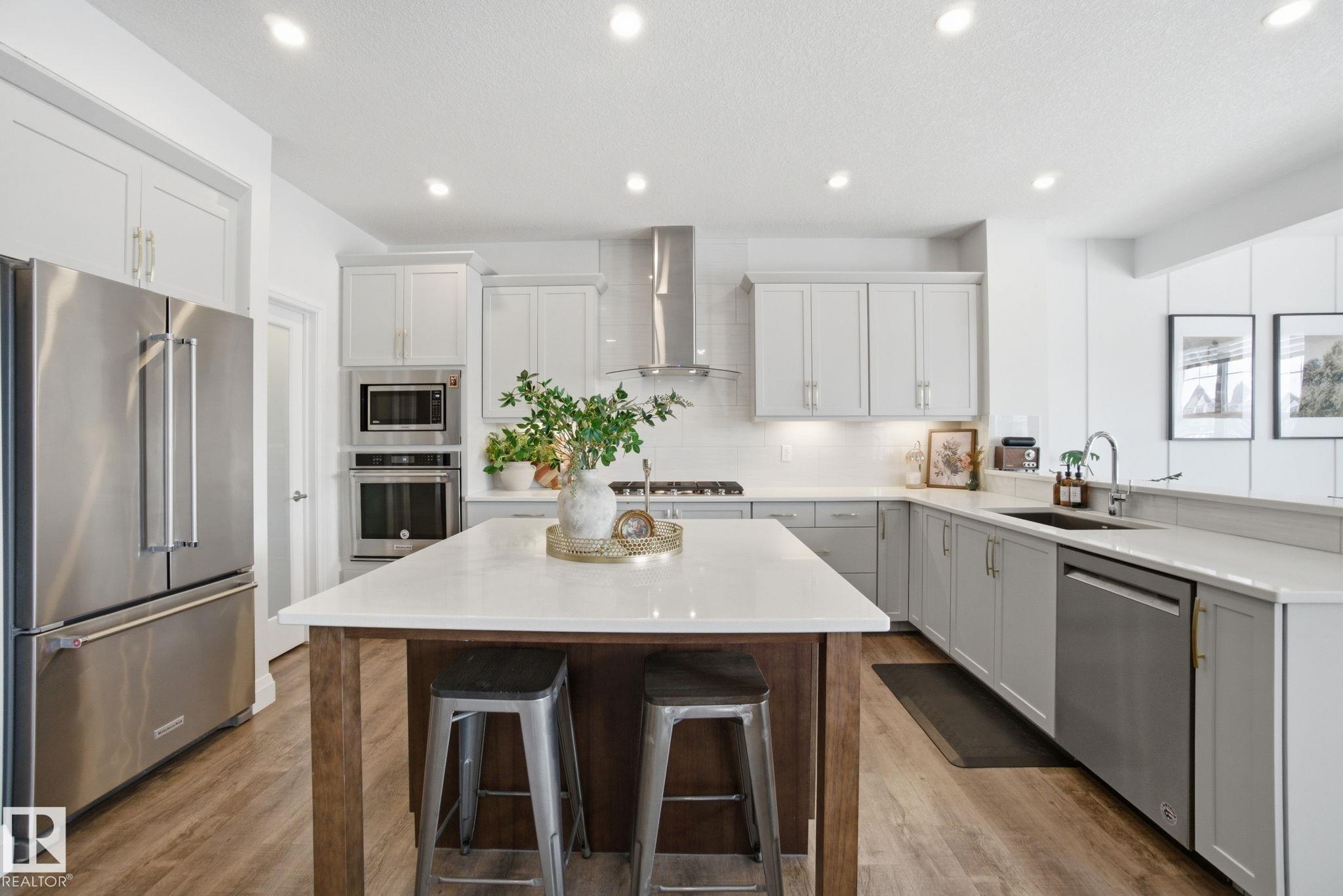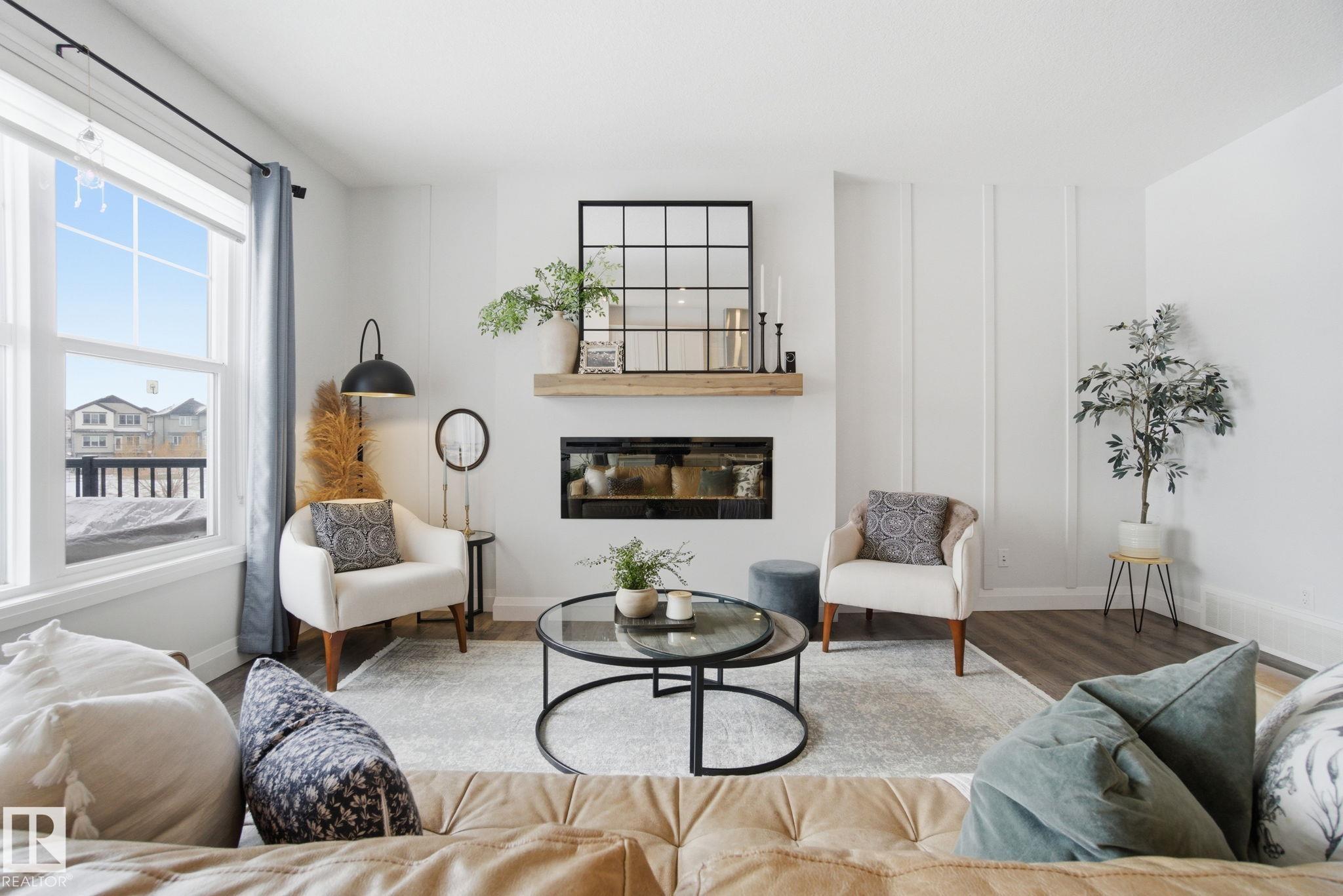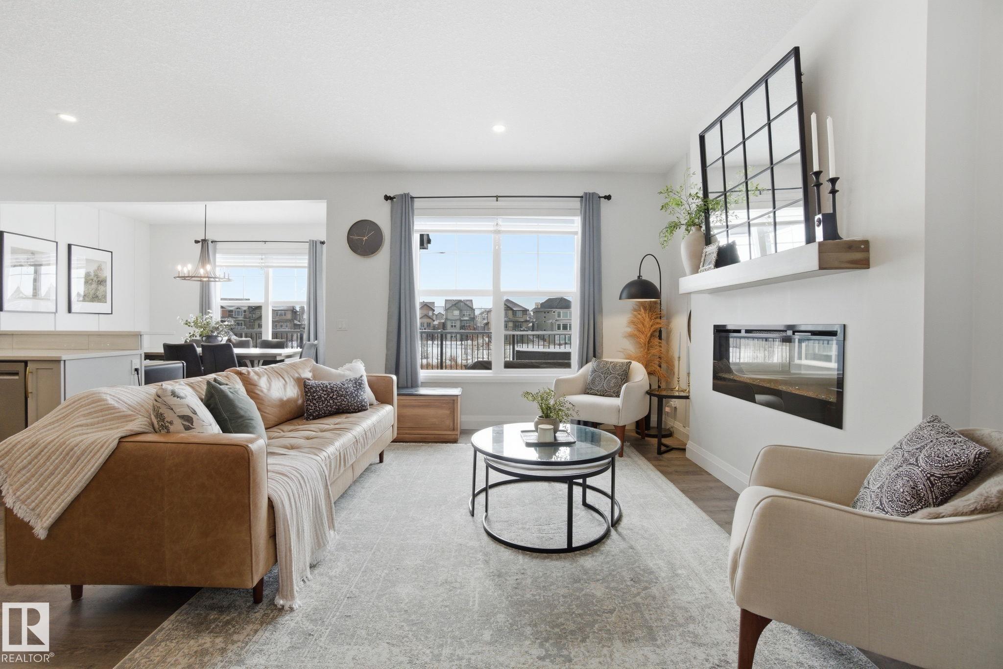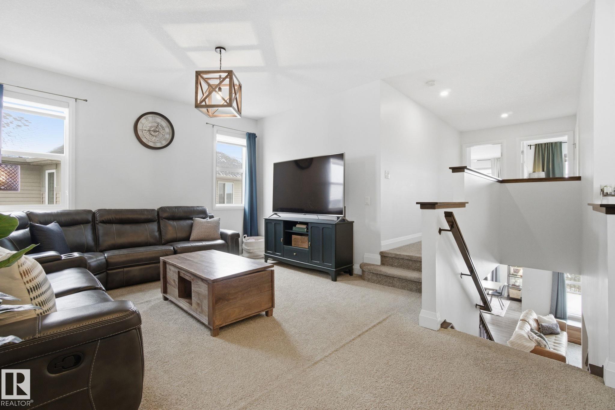Discover this beautiful, move-in ready home in desirable Desrochers. Nestled on a quiet cul-de-sac and backing onto paved walkways and a picturesque pond, this 2,206 sq. ft. unit features an open-concept main floor flooded with natural light from south-facing windows. The bright white kitchen is appointed with stainless steel appliances and opens to a raised deck?perfect for morning coffee or entertaining. Upstairs offers three bedrooms, two full baths, a bonus room and convenient laundry. The finished walk-out basement expands your living space and leads to stamped concrete, a professionally landscaped yard and a cozy fire pit. A double attached garage with built-in shelving provides excellent storage. Enjoy easy access to shopping, groceries, restaurants, fitness studios, schools and parks. Exceptional curb appeal, thoughtful upgrades and a peaceful pond-side setting make this home a must-see.