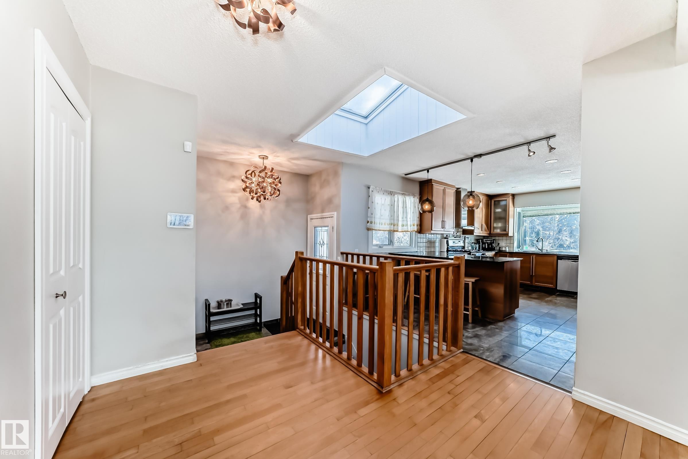 Parkview/Valleyview. 4 bedrooms, plus den, 3.5 bath west facing backyard steps to river valley and easy access to downtown and universities. Main floor features kitchen with GRANITE countertops and stainless steel appliances, including GAS STOVE. HARDWOOD floors throughout the main level. Generous living room featuring a brick faced gas fireplace opens to the dining room with access to the deck. Large master bedroom features ensuite with access to the main bathroom, another large bedroom and a den/ mudroom complete the main level. The lower level has 2 very large bedrooms and 2 bathrooms, family room and wetbar/2nd kitchen. Double attached garage west facing backyard