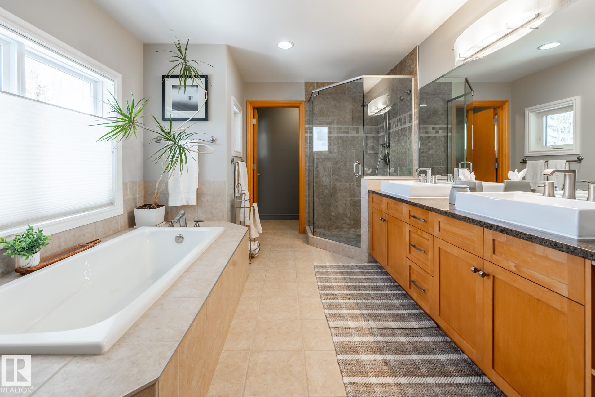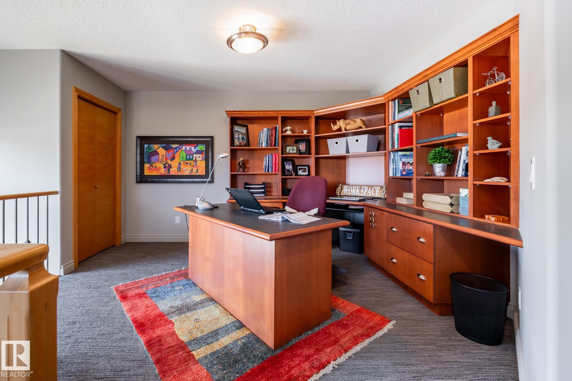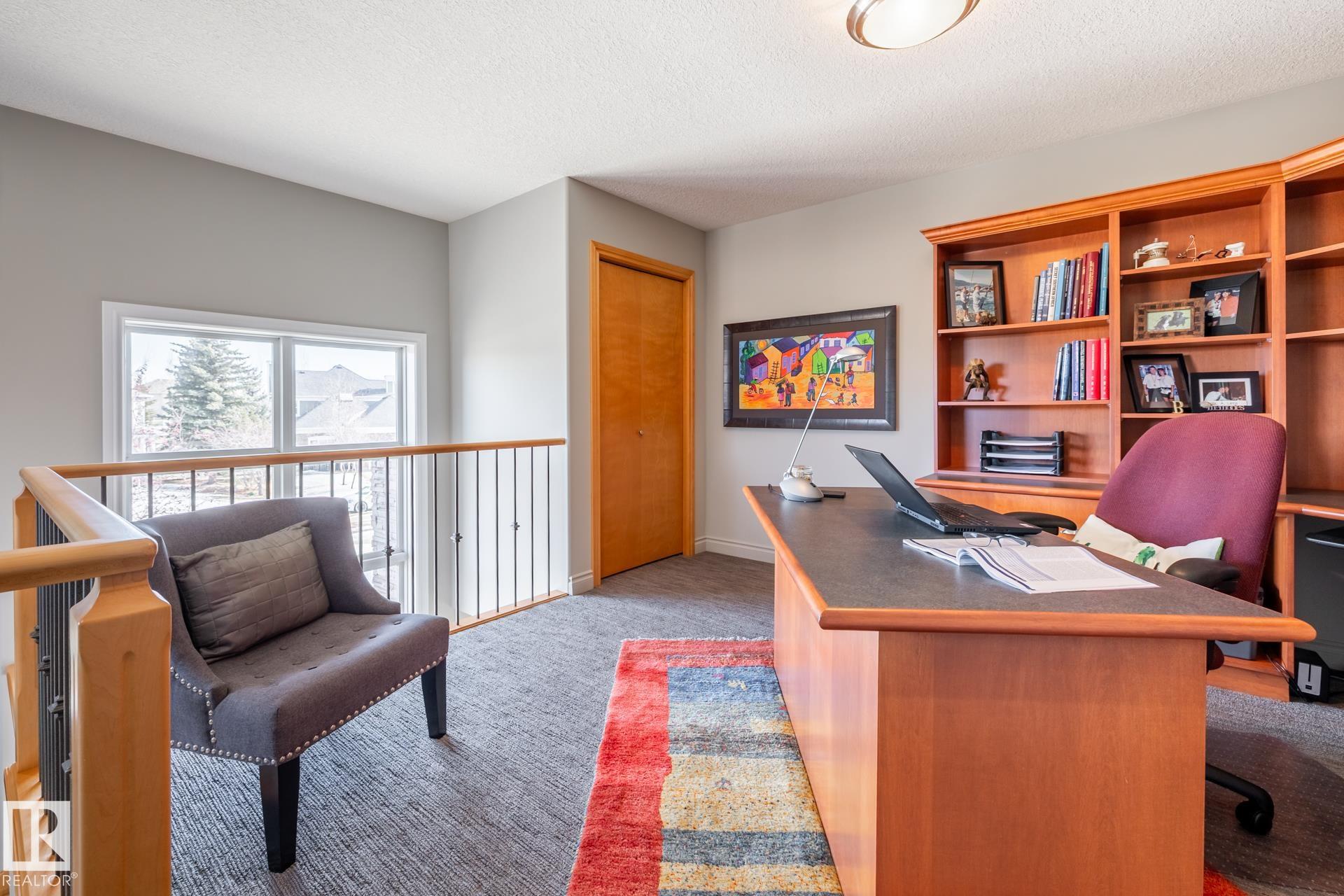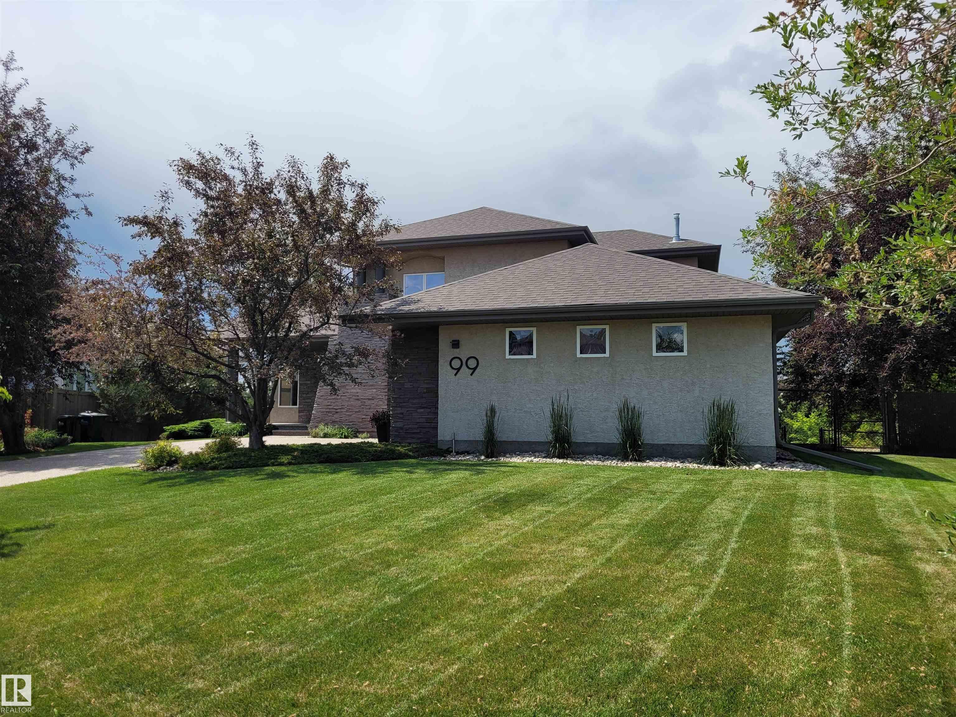 EXECUTIVE HOME WITH PRIVATE LOT....!WELCOME HOME. METICULOUS ATTENTION TO DETAIL. CUL DE SAC LOCATION. Upon entering this property you walk into a spacious foyer, living room with vaulted ceilings and feature stone fireplace and formal dining room. Spacious nook area, walk in pantry and large kitchen with granite and new SS appliances. Kitchen walks onto a large deck overlooking yard. Main floor laundry room with sink and loads of closets. Upstairs is a private office and the Primary retreat is expansive with walk in closet, and well appointed 5 pce.ensuite. Basement is a WALKOUT with in-floor heating, 2nd and 3rd bedrooms, rec room with doors to lower covered patio and 4 pce. bathroom.YARD is beautifully landscaped with private sitting area and firepit. Oversized dble garage with man door, drain and cold water tap. Upgrades: roof (2024),HE furnace (2025) sump pump (2023) and more.