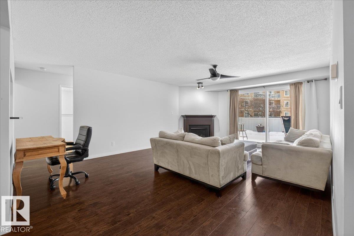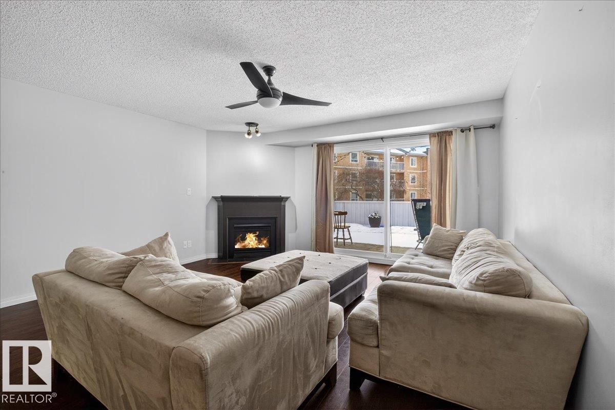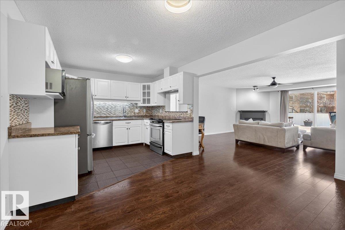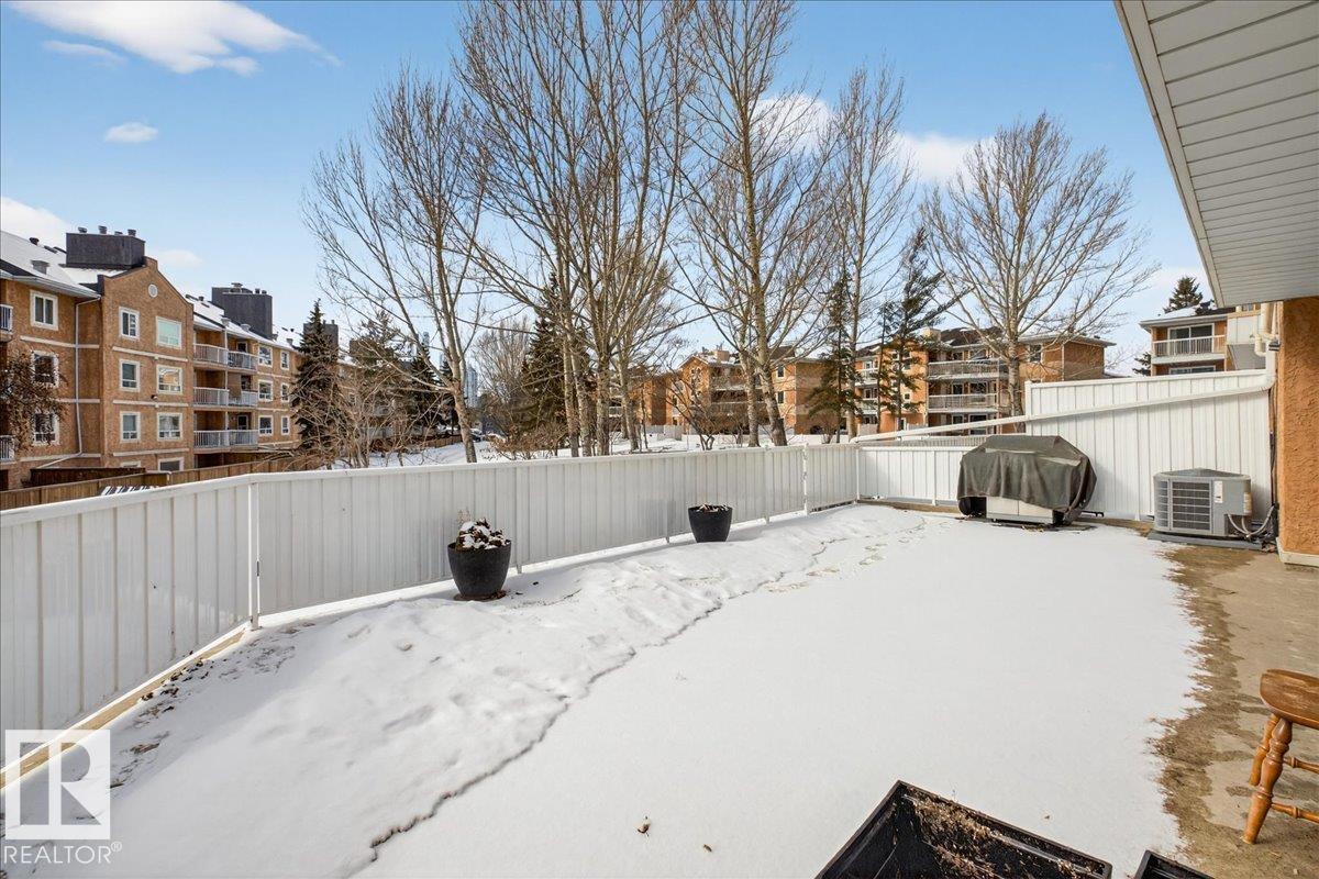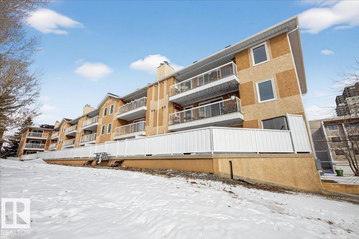 Enjoy downtown living without sacrificing space in this spacious condo offering over 1,300 sq ft of living space, just steps from the River Valley. This bright 3 bedroom, 2 full bathroom unit features a large exclusive-use south-facing patio/deck overlooking the courtyard?perfect for summer, complete with a natural gas BBQ line and additional storage. The updated kitchen offers white cabinetry, newer stainless steel appliances, ample counter space, and laminate flooring, opening to the dining area with a passthrough to the expansive living room filled with natural light from patio doors. The primary bedroom fits a king-sized bed and includes a 4-piece ensuite. Additional highlights include central A/C, a gas fireplace, in-suite laundry, and TWO heated underground parking stalls. Building amenities include an exercise room and sauna. Ideally located minutes to Downtown, Rogers Place, LRT, Little Italy, and Commonwealth Stadium.