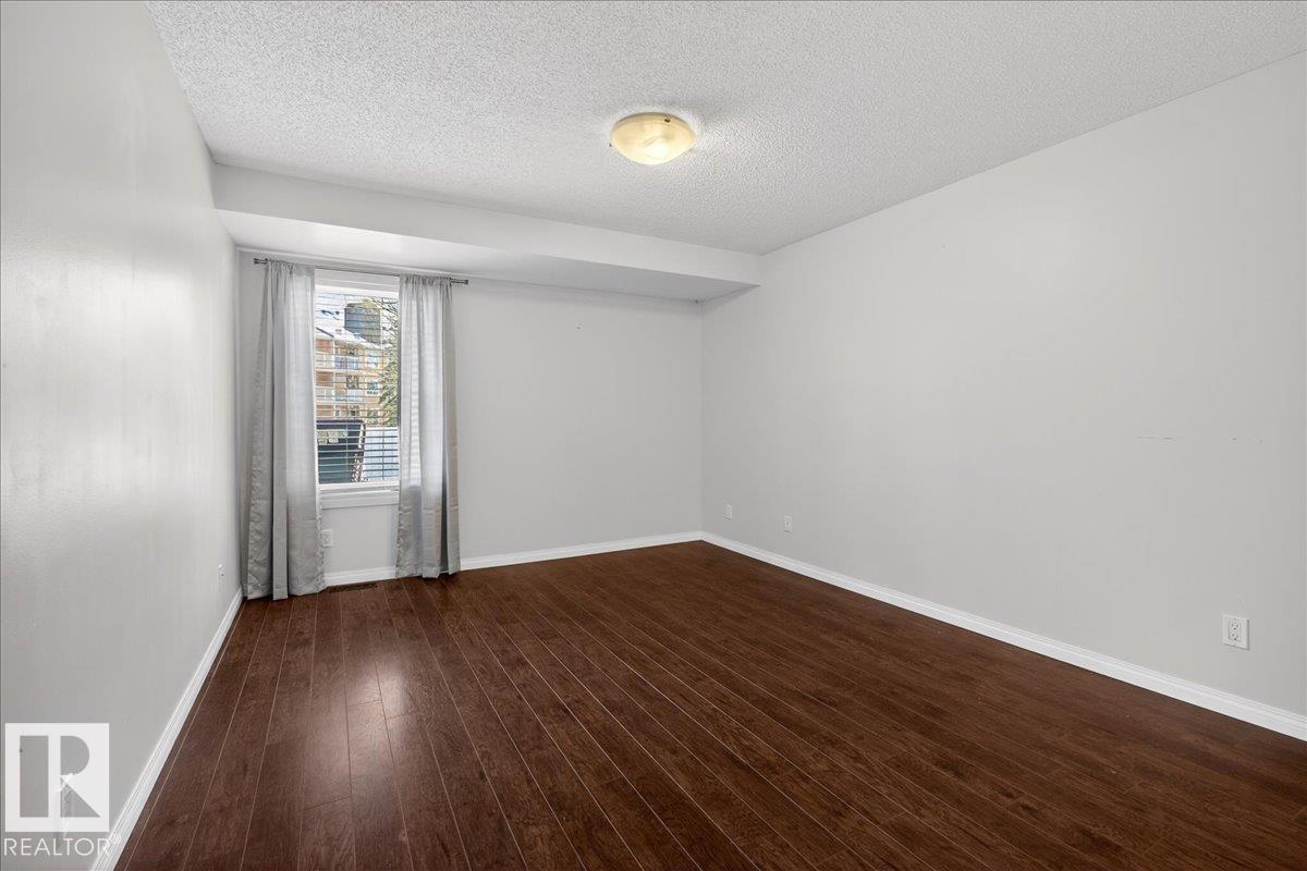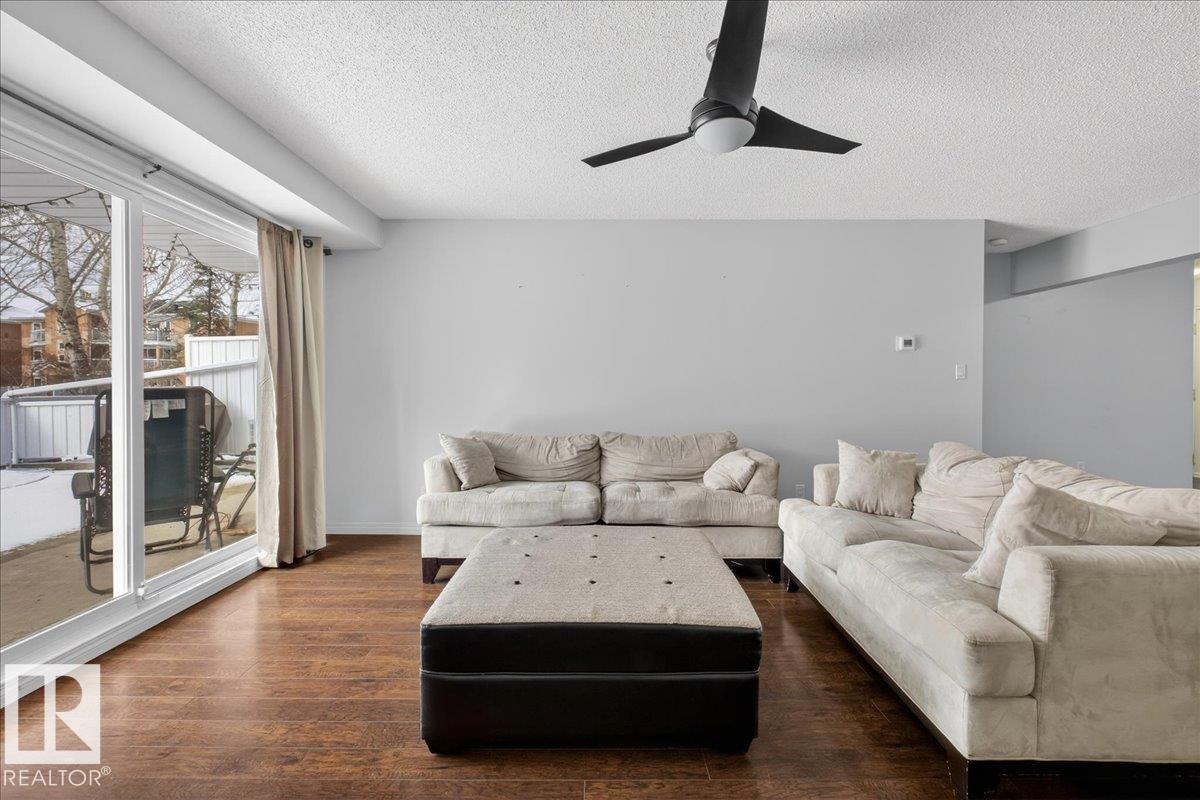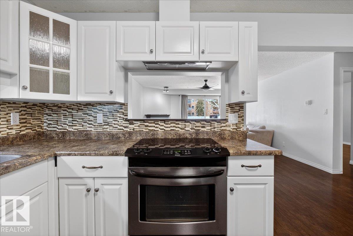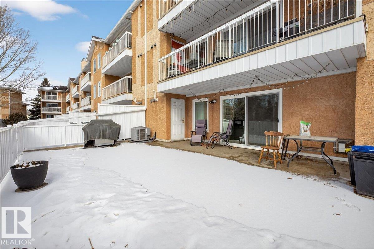 Enjoy downtown living without sacrificing space in this spacious condo offering over 1,300 sq ft of living space, just steps from the River Valley. This bright 3 bedroom, 2 full bathroom unit features a large exclusive-use south-facing patio/deck overlooking the courtyard?perfect for summer, complete with a natural gas BBQ line and additional storage. The updated kitchen offers white cabinetry, newer stainless steel appliances, ample counter space, and laminate flooring, opening to the dining area with a passthrough to the expansive living room filled with natural light from patio doors. The primary bedroom fits a king-sized bed and includes a 4-piece ensuite. Additional highlights include central A/C, a gas fireplace, in-suite laundry, and TWO heated underground parking stalls. Building amenities include an exercise room and sauna. Ideally located minutes to Downtown, Rogers Place, LRT, Little Italy, and Commonwealth Stadium.